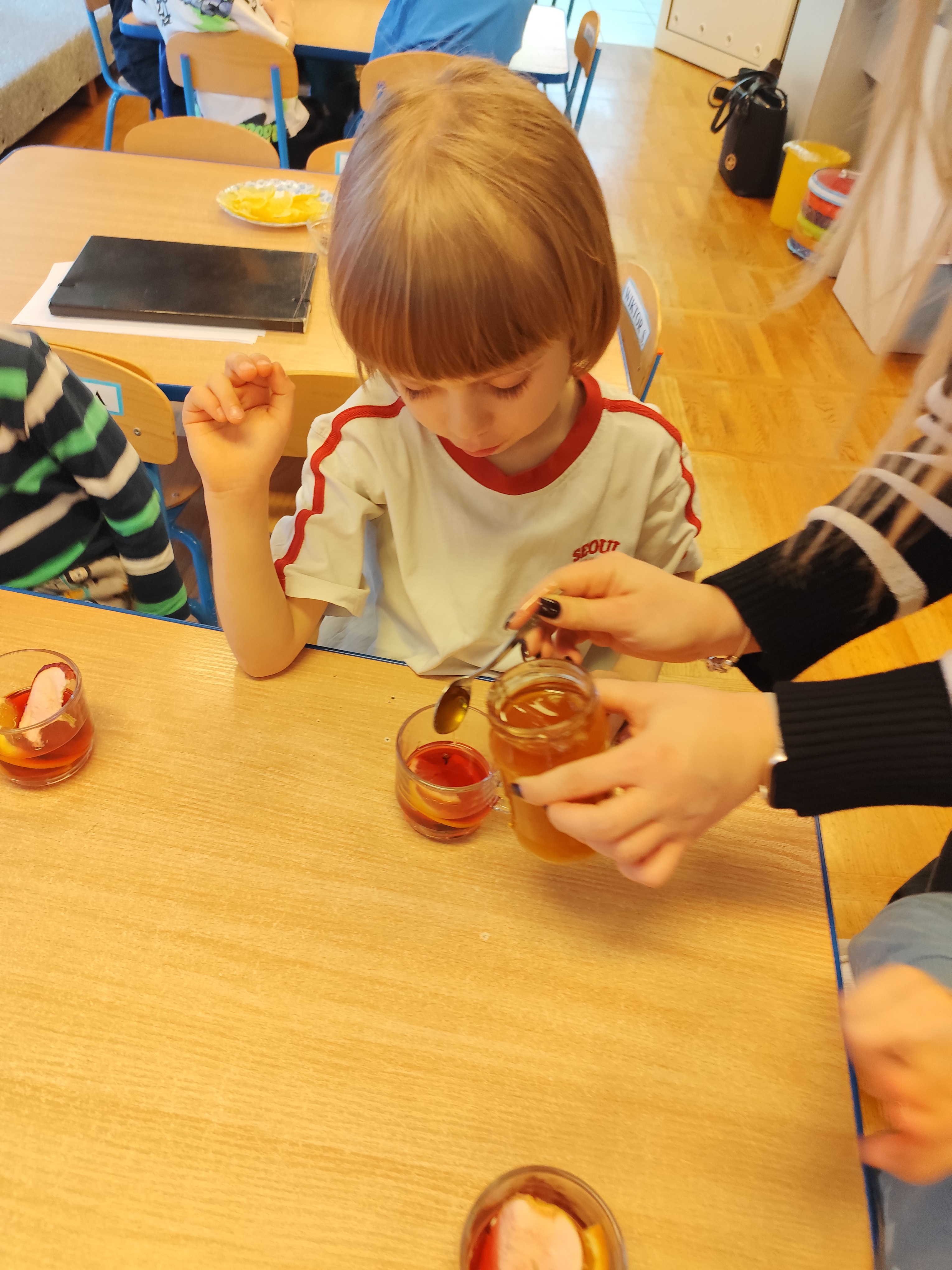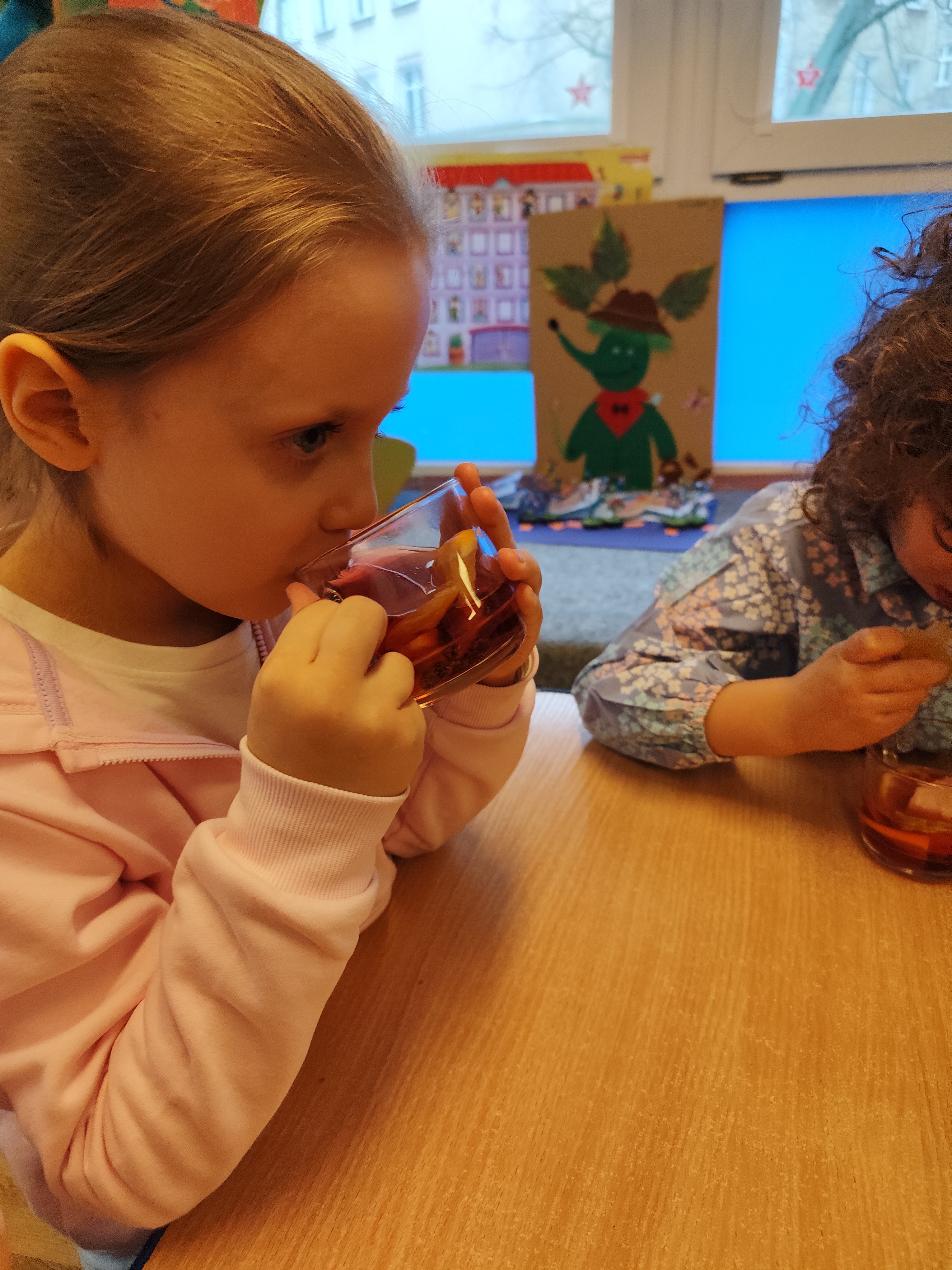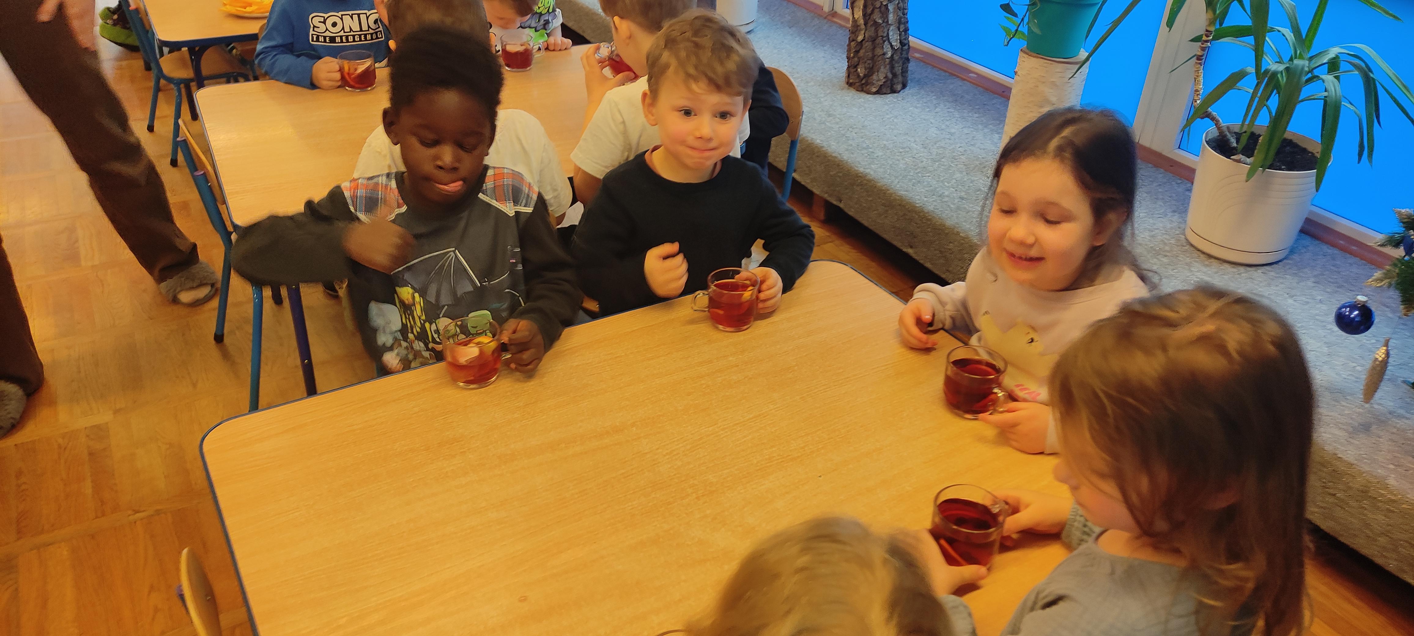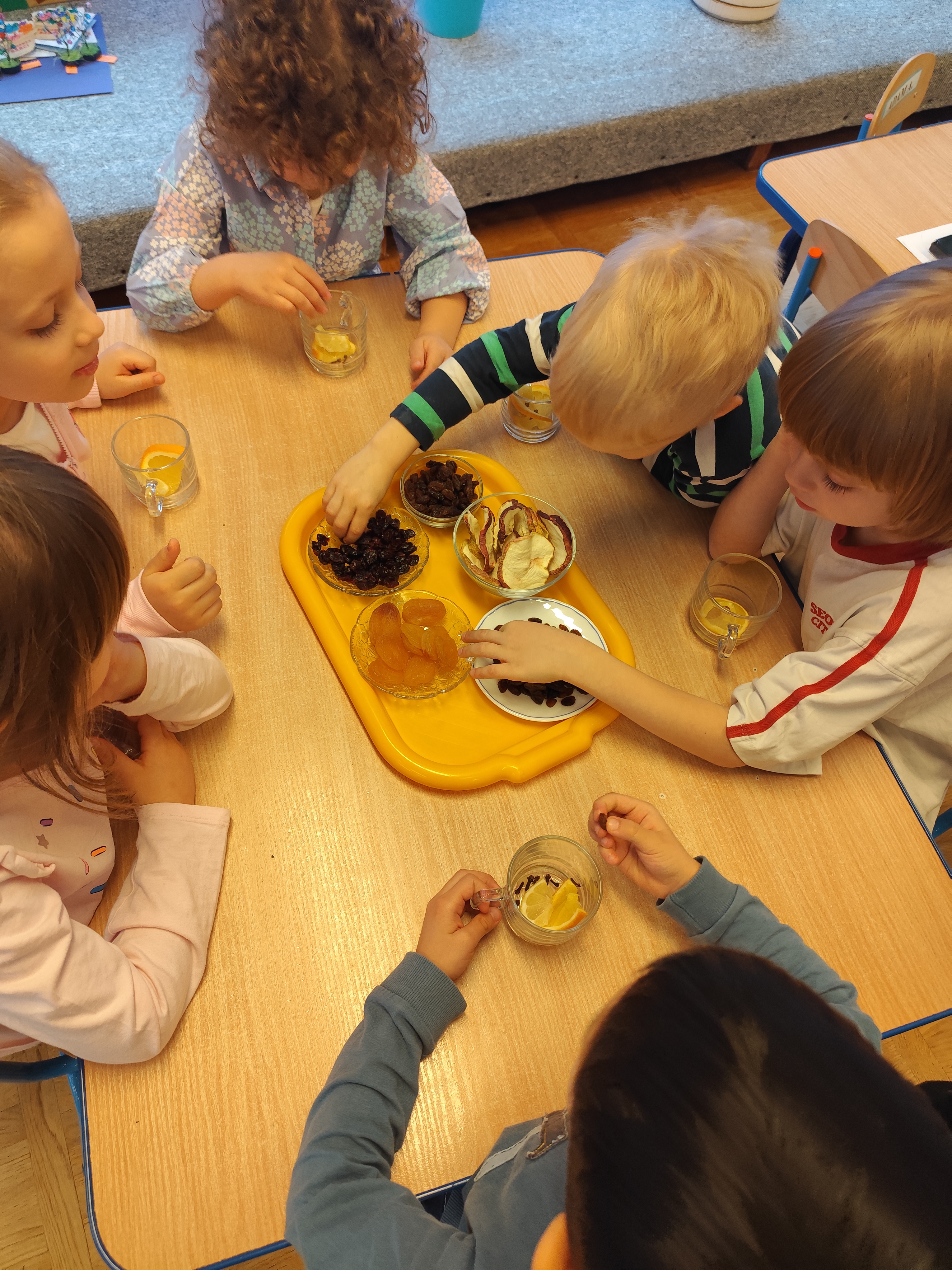 26 stycznia Smoki i Tygrysy wzięły udział w warsztatach "Aromatyczne, zimowe smaki" z kampanii "Wiem, co jem" Urzędu m. st. Warszawy. Dzieci nauczyły się piosenki o zimie, jak zdrowo się odżywiać, wybierały obrazki ze zdrowym jedzeniem oraz tworzyły swoją herbatkę zimową! Mogły powąchać i posmakować suszonych owoców, imbiru, goździków, żurawiny i rodzynek.