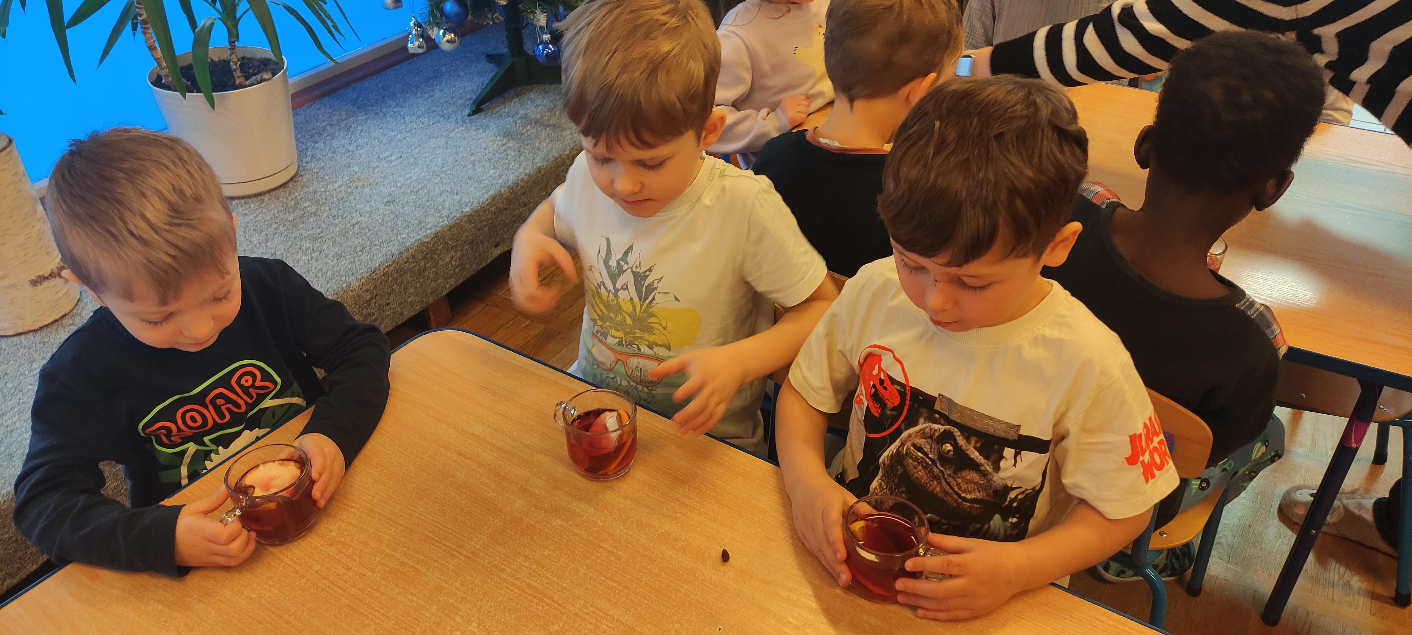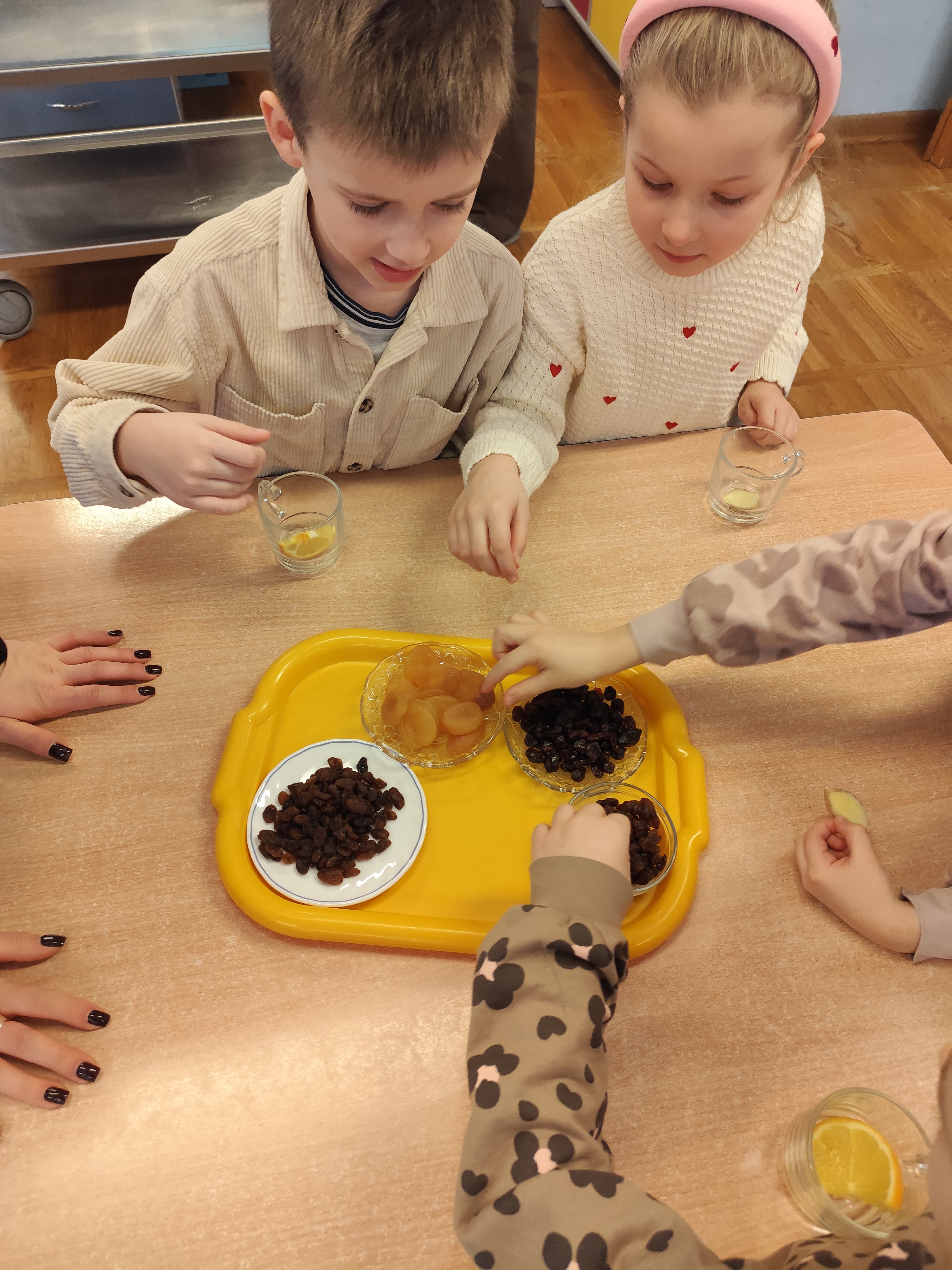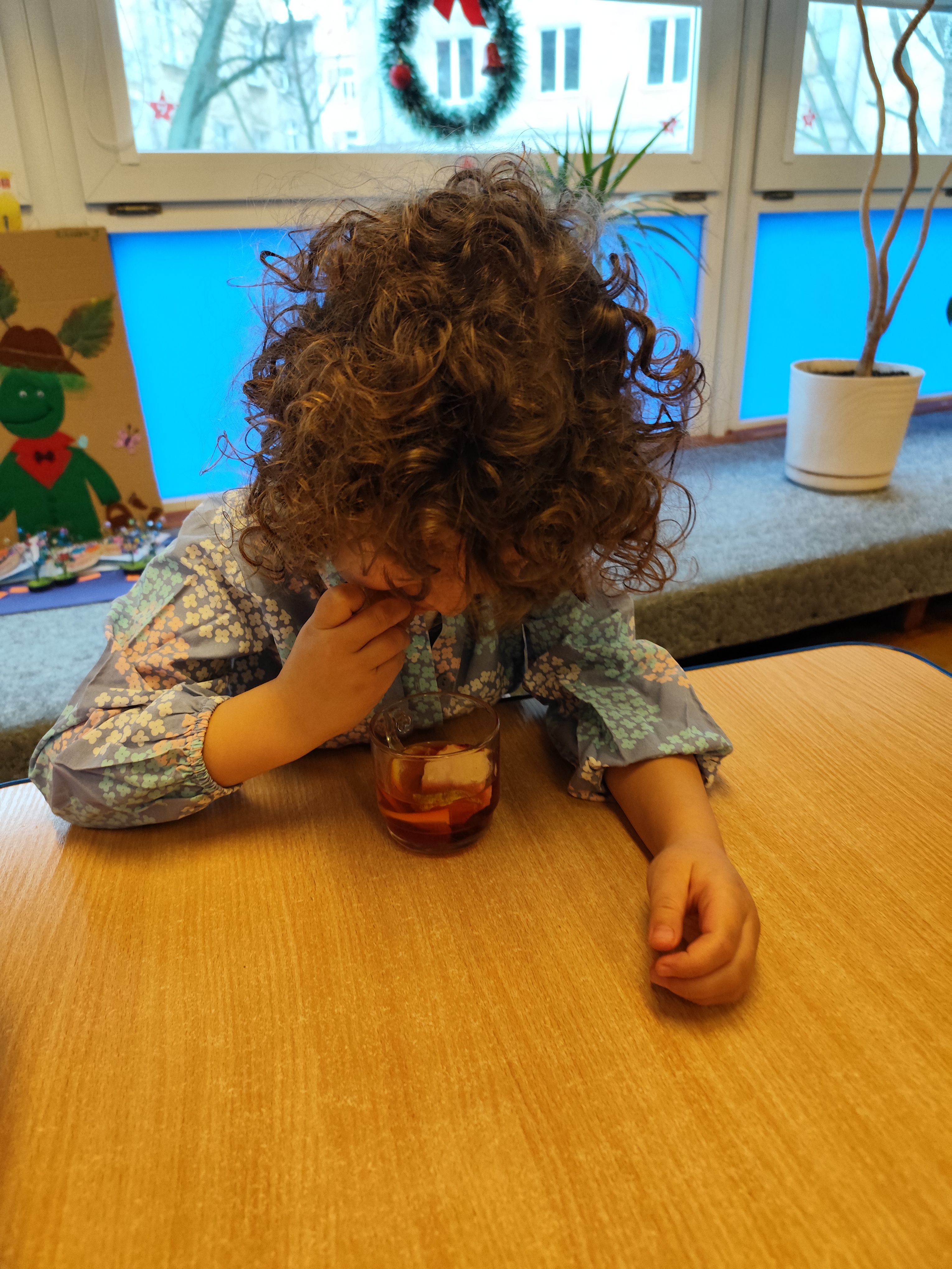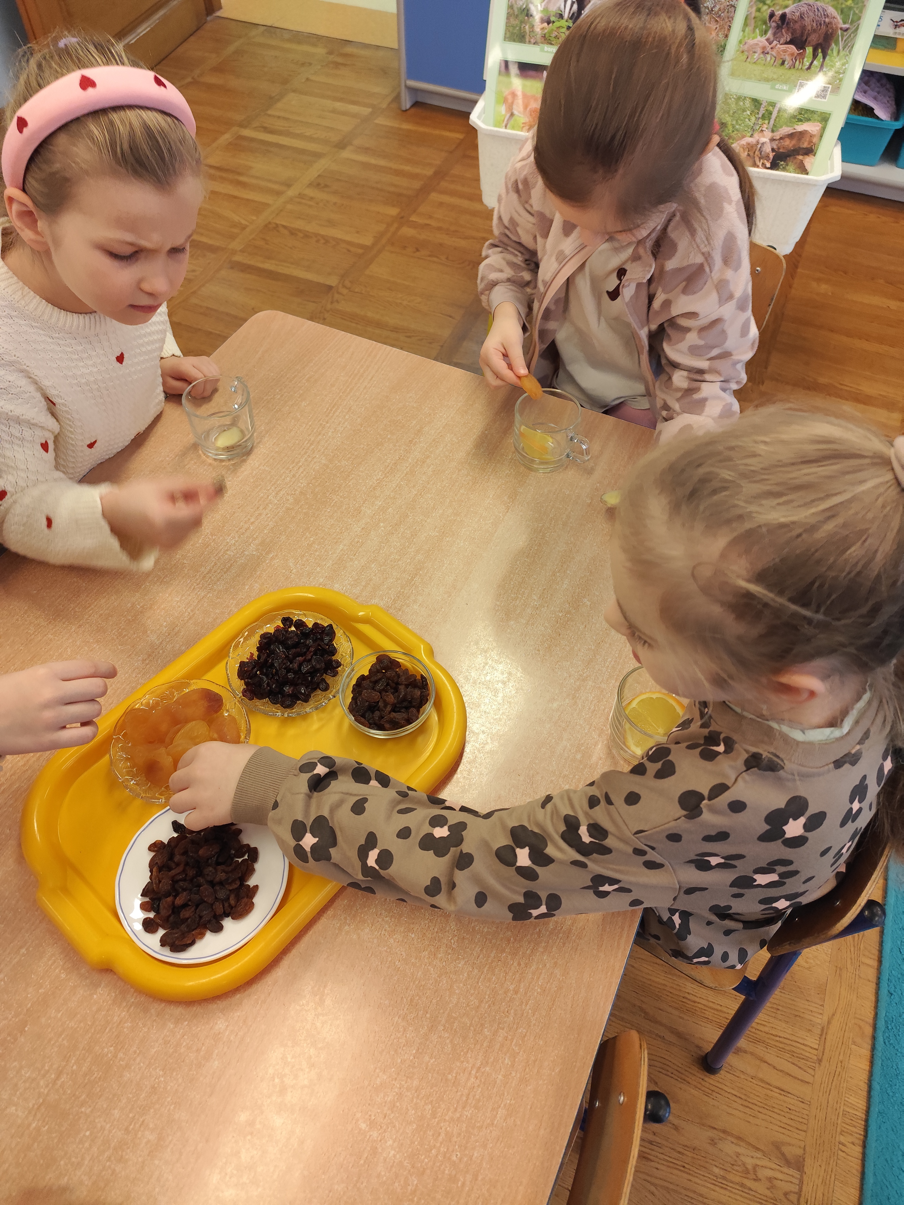 26 stycznia Smoki i Tygrysy wzięły udział w warsztatach "Aromatyczne, zimowe smaki" z kampanii "Wiem, co jem" Urzędu m. st. Warszawy. Dzieci nauczyły się piosenki o zimie, jak zdrowo się odżywiać, wybierały obrazki ze zdrowym jedzeniem oraz tworzyły swoją herbatkę zimową! Mogły powąchać i posmakować suszonych owoców, imbiru, goździków, żurawiny i rodzynek.