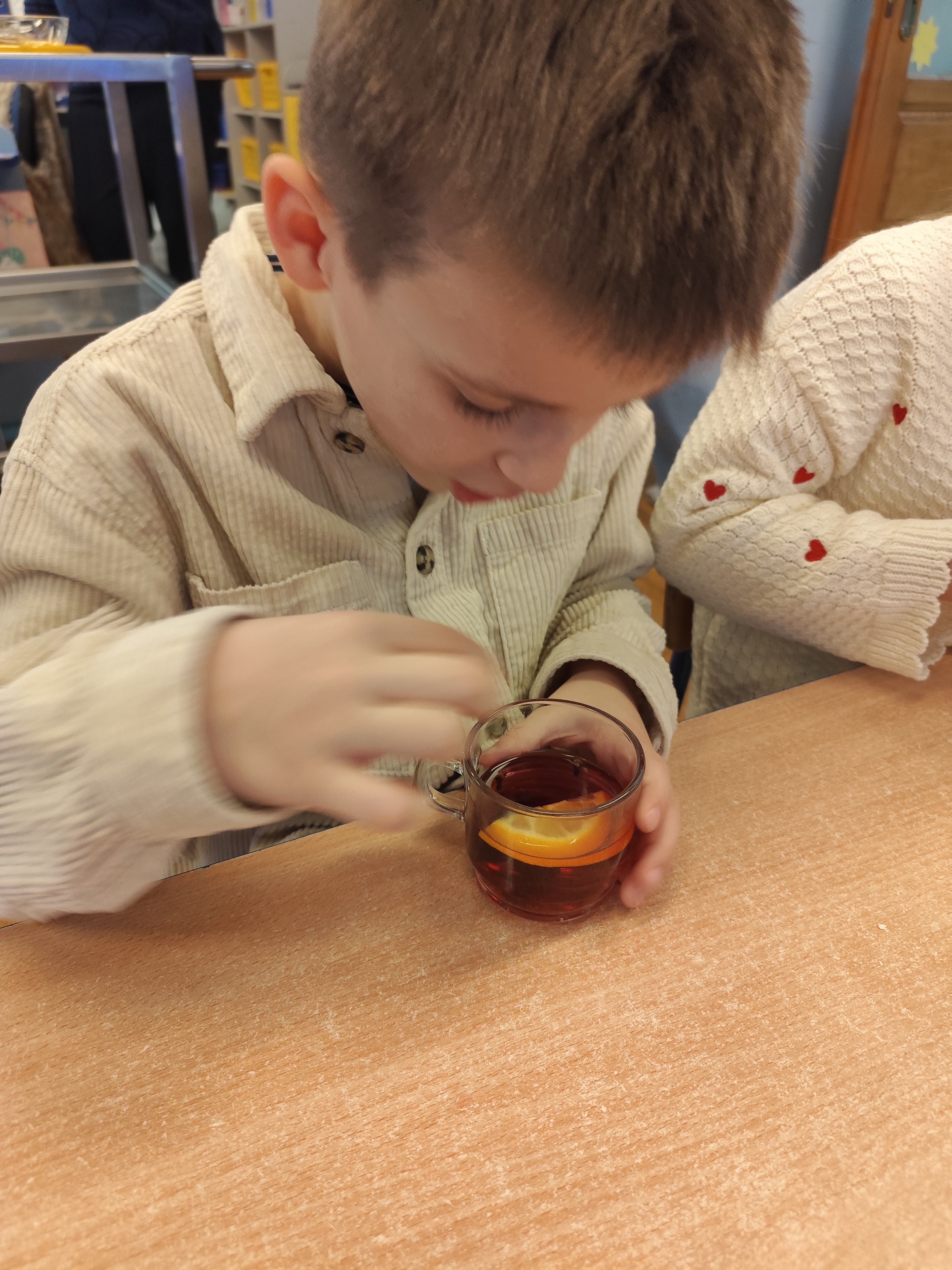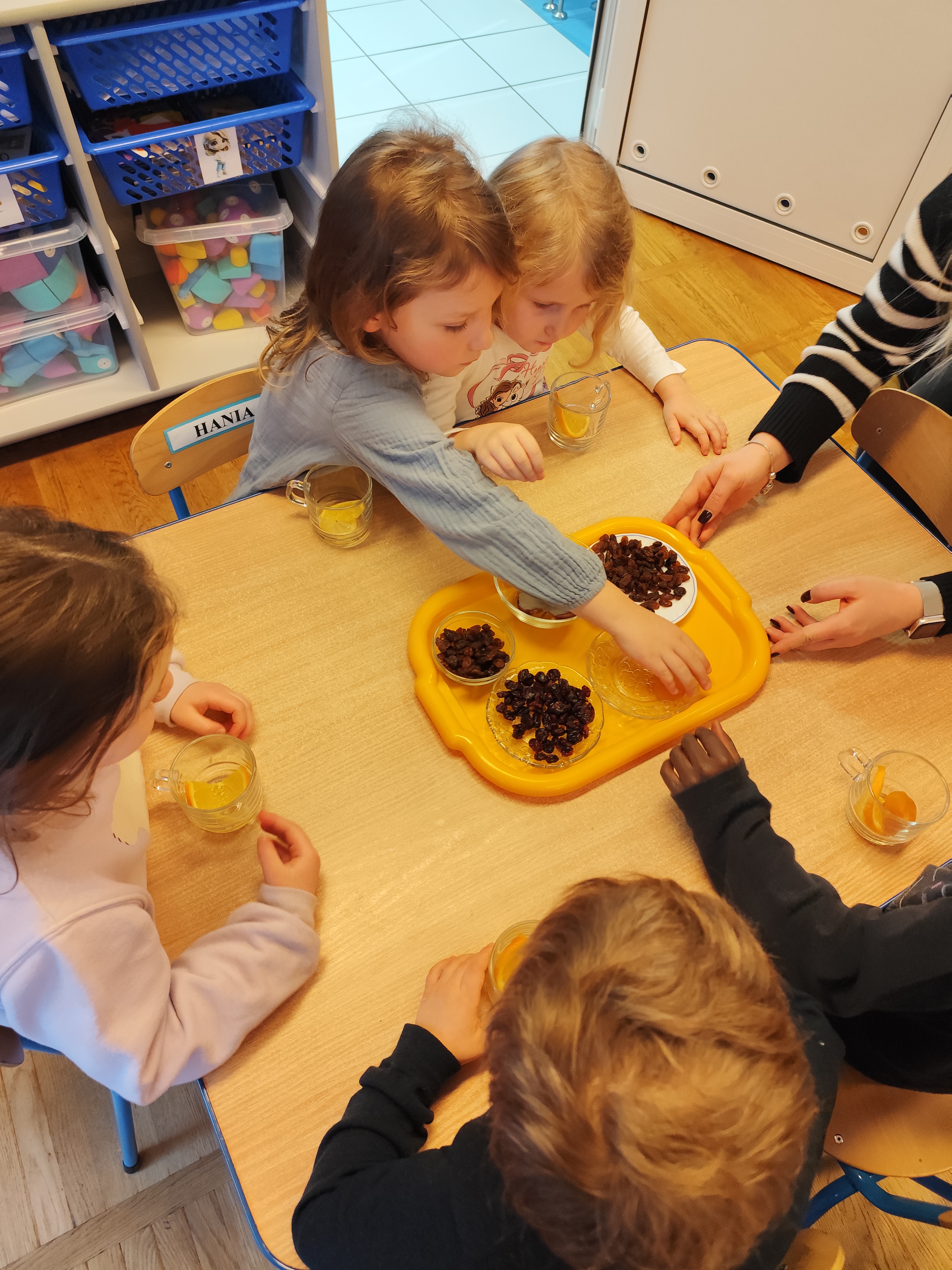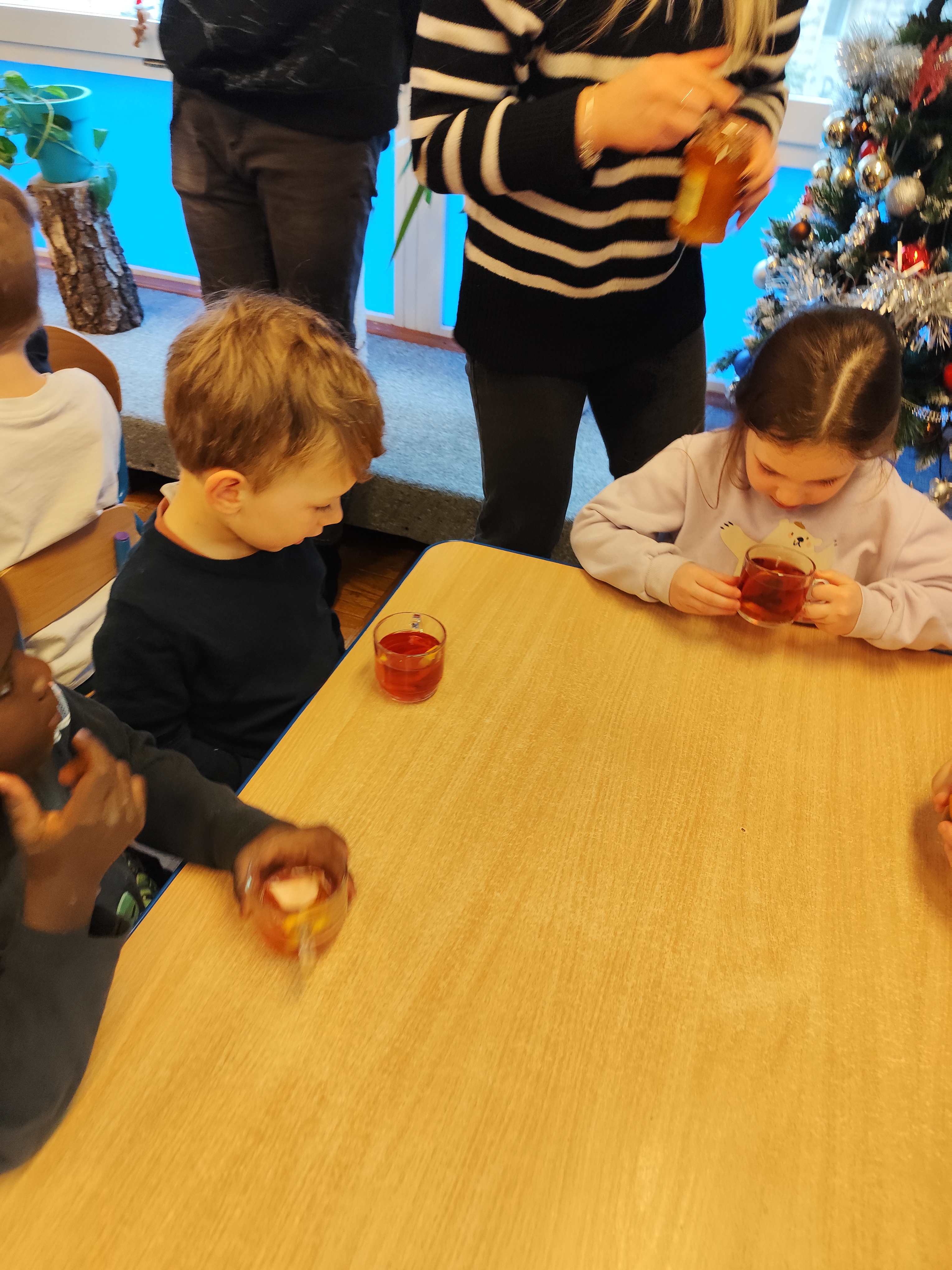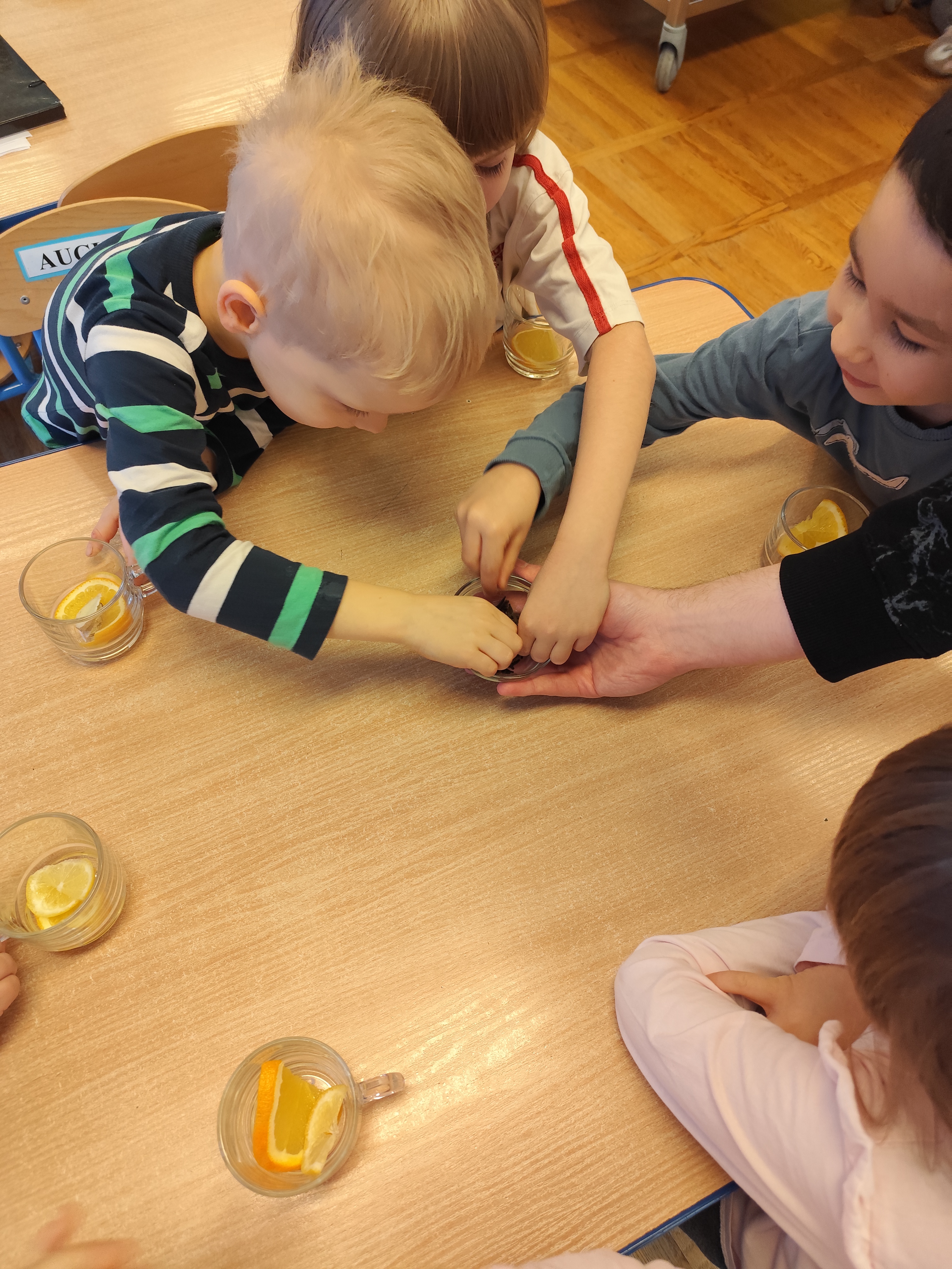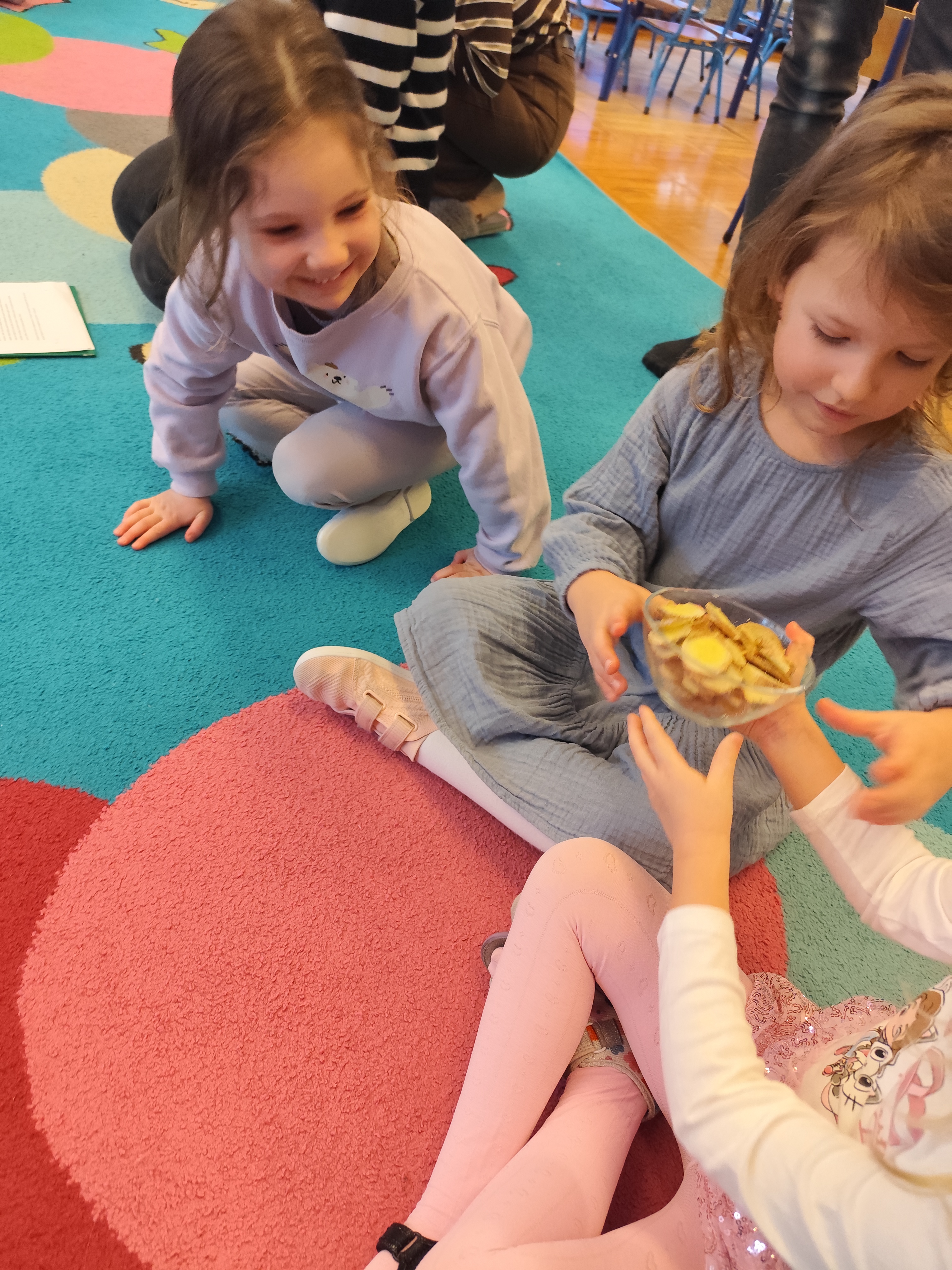 26 stycznia Smoki i Tygrysy wzięły udział w warsztatach "Aromatyczne, zimowe smaki" z kampanii "Wiem, co jem" Urzędu m. st. Warszawy. Dzieci nauczyły się piosenki o zimie, jak zdrowo się odżywiać, wybierały obrazki ze zdrowym jedzeniem oraz tworzyły swoją herbatkę zimową! Mogły powąchać i posmakować suszonych owoców, imbiru, goździków, żurawiny i rodzynek.