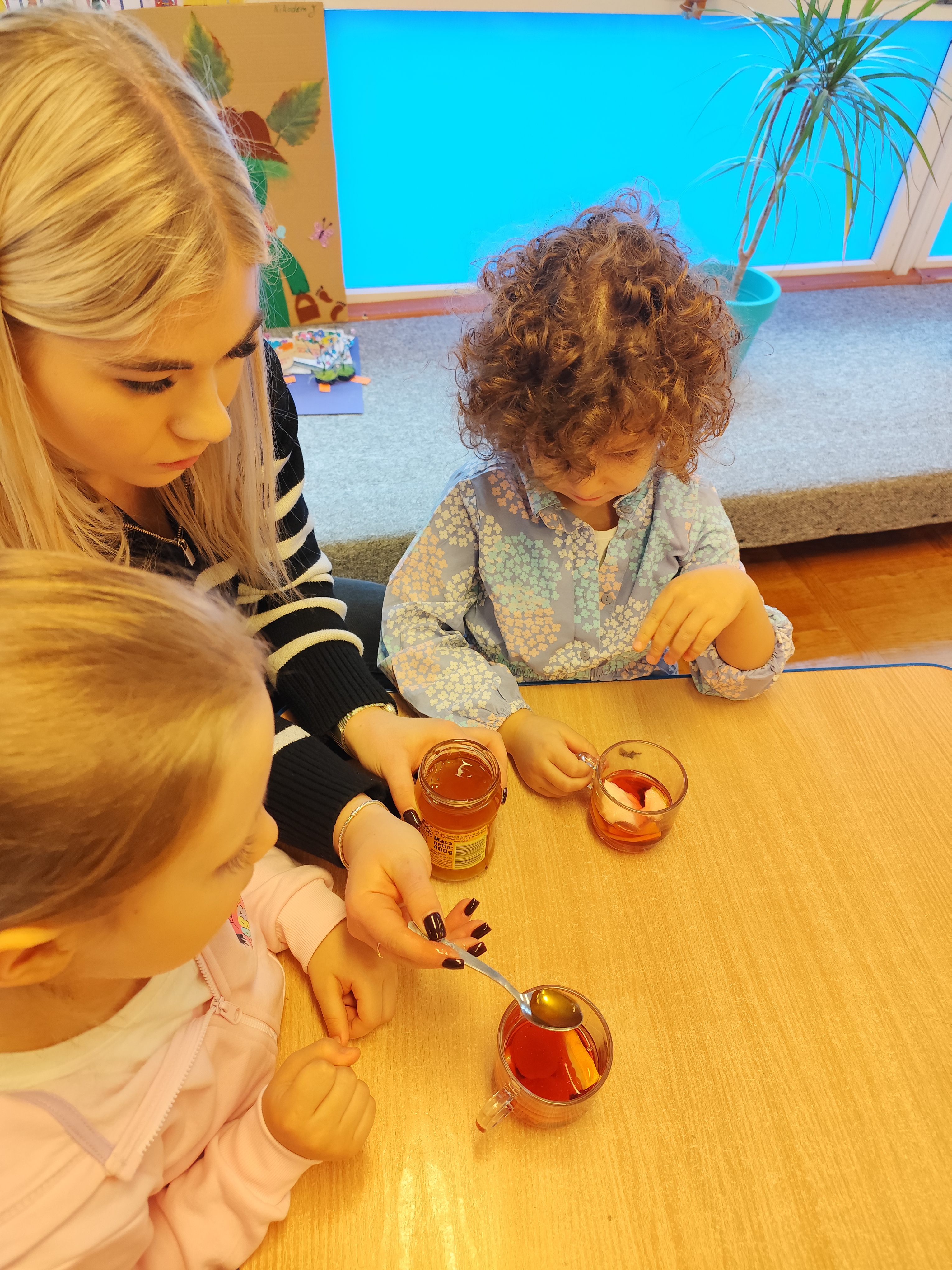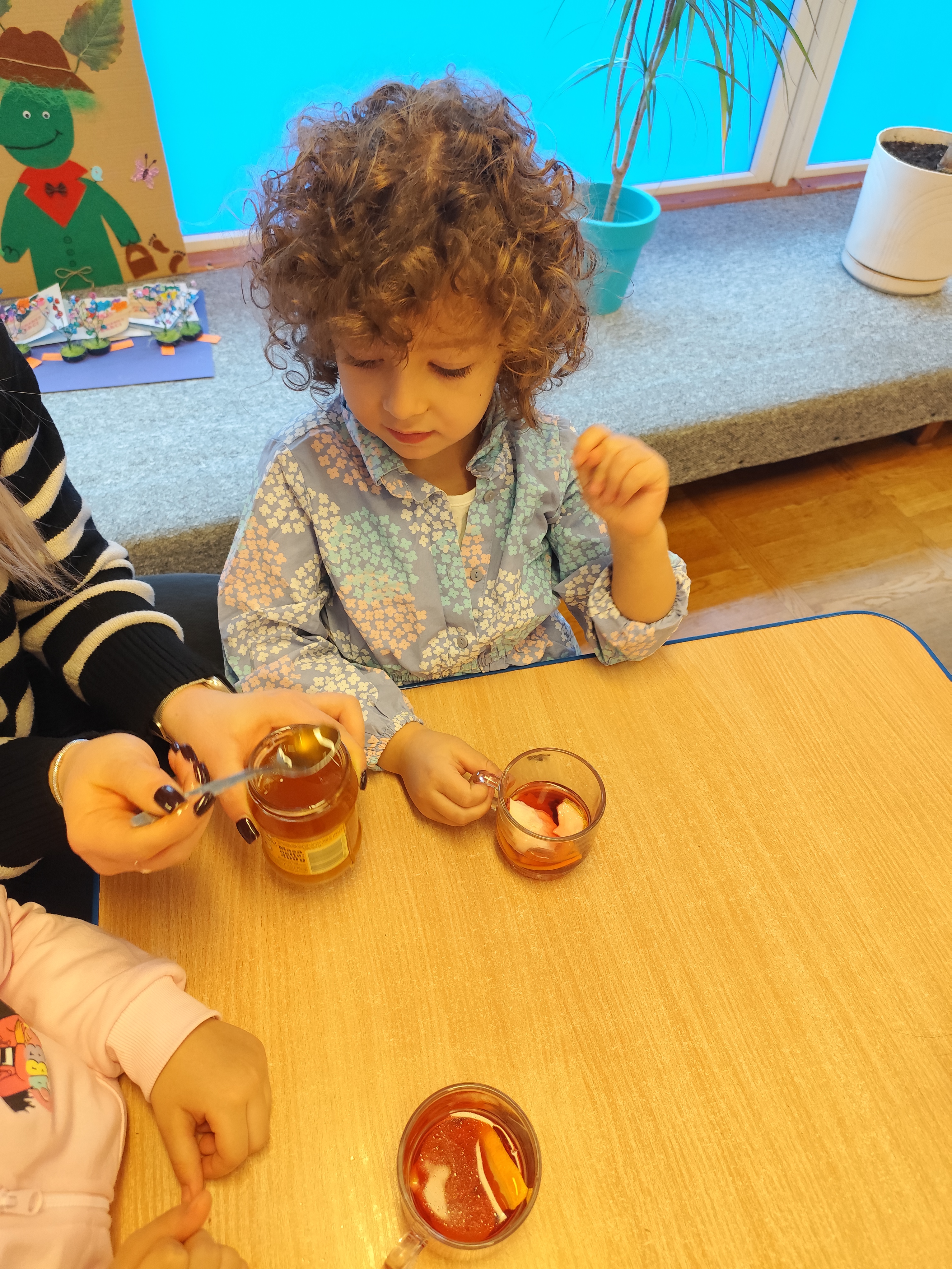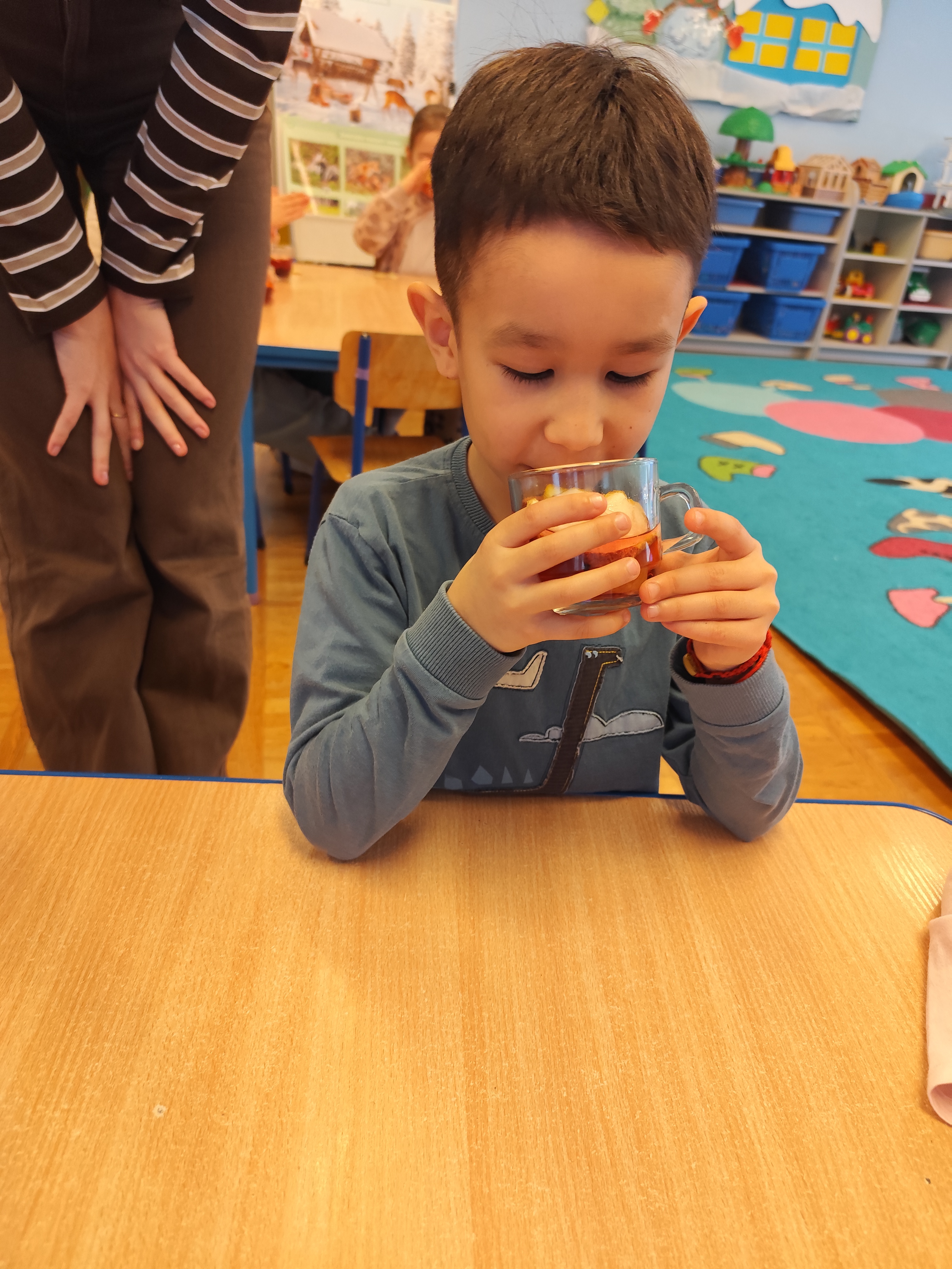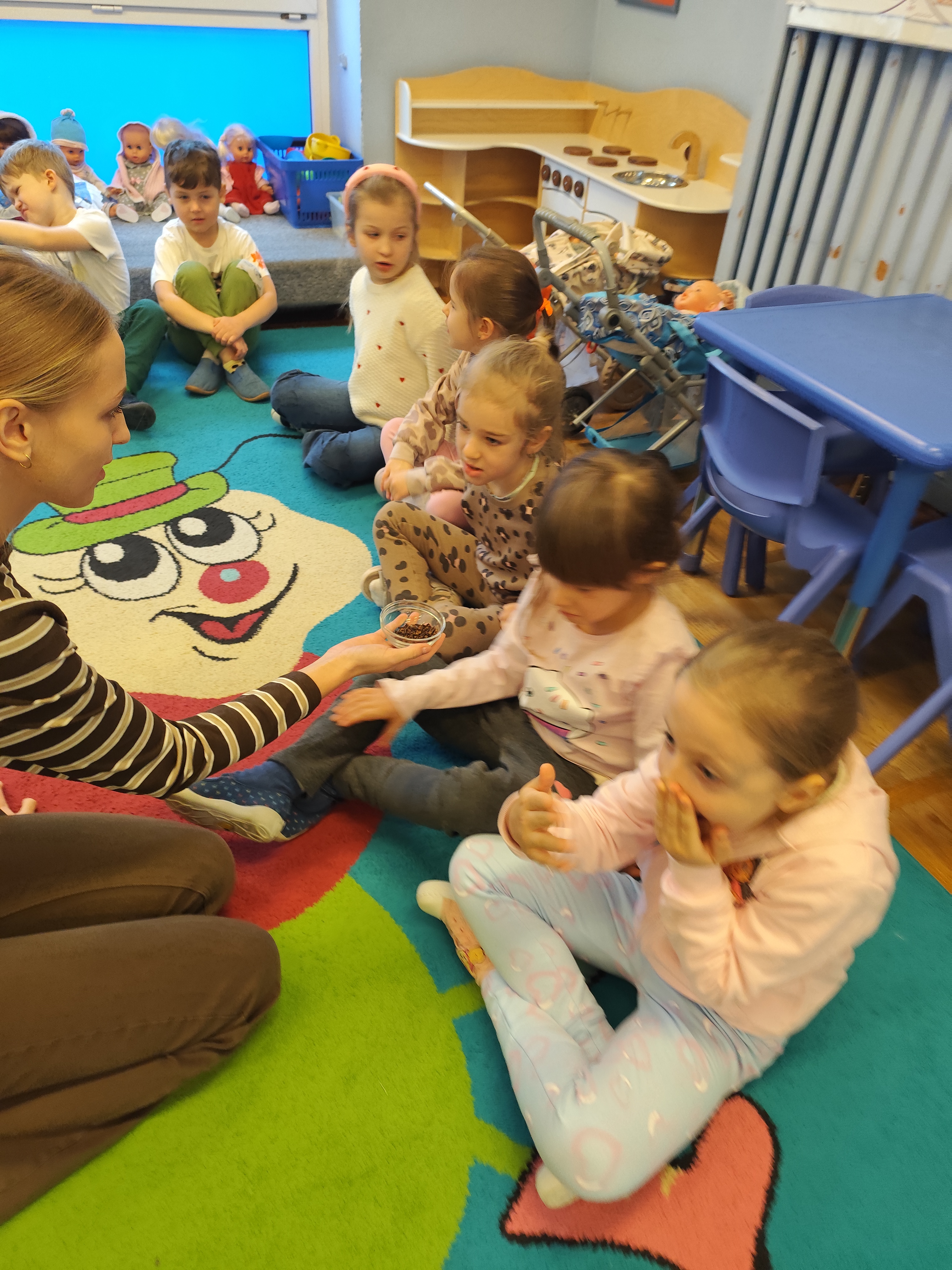 26 stycznia Smoki i Tygrysy wzięły udział w warsztatach "Aromatyczne, zimowe smaki" z kampanii "Wiem, co jem" Urzędu m. st. Warszawy. Dzieci nauczyły się piosenki o zimie, jak zdrowo się odżywiać, wybierały obrazki ze zdrowym jedzeniem oraz tworzyły swoją herbatkę zimową! Mogły powąchać i posmakować suszonych owoców, imbiru, goździków, żurawiny i rodzynek.