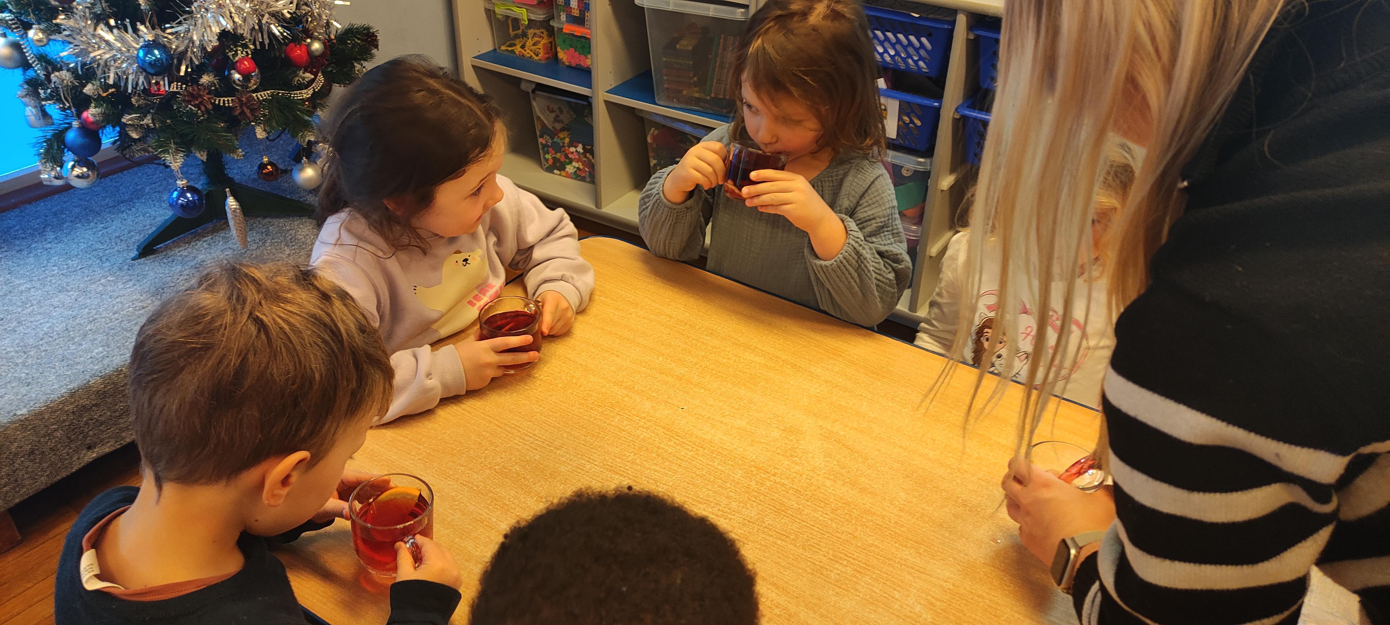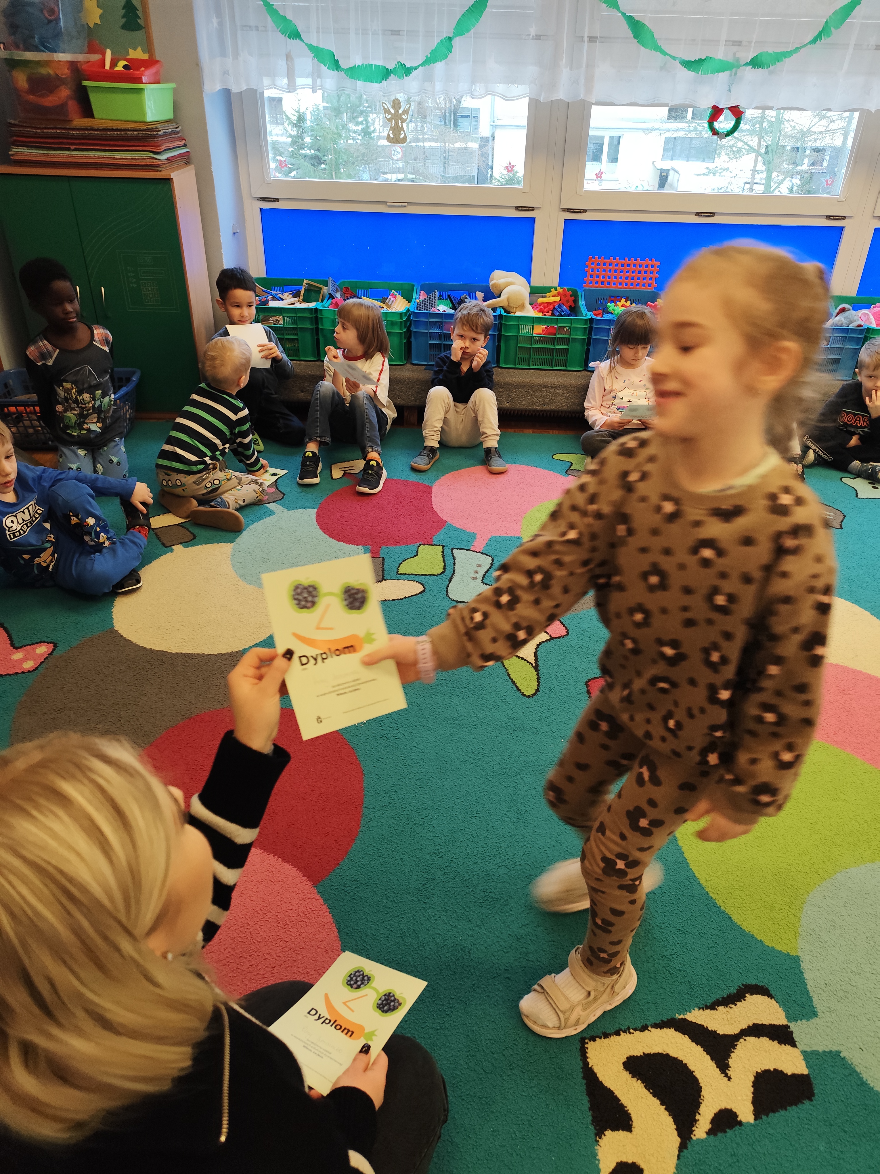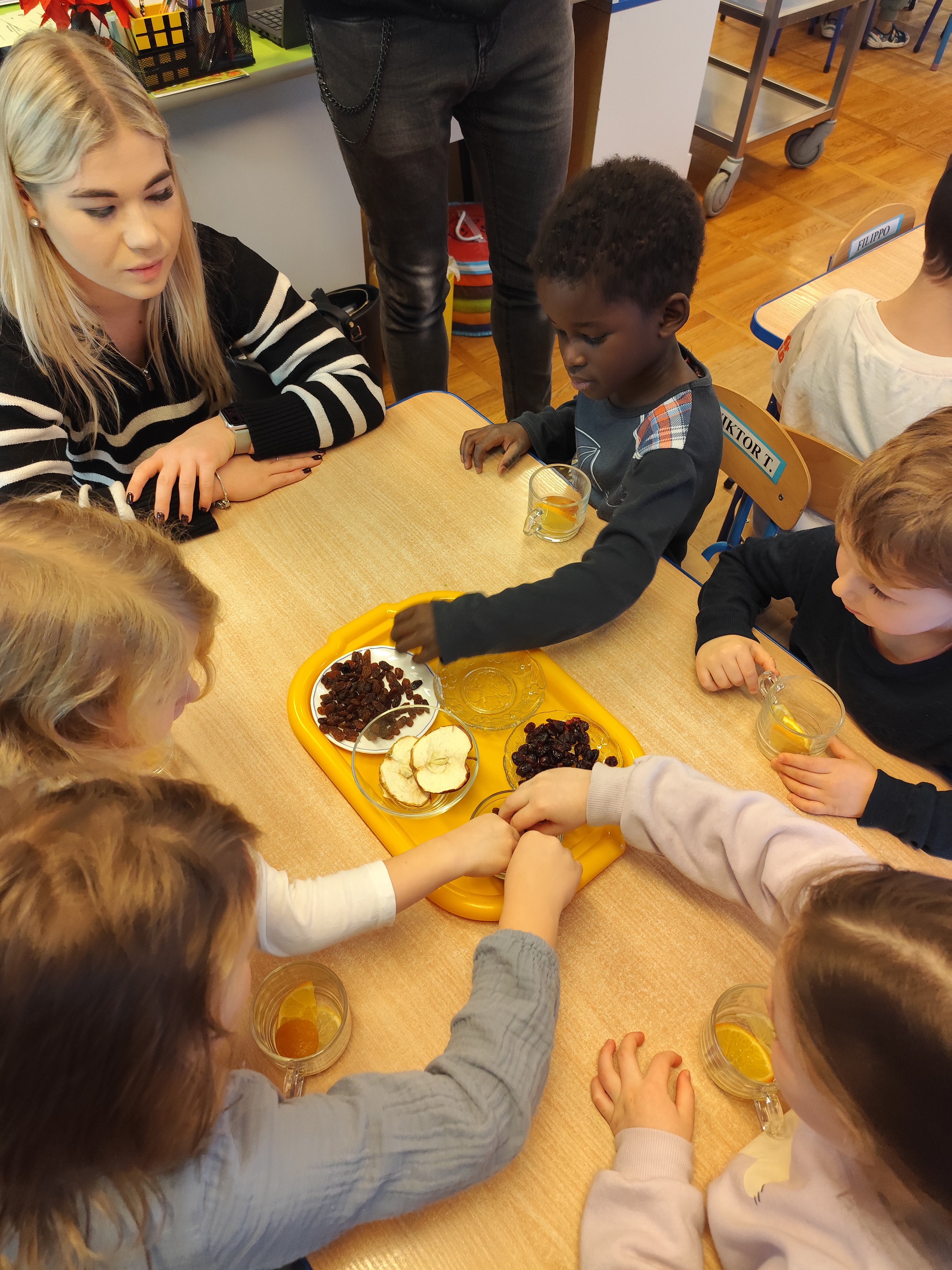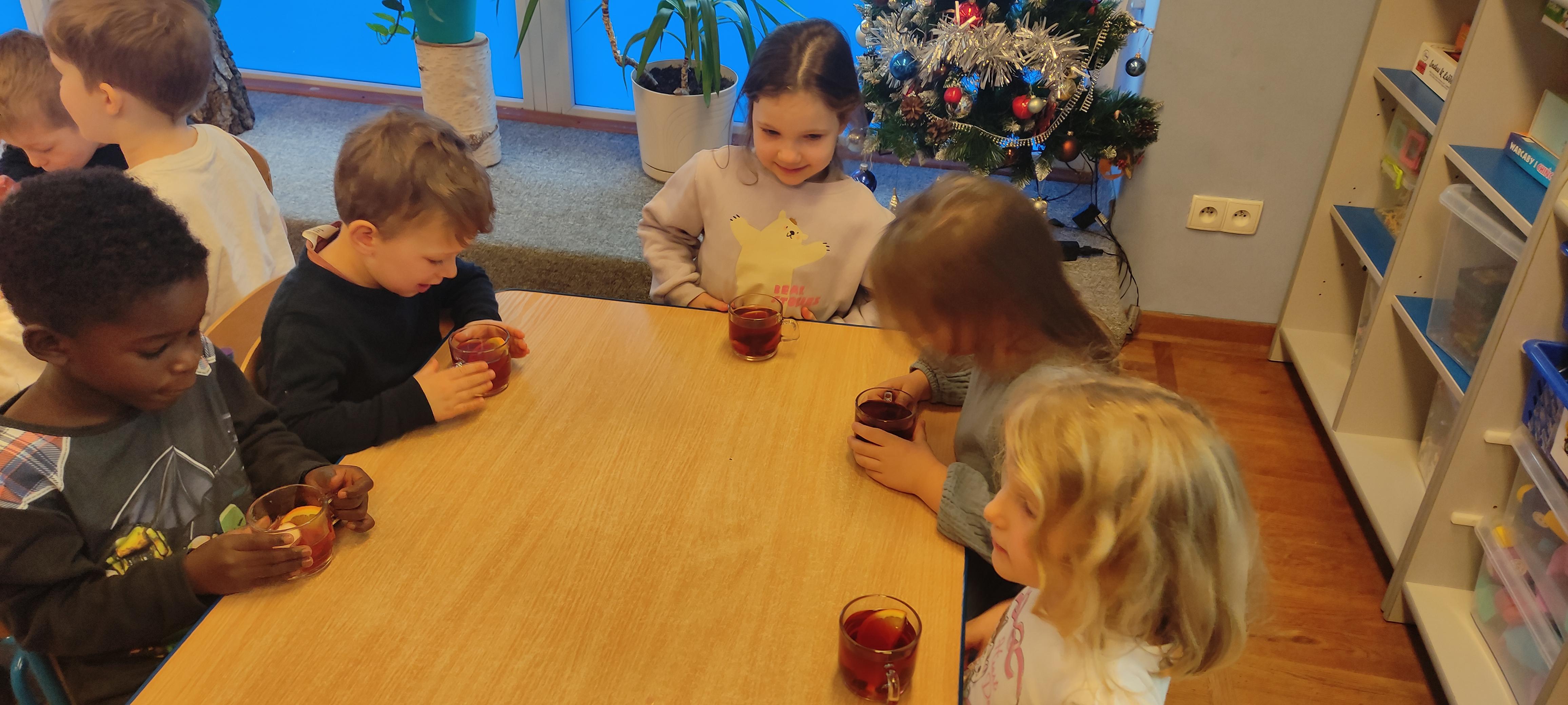 26 stycznia Smoki i Tygrysy wzięły udział w warsztatach "Aromatyczne, zimowe smaki" z kampanii "Wiem, co jem" Urzędu m. st. Warszawy. Dzieci nauczyły się piosenki o zimie, jak zdrowo się odżywiać, wybierały obrazki ze zdrowym jedzeniem oraz tworzyły swoją herbatkę zimową! Mogły powąchać i posmakować suszonych owoców, imbiru, goździków, żurawiny i rodzynek.