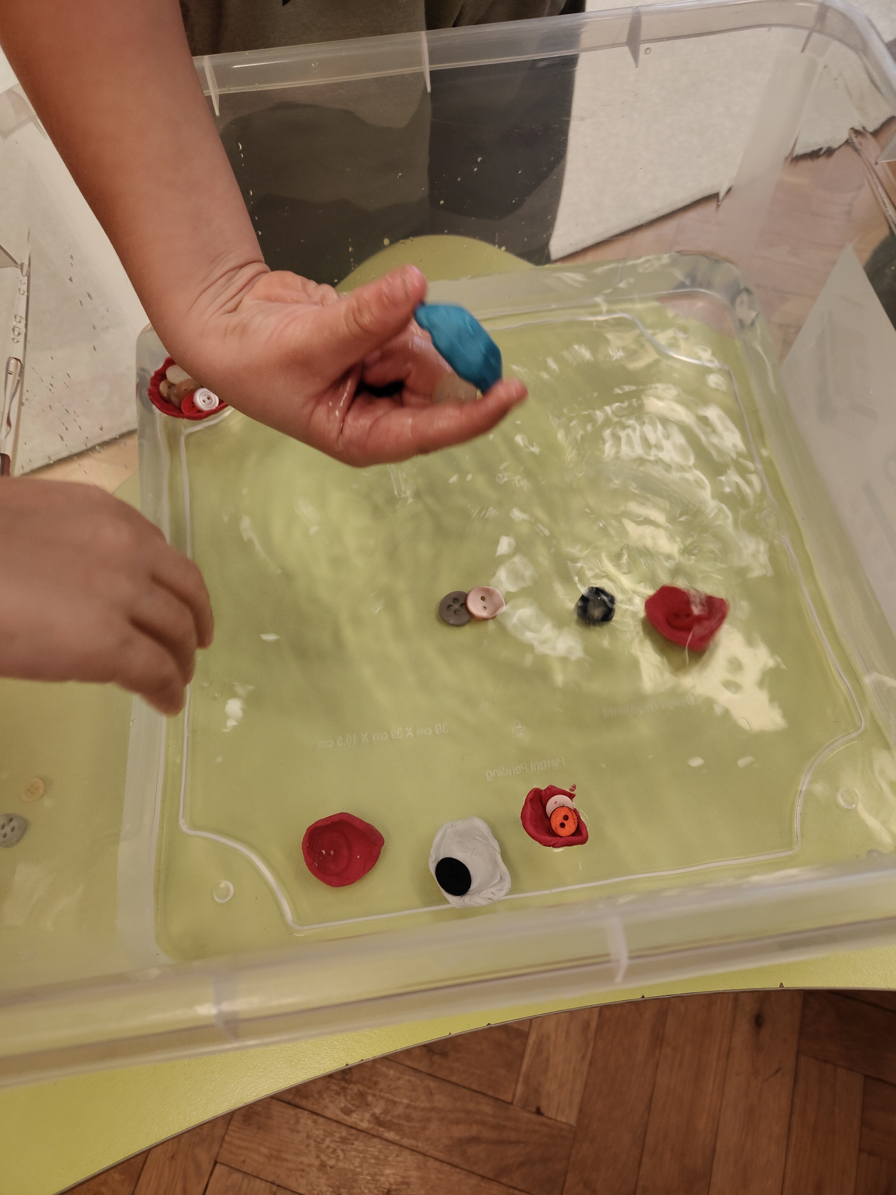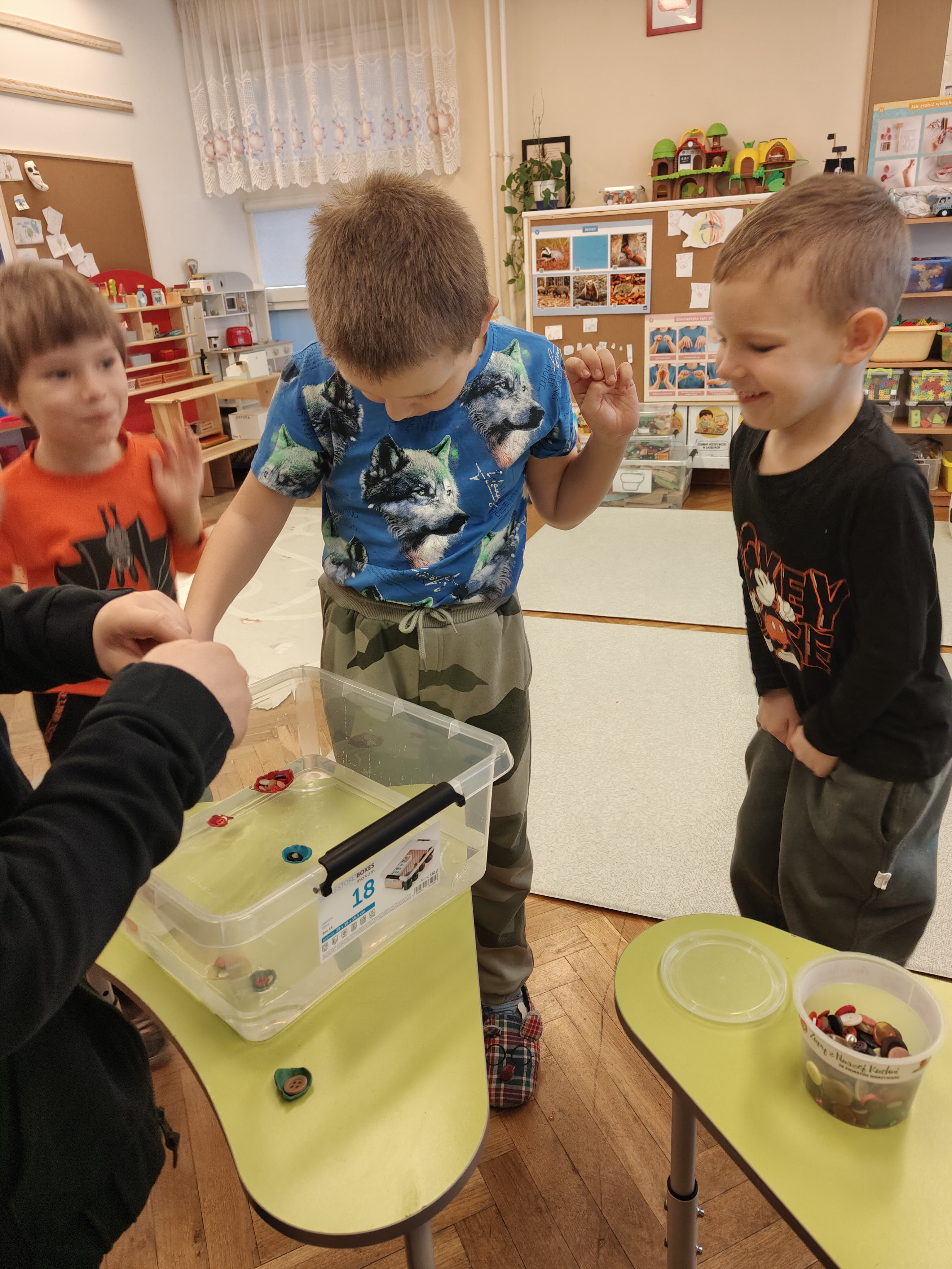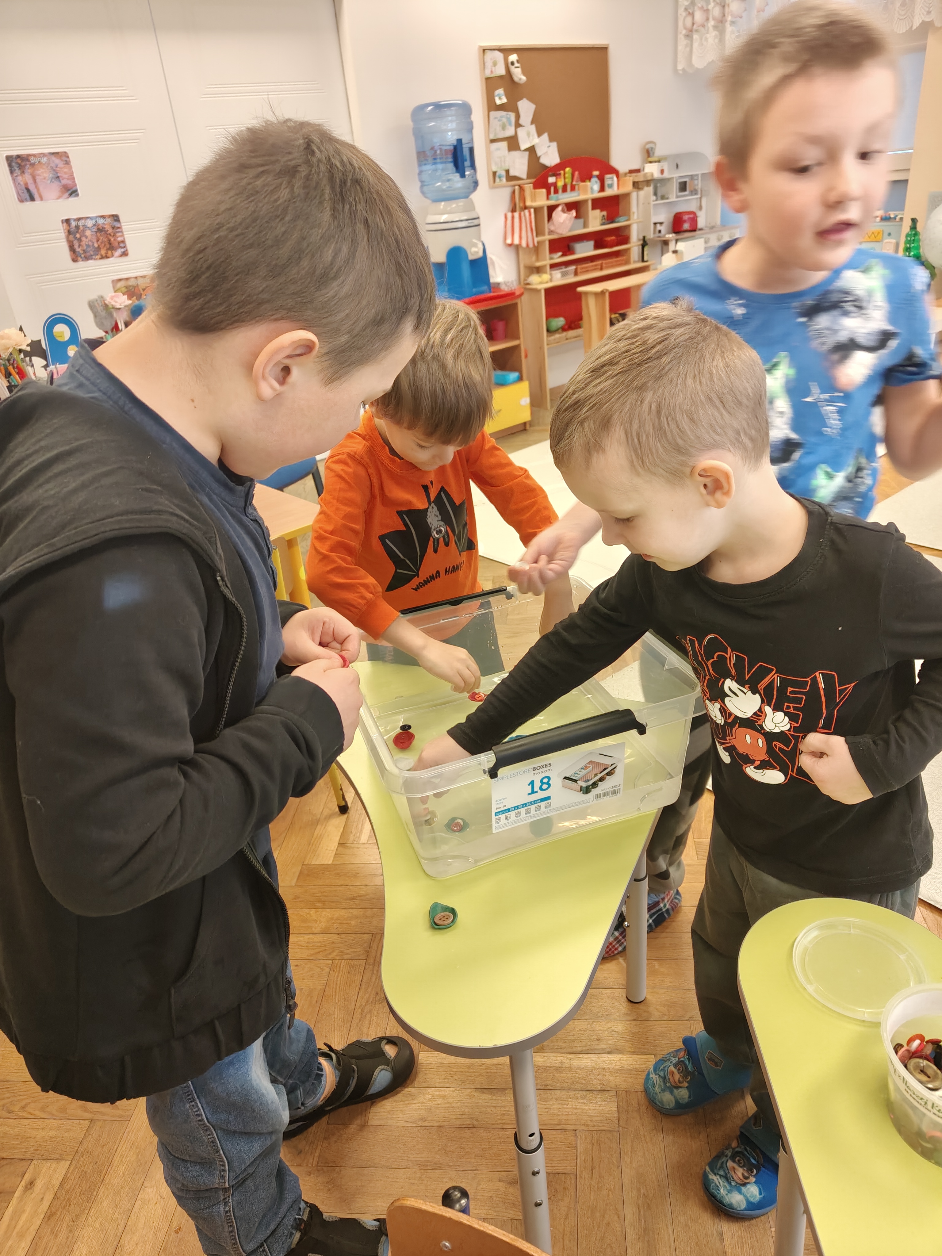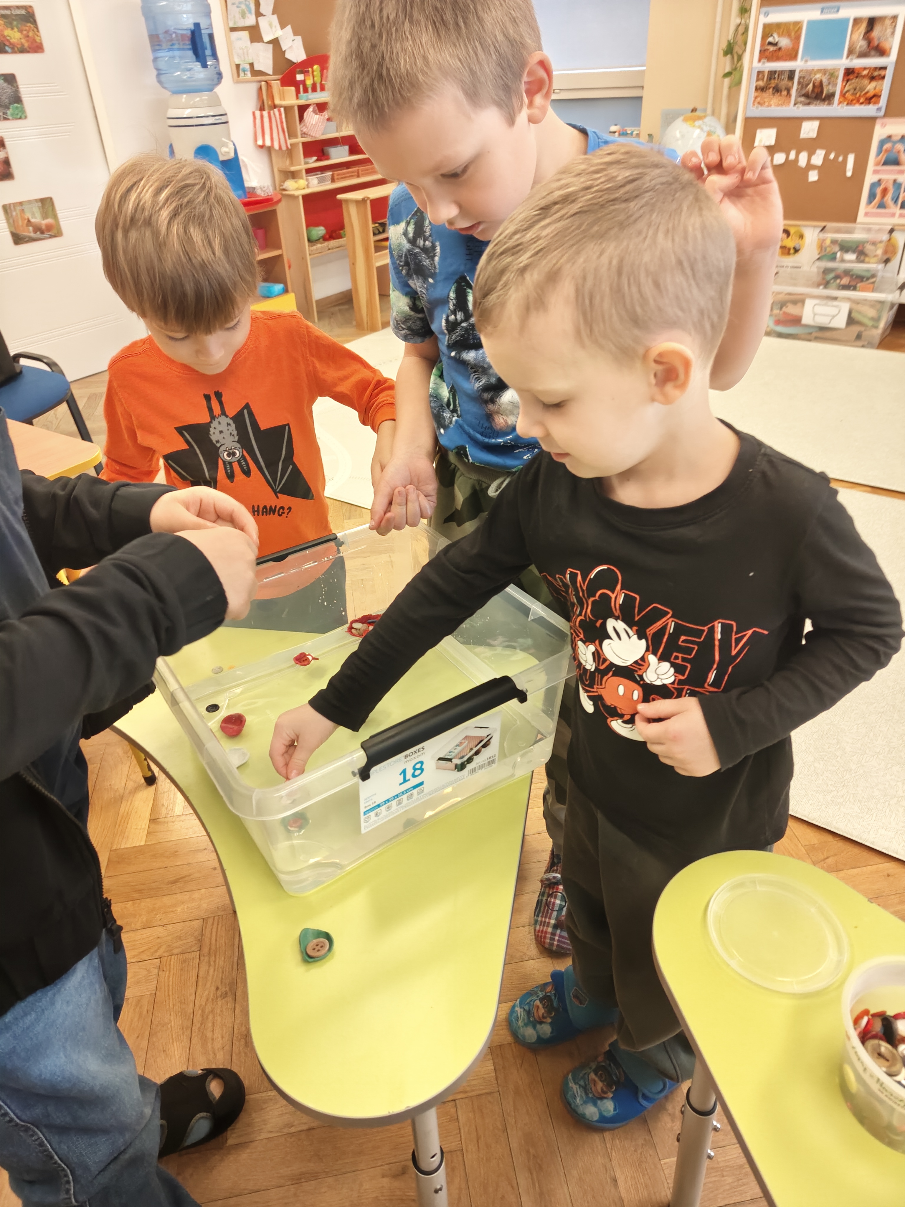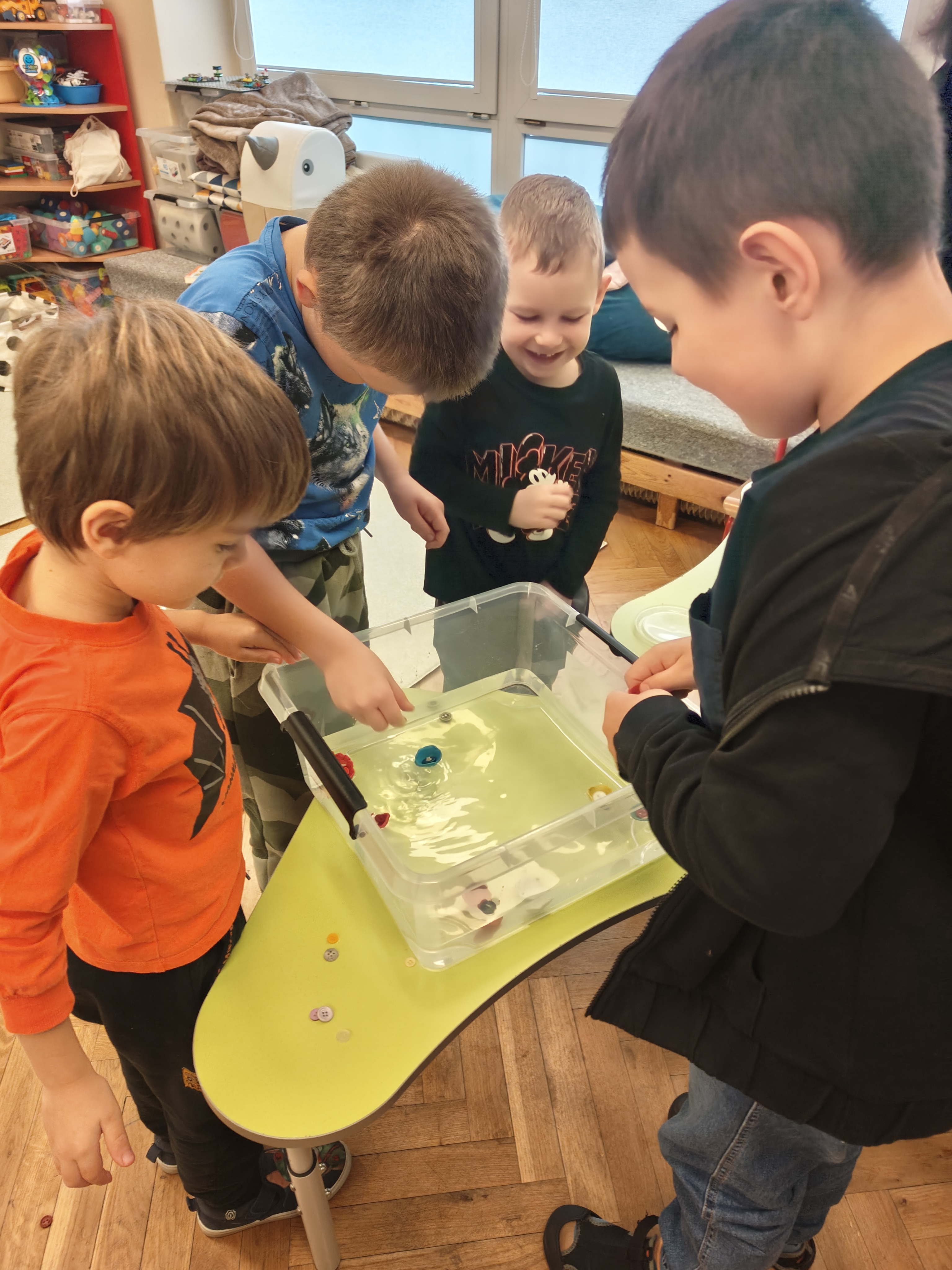 Dzieci z grupy Niedźwiadki uwielbiają eksperymentować, sprawdzać, badać! Dzięki zabawom z wodą już wiedzą, że to co pływa, a co tonie zależy od gęstości przedmiotu w stosunku do gęstości wody!