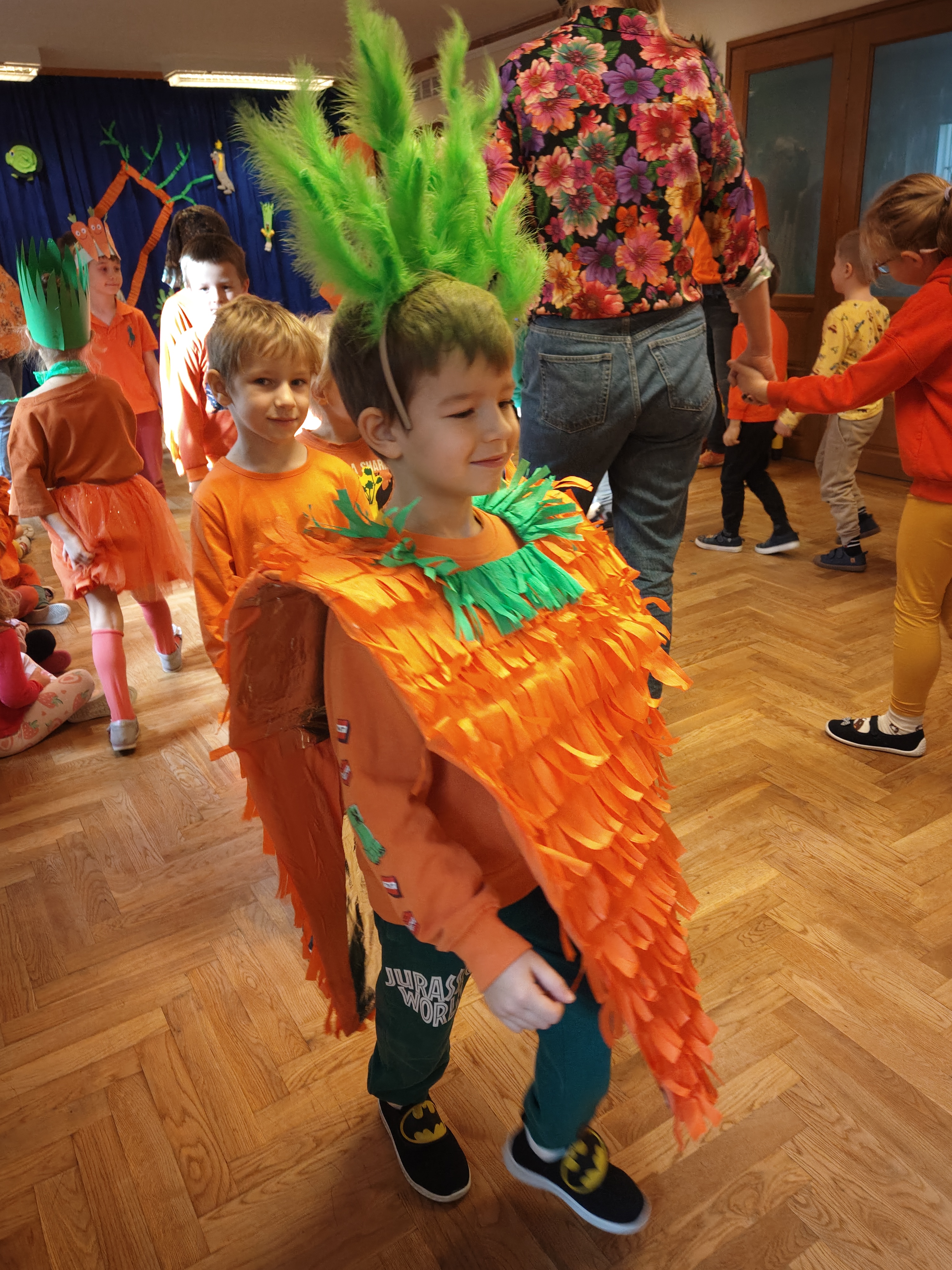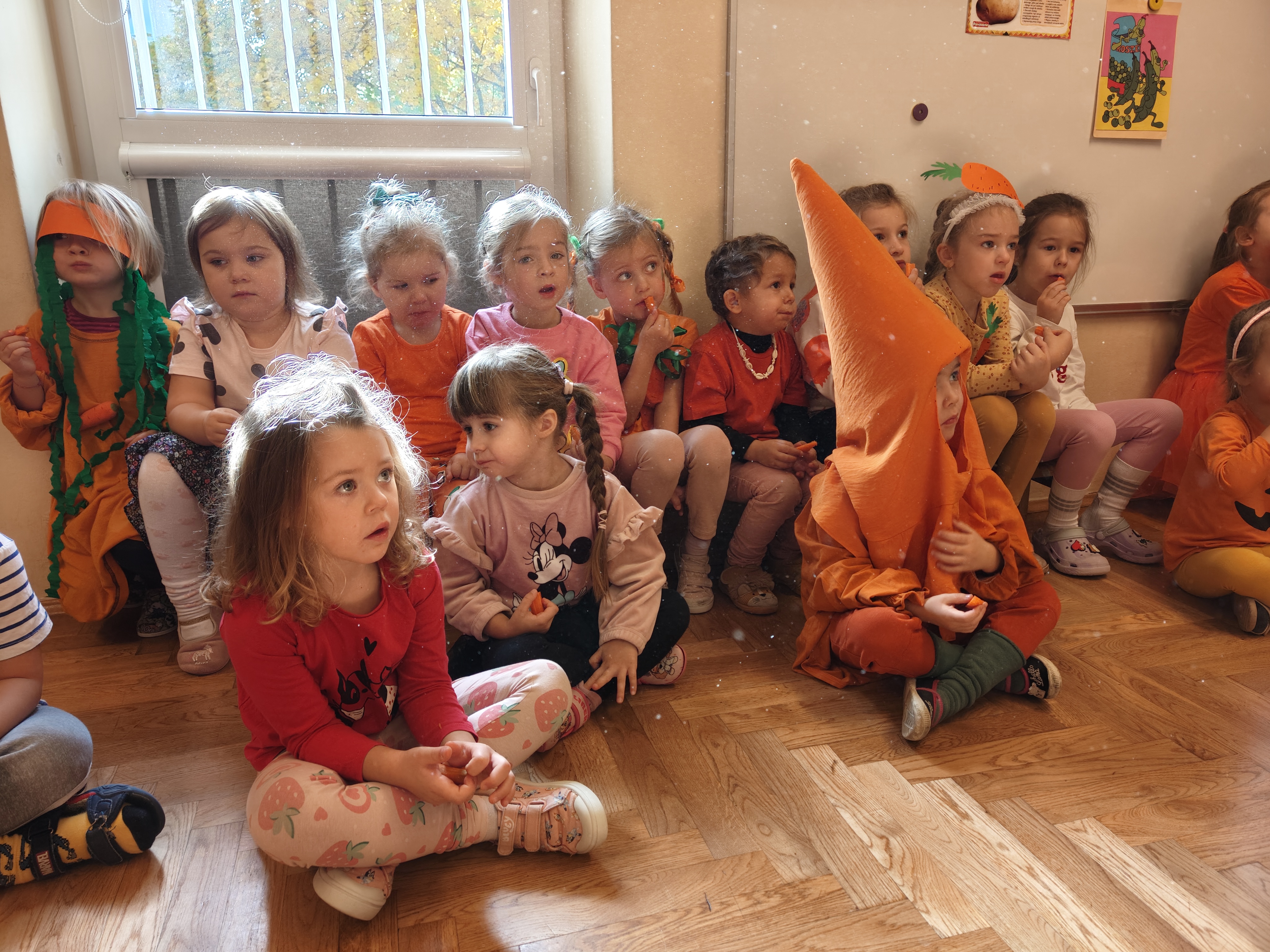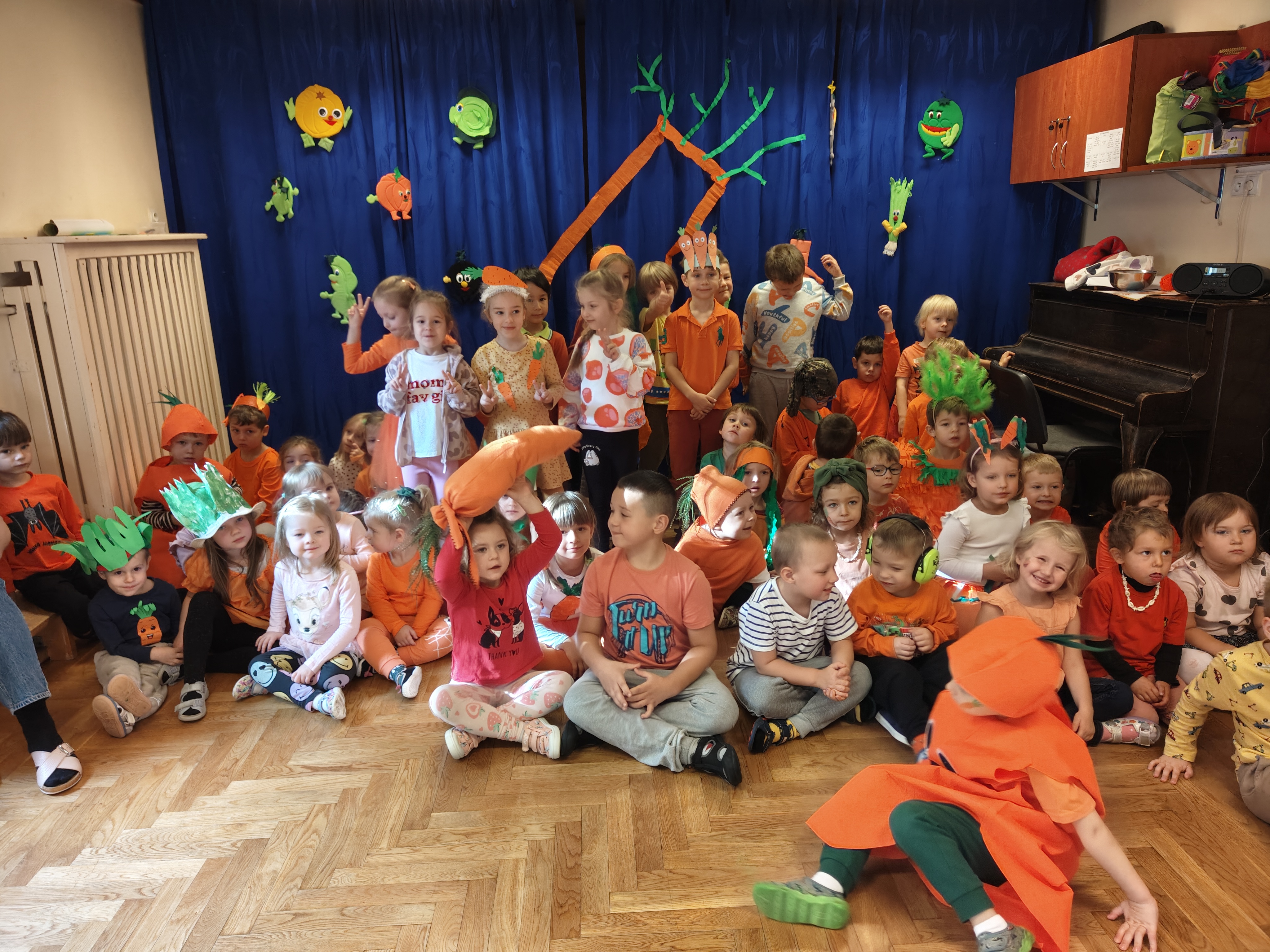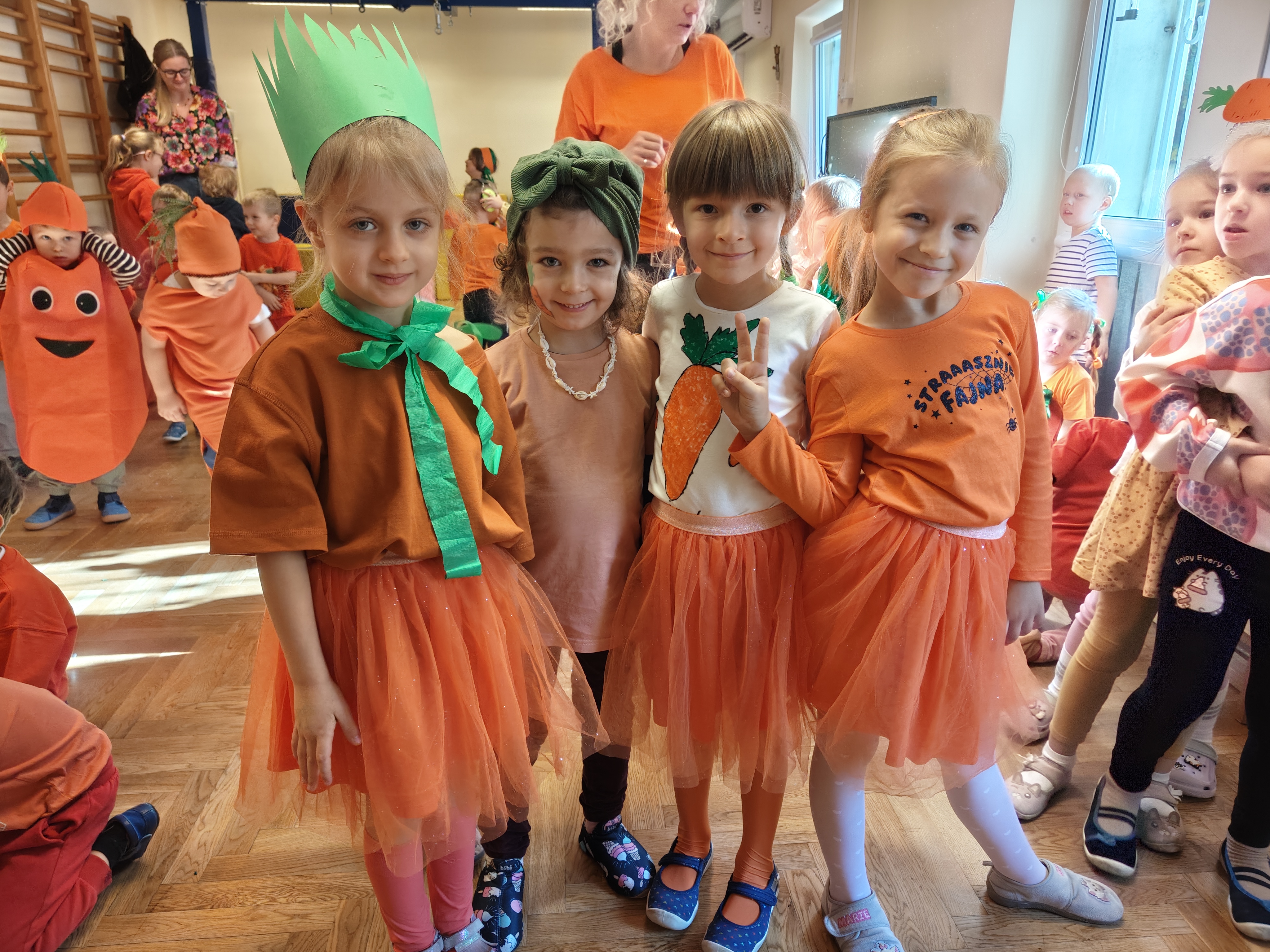 Dzień Marchewki to dobra okazja, żeby dzieci poznały zdrowe właściwości tego warzywa. Dzieci w tym dniu przyszły w przebraniach w kolorze oczywiście pomarańczowym :) i wzięłu udział w różnych grach i zabawach. Dziękujemy Rodzicom za przygotowanie dzieciom wspaniałych strojów!