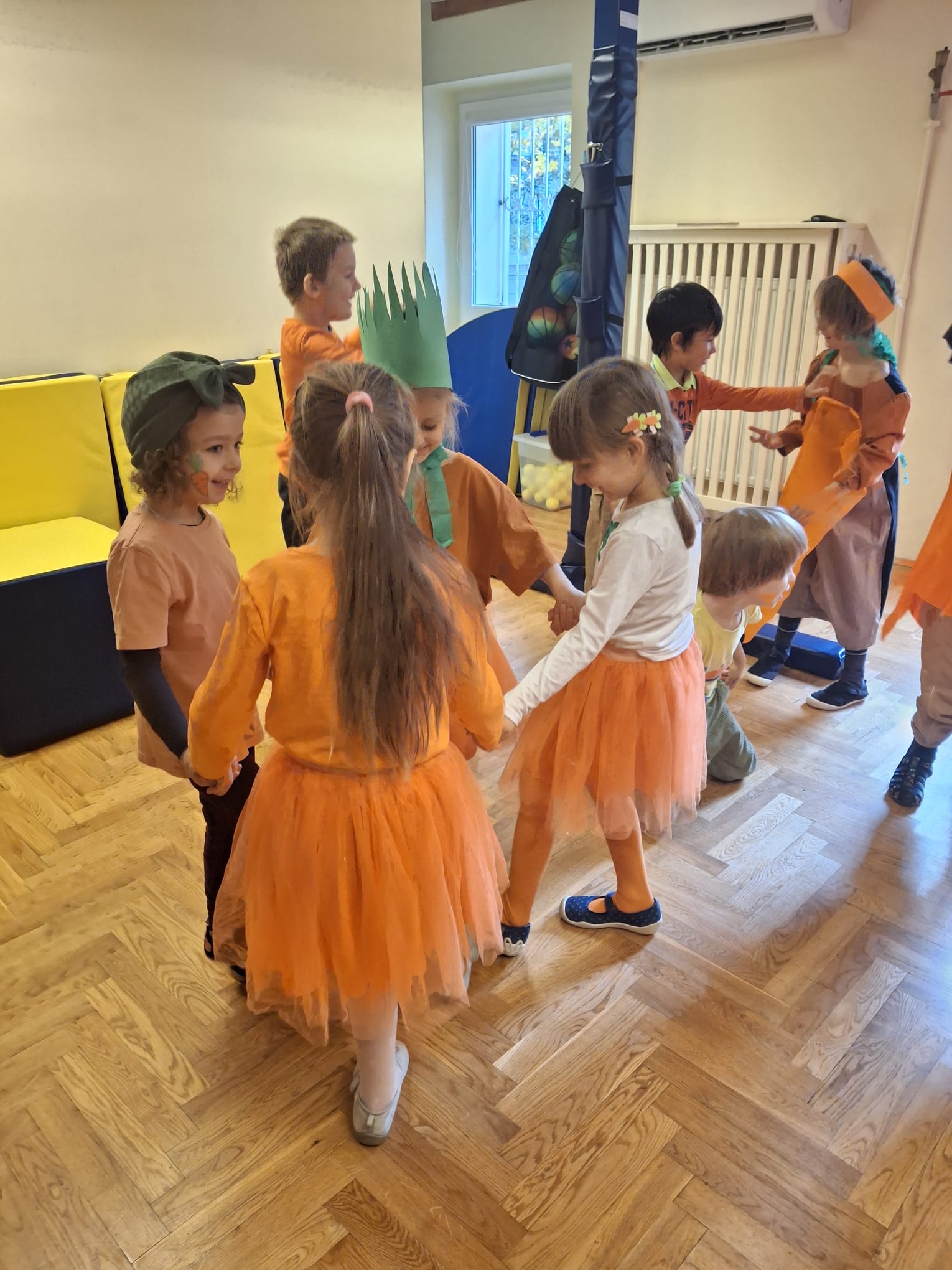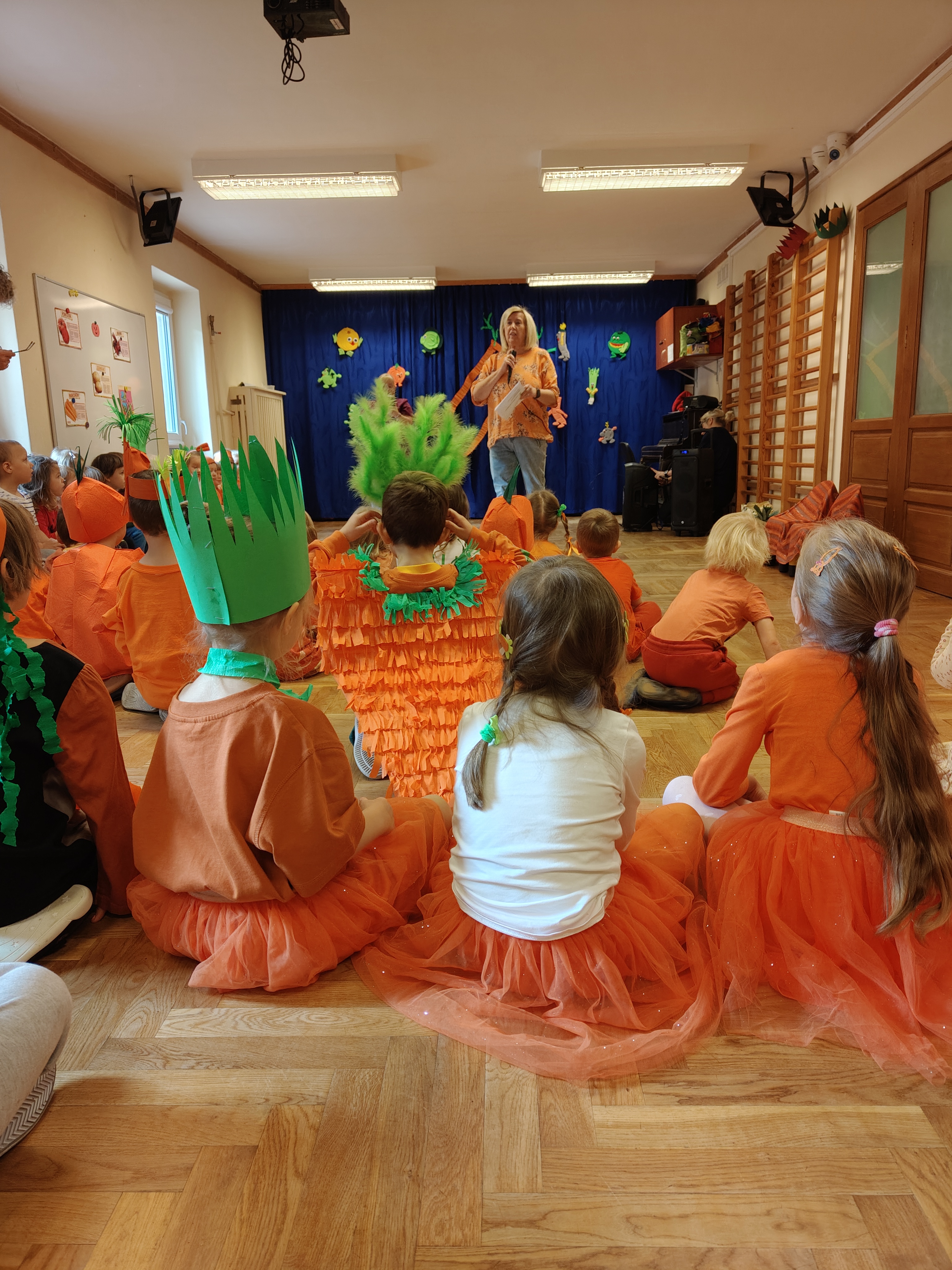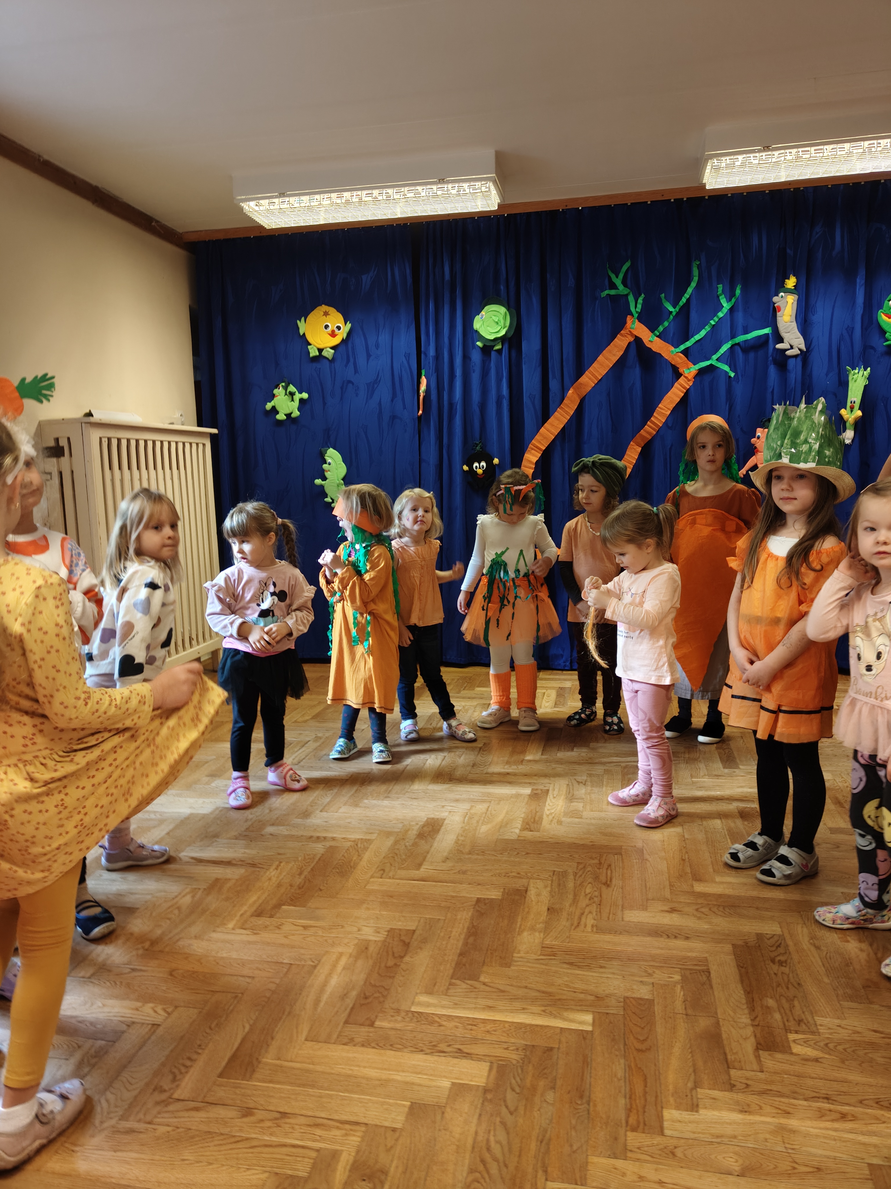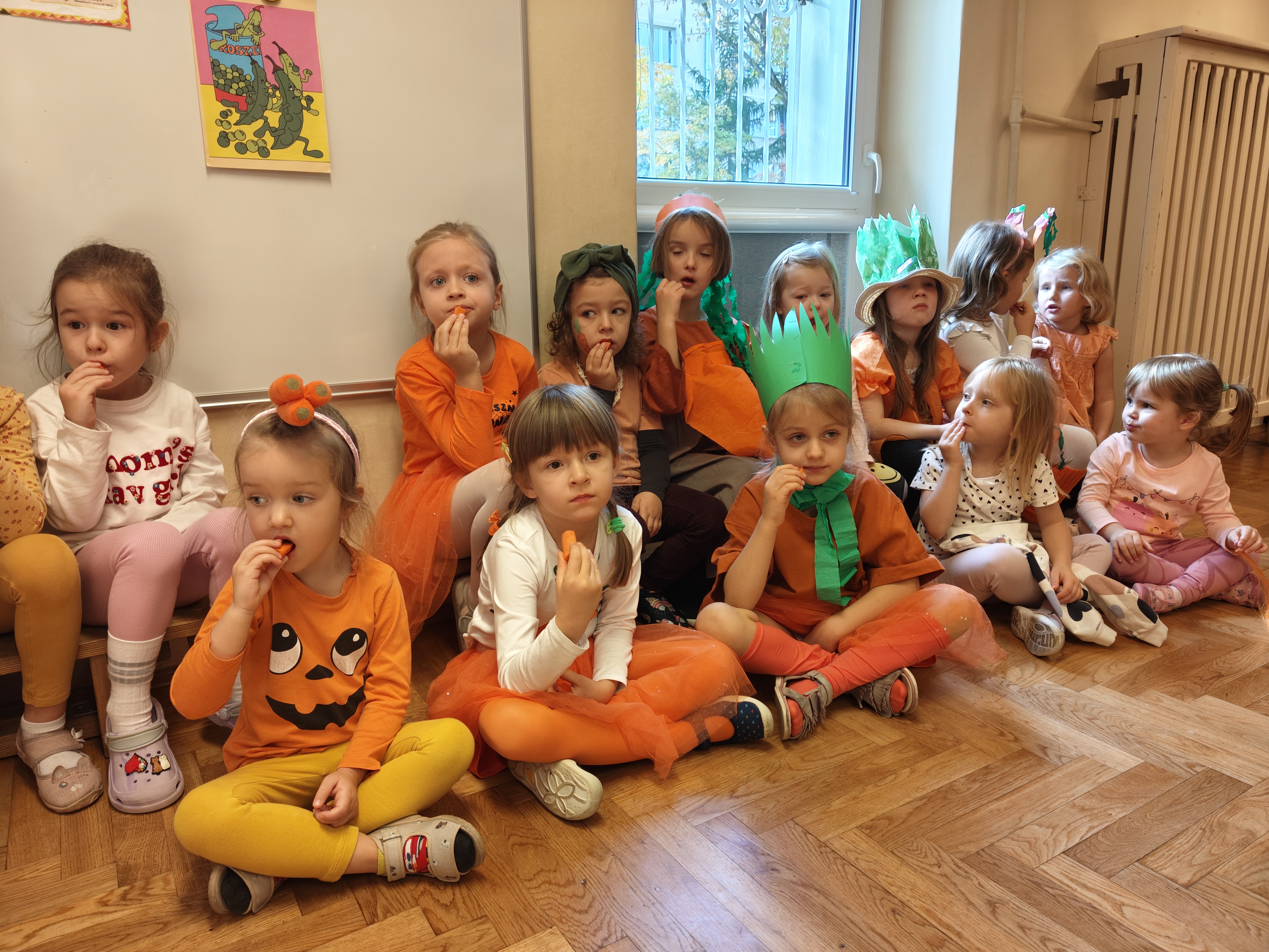 Dzień Marchewki to dobra okazja, żeby dzieci poznały zdrowe właściwości tego warzywa. Dzieci w tym dniu przyszły w przebraniach w kolorze oczywiście pomarańczowym :) i wzięłu udział w różnych grach i zabawach. Dziękujemy Rodzicom za przygotowanie dzieciom wspaniałych strojów!