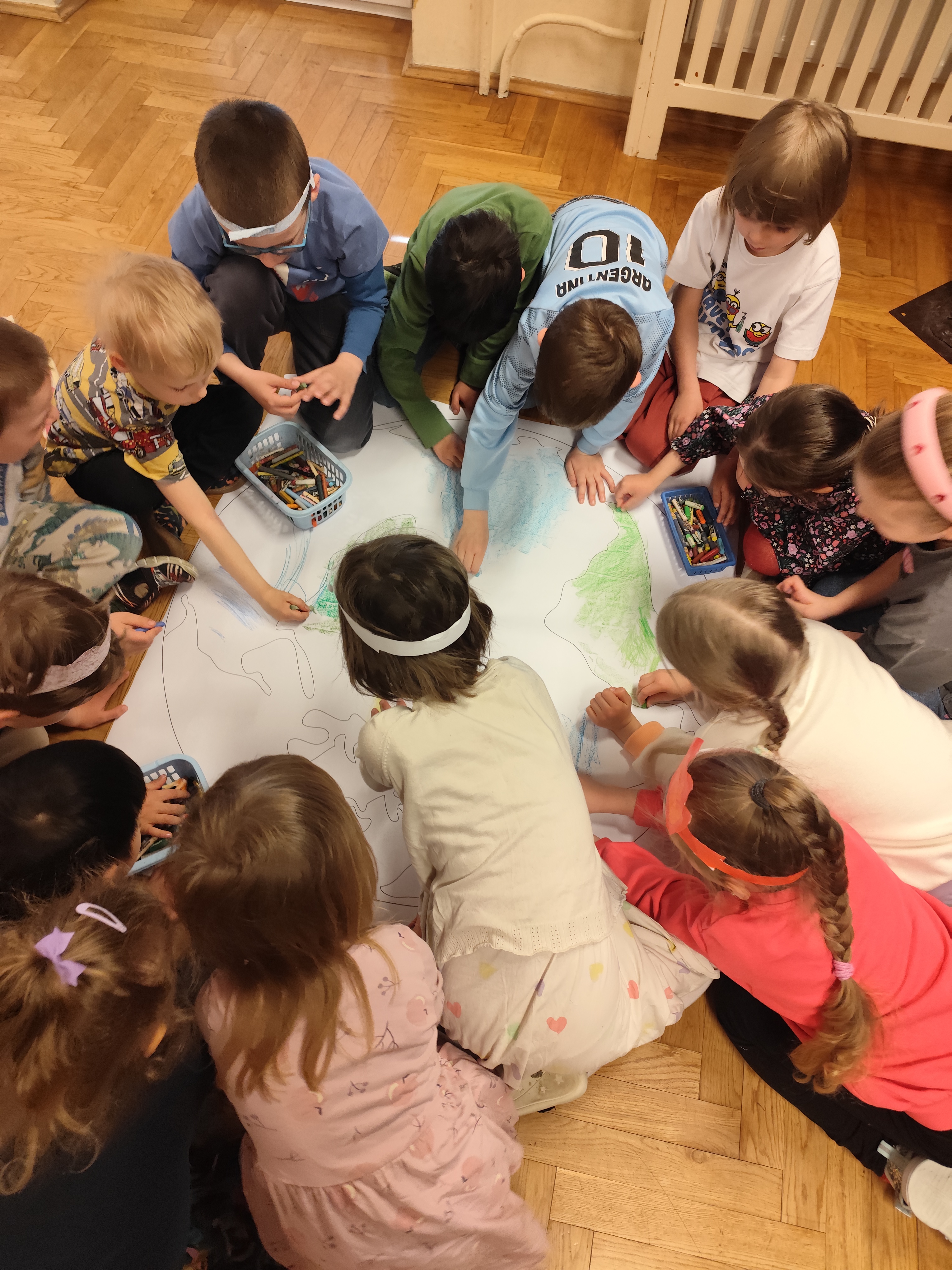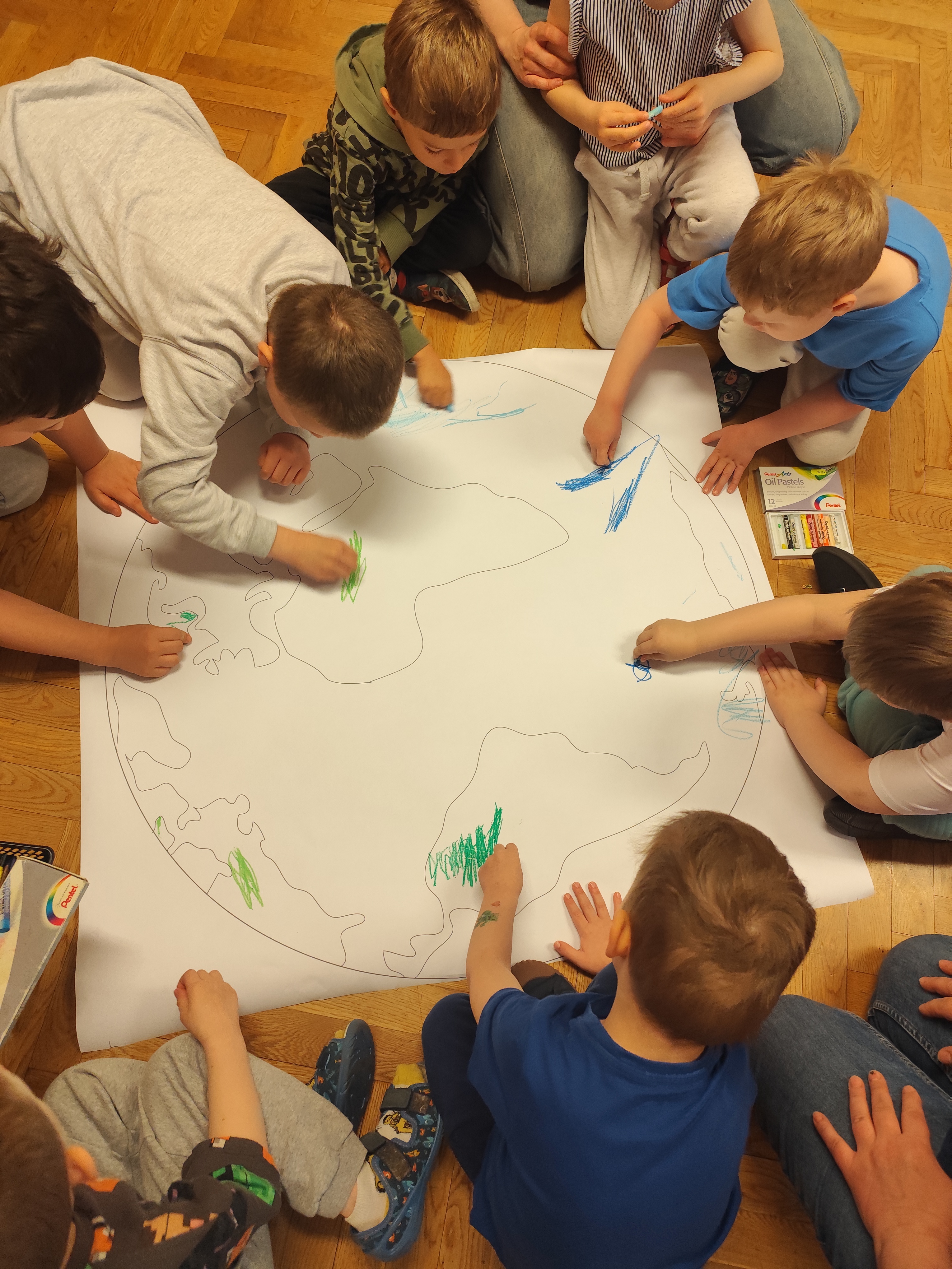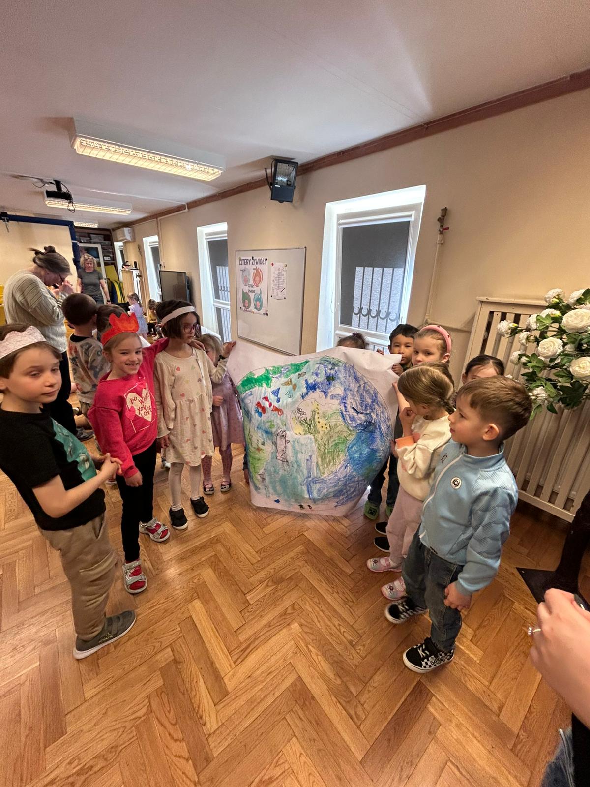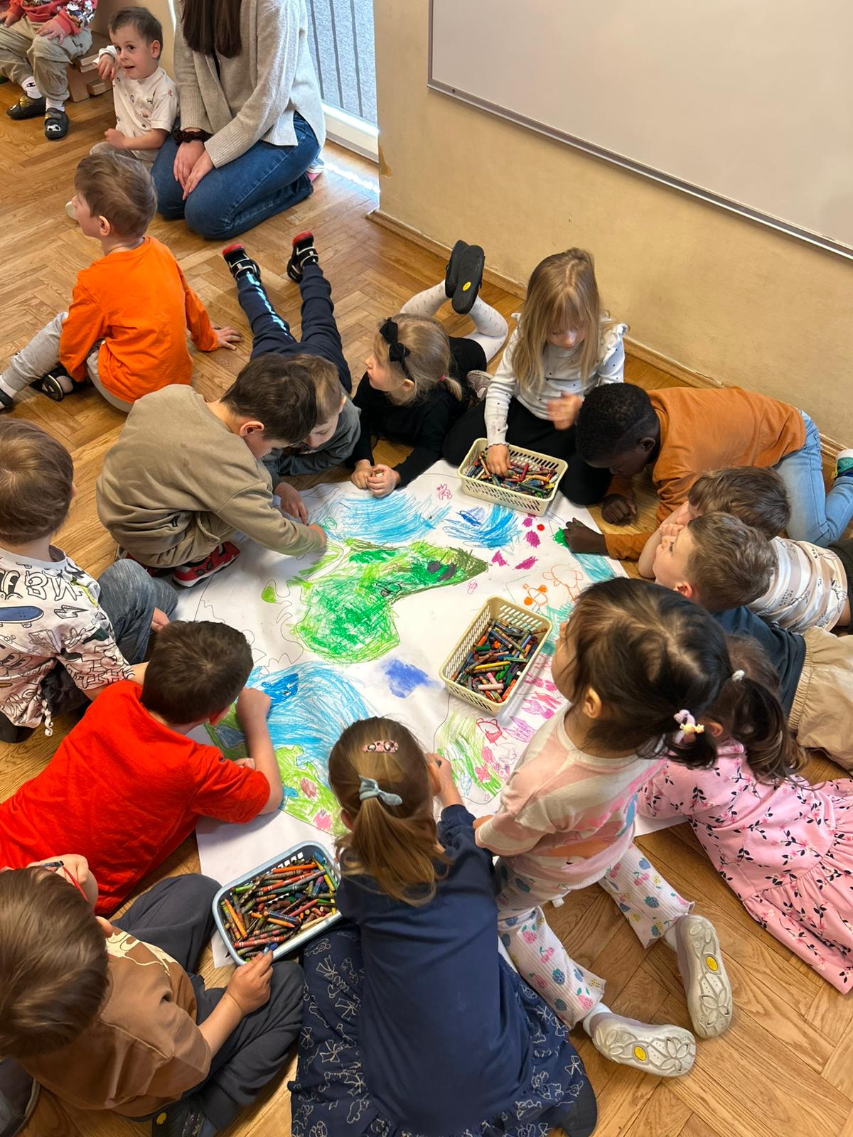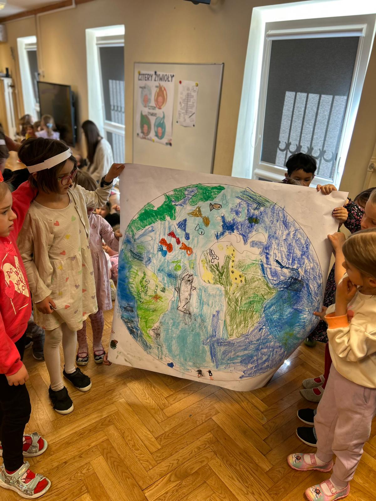 22 kwietnia obchodziliśmy w przedszkolu Dzień Ziemi. Były zagadki, rozmowa na temat dbania o środowisko, poznanie żywiołów oraz piosenka o leśnych duszkach. Na koniec dzieci kolorowały naszą planetę Ziemię!