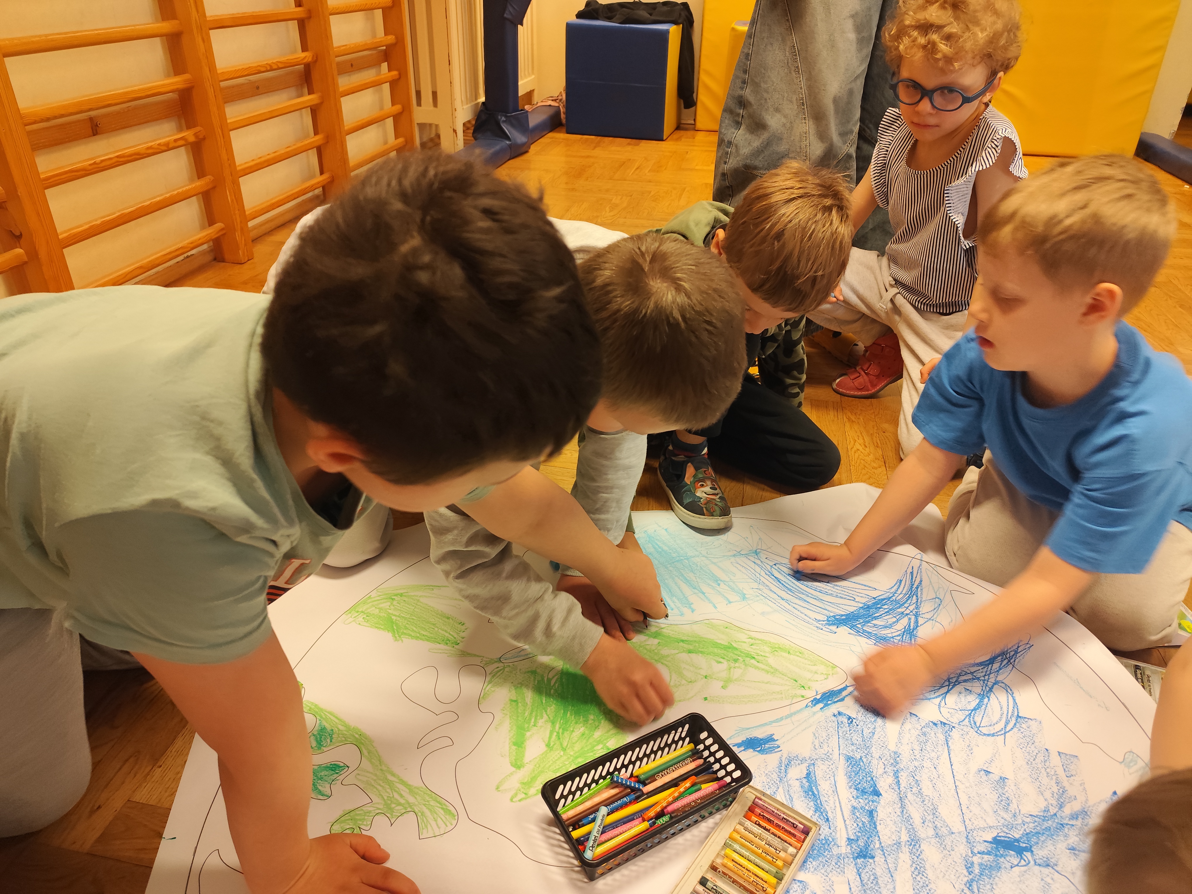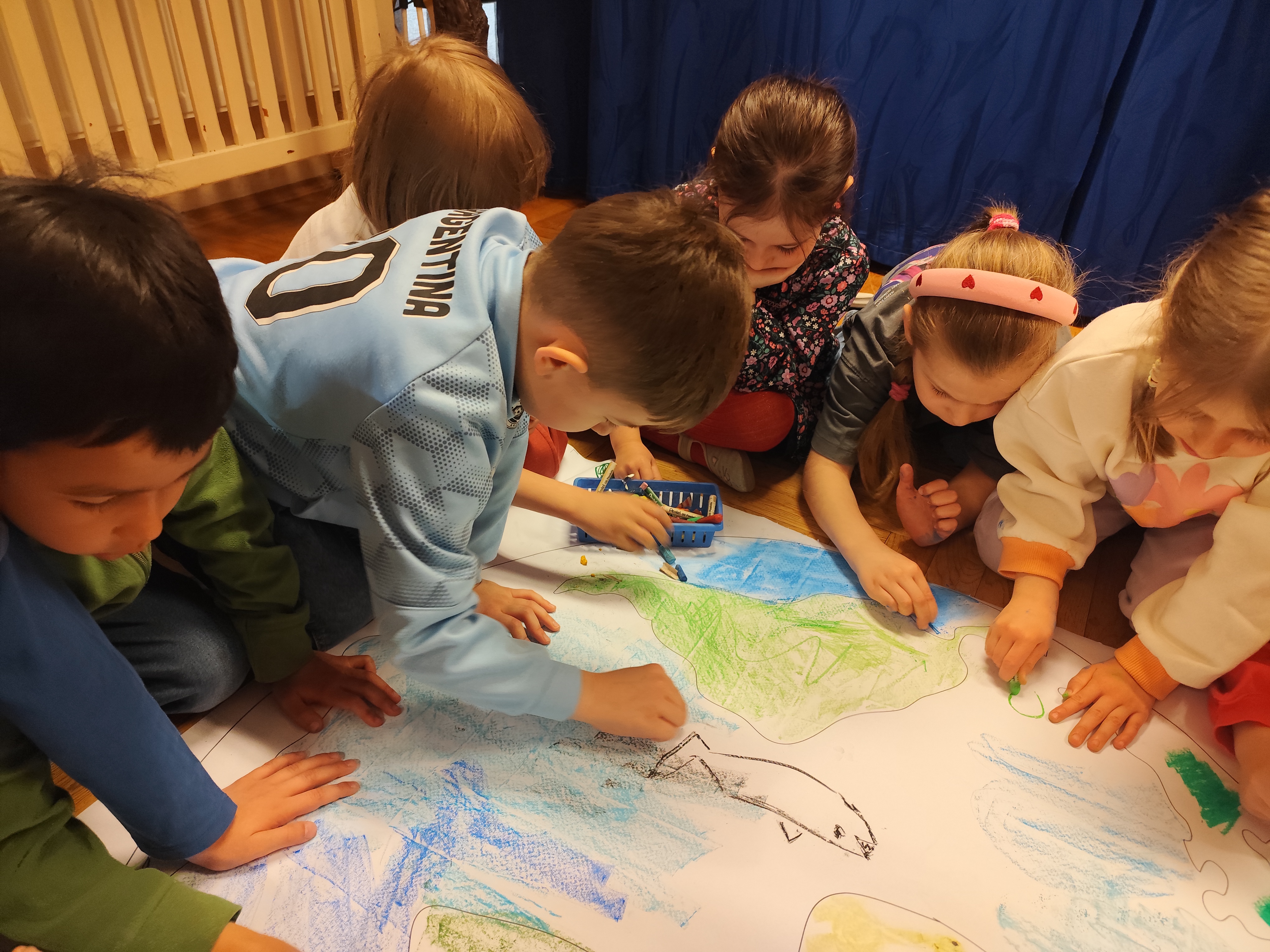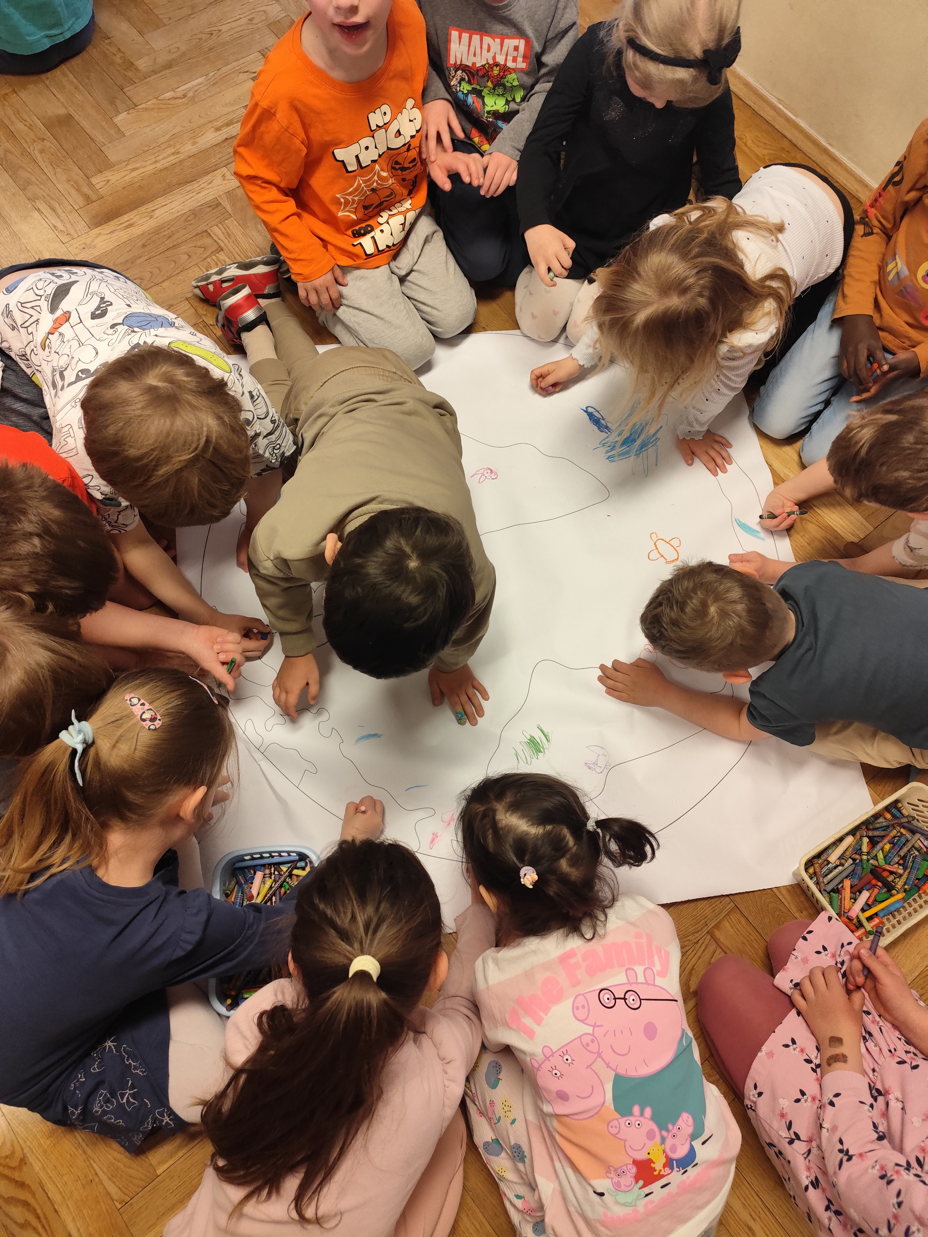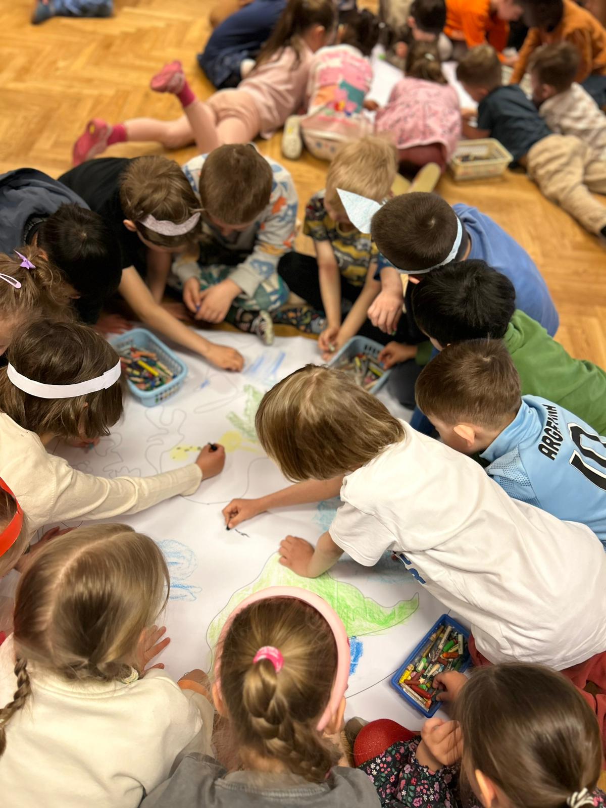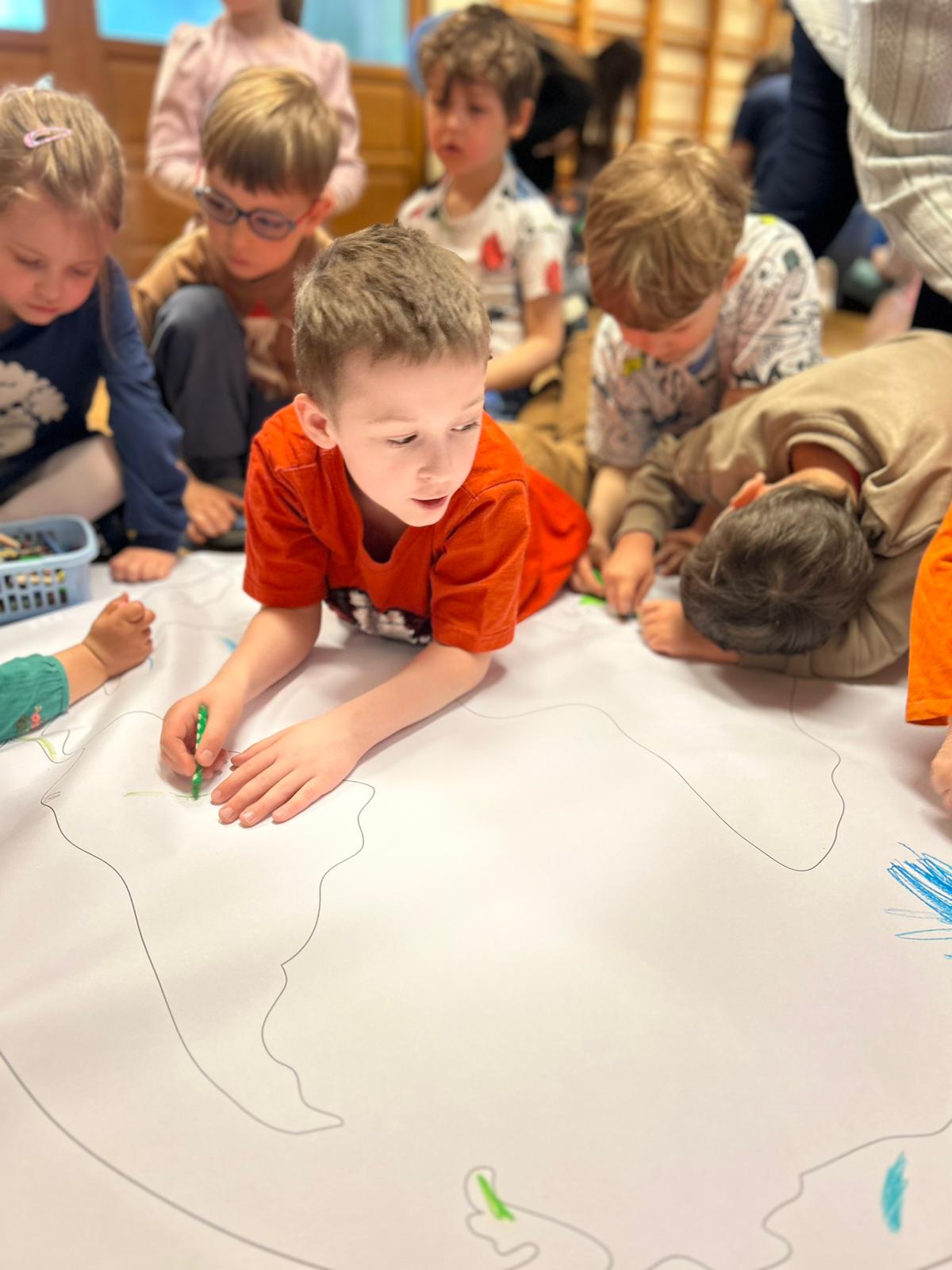 22 kwietnia obchodziliśmy w przedszkolu Dzień Ziemi. Były zagadki, rozmowa na temat dbania o środowisko, poznanie żywiołów oraz piosenka o leśnych duszkach. Na koniec dzieci kolorowały naszą planetę Ziemię!