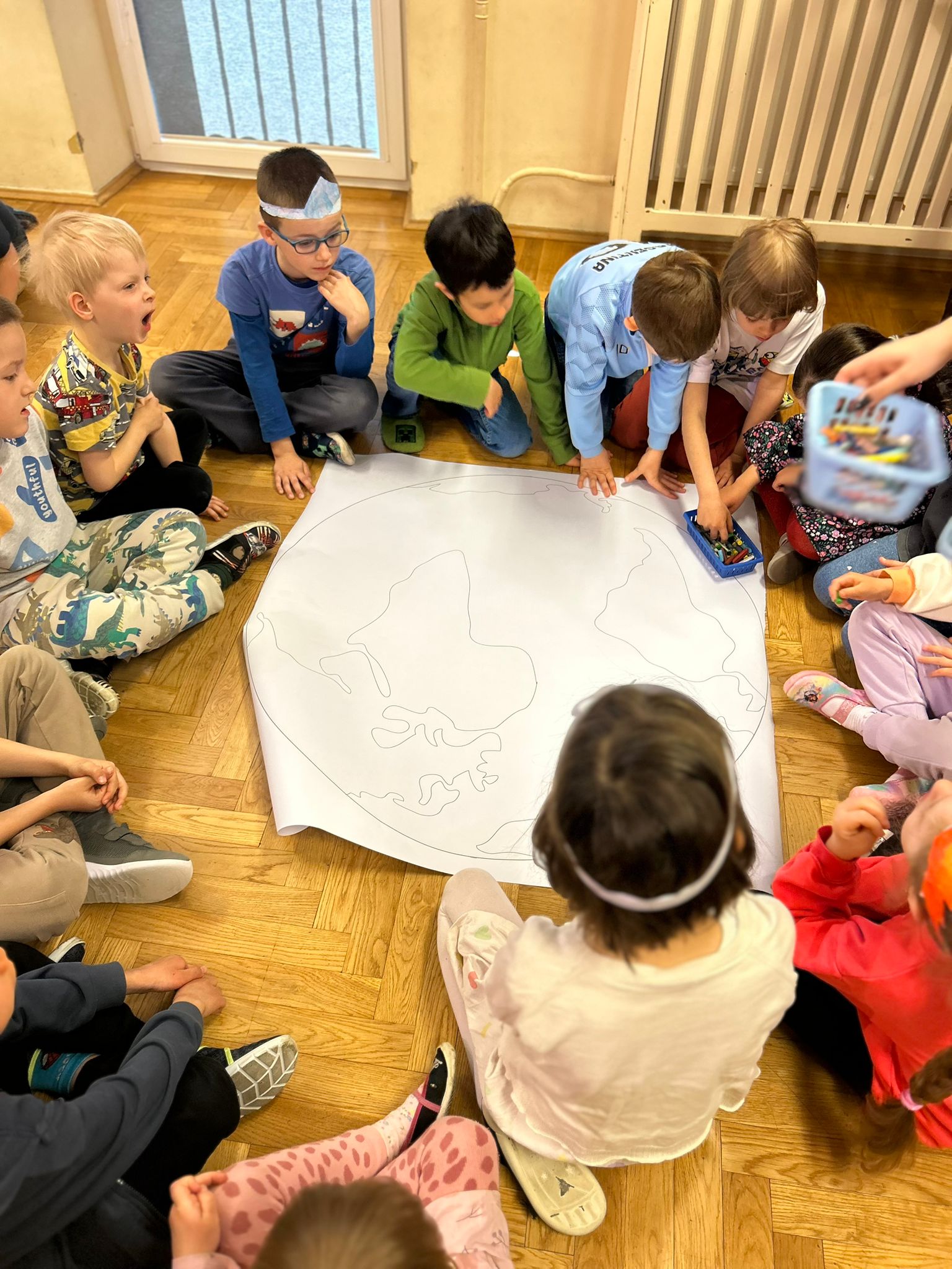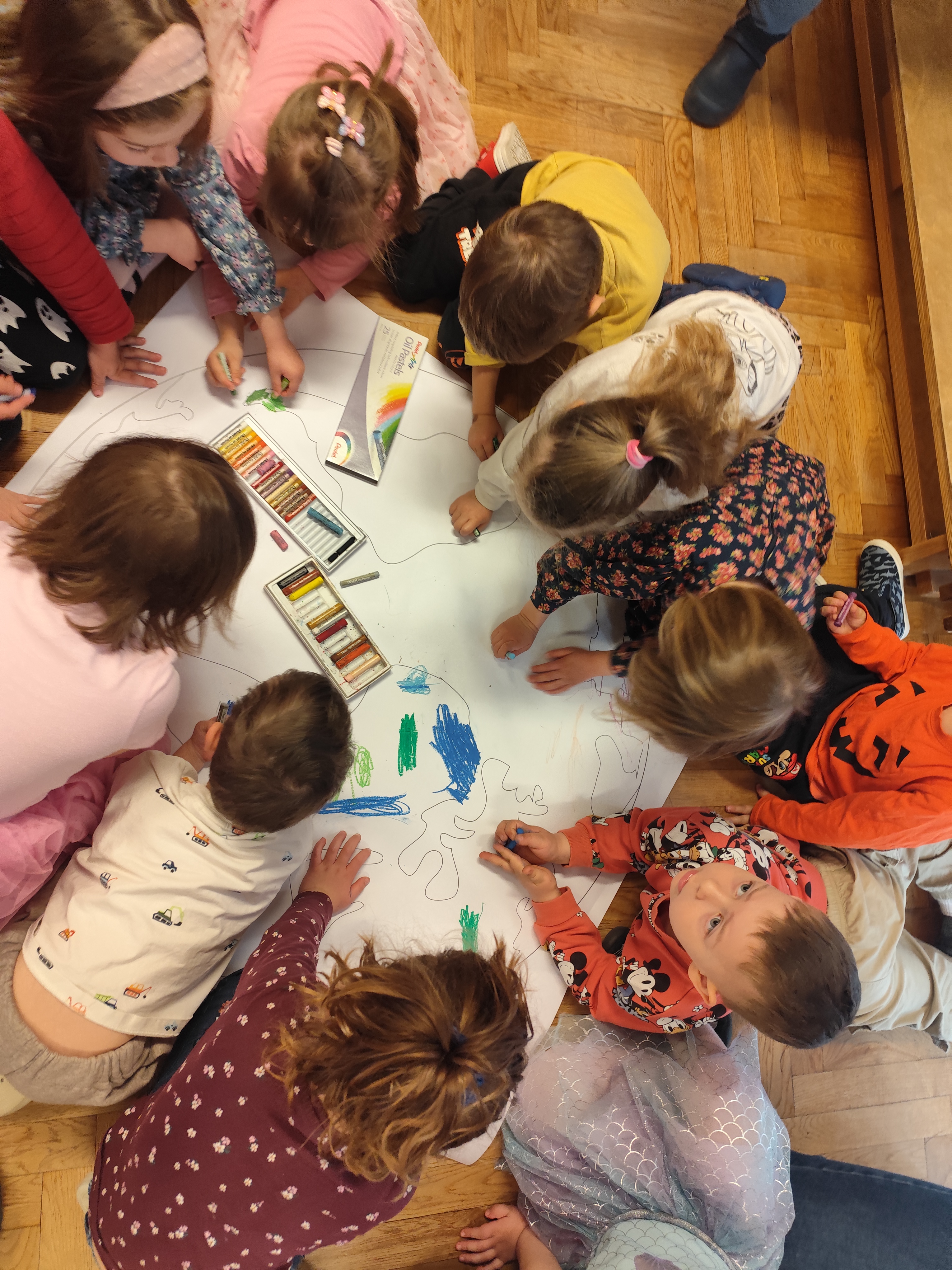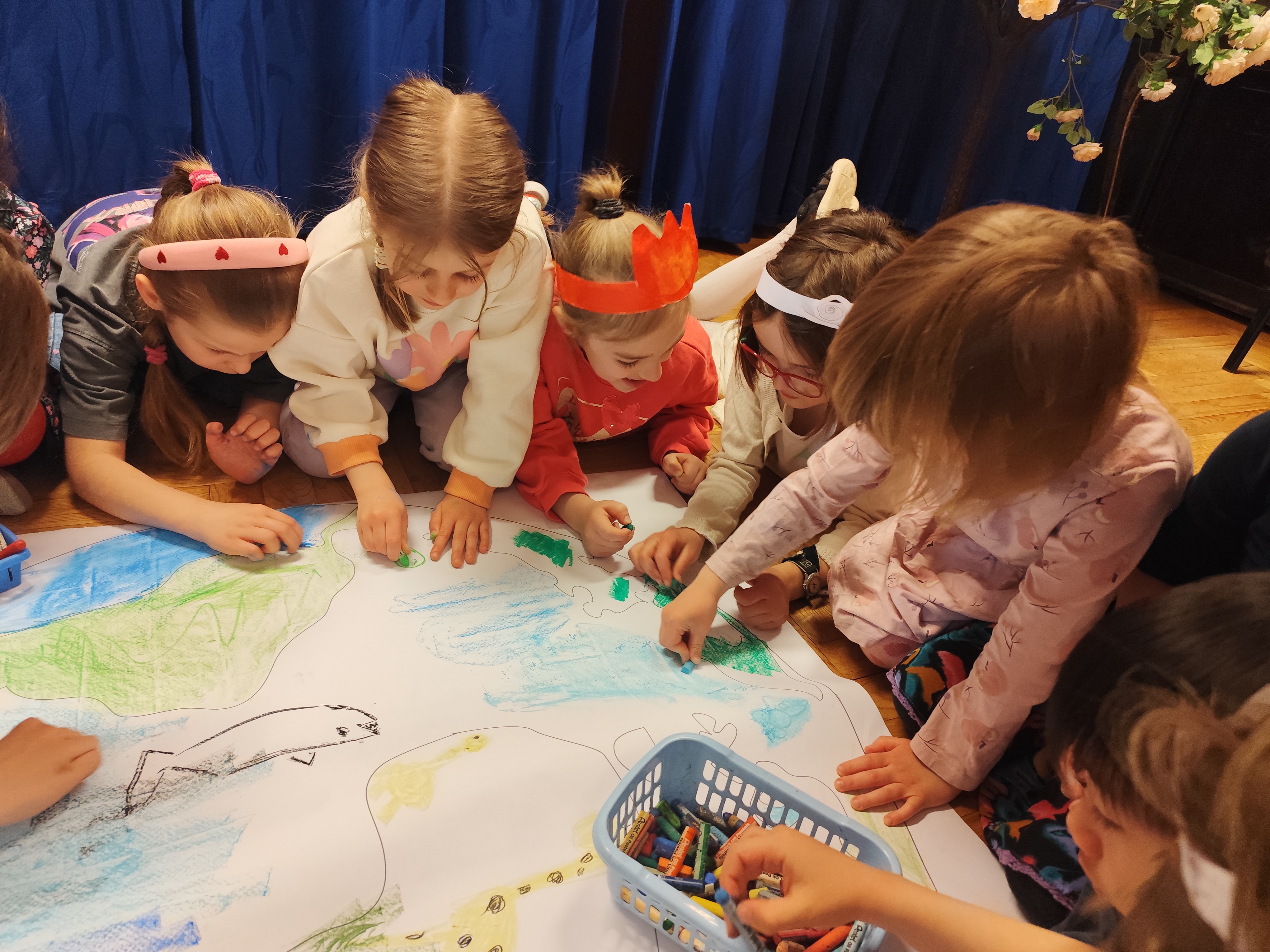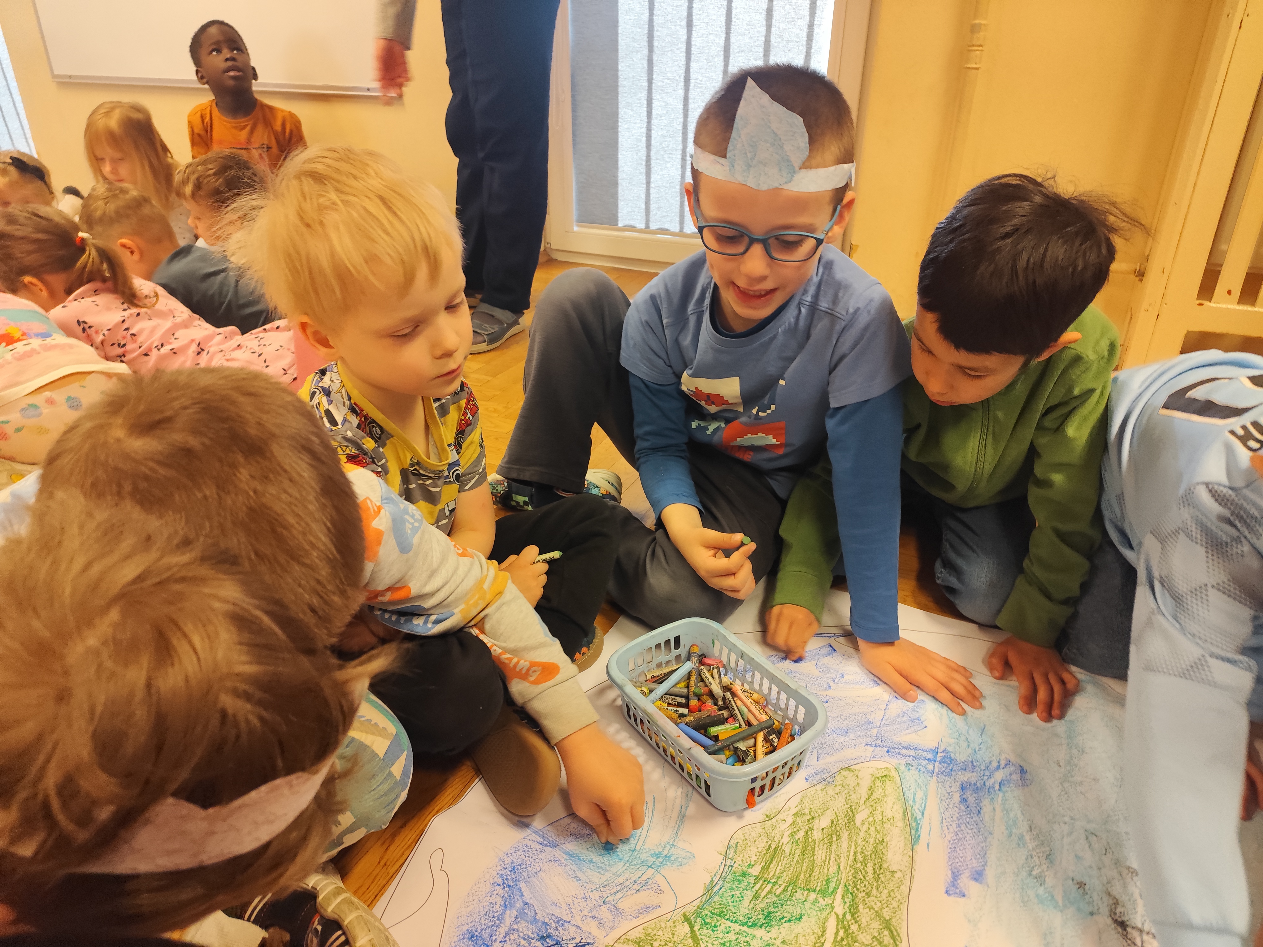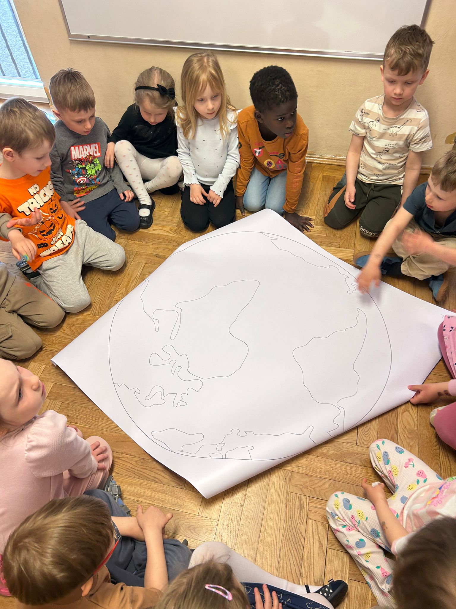 22 kwietnia obchodziliśmy w przedszkolu Dzień Ziemi. Były zagadki, rozmowa na temat dbania o środowisko, poznanie żywiołów oraz piosenka o leśnych duszkach. Na koniec dzieci kolorowały naszą planetę Ziemię!
