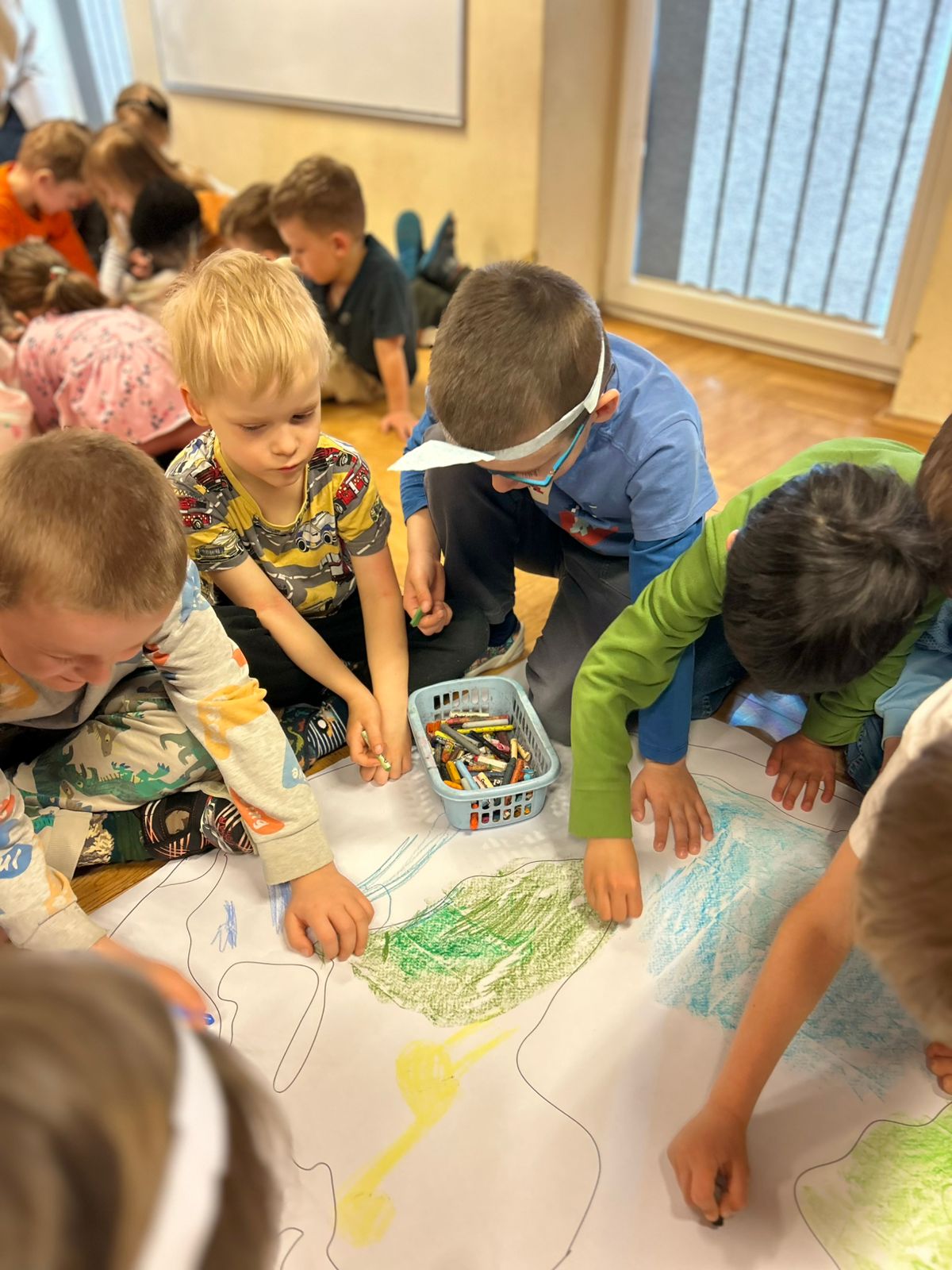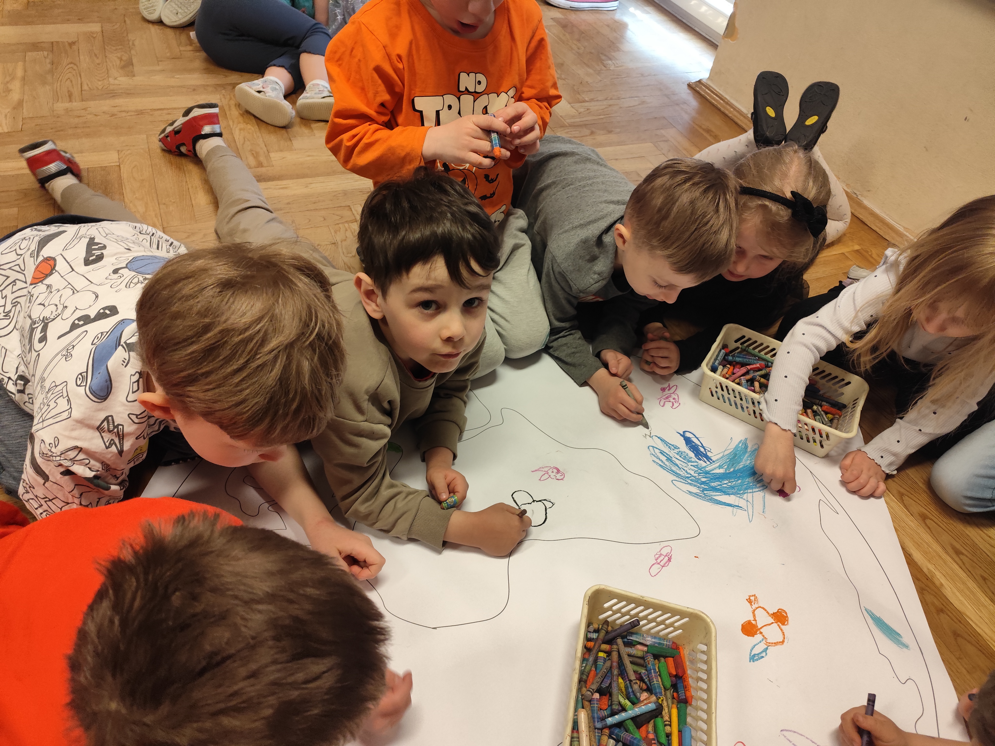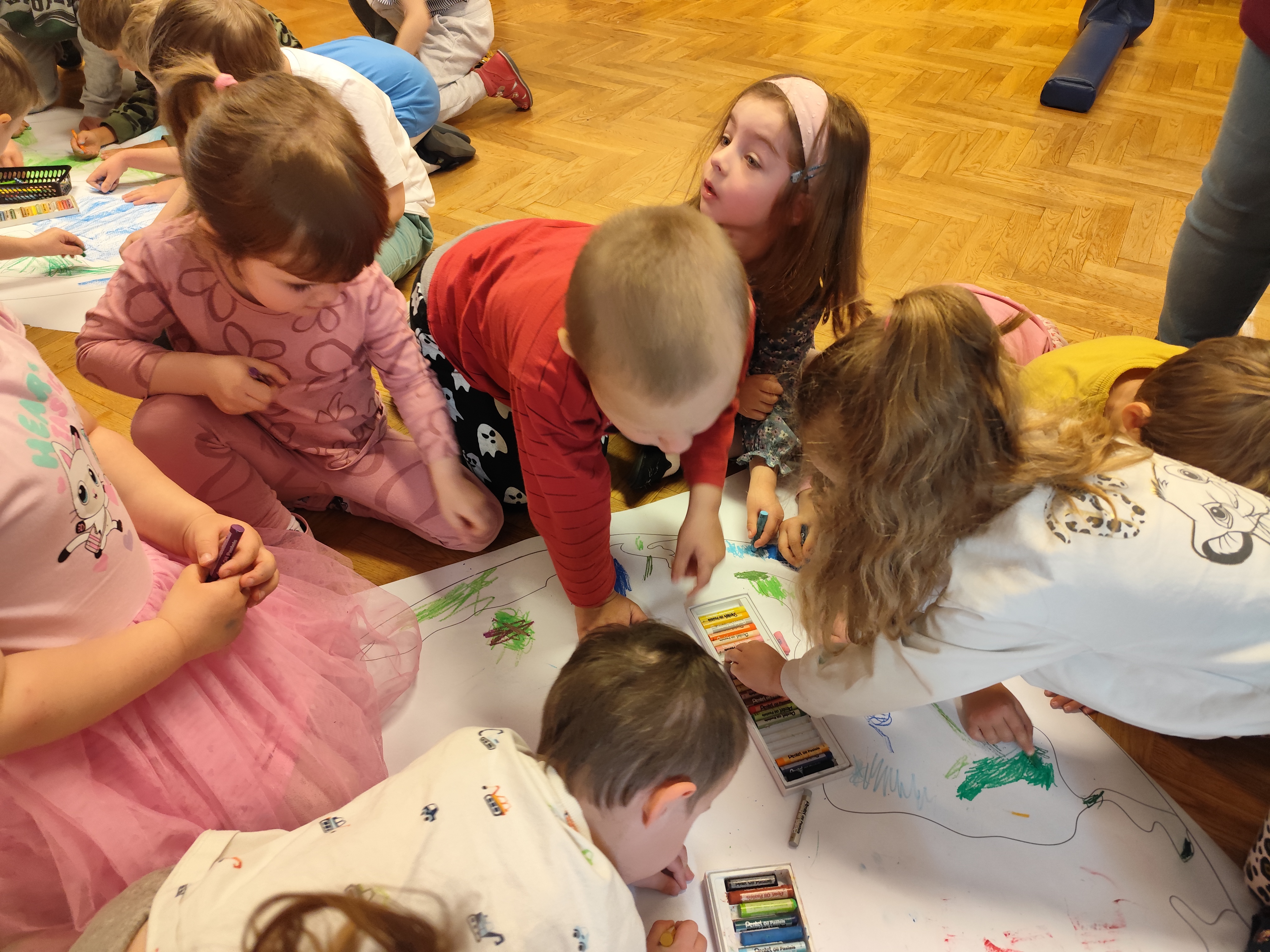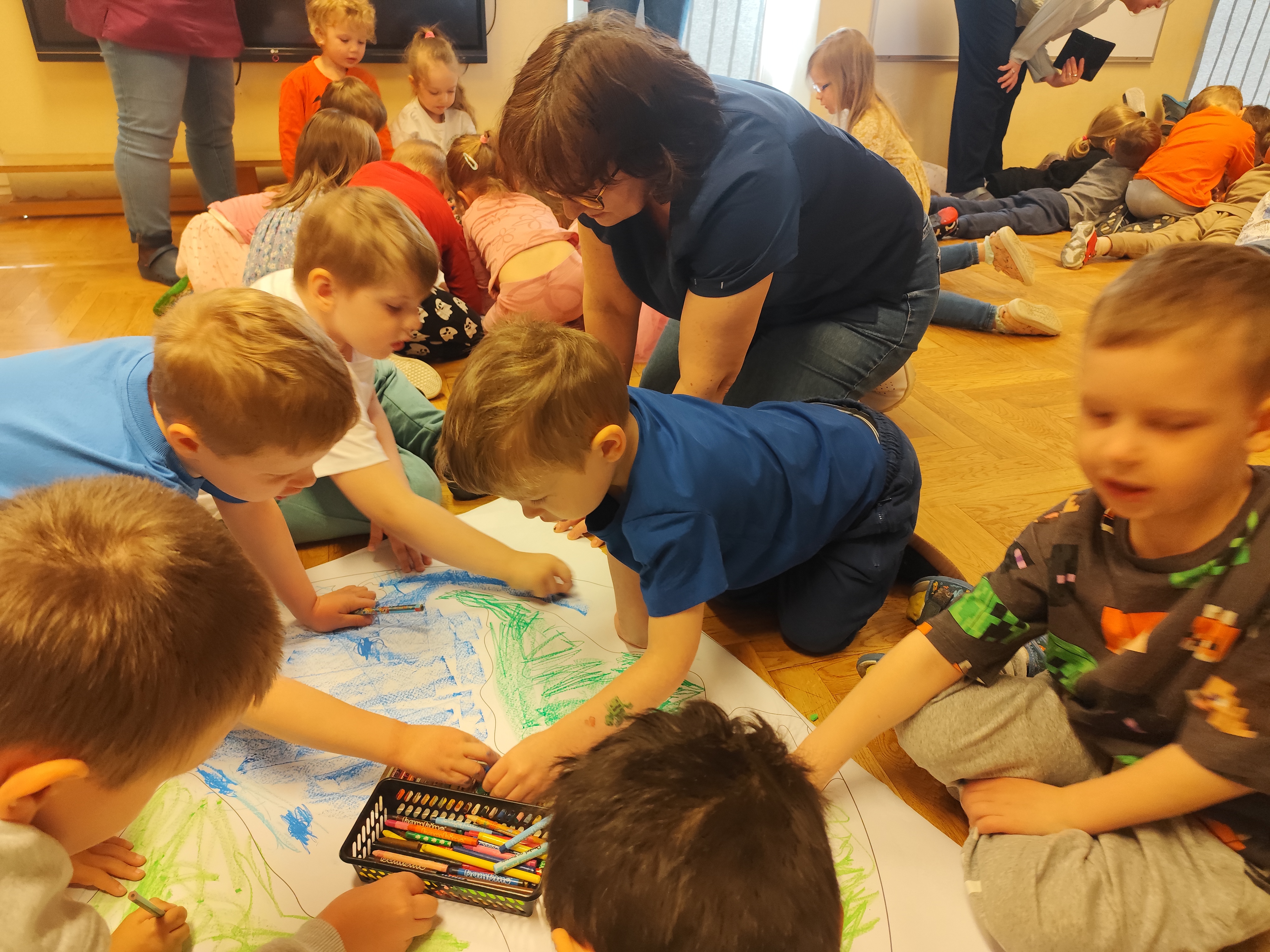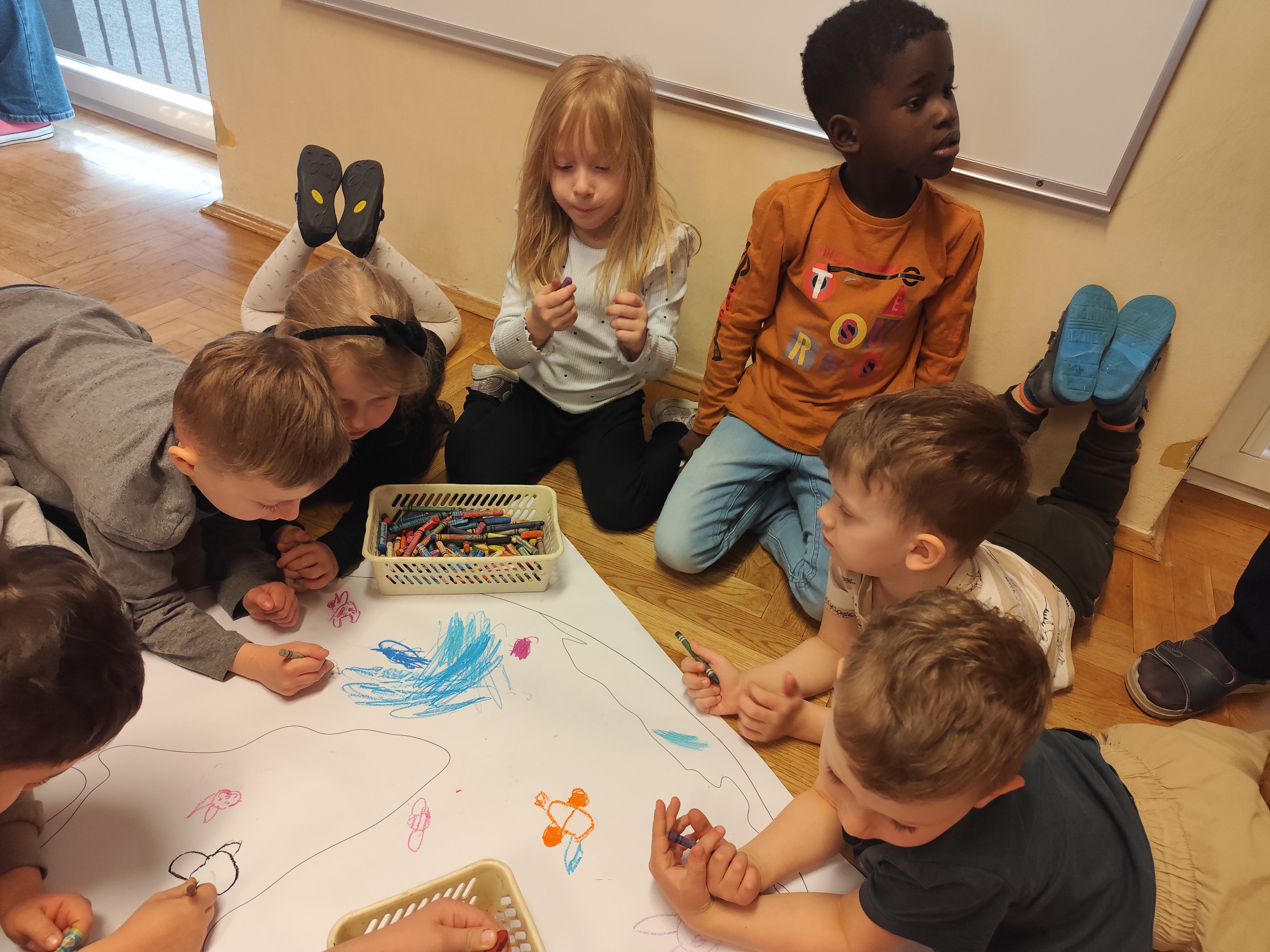22 kwietnia obchodziliśmy w przedszkolu Dzień Ziemi. Były zagadki, rozmowa na temat dbania o środowisko, poznanie żywiołów oraz piosenka o leśnych duszkach. Na koniec dzieci kolorowały naszą planetę Ziemię!