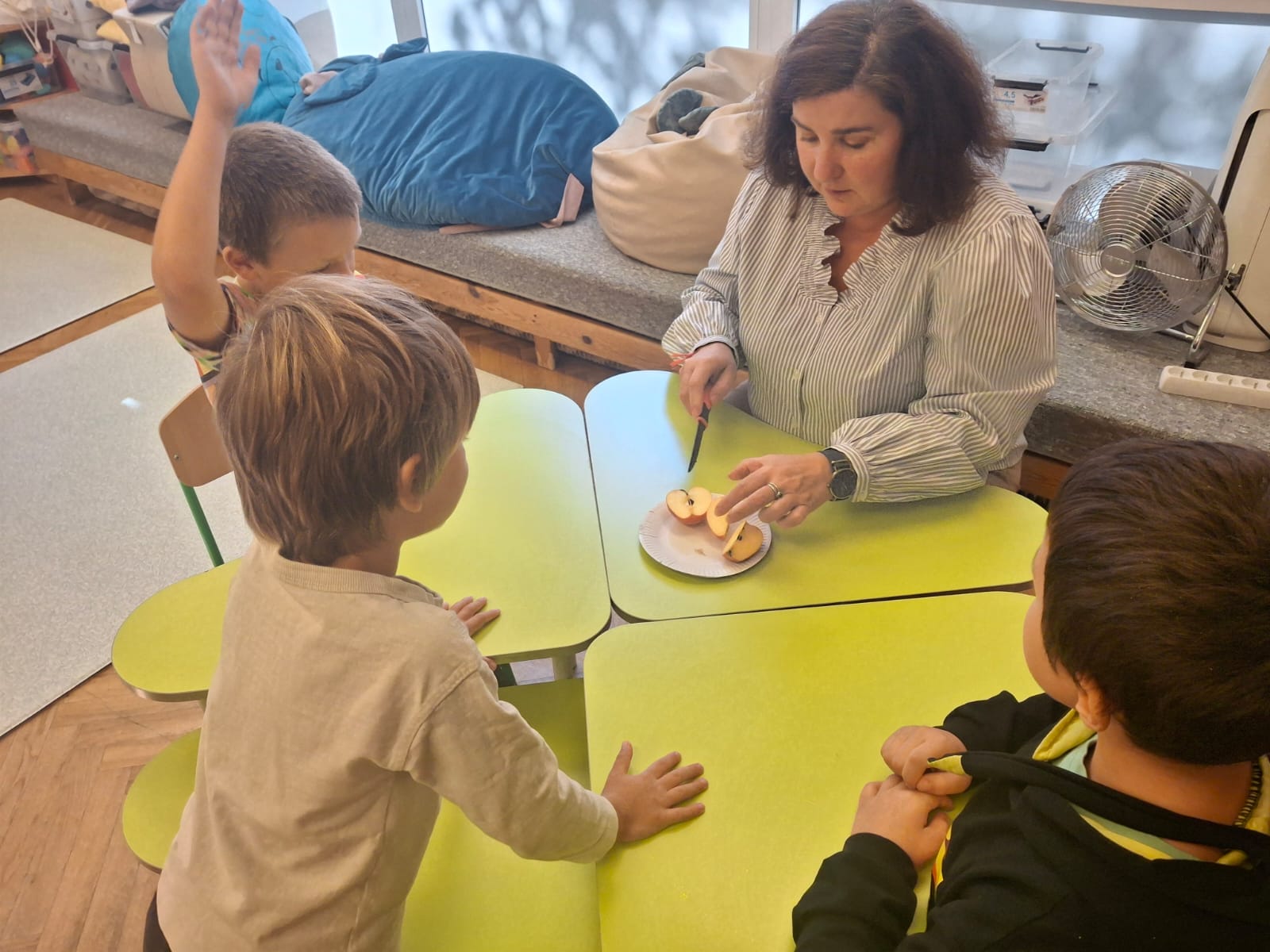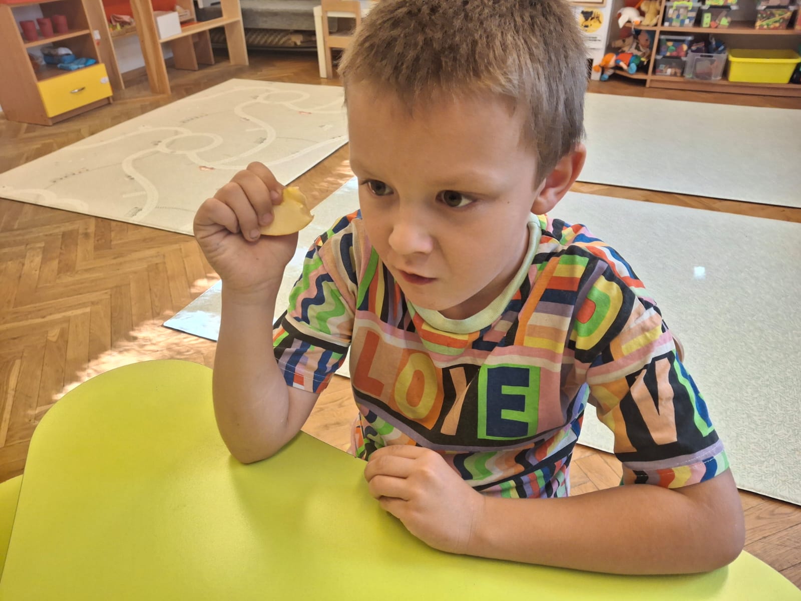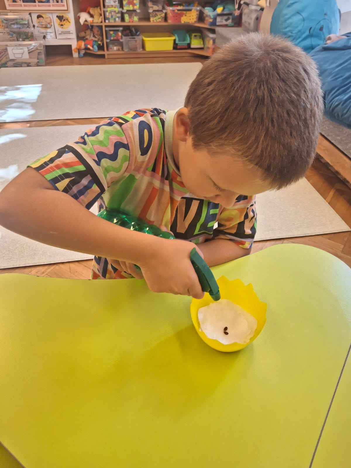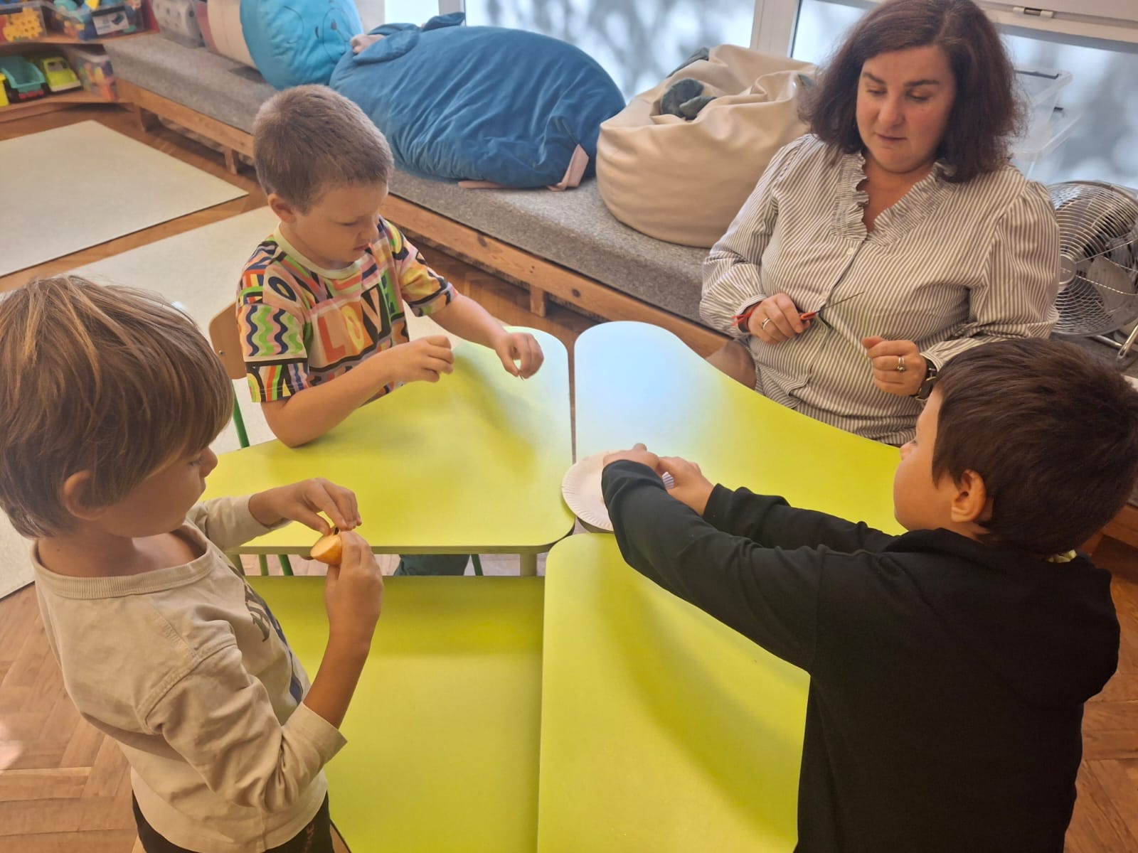 Chłopcy jabłka zjedli ze smakiem, a nasiona postanowili zaopiekować tak by zakiełkowały. Jesteśmy bardzo ciekawi czy eksperyment się powiedzie :)