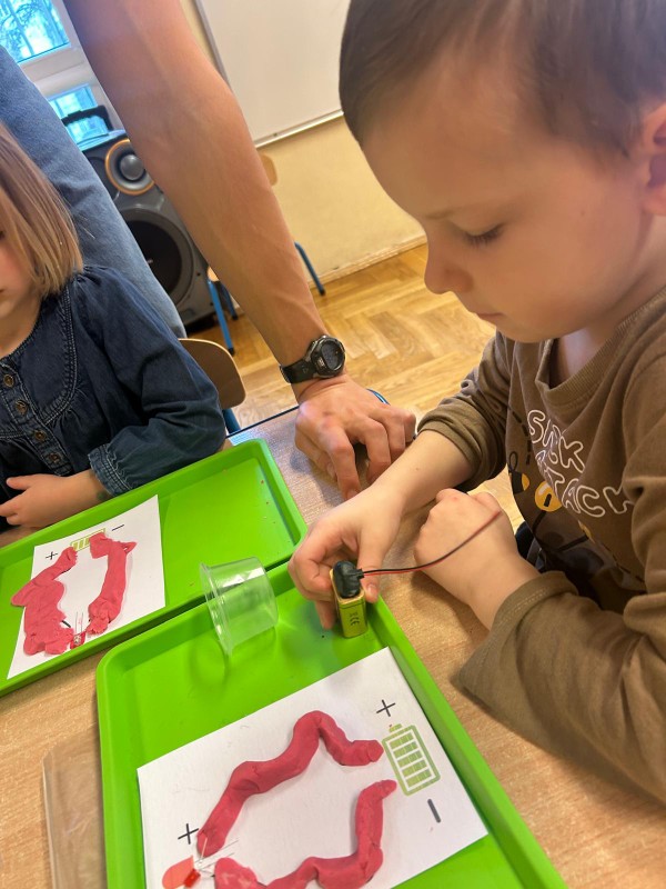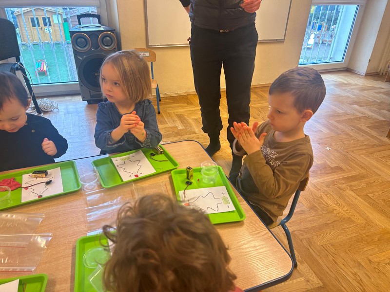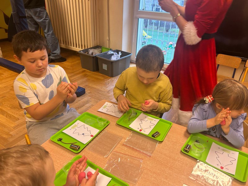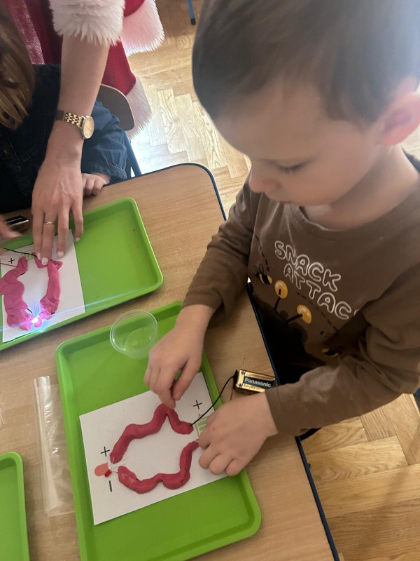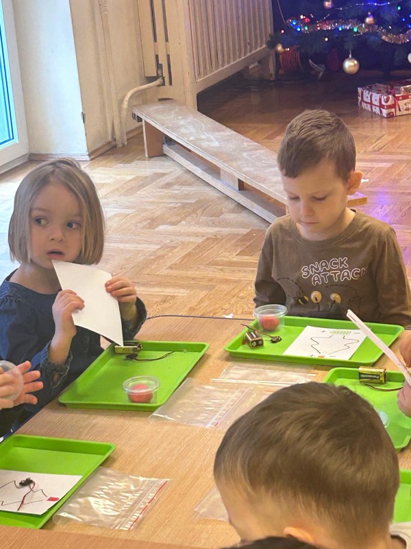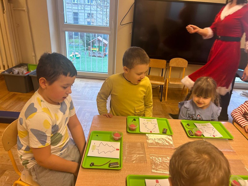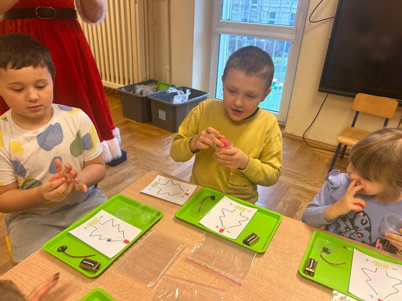 Podczas wspólnego eksperymentowania dzieci odkrywały tajniki elektryczności, która okazała się magiczna jak świąteczne światełka. Dzieci poznały podstawy elektryczności i przekonały się, że prąd to nie tylko kable i baterie, ale także świetna zabawa.