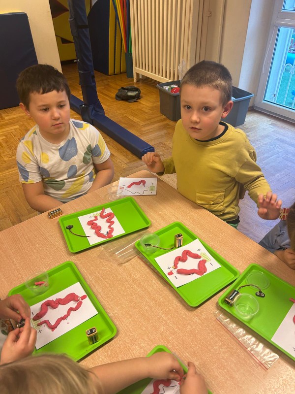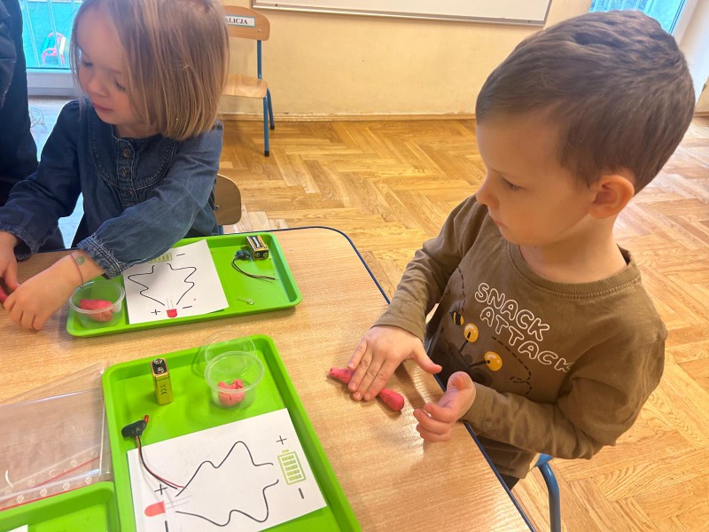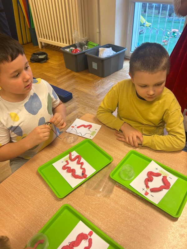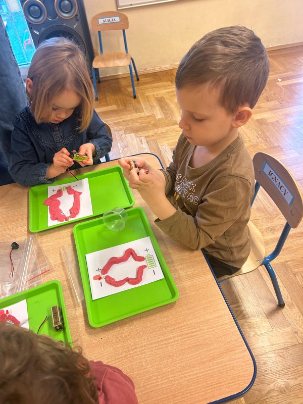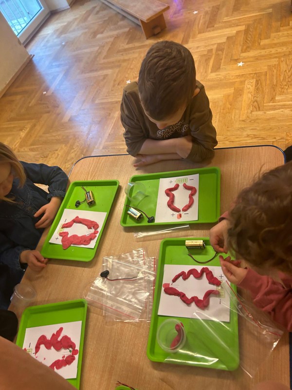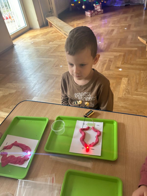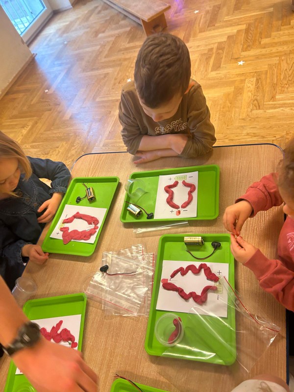 Podczas wspólnego eksperymentowania dzieci odkrywały tajniki elektryczności, która okazała się magiczna jak świąteczne światełka. Dzieci poznały podstawy elektryczności i przekonały się, że prąd to nie tylko kable i baterie, ale także świetna zabawa.