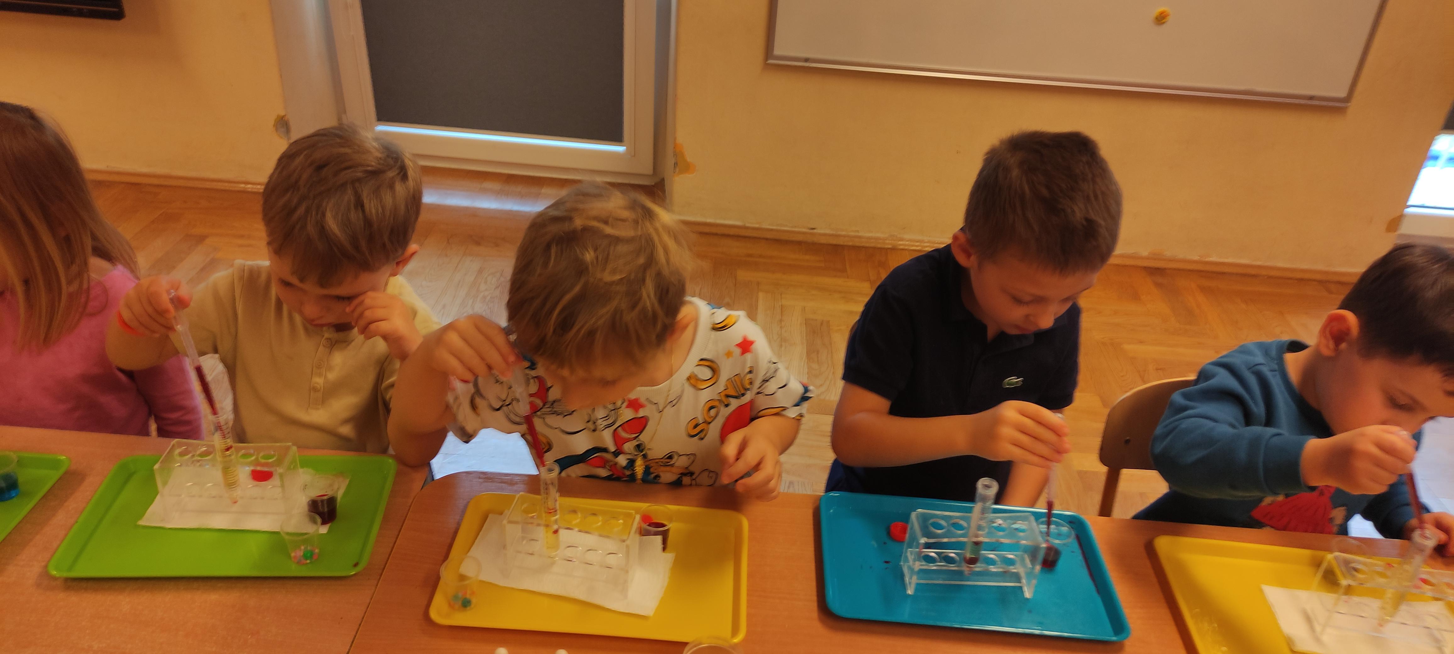Podczas warsztatów zatytułowanych " Sekrety gęstości" dzieci poznały różne kolorowe płyny, niezwykłe warstwy i odkrywały, dlaczego jedne ciecze toną, a inne unoszą się na powierzchni. Nauka jeszcze nigdy nie była tak kolorowa!