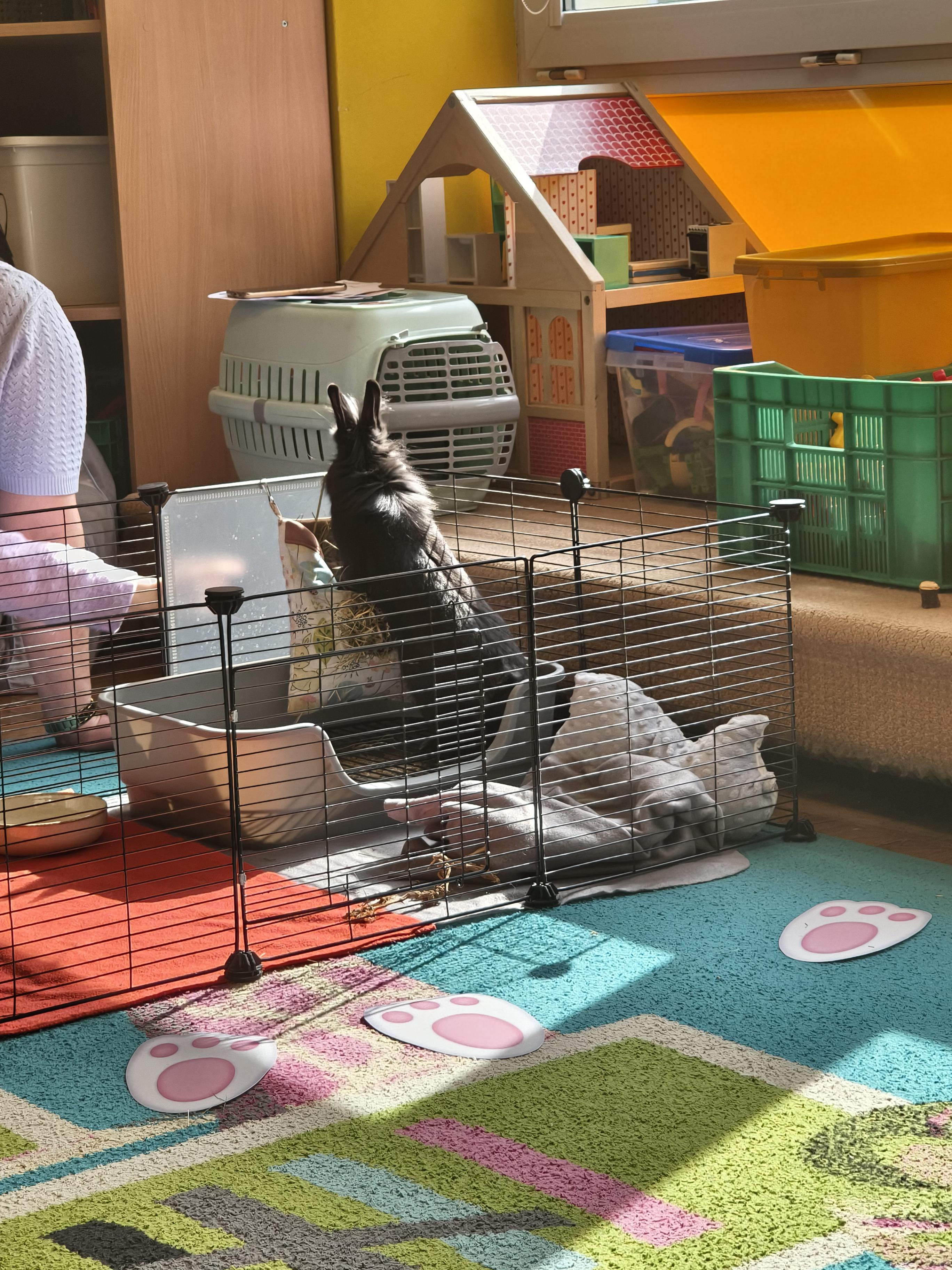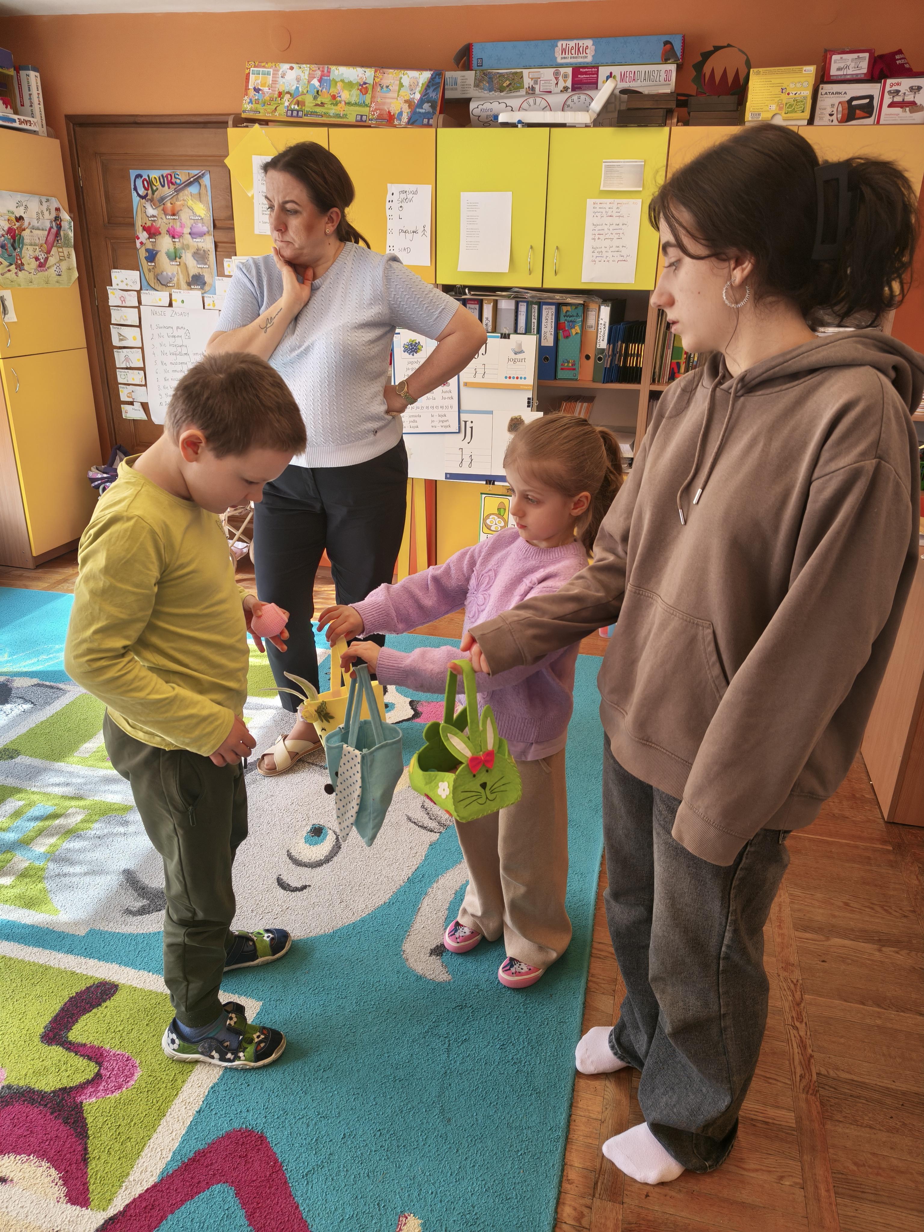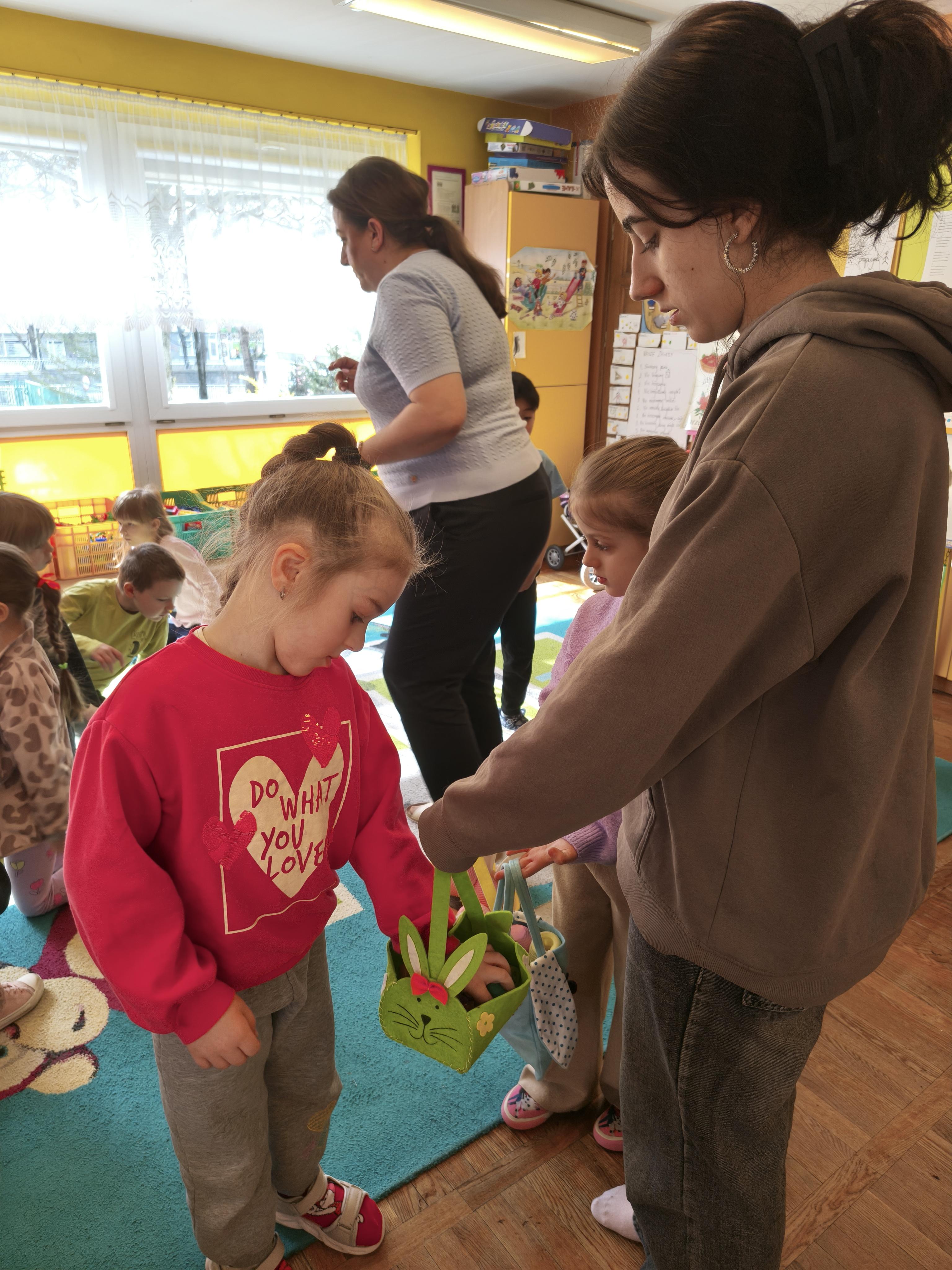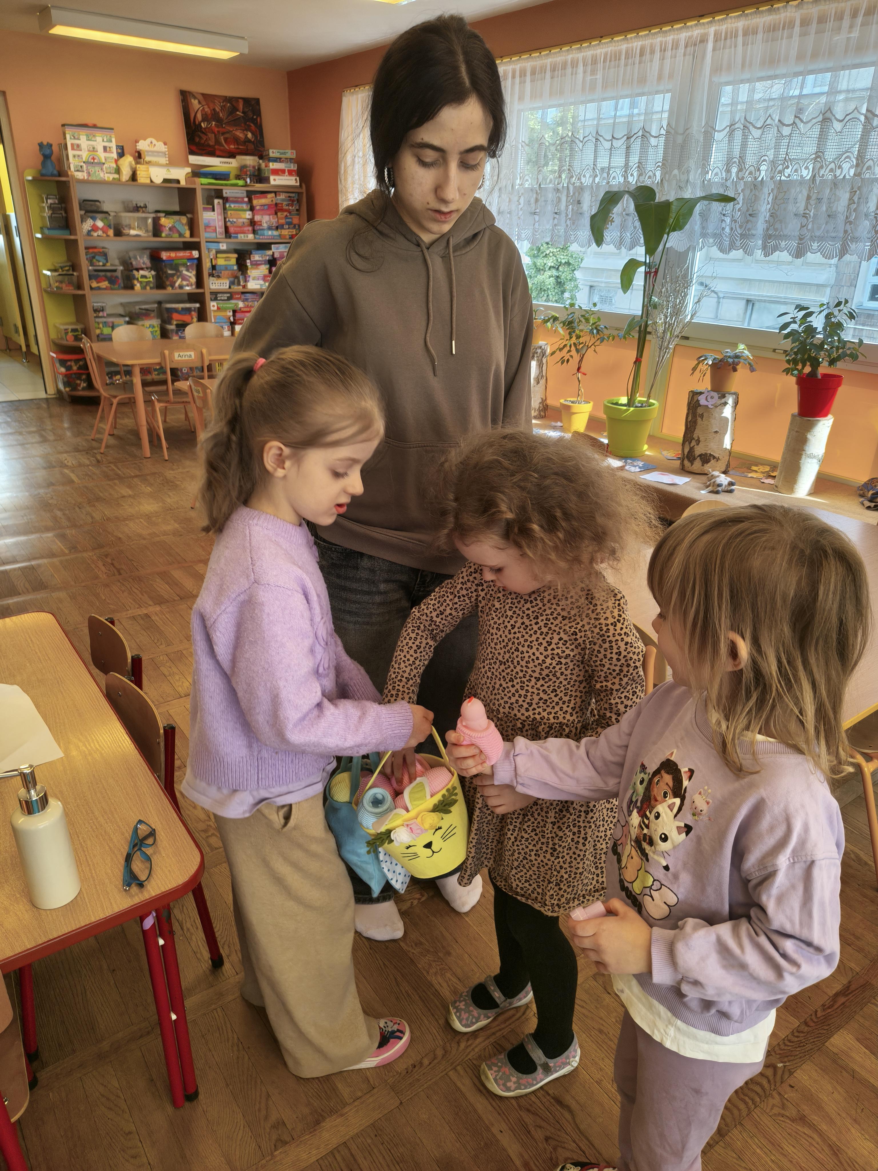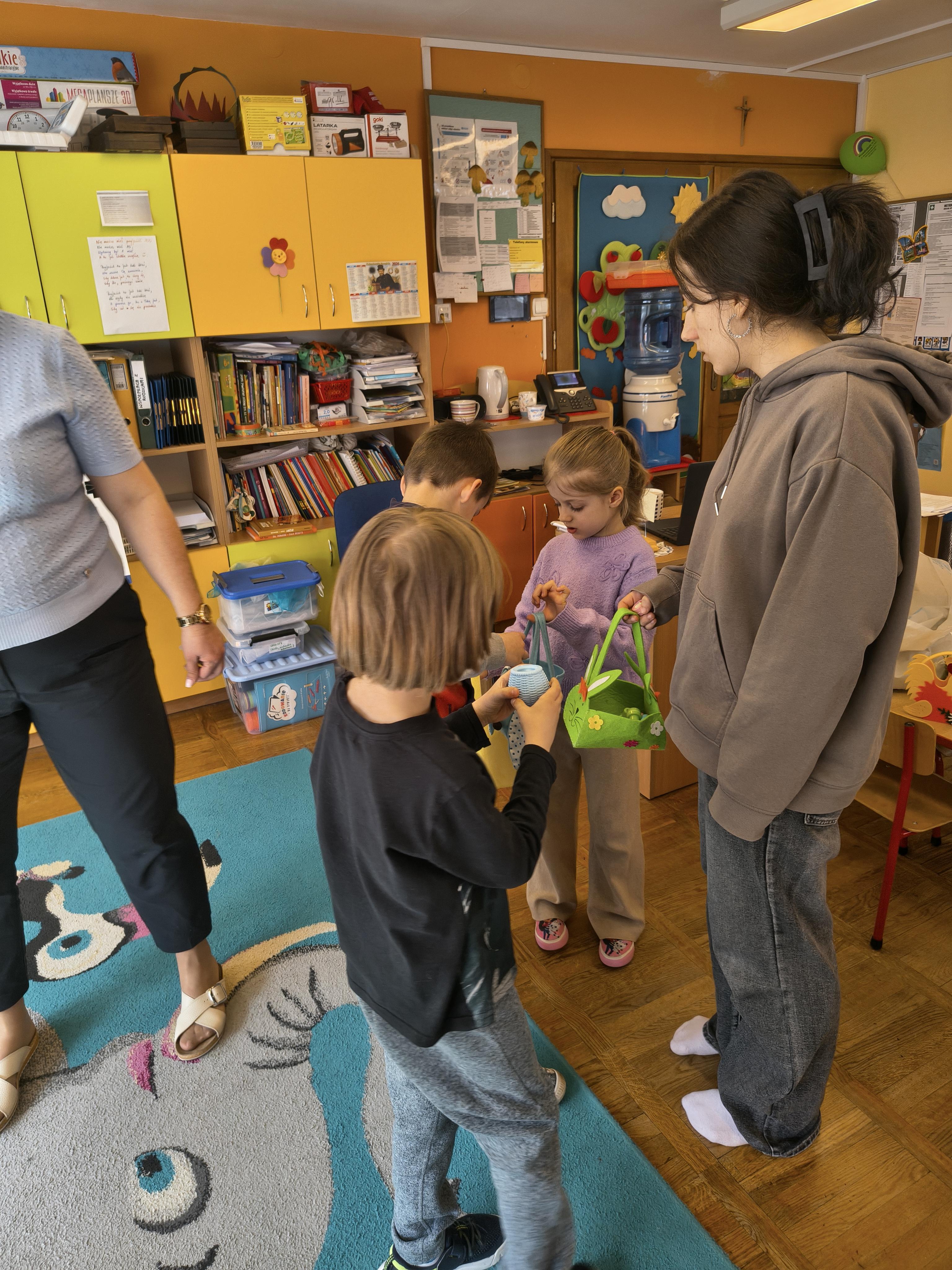 Dzieci spotkały się z niezwykłym gościem- króliczkiem i "jego rodziną". Mama i siostra Majki opowiedziały o hodowli zwierzaka, przytoczyły ciekawostki i opowiedziały o rasach i zwyczajach tych ssaków. Dzieci mogły samodzielnie skomponować jedzenie dla gościa i pogłaskać jego miękkie futerko. Spotkenie było ciekawą lekcją uczącą odpowiedzialności za żywe istoty.