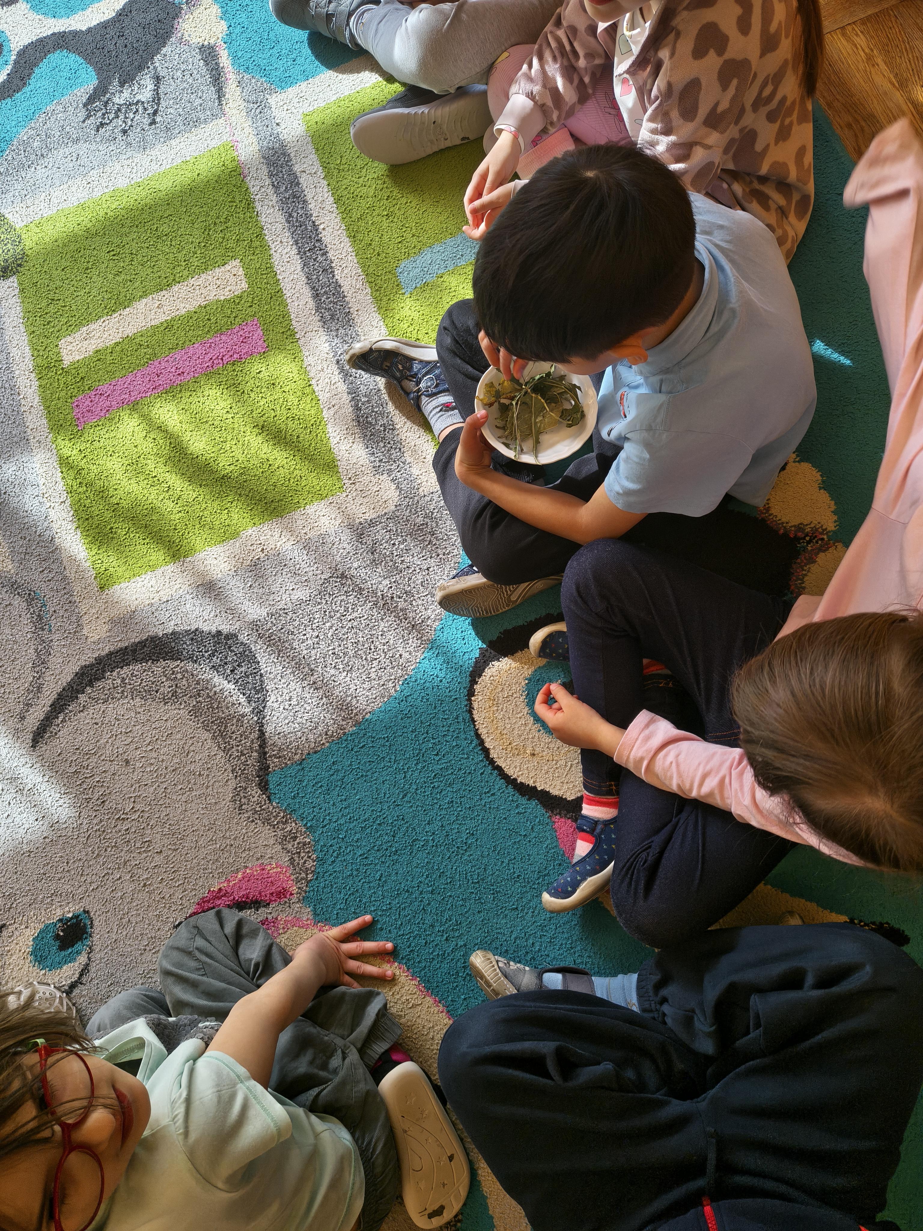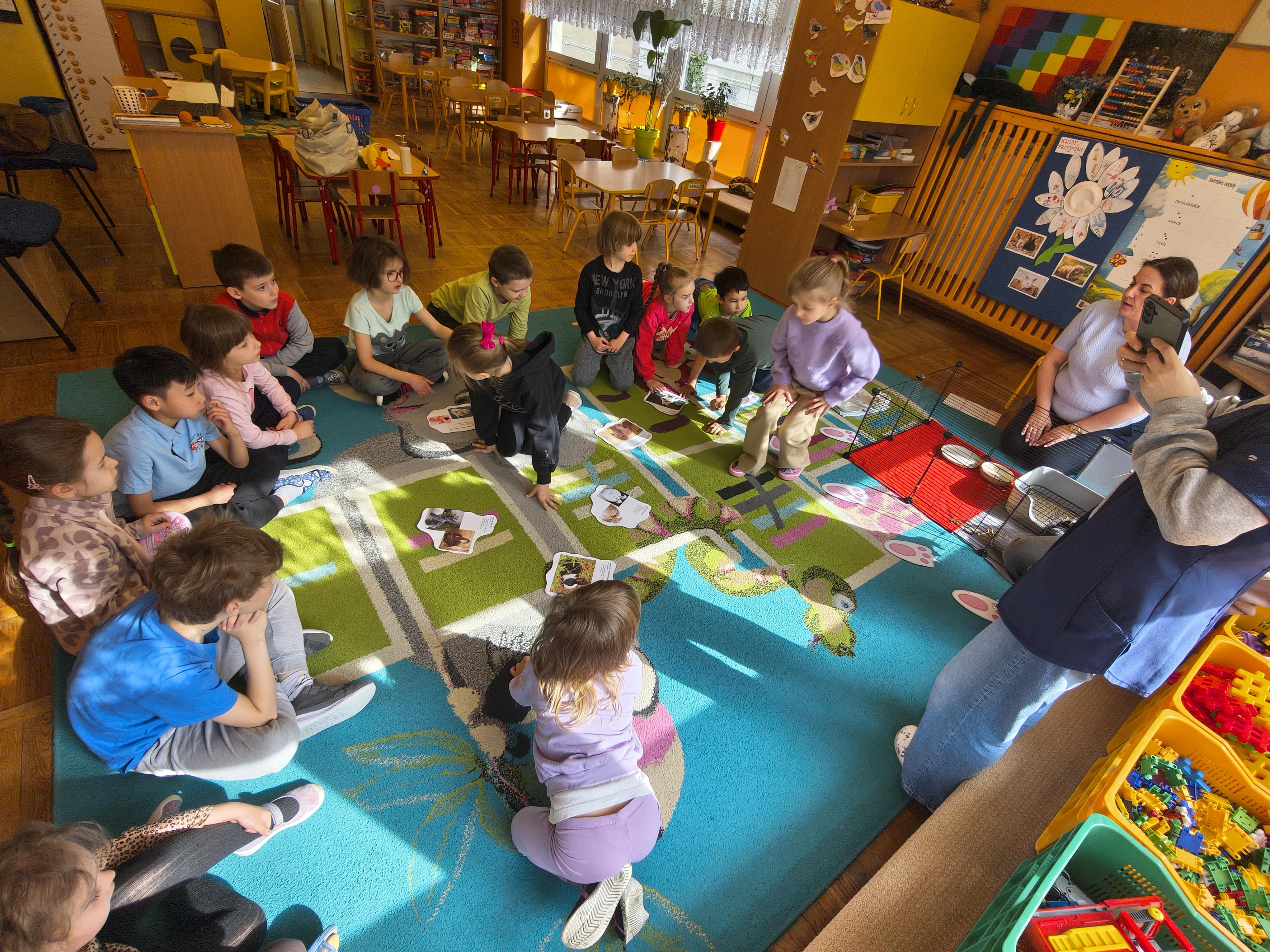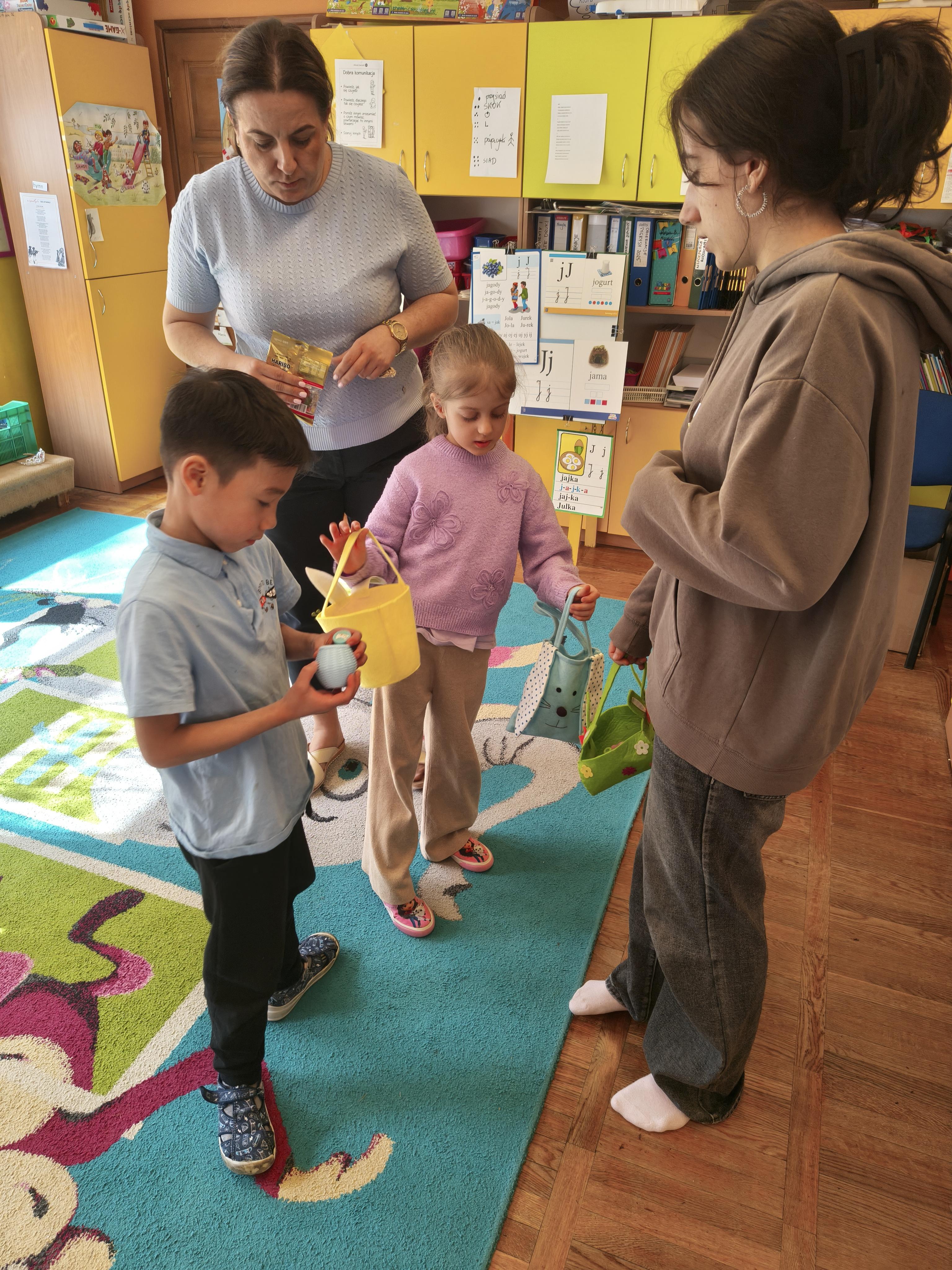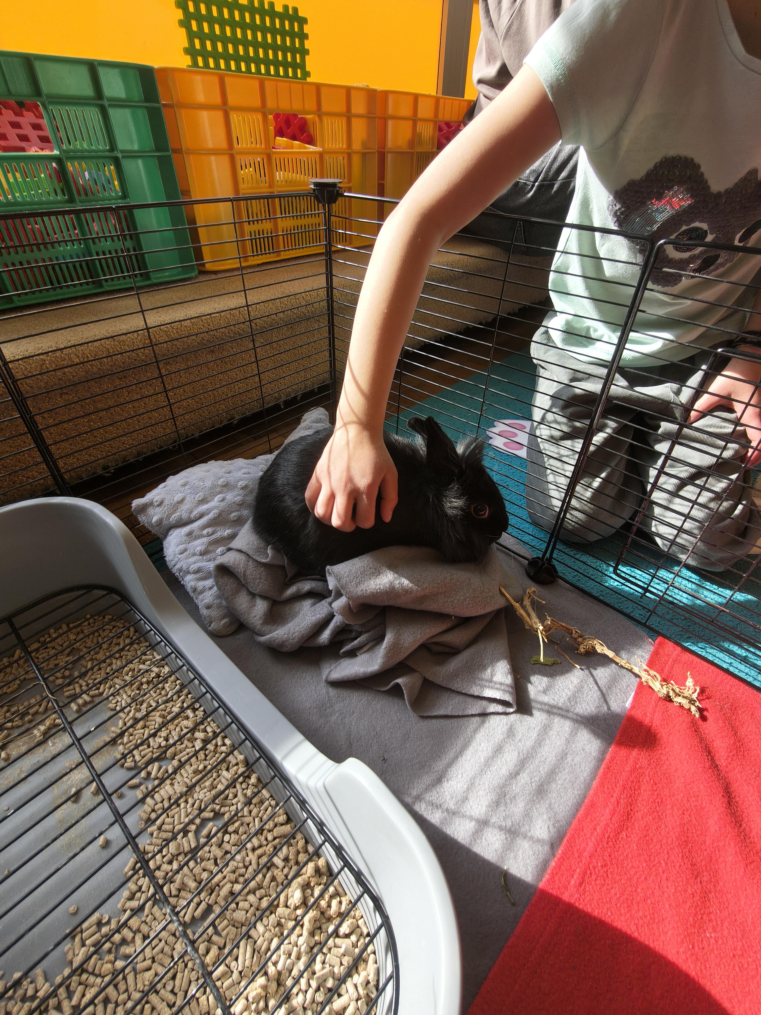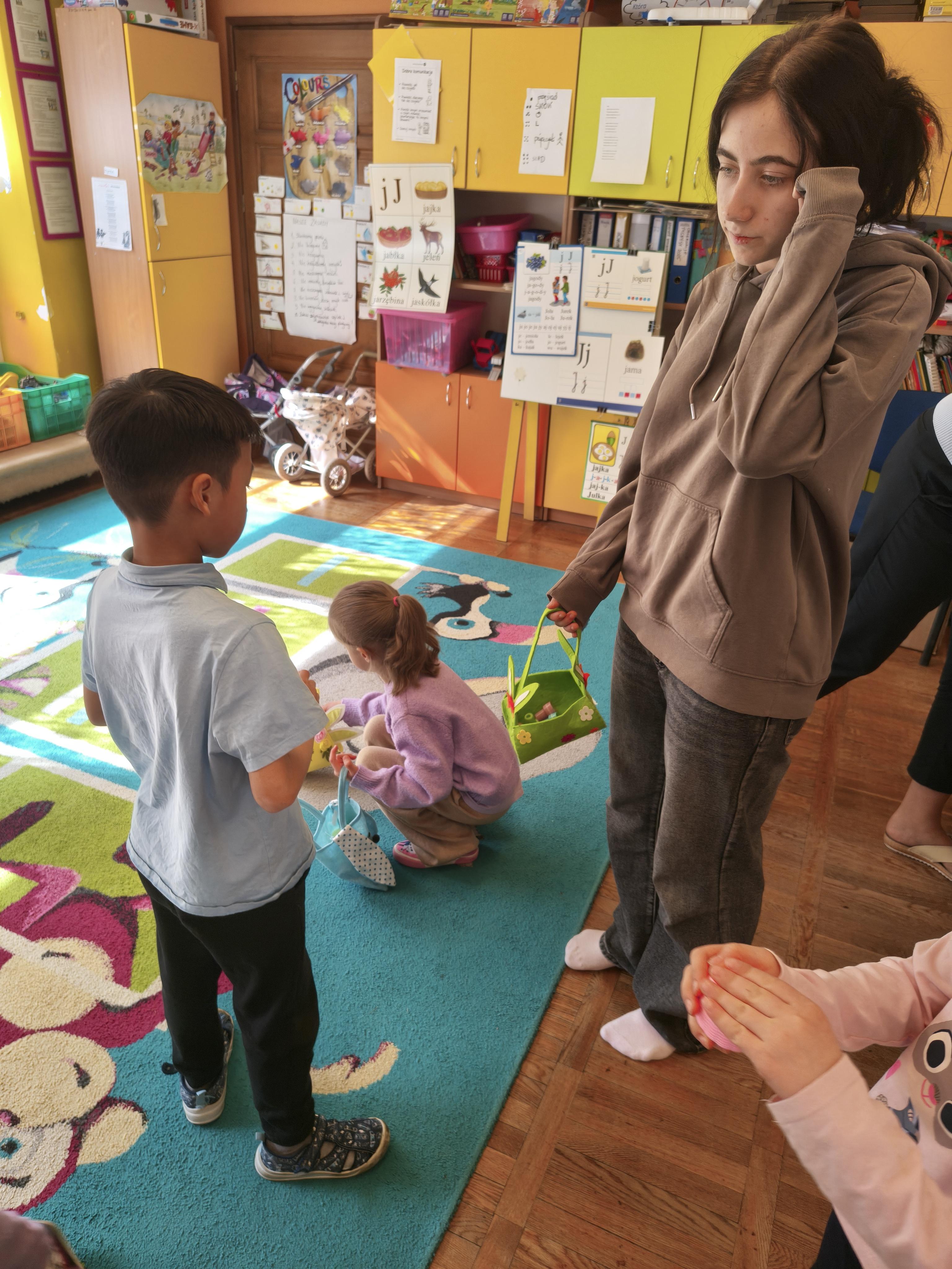Dzieci spotkały się z niezwykłym gościem- króliczkiem i "jego rodziną". Mama i siostra Majki opowiedziały o hodowli zwierzaka, przytoczyły ciekawostki i opowiedziały o rasach i zwyczajach tych ssaków. Dzieci mogły samodzielnie skomponować jedzenie dla gościa i pogłaskać jego miękkie futerko. Spotkenie było ciekawą lekcją uczącą odpowiedzialności za żywe istoty.