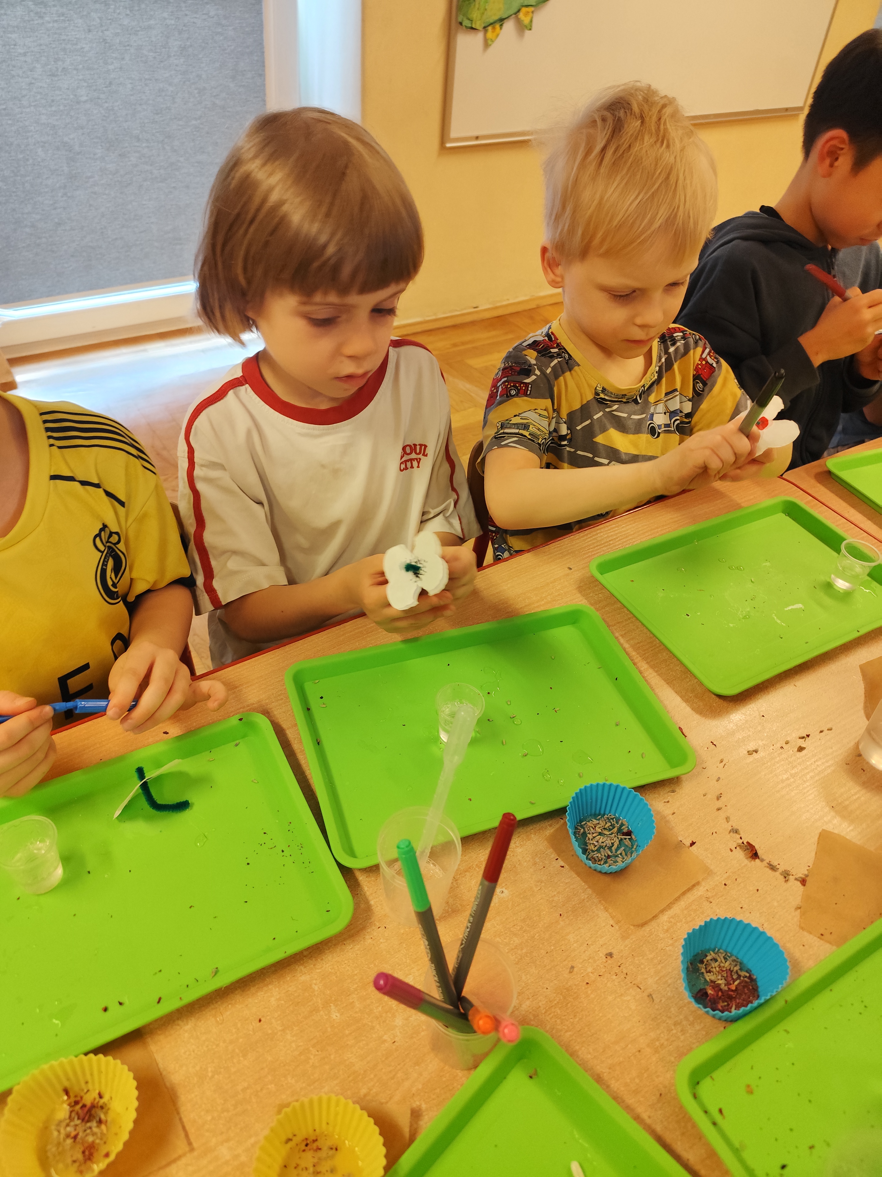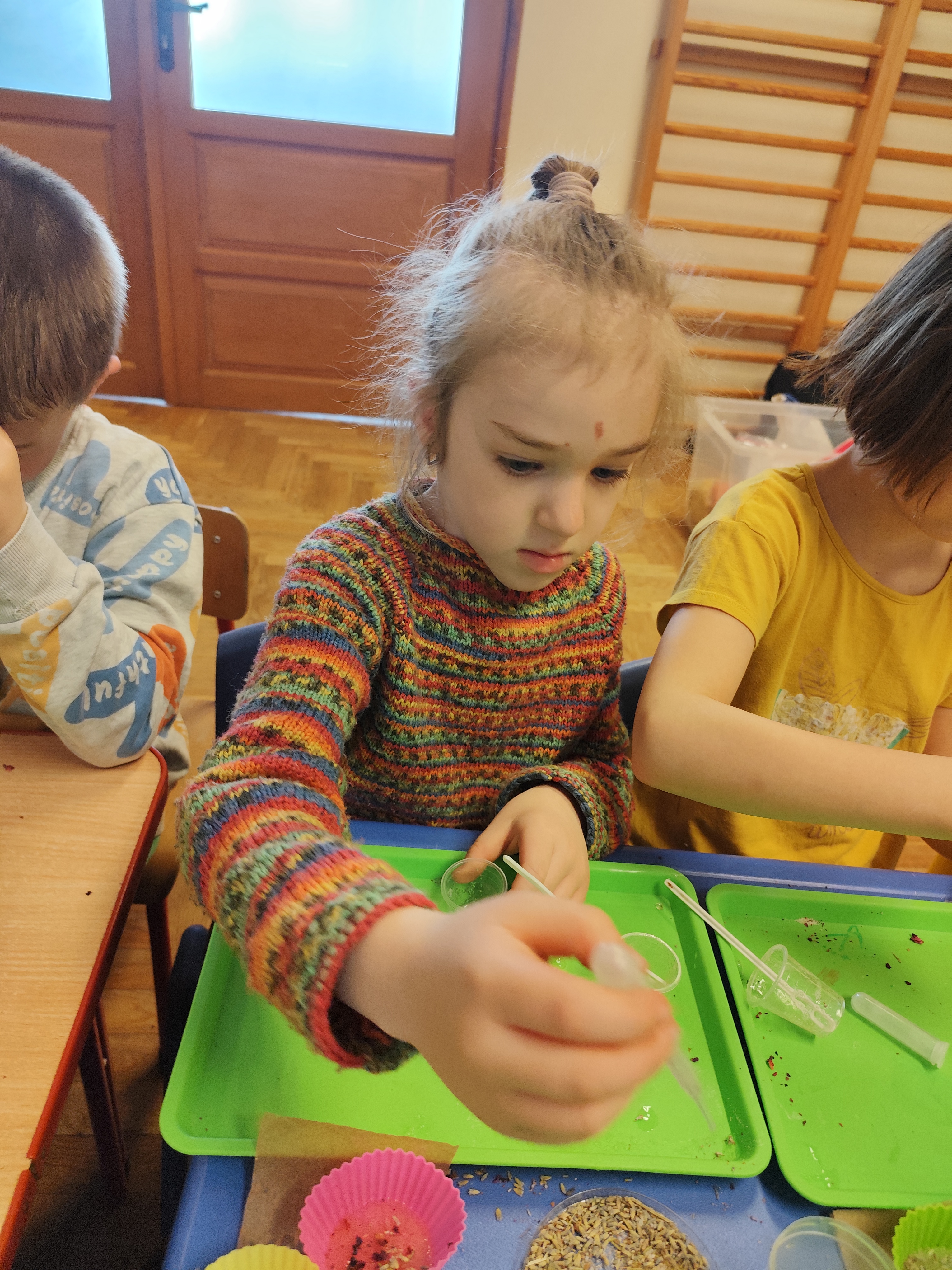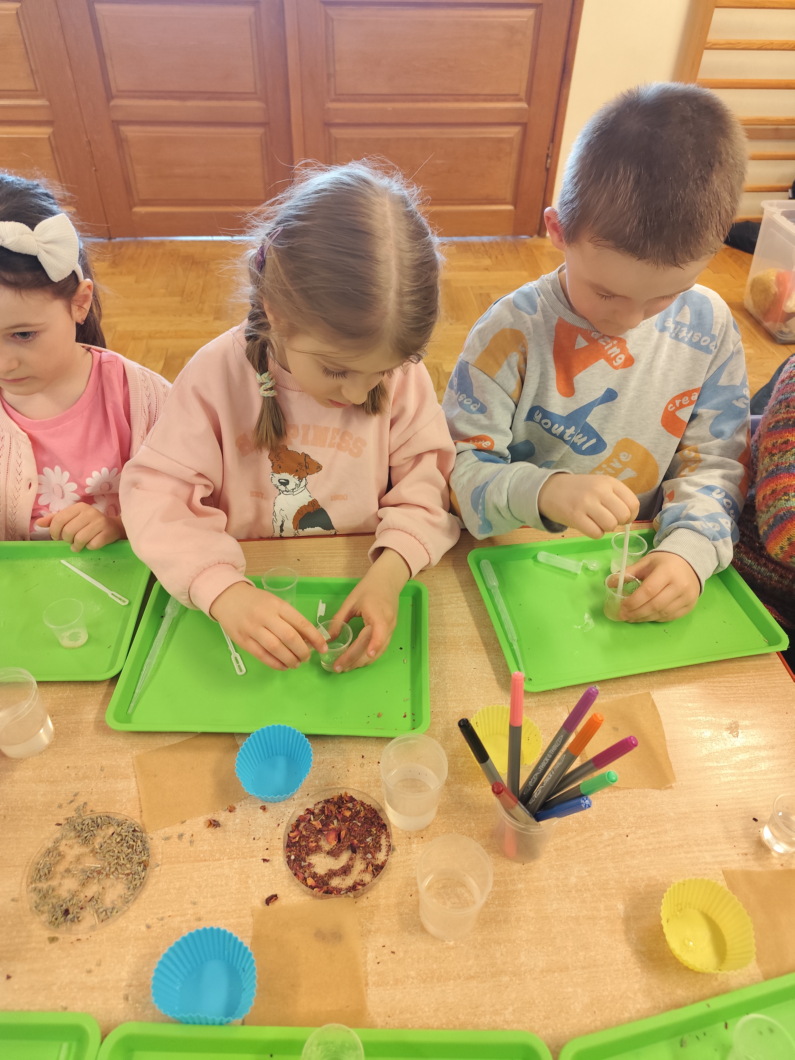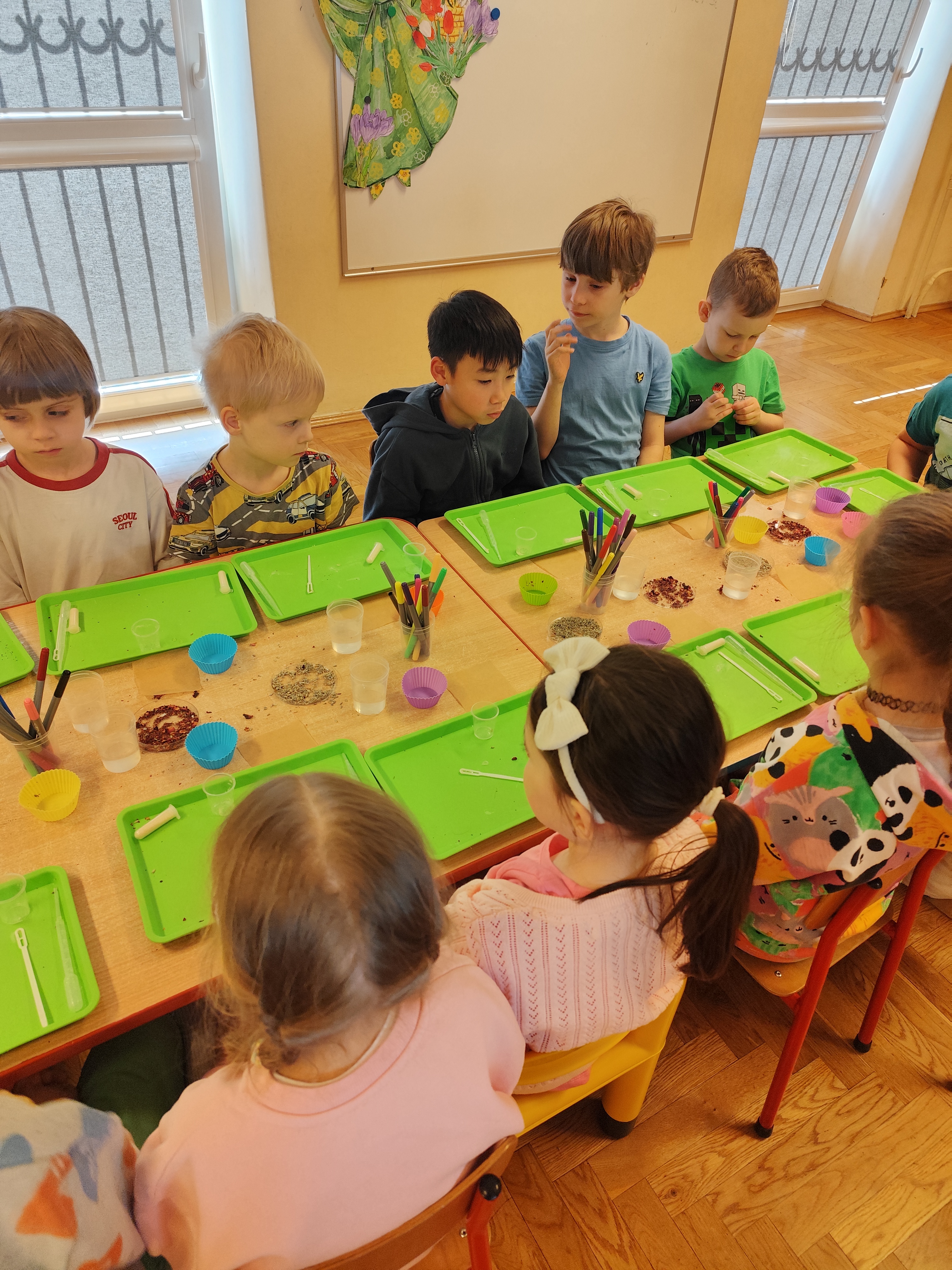 Wyruszyliśmy do świata roślin. Dzieci odkryły, jakie tajemnice kryją kwiaty i zobaczyły niezwykłe procesy zachodzące w roślinach. Na pamiątkę stworzyły własne przyrodnicze medaliony pełne barw i natury.