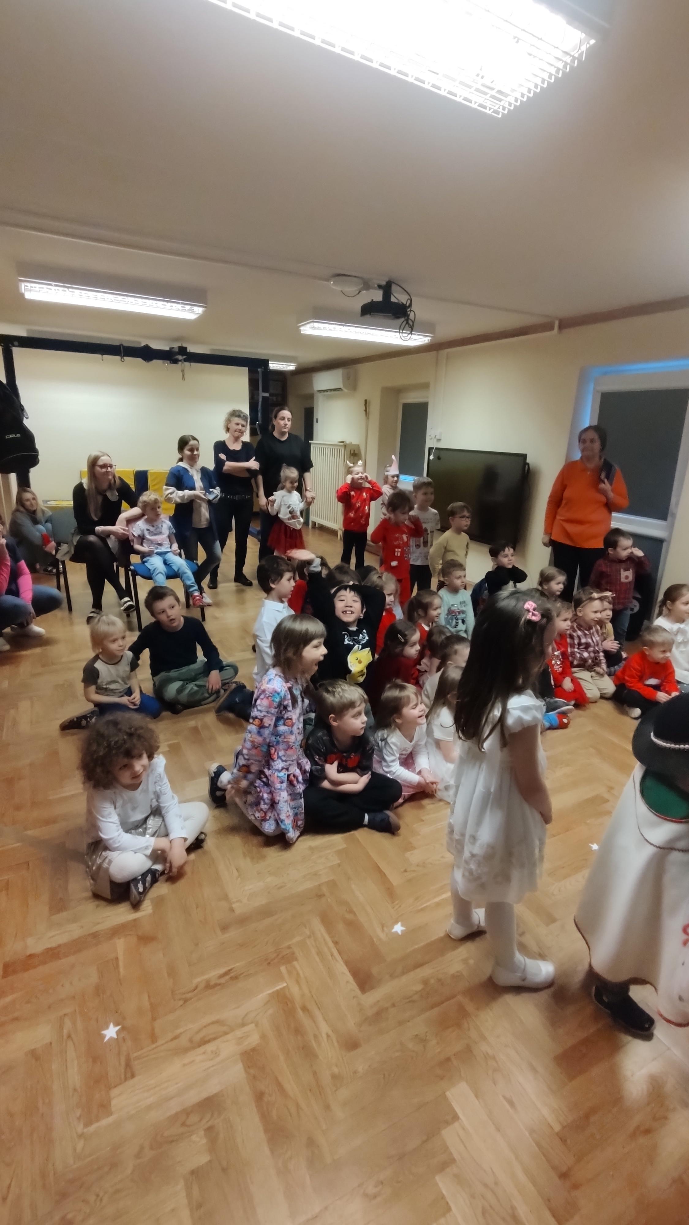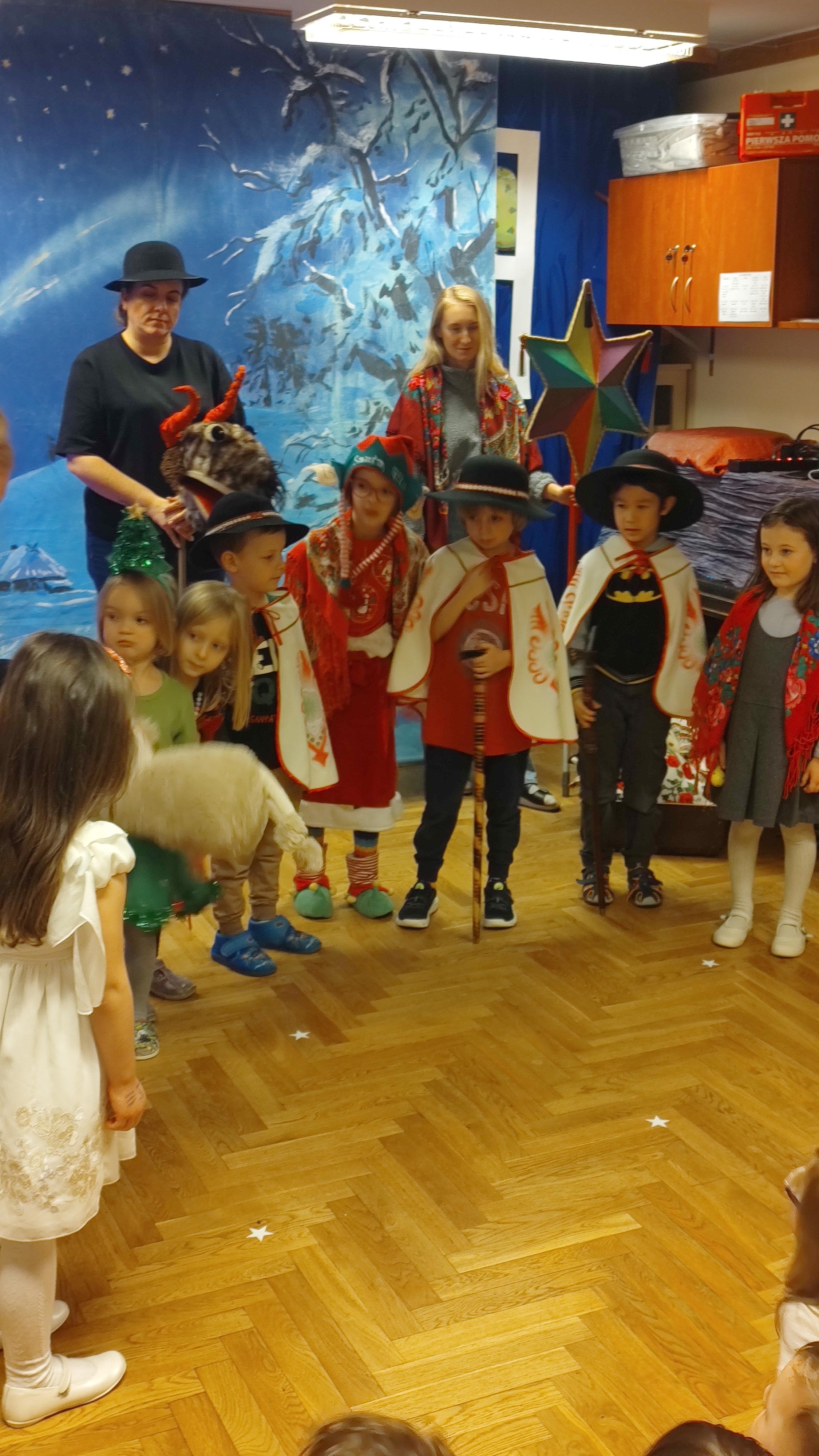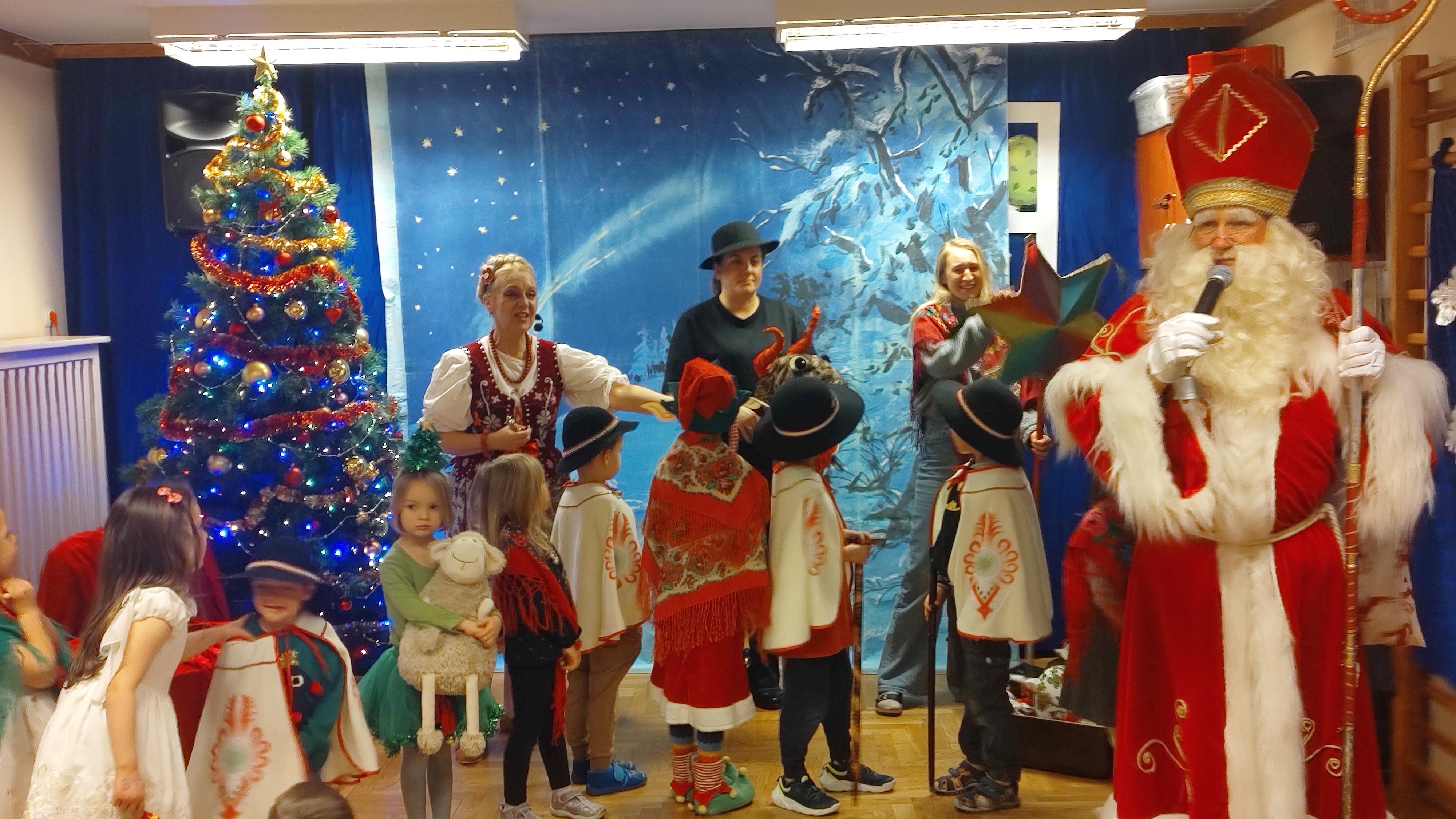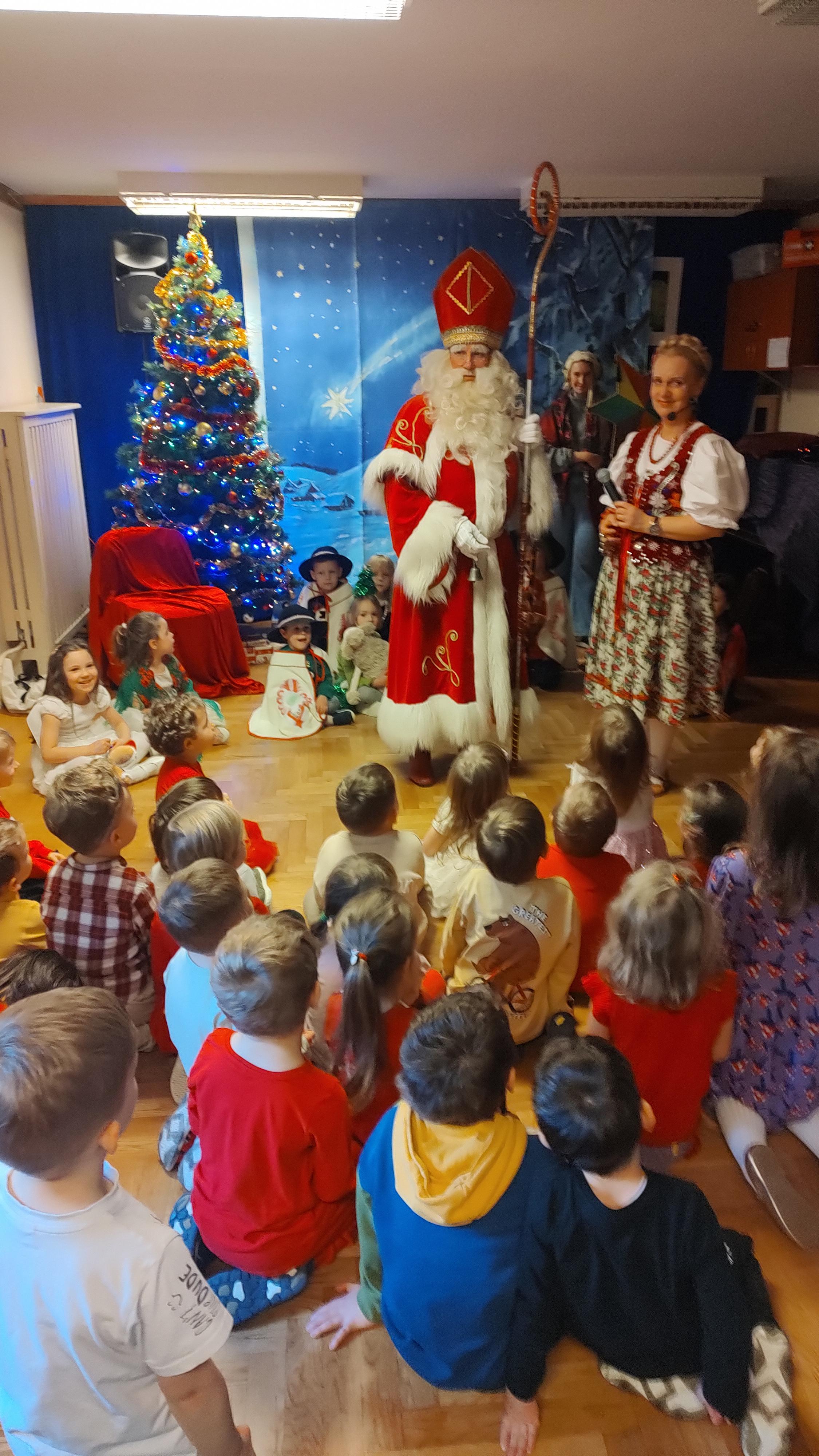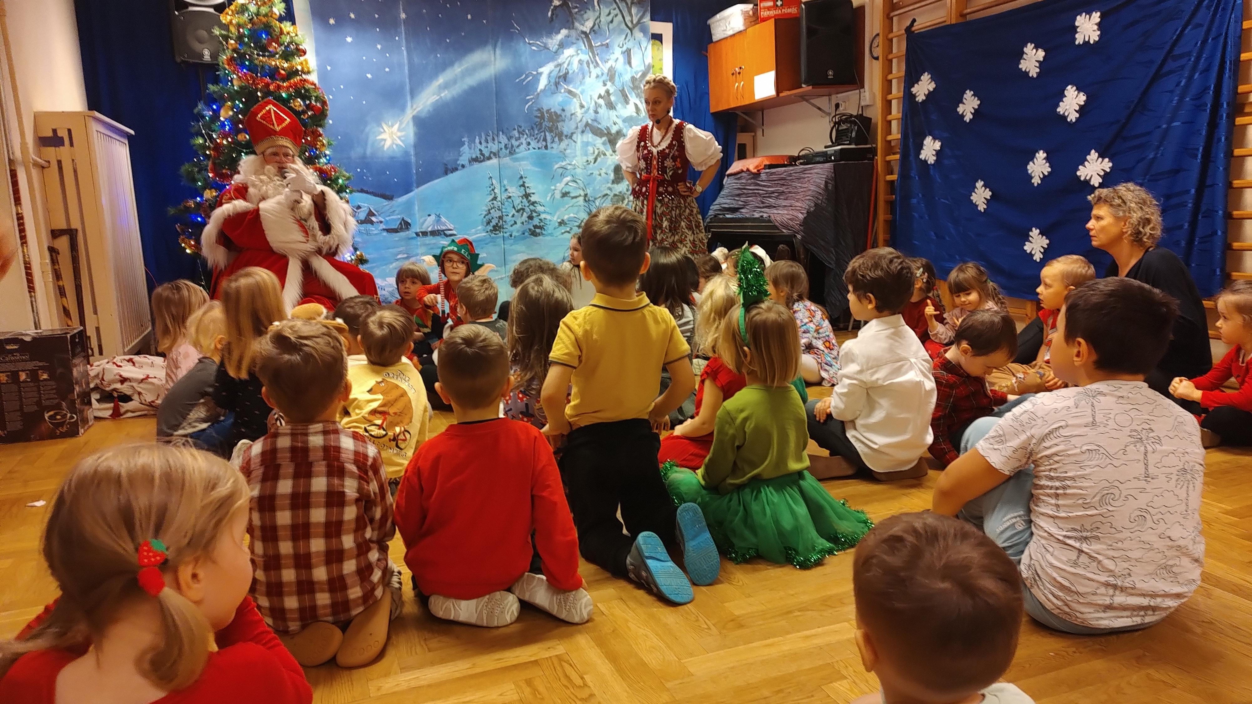 "Cały dzień - 11 grudnia w przedszkolu panowała radosna atmosfera. Wszyscy z niecierpliwością czekali na Świętego Mikołaja, który przybył po obiedzie, z workiem prezentów. Powitaliśmy Go piosenkami i muzyką. Mikołaj wysłuchał naszych występów, porozmawiał z nami, a potem, ku naszej radości, wręczył wszystkim piękne paczki. Na pamiątkę zrobiliśmy wspólne zdjęcia. Spotkanie było pełne śmiechu i radości, a Mikołaj obiecał wrócić za rok!".