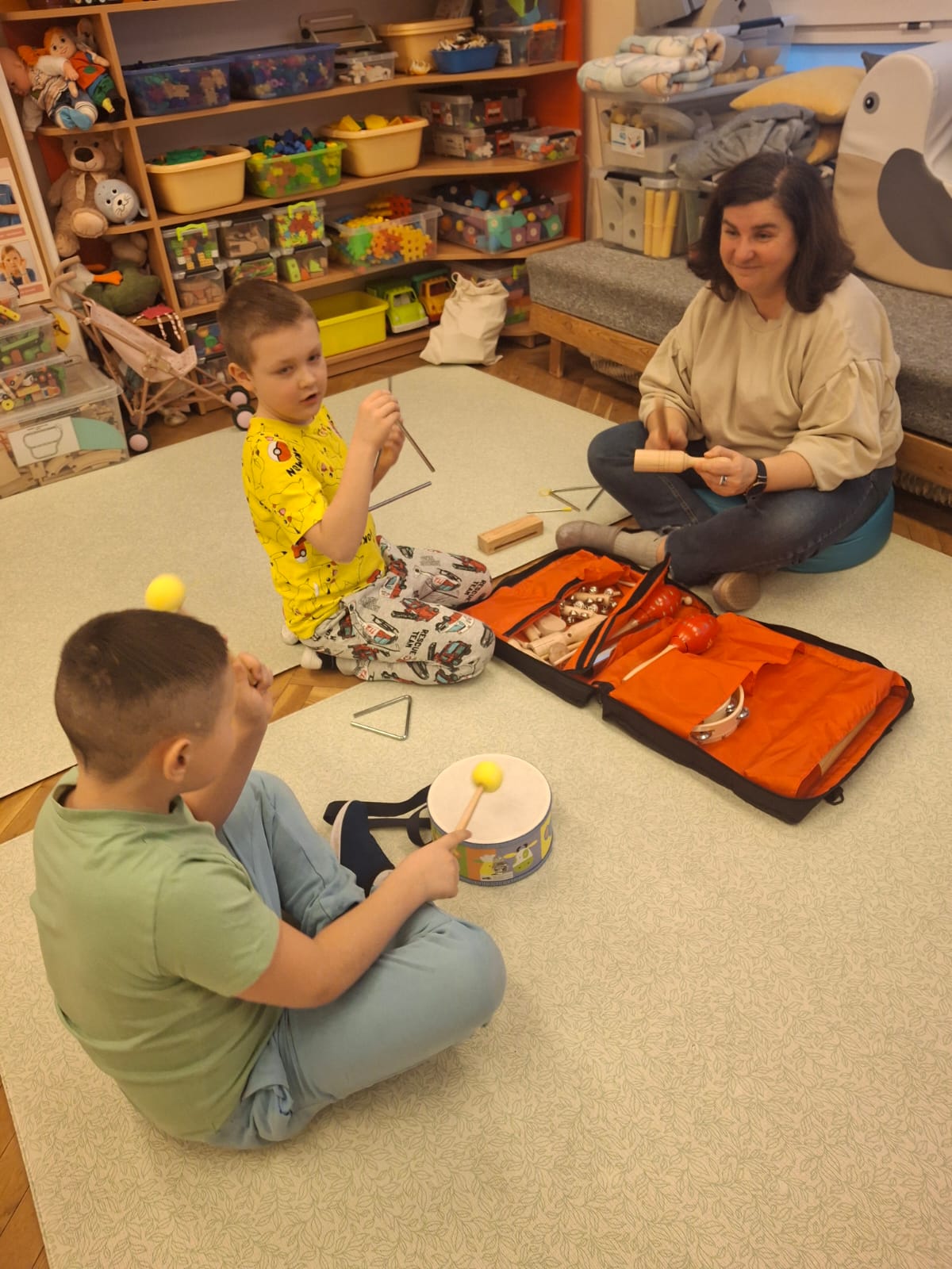 Zajęcia umuzykalniające to bardzo ciekawa aktywność, którą dzieci uwielbiają! Zajęcia te pozwalają uwrażliwić na samoocenę, wyzwalają inicjatywę oraz aktywność.
