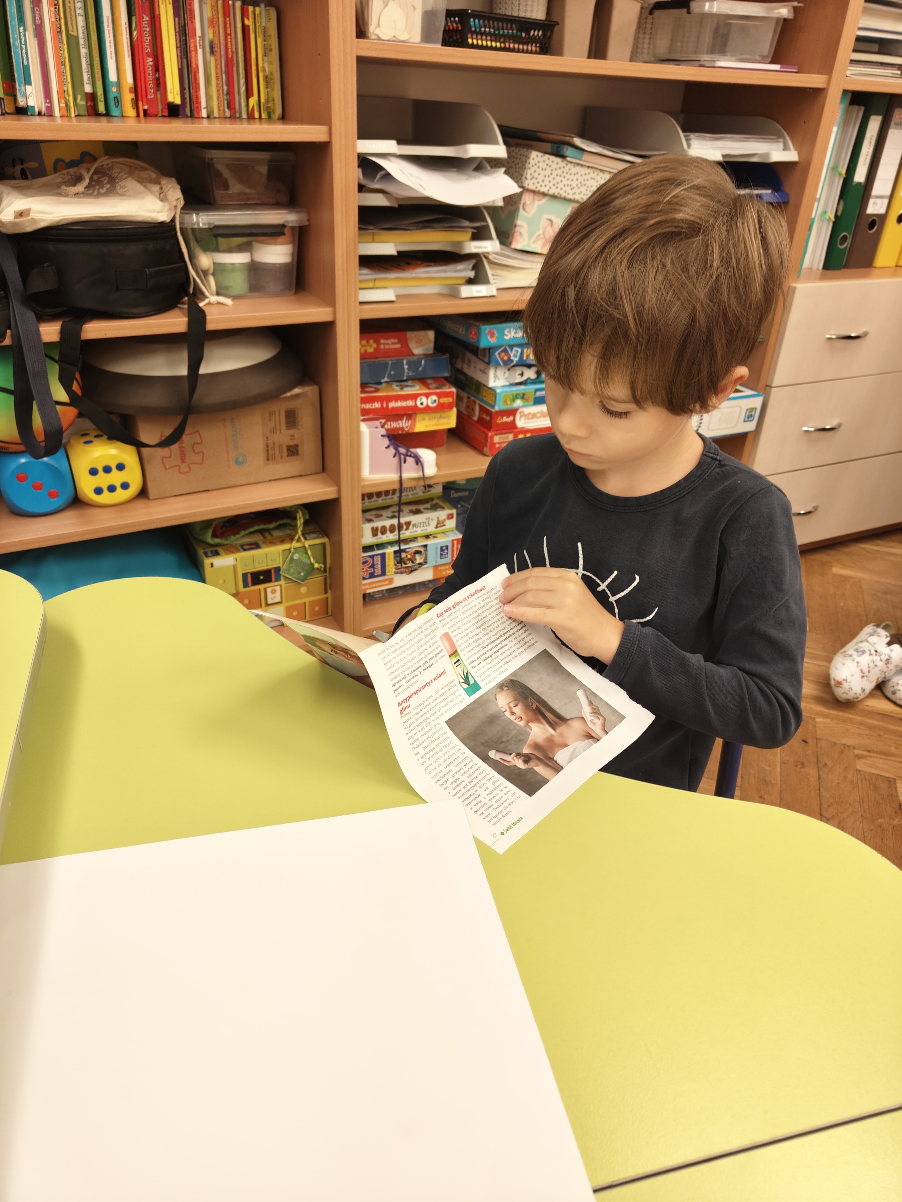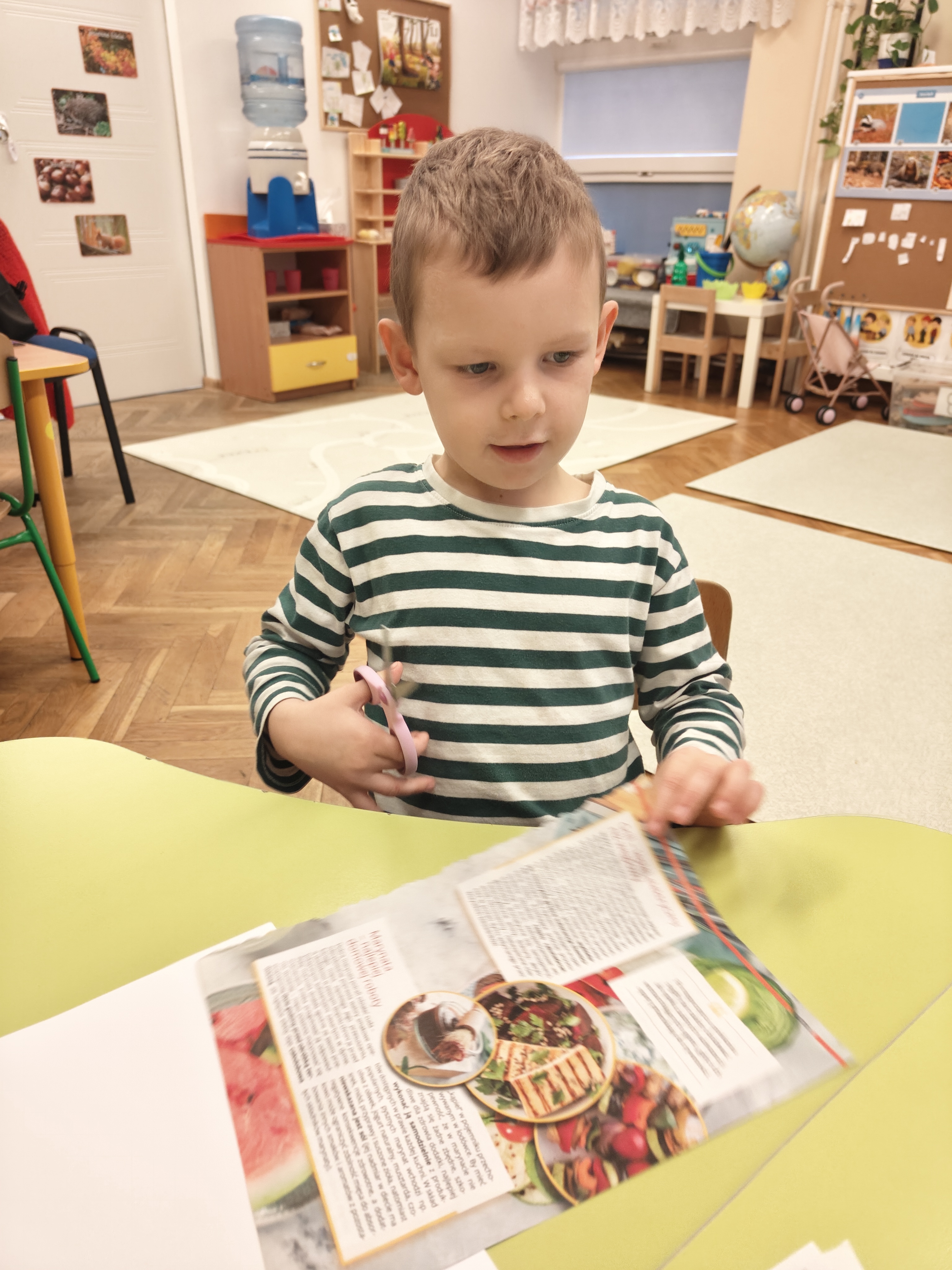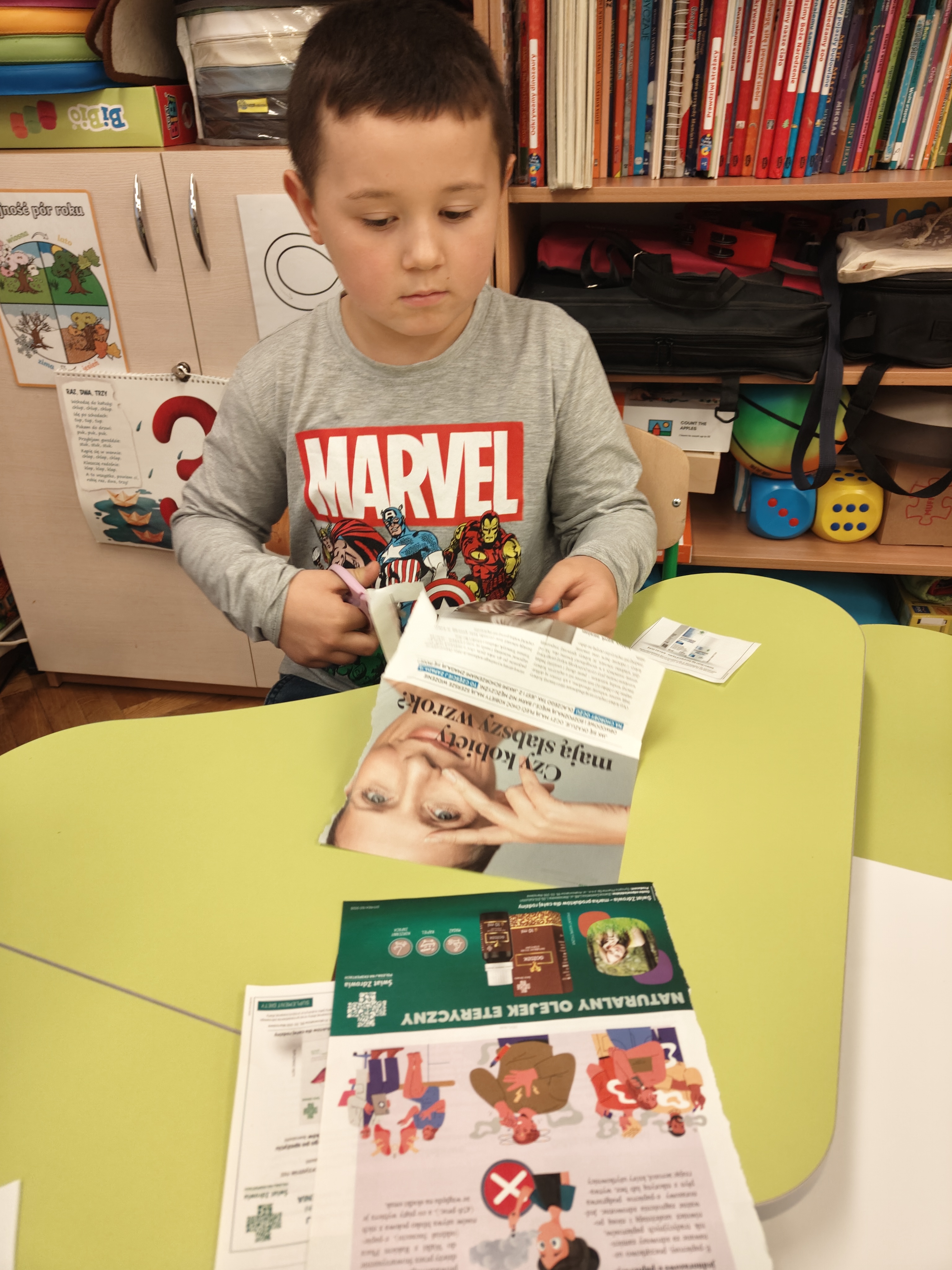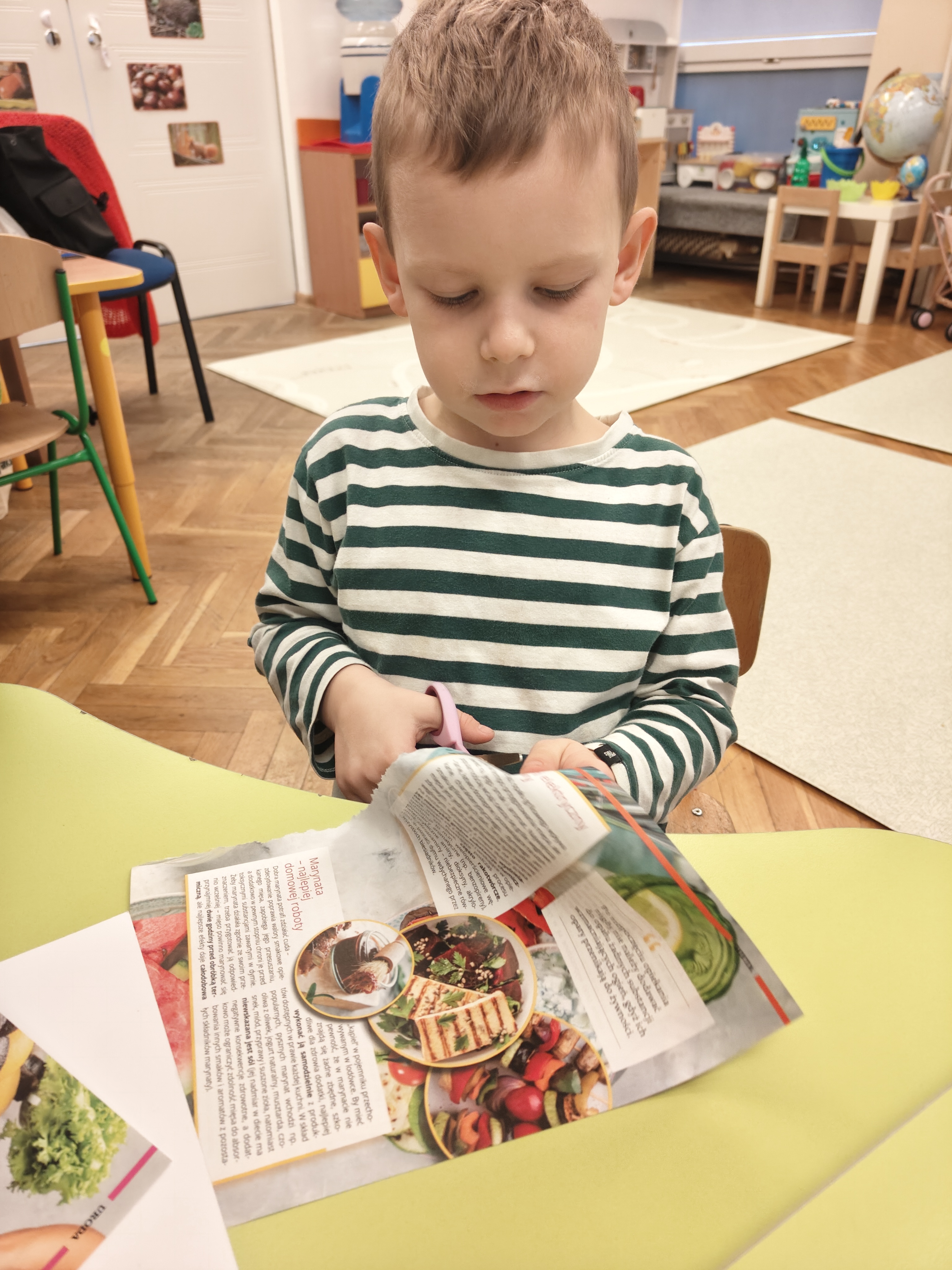 „Małe nożyczki mamy,równo wycinamy.Tniemy ciach, ciachu ciach,mocno dociskamy”.