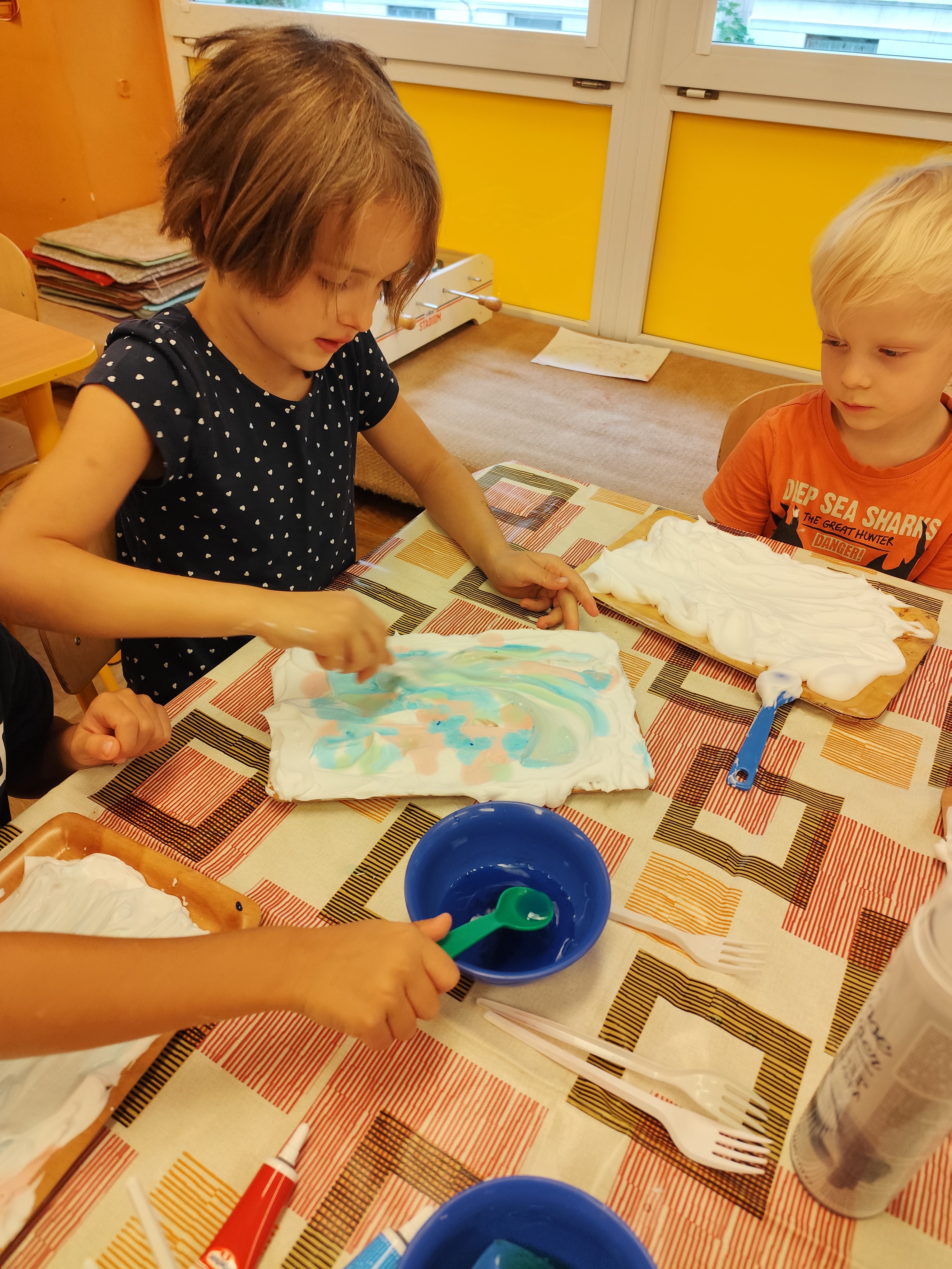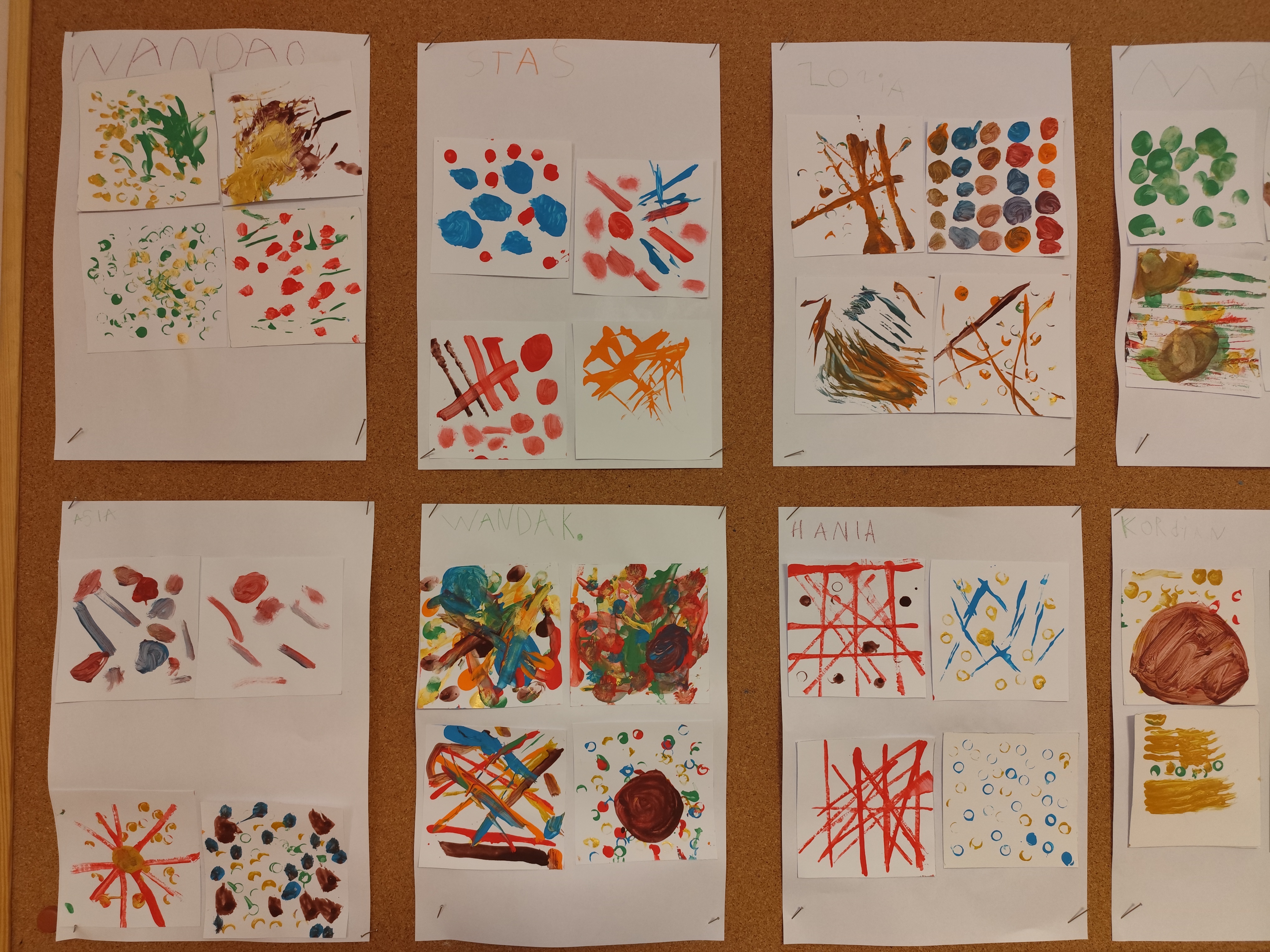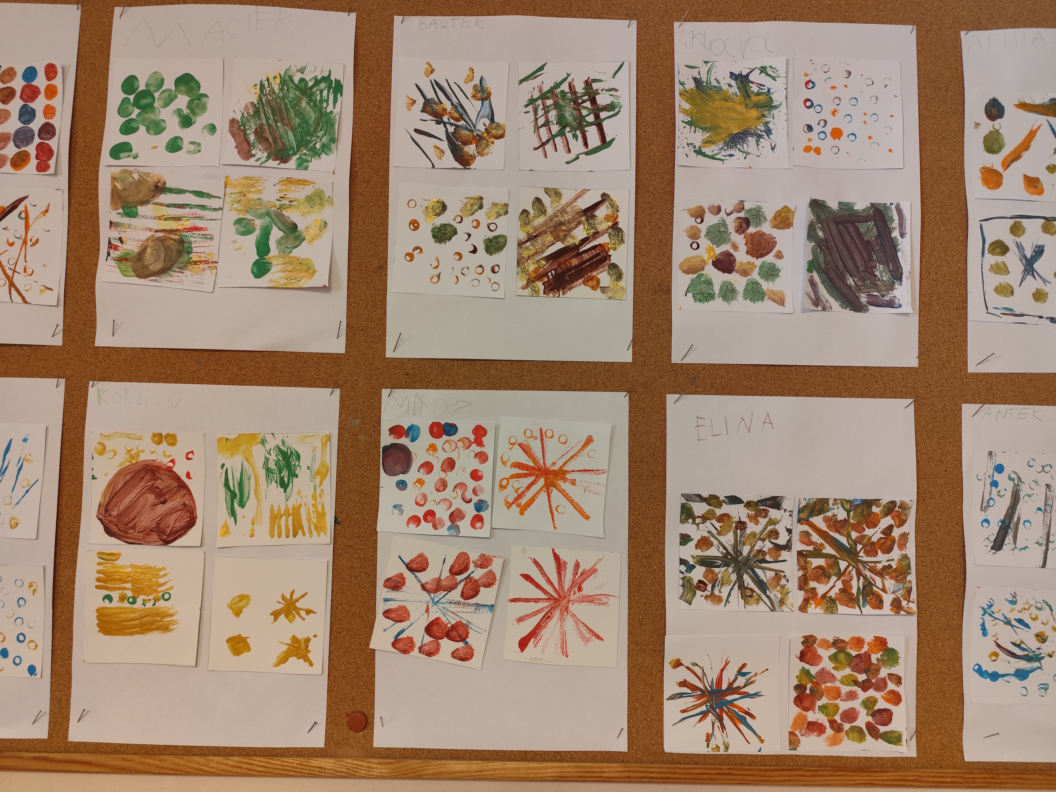 We wrześniu zrealizowaliśmy trzy prace związane z projektem. Czym jest punkt i linia? Jak użyć pianki do golenia, żeby stworzyć ciekawą pracę? Jak powstały malowidła naskalne? Oto kreatywne prace dzieci: