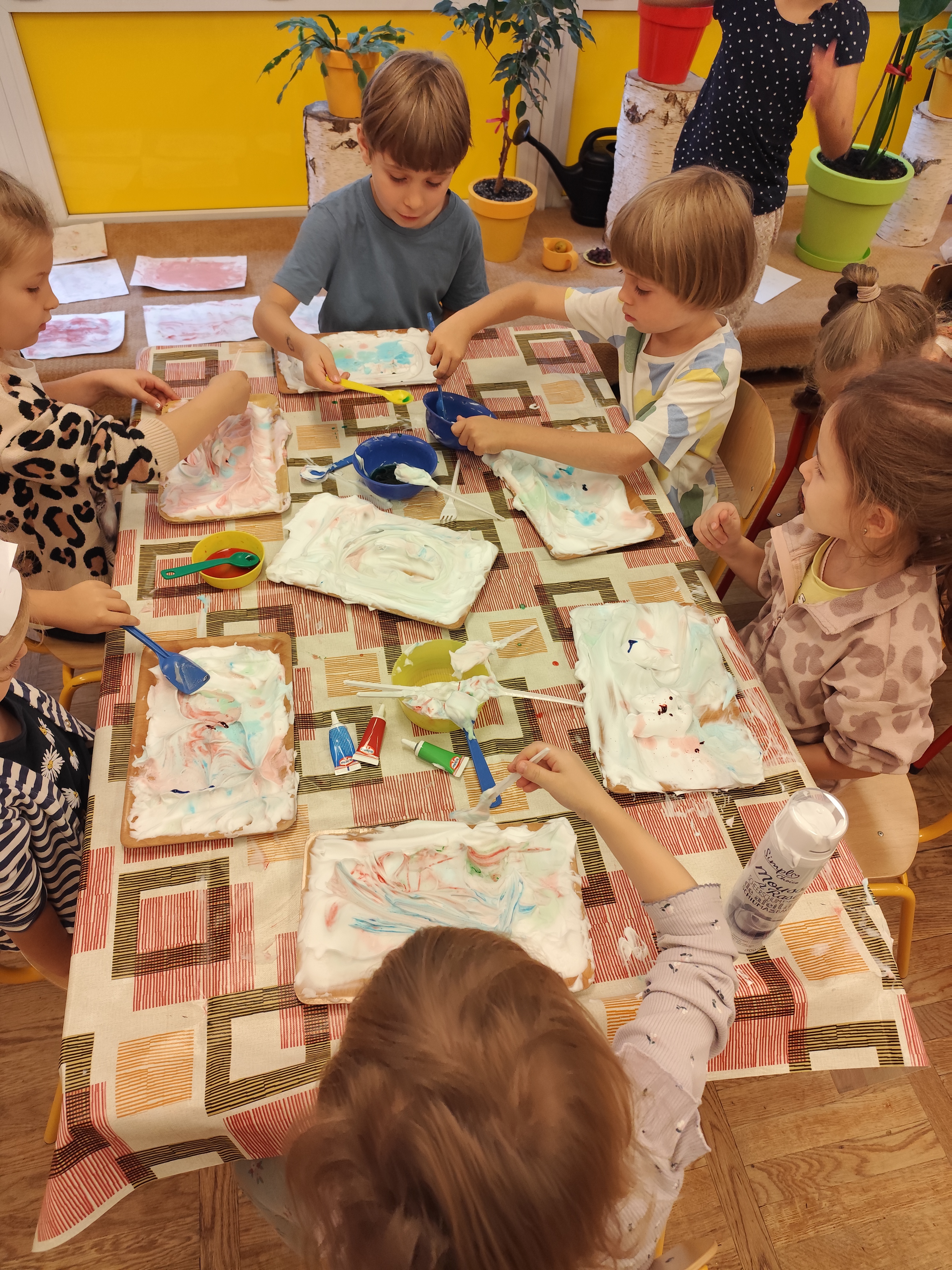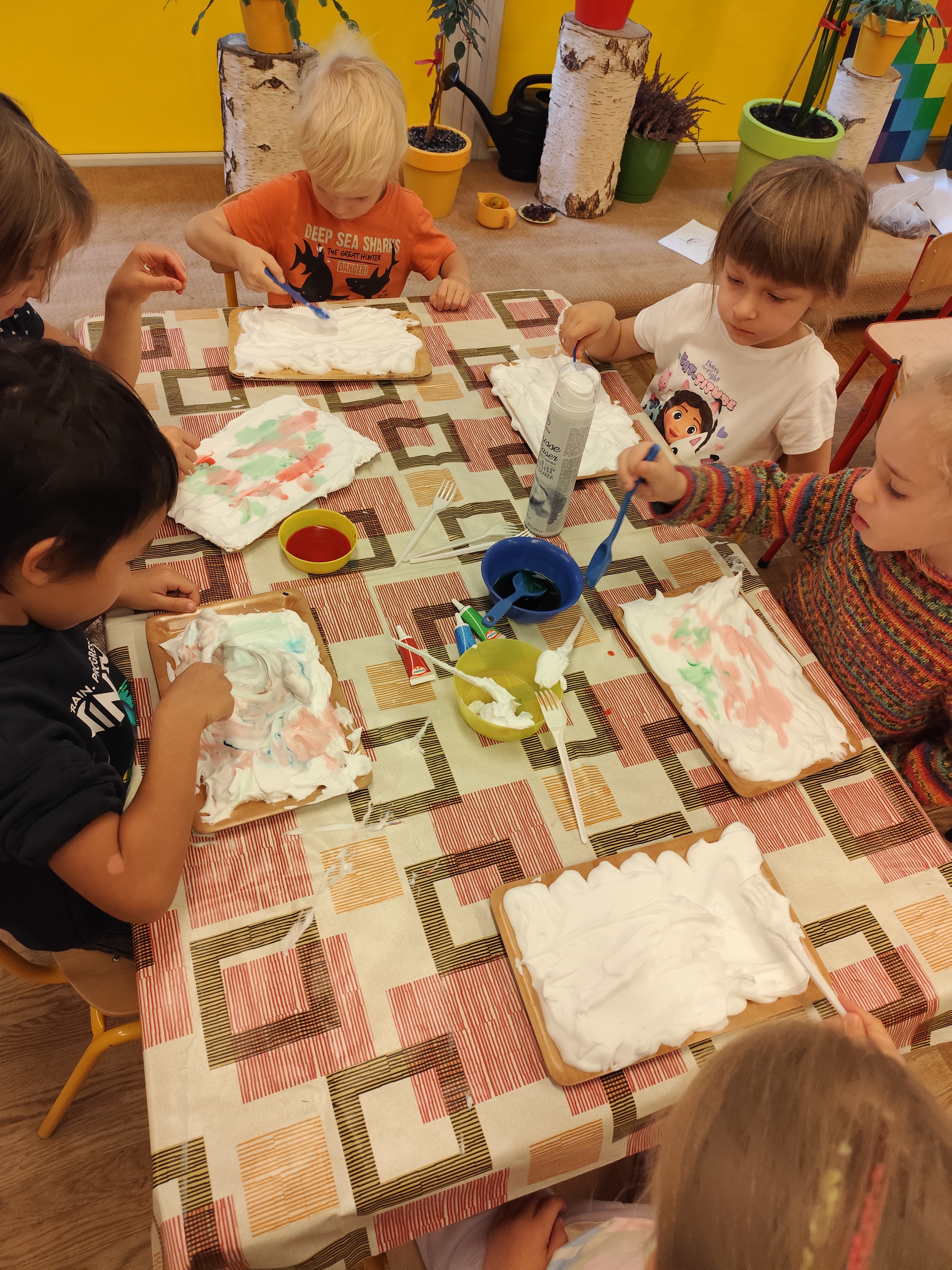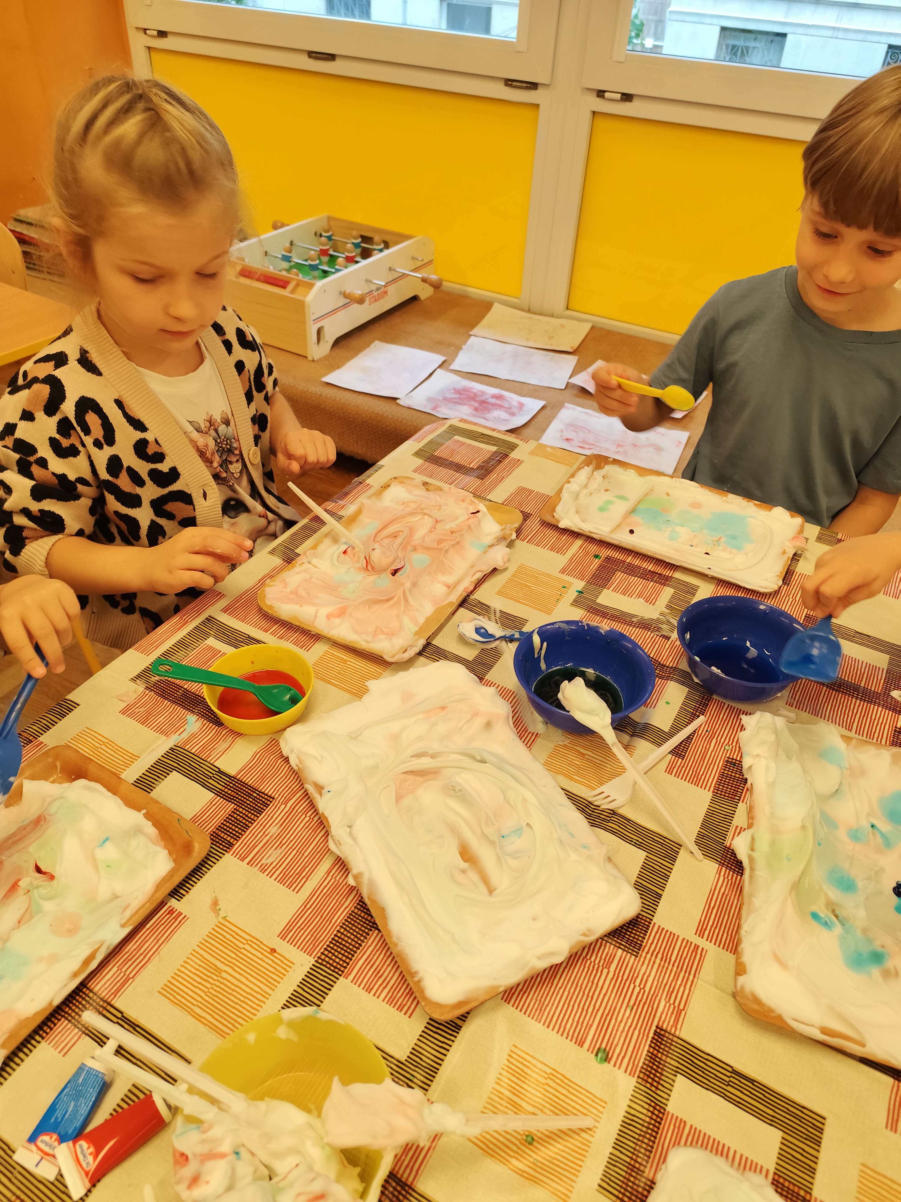 We wrześniu zrealizowaliśmy trzy prace związane z projektem. Czym jest punkt i linia? Jak użyć pianki do golenia, żeby stworzyć ciekawą pracę? Jak powstały malowidła naskalne? Oto kreatywne prace dzieci: