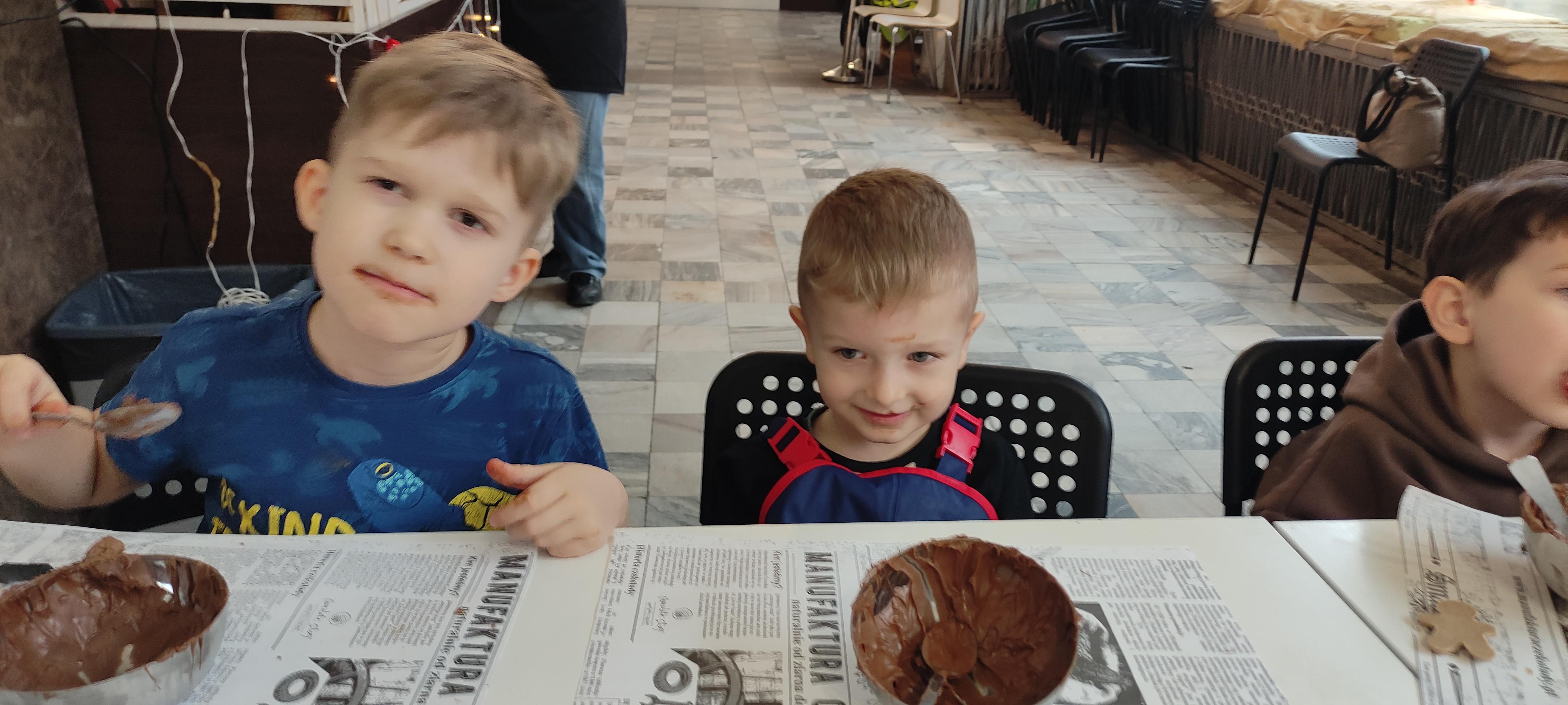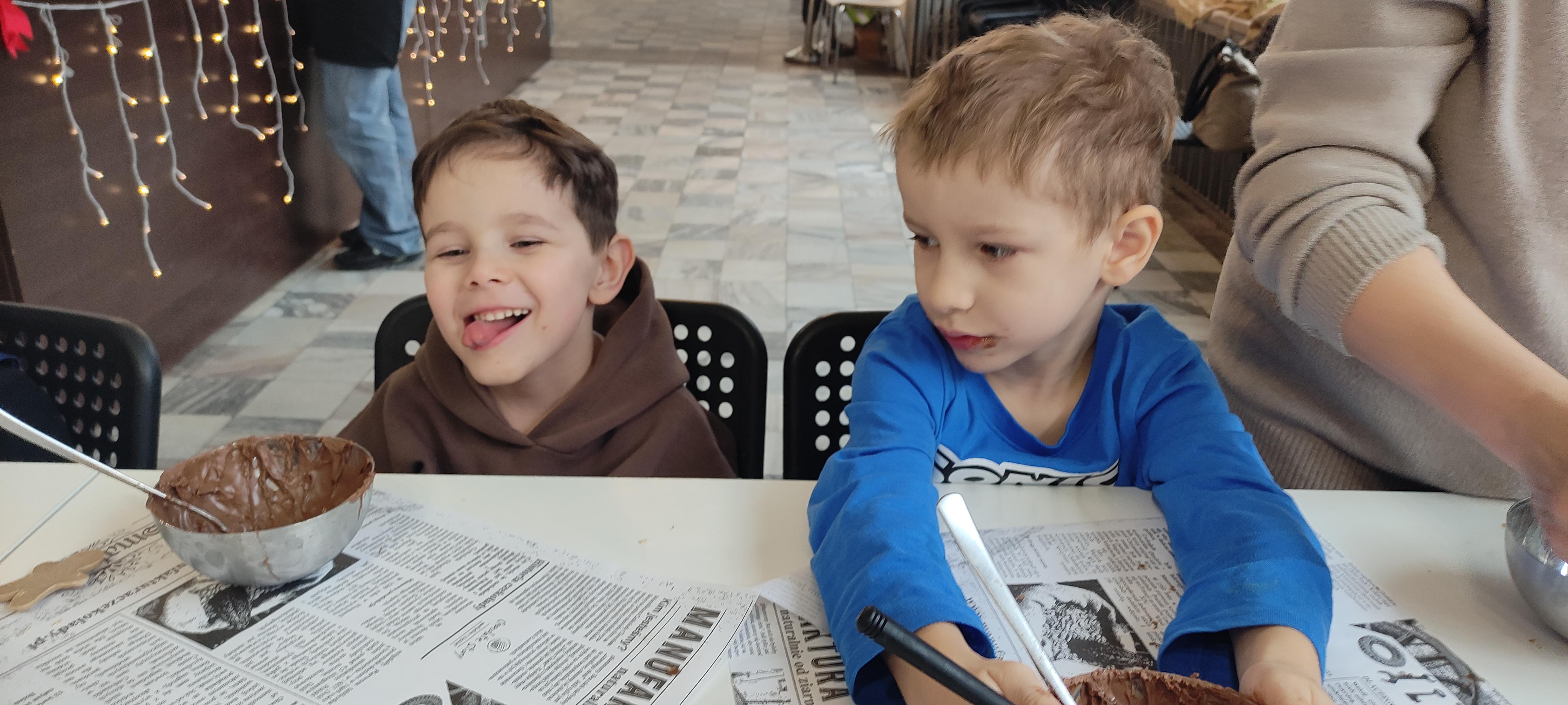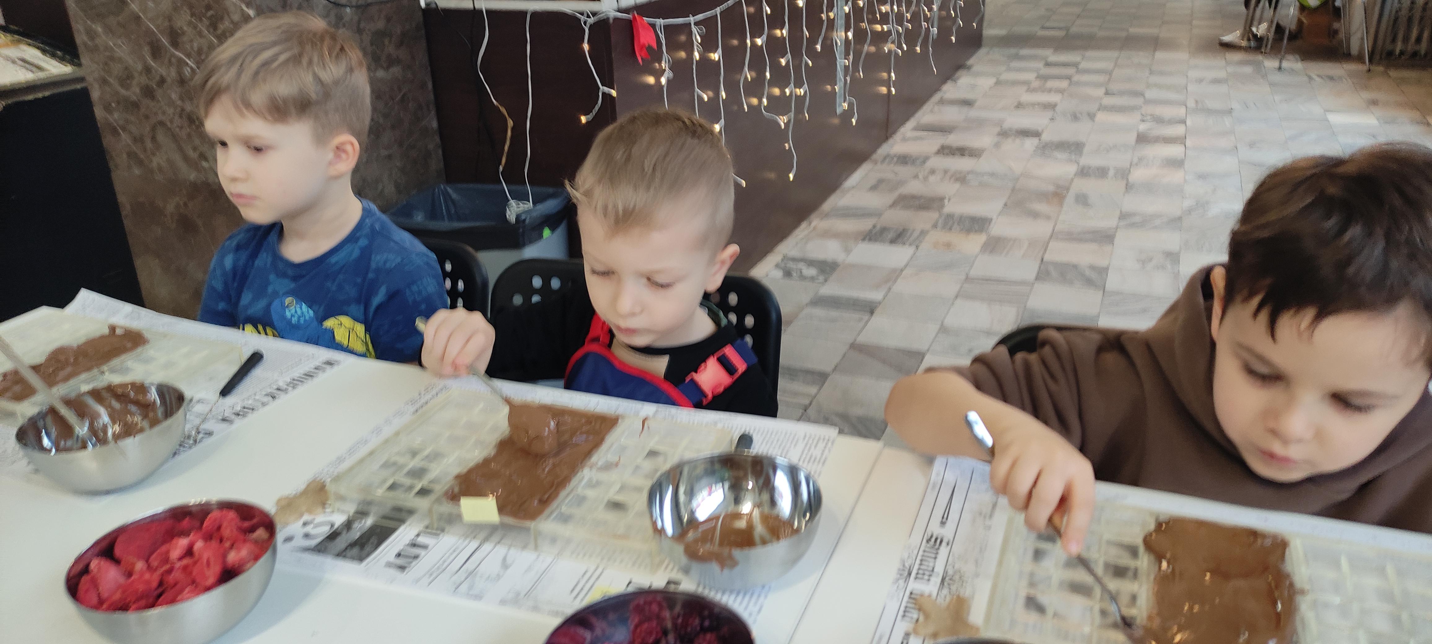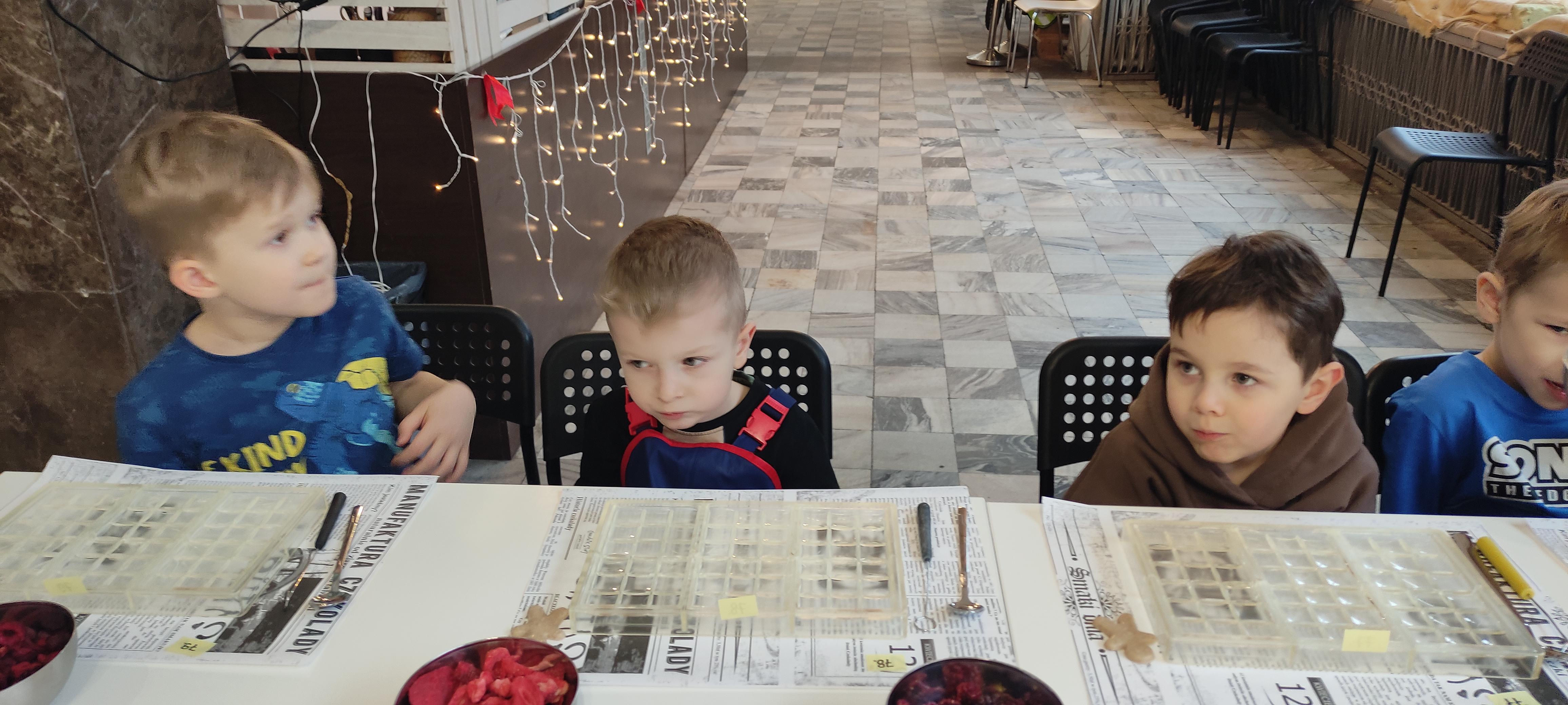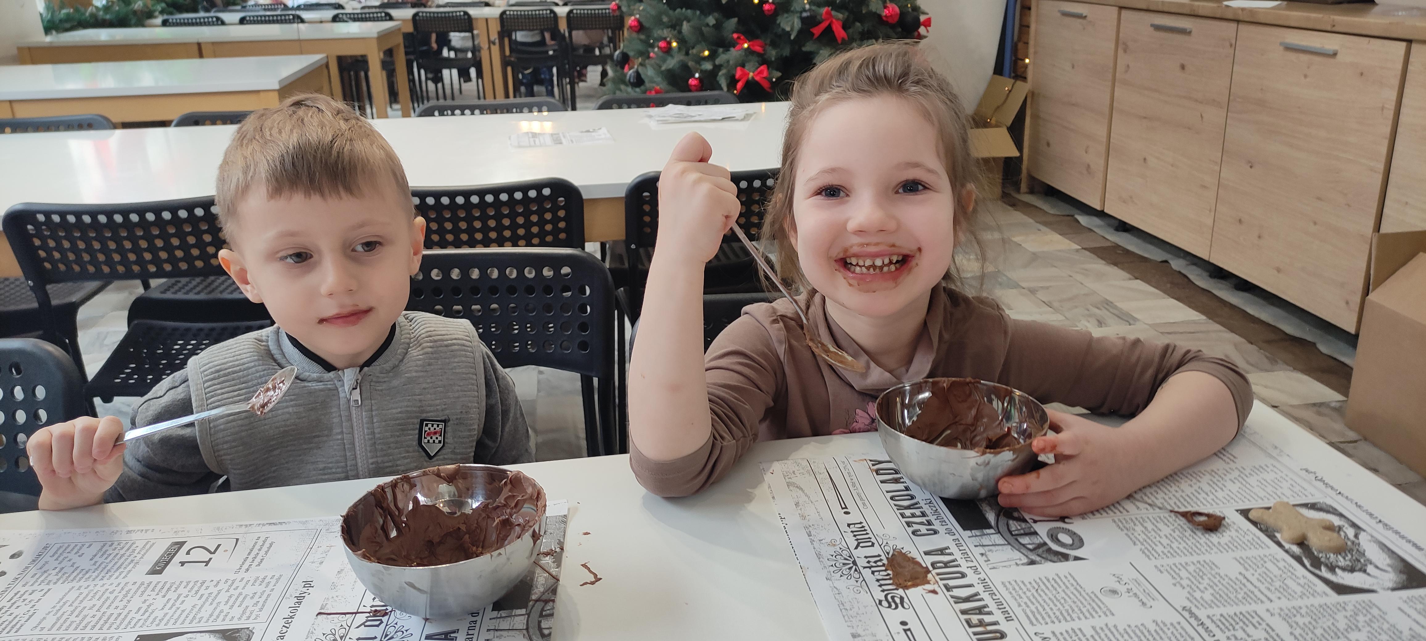w pobliskiej Manufakturze Czekolady. Tak sie spieszyły, że przybyły tam przed czasem, dzięki czemu miały okazję pobawić się przez chwilę na pobliskim placu zabaw. Potem czekała ich już tylko "ciężka praca", czyli samodzielne wykonanie tabliczki czekolady oraz czekoladowych pralinek. W przerwie degustacja pierniczków i gorącej czekolady oraz poznanie tajemnic uprawy ziaren kakaowca, kluczowego surowca do produkcji czekolady. Jak to wszystko wyglądało zobaczcie sami ...