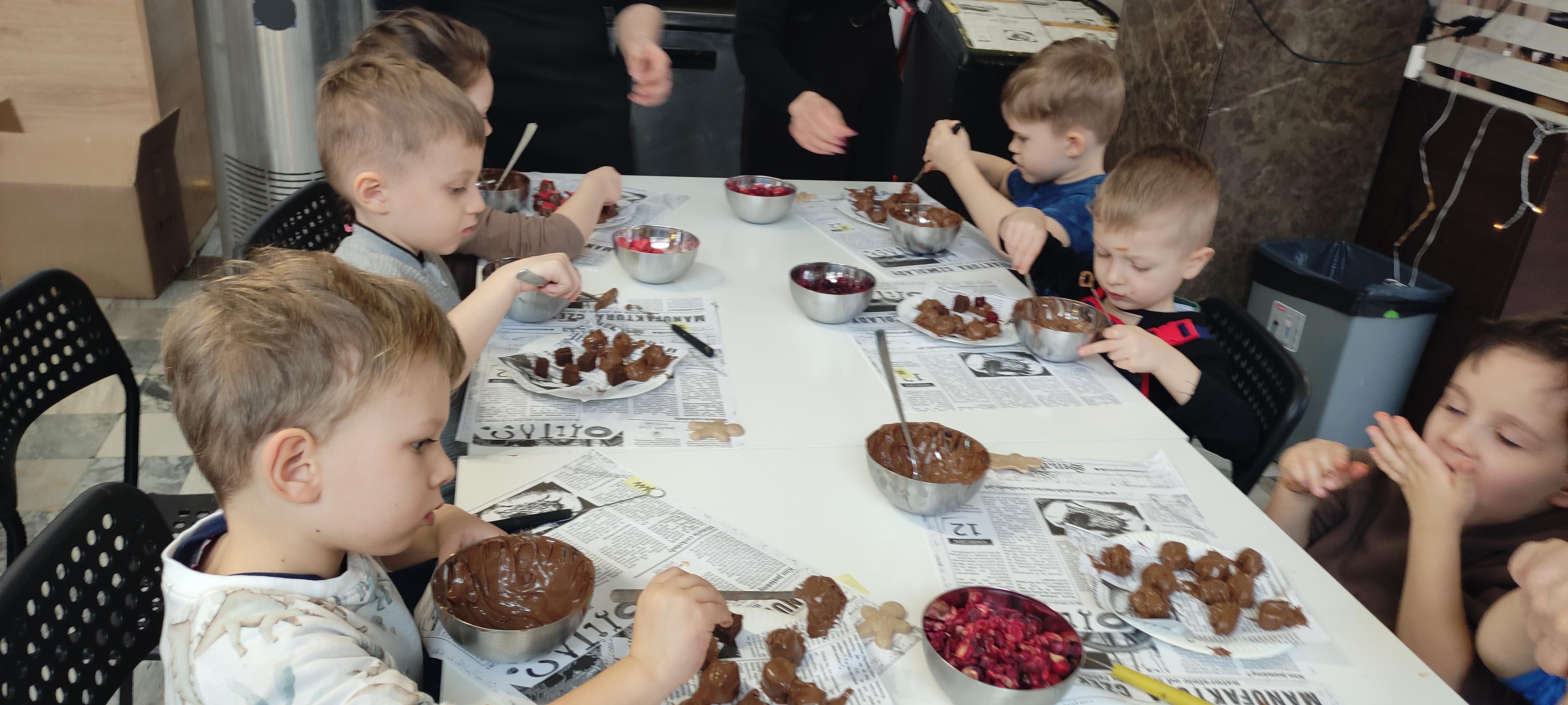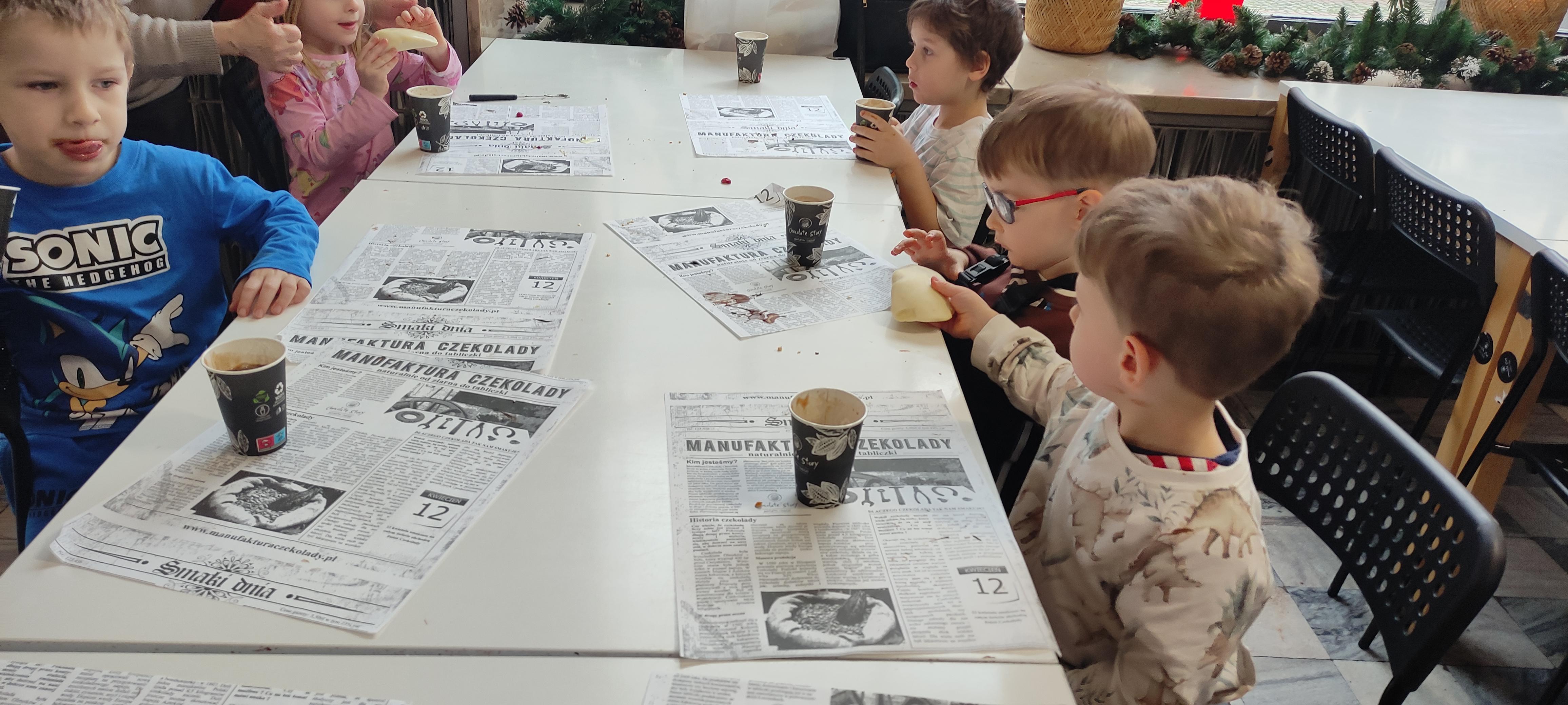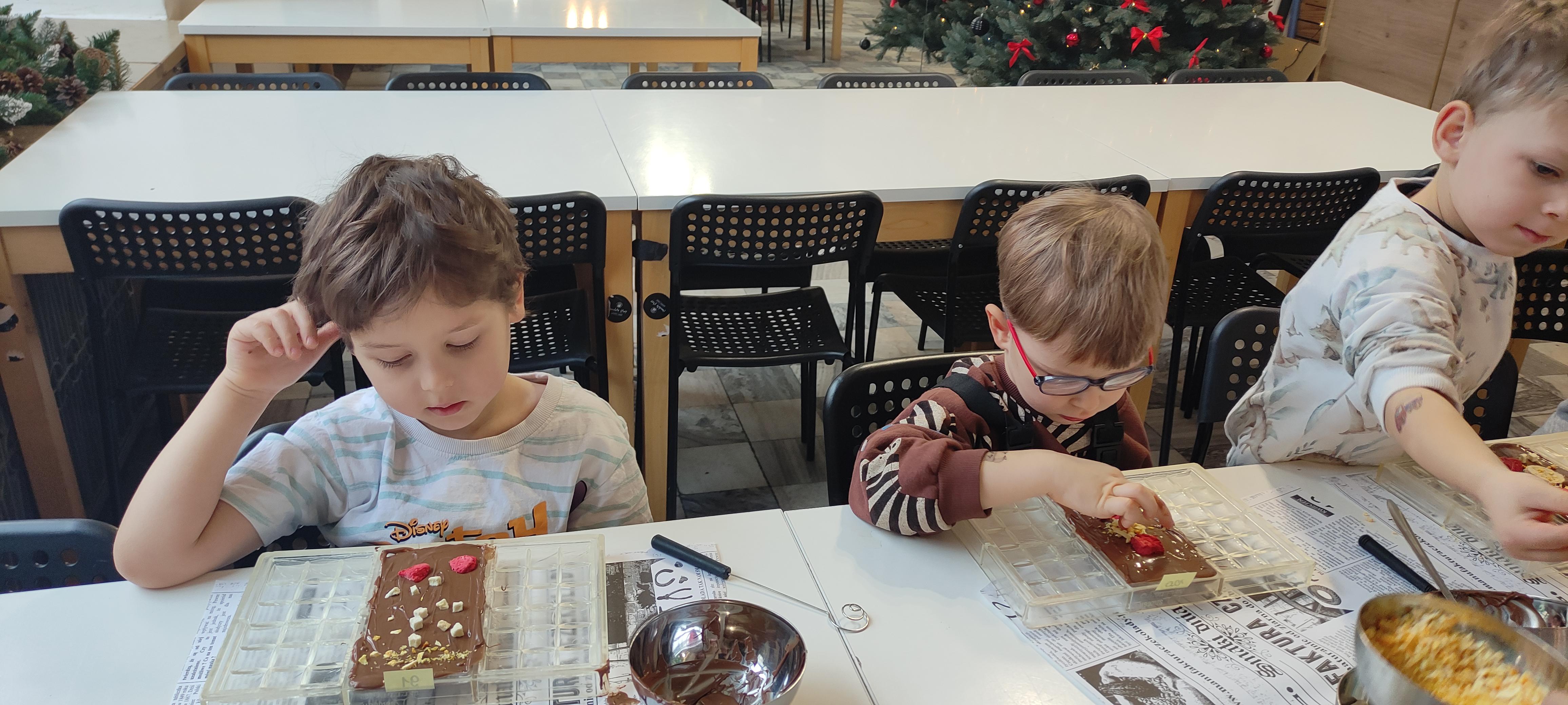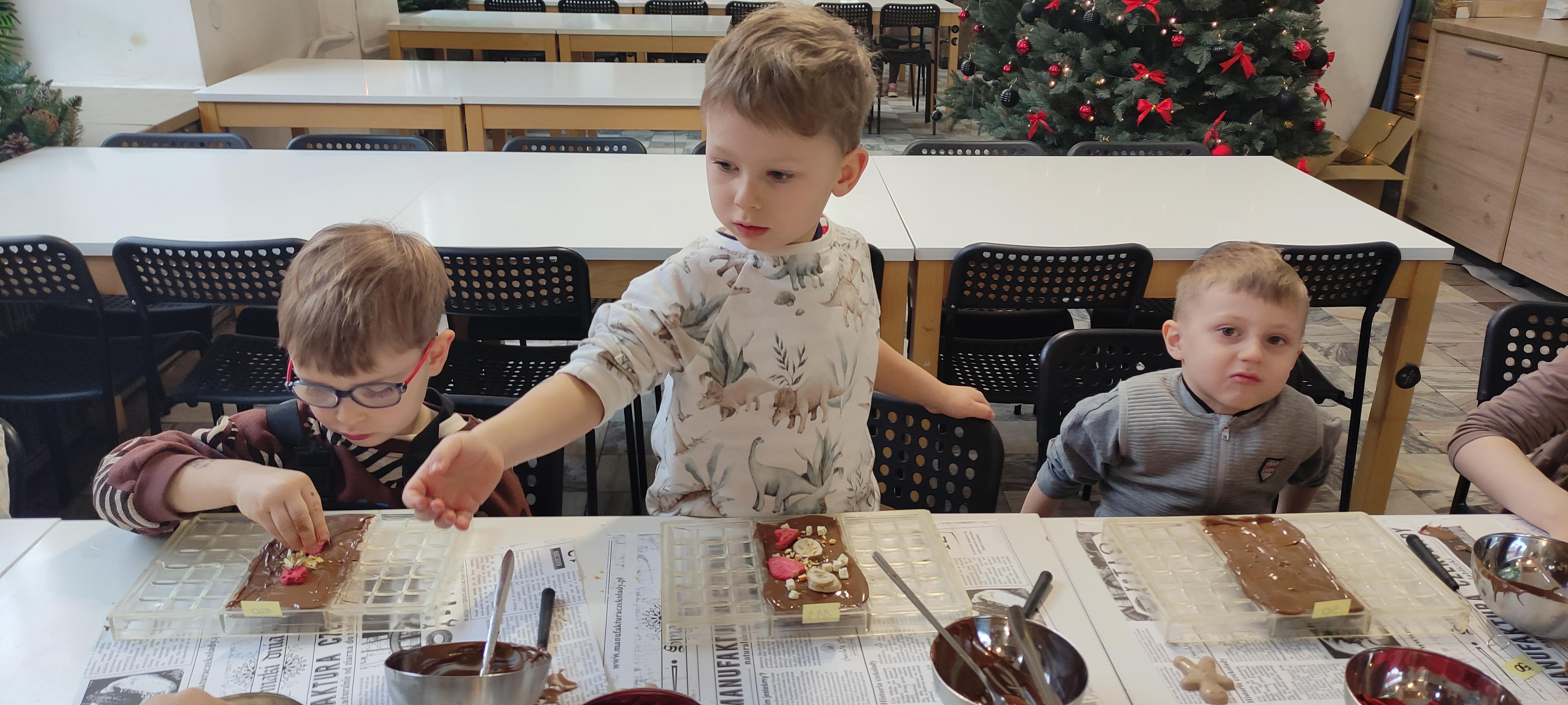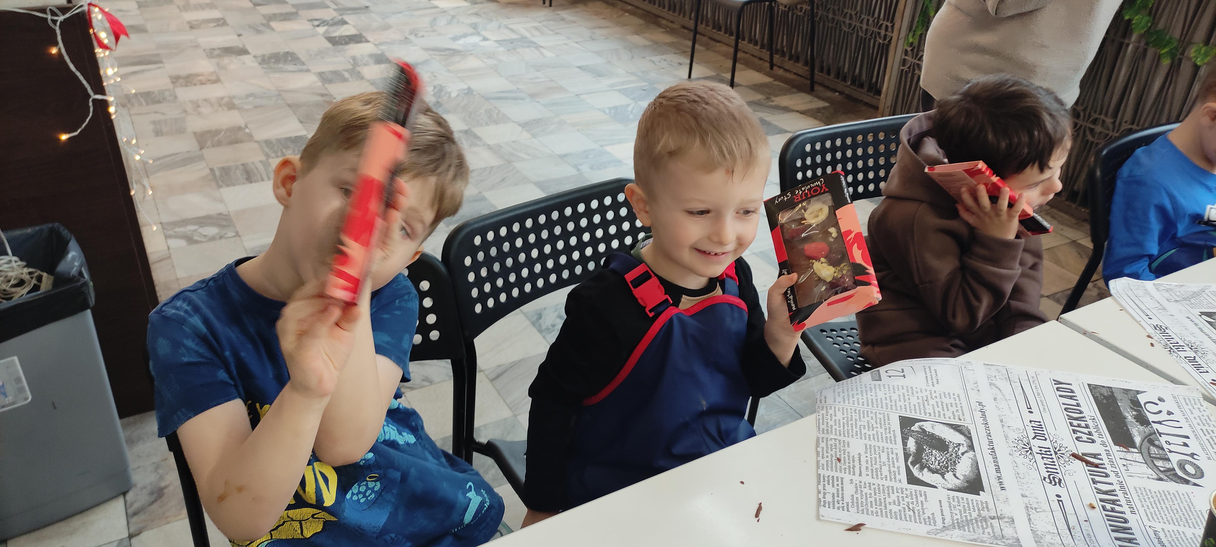 w pobliskiej Manufakturze Czekolady. Tak sie spieszyły, że przybyły tam przed czasem, dzięki czemu miały okazję pobawić się przez chwilę na pobliskim placu zabaw. Potem czekała ich już tylko "ciężka praca", czyli samodzielne wykonanie tabliczki czekolady oraz czekoladowych pralinek. W przerwie degustacja pierniczków i gorącej czekolady oraz poznanie tajemnic uprawy ziaren kakaowca, kluczowego surowca do produkcji czekolady. Jak to wszystko wyglądało zobaczcie sami ...