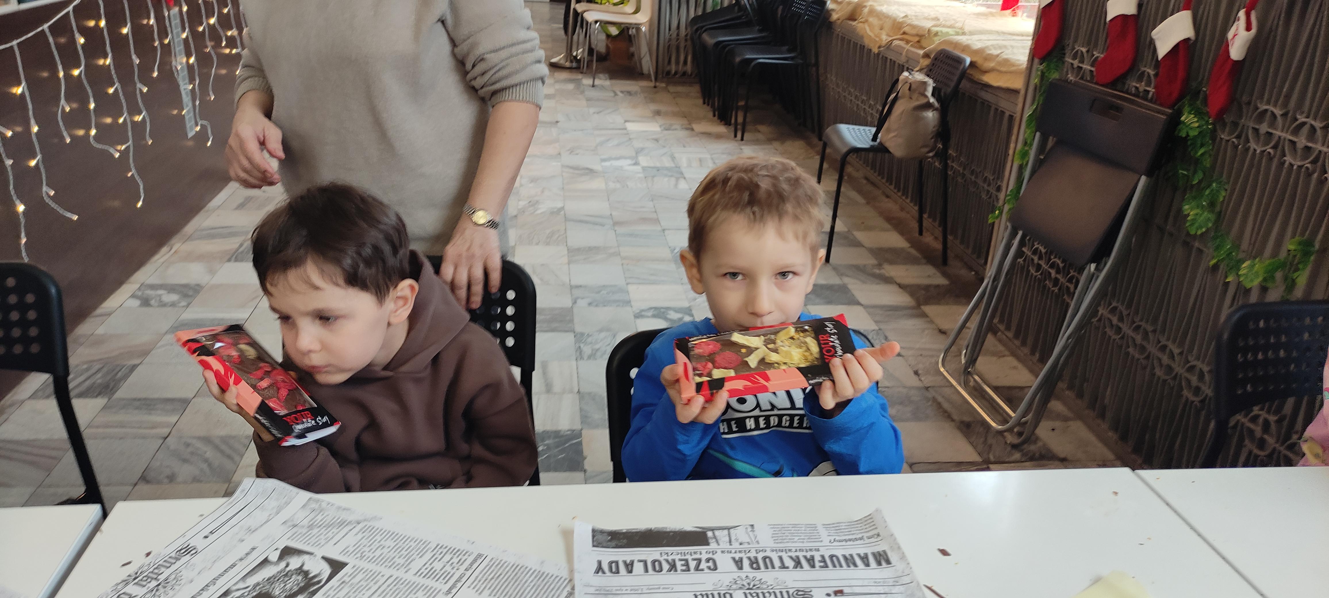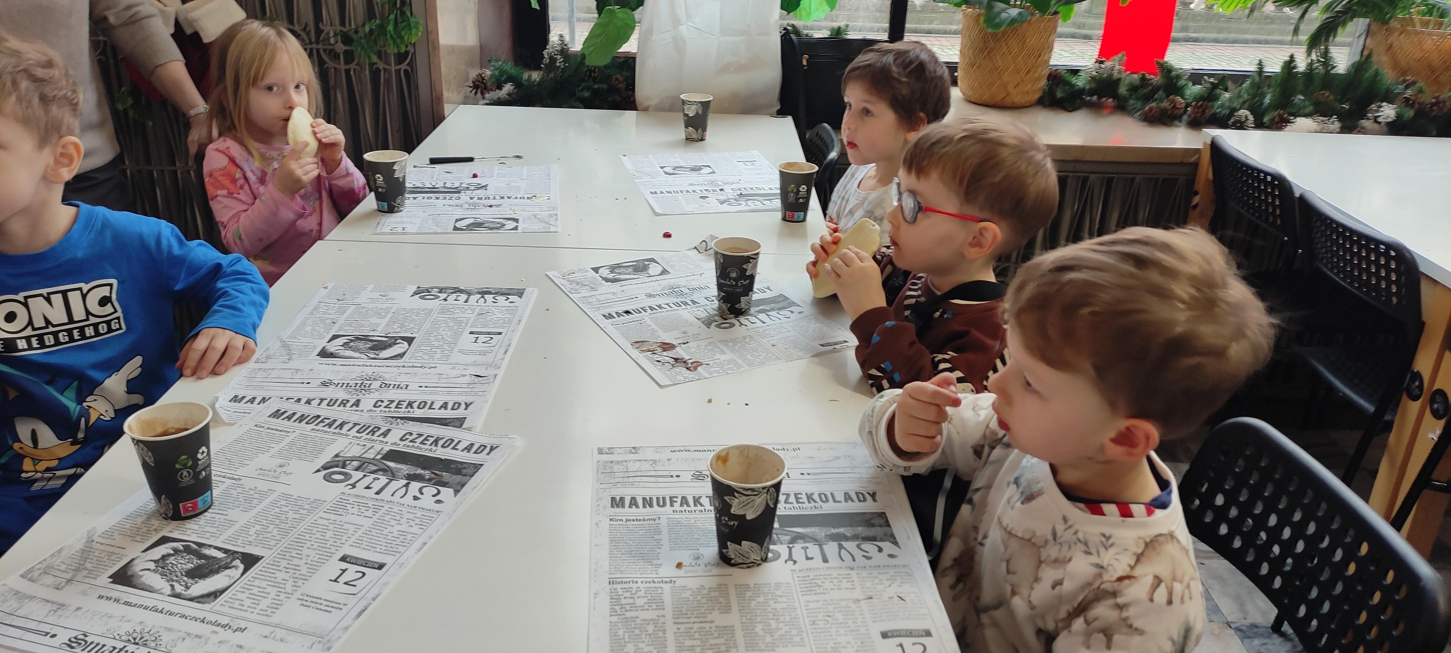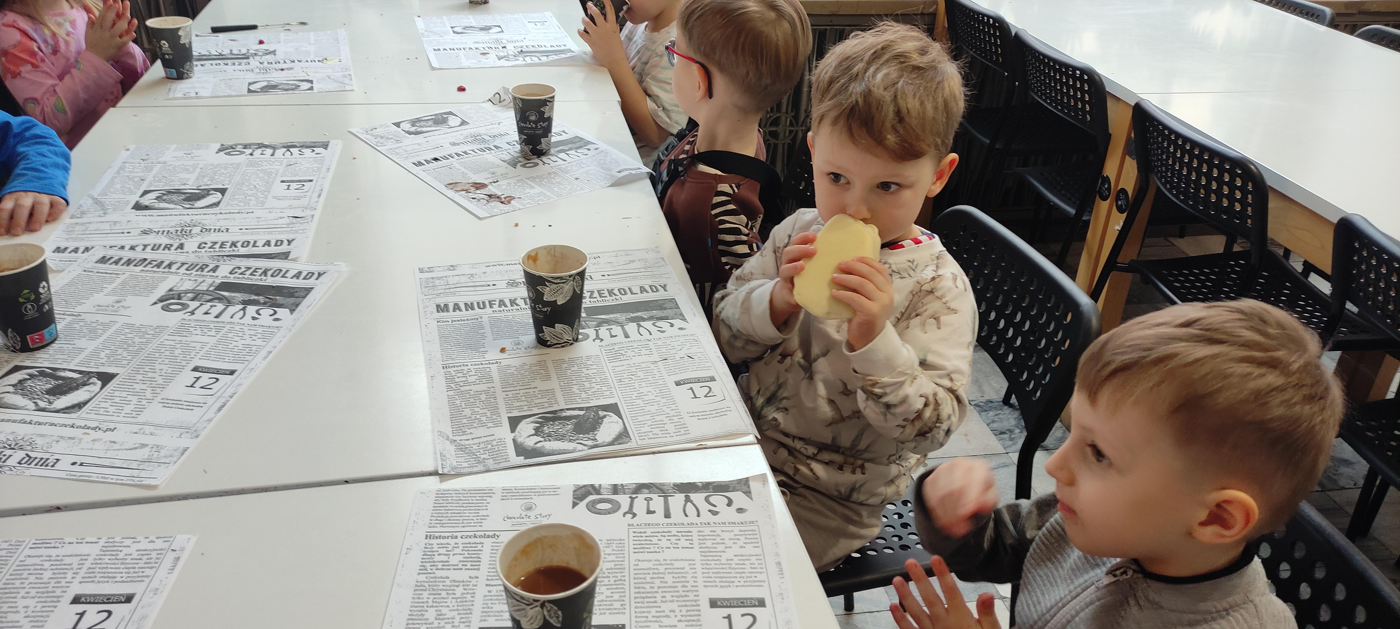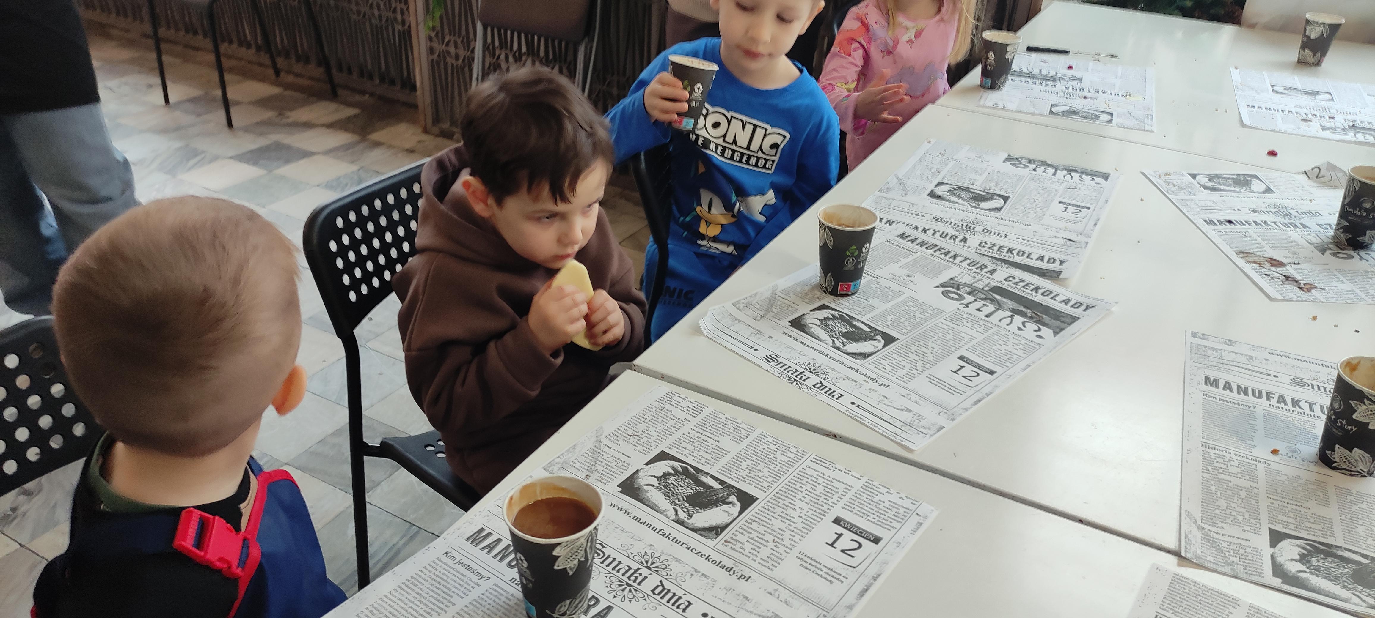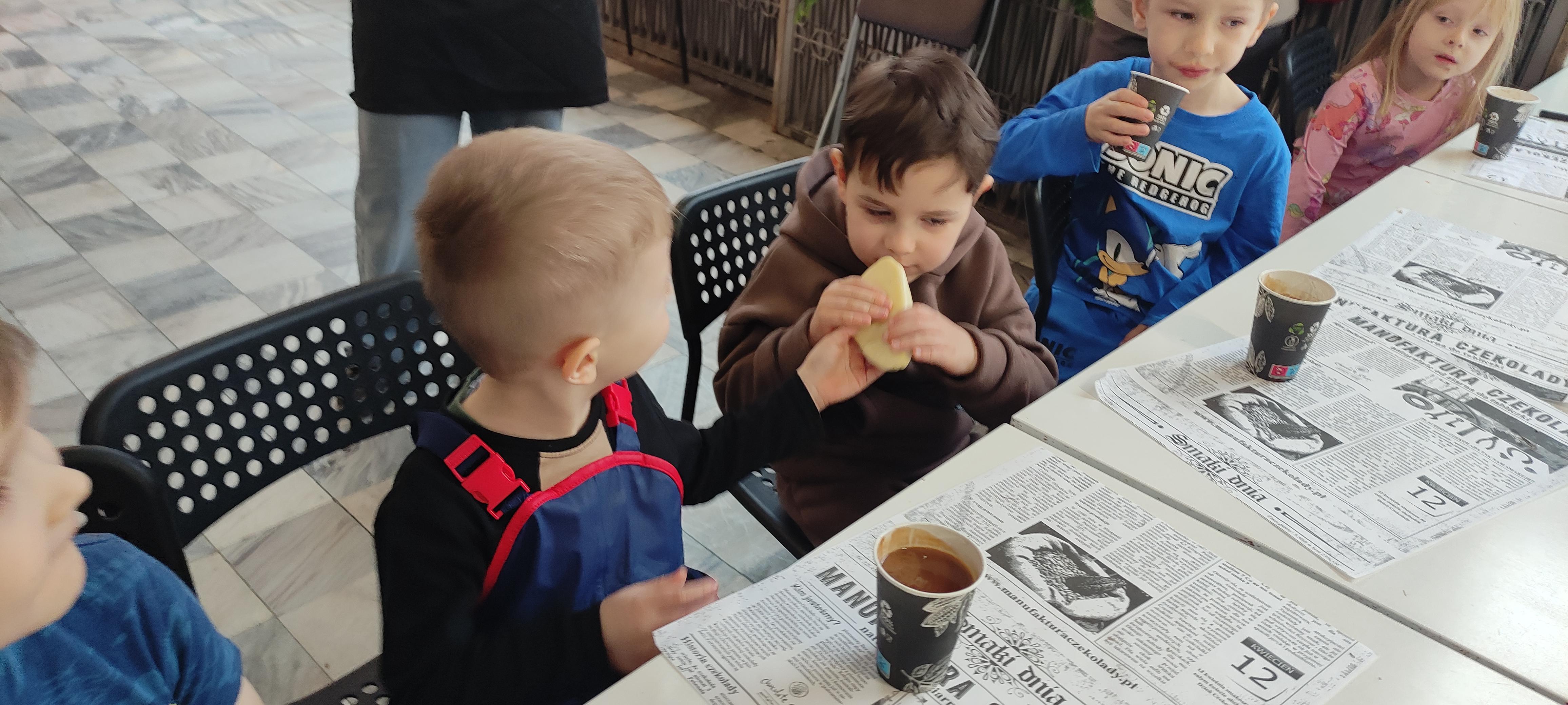 w pobliskiej Manufakturze Czekolady. Tak sie spieszyły, że przybyły tam przed czasem, dzięki czemu miały okazję pobawić się przez chwilę na pobliskim placu zabaw. Potem czekała ich już tylko "ciężka praca", czyli samodzielne wykonanie tabliczki czekolady oraz czekoladowych pralinek. W przerwie degustacja pierniczków i gorącej czekolady oraz poznanie tajemnic uprawy ziaren kakaowca, kluczowego surowca do produkcji czekolady. Jak to wszystko wyglądało zobaczcie sami ...