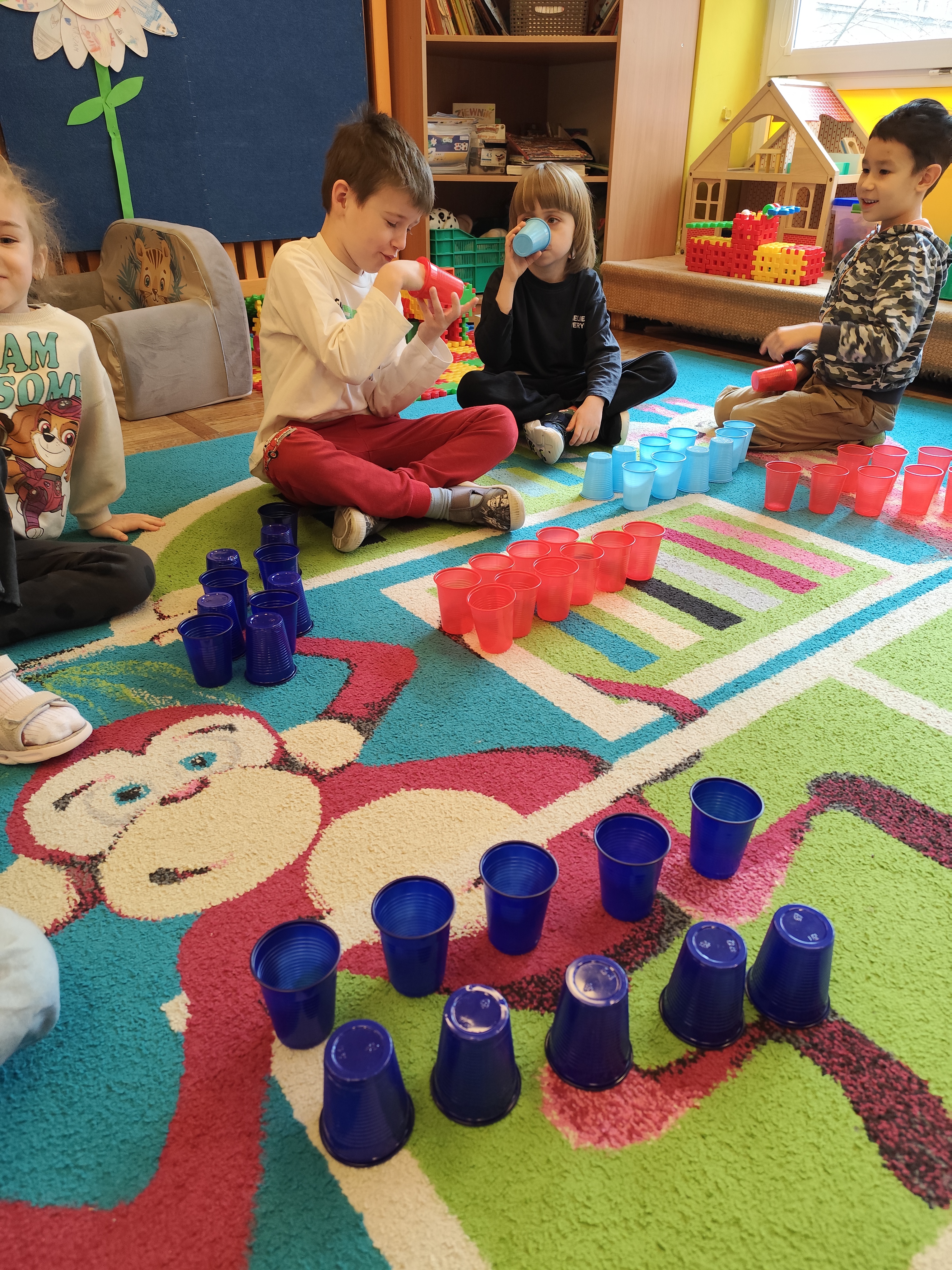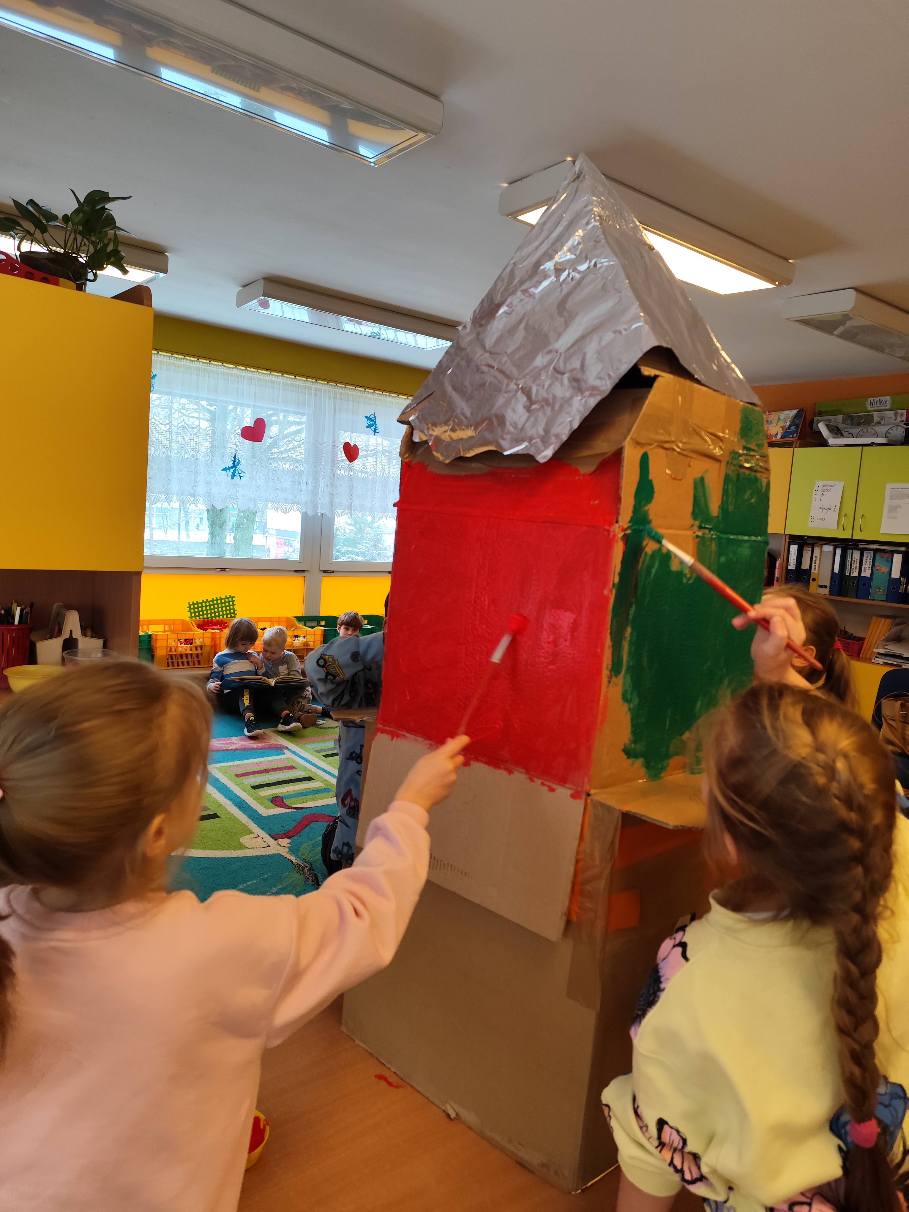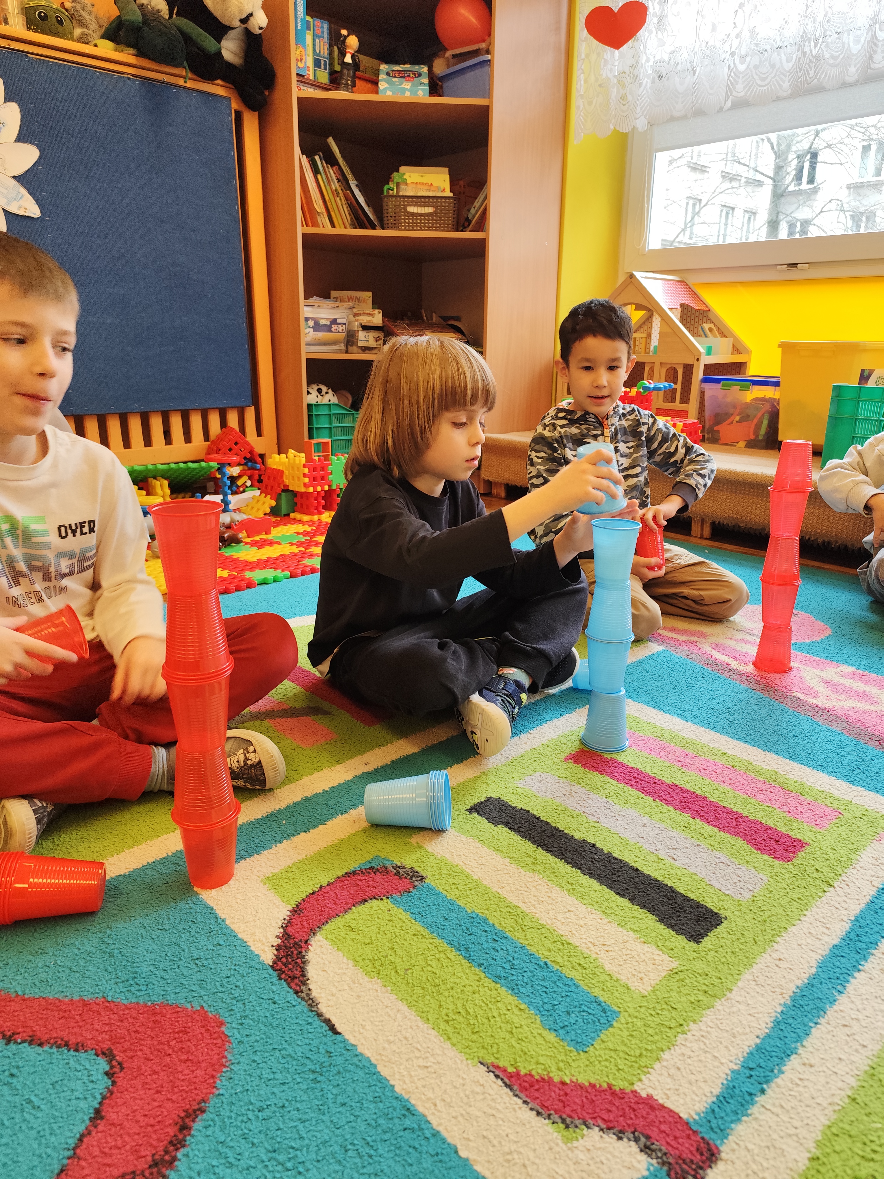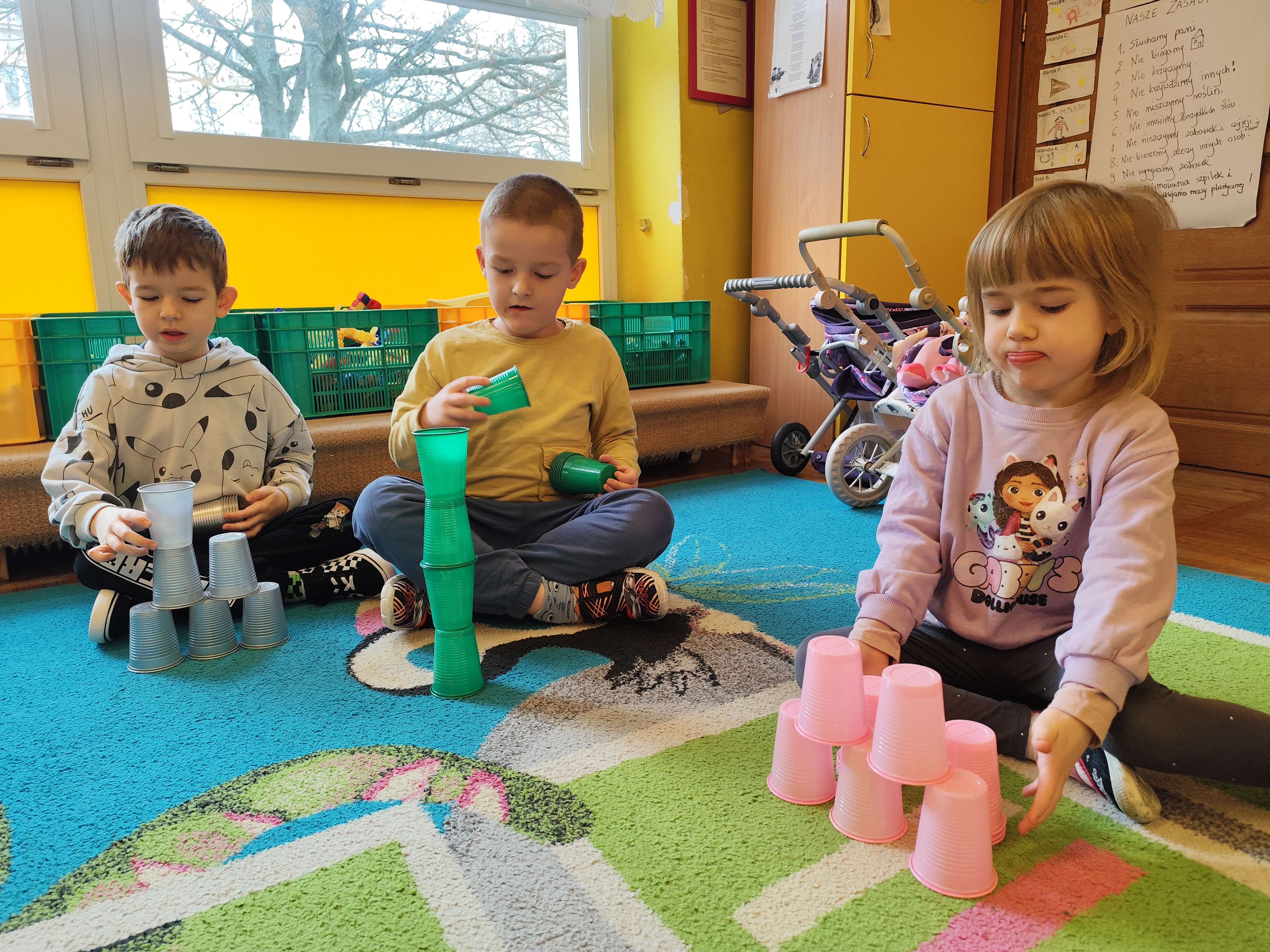 W styczniu obchodziliśmy Dzień Babci i Dziadka, mieliśmy też duuużo zabawy, w lutym układaliśmy rytmy i liczyliśmy używając kolorowych kubeczków. Tworzylismy także prace do projektu "Wyruszamy w świat sztuki" oraz budowaliśmy i malowaliśmy rakietę.