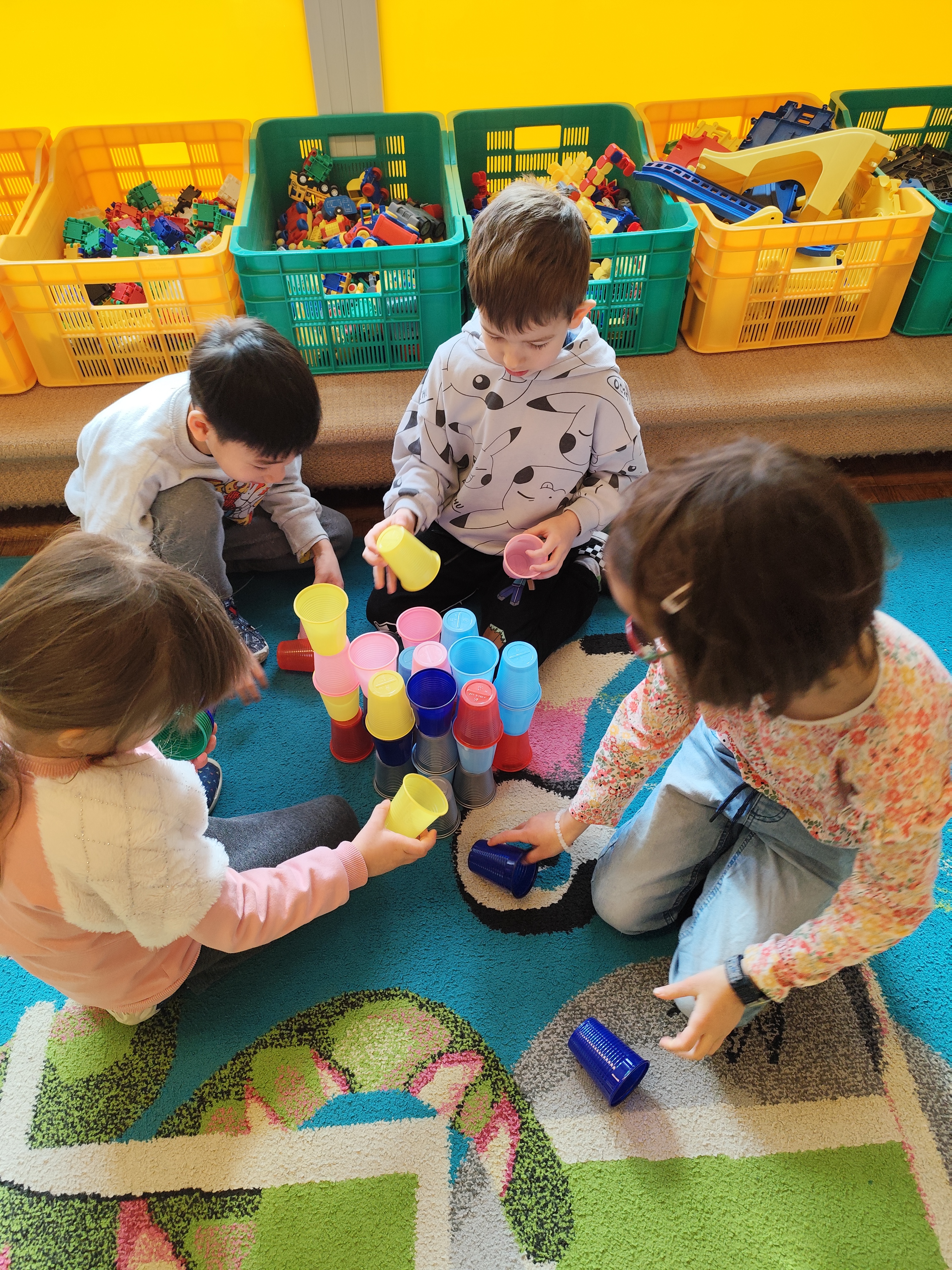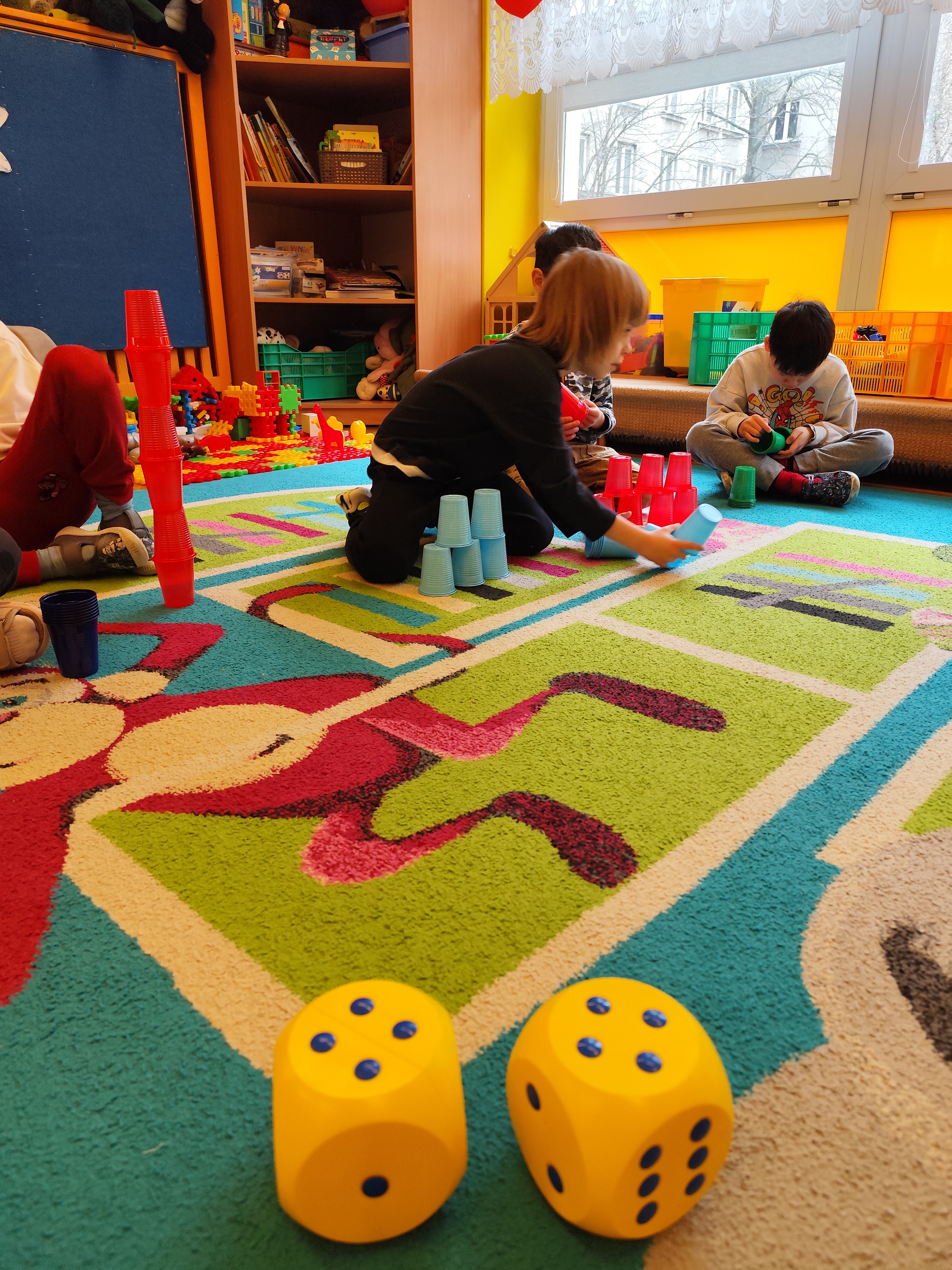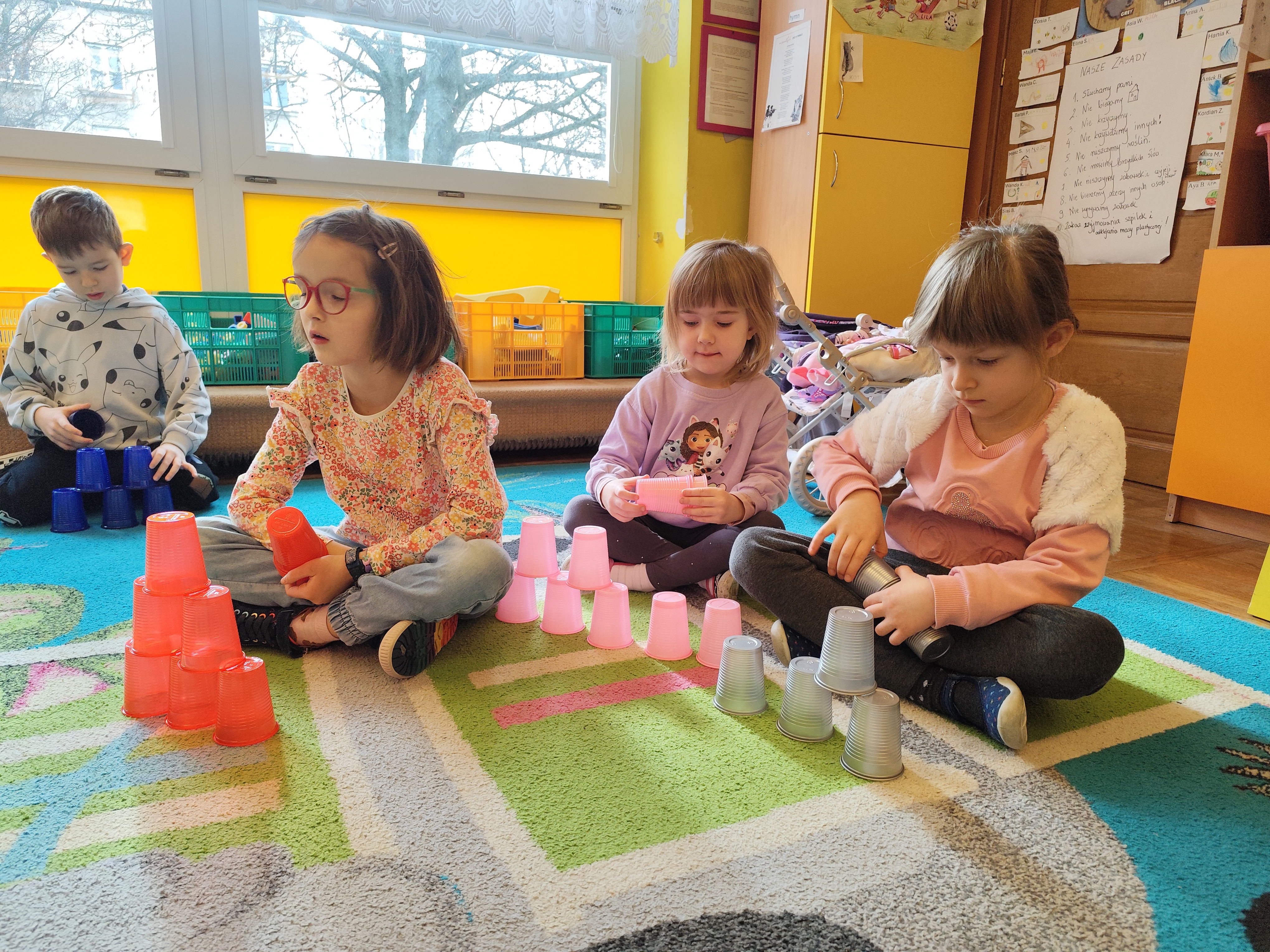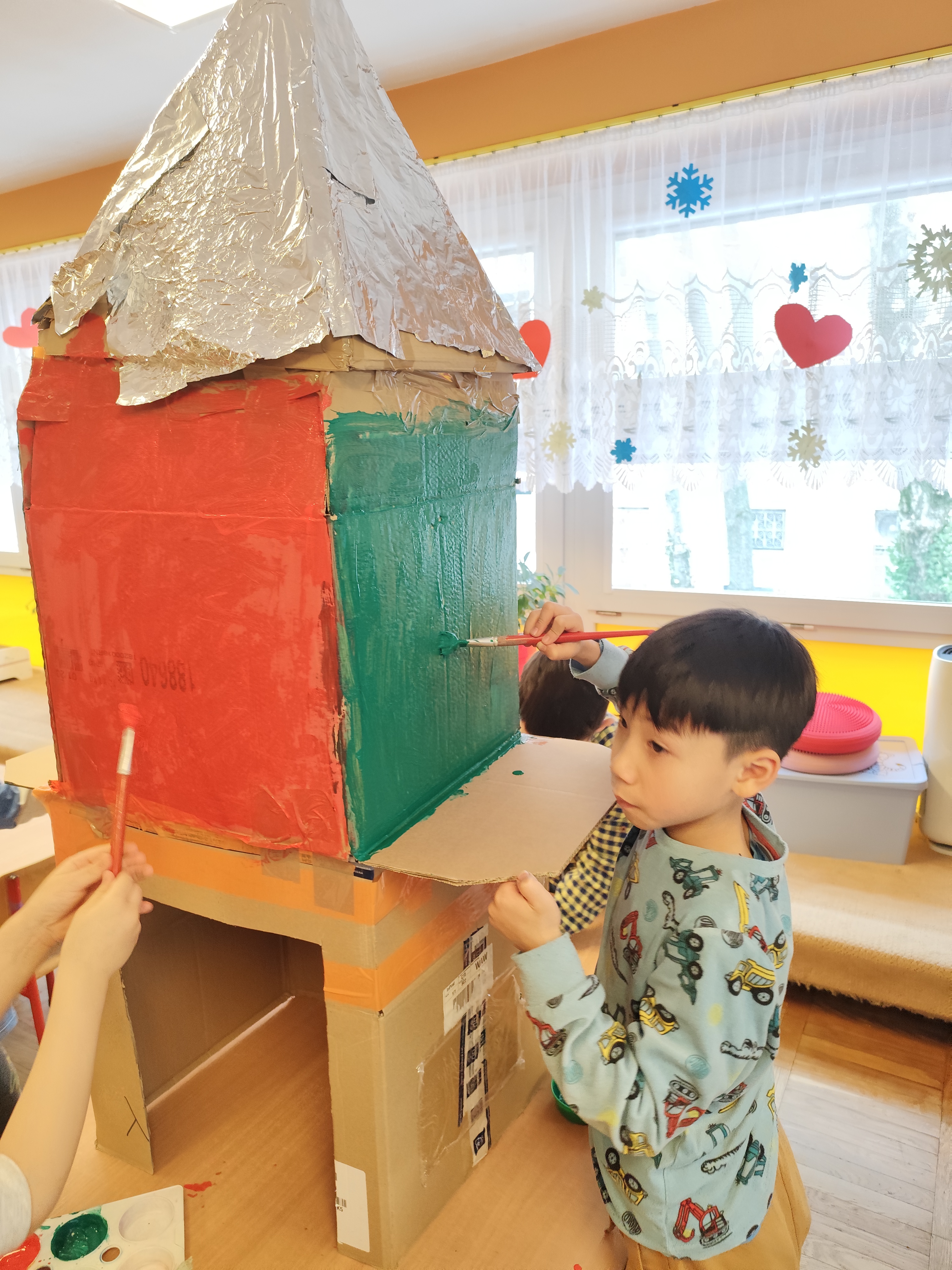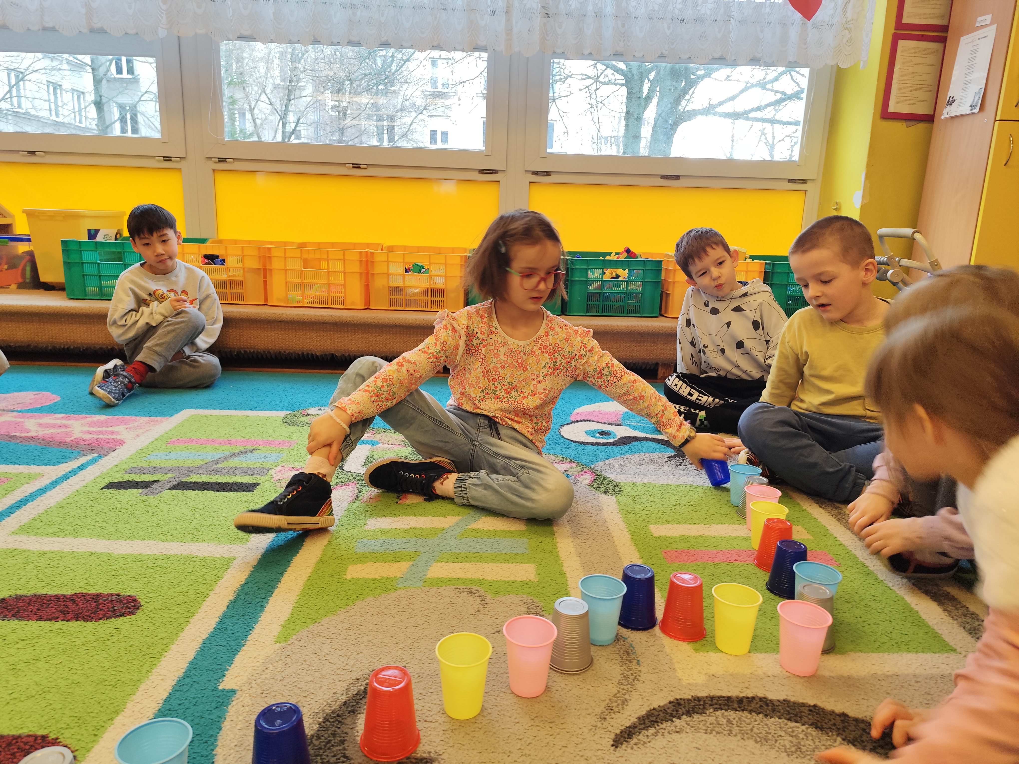 W styczniu obchodziliśmy Dzień Babci i Dziadka, mieliśmy też duuużo zabawy, w lutym układaliśmy rytmy i liczyliśmy używając kolorowych kubeczków. Tworzylismy także prace do projektu "Wyruszamy w świat sztuki" oraz budowaliśmy i malowaliśmy rakietę.