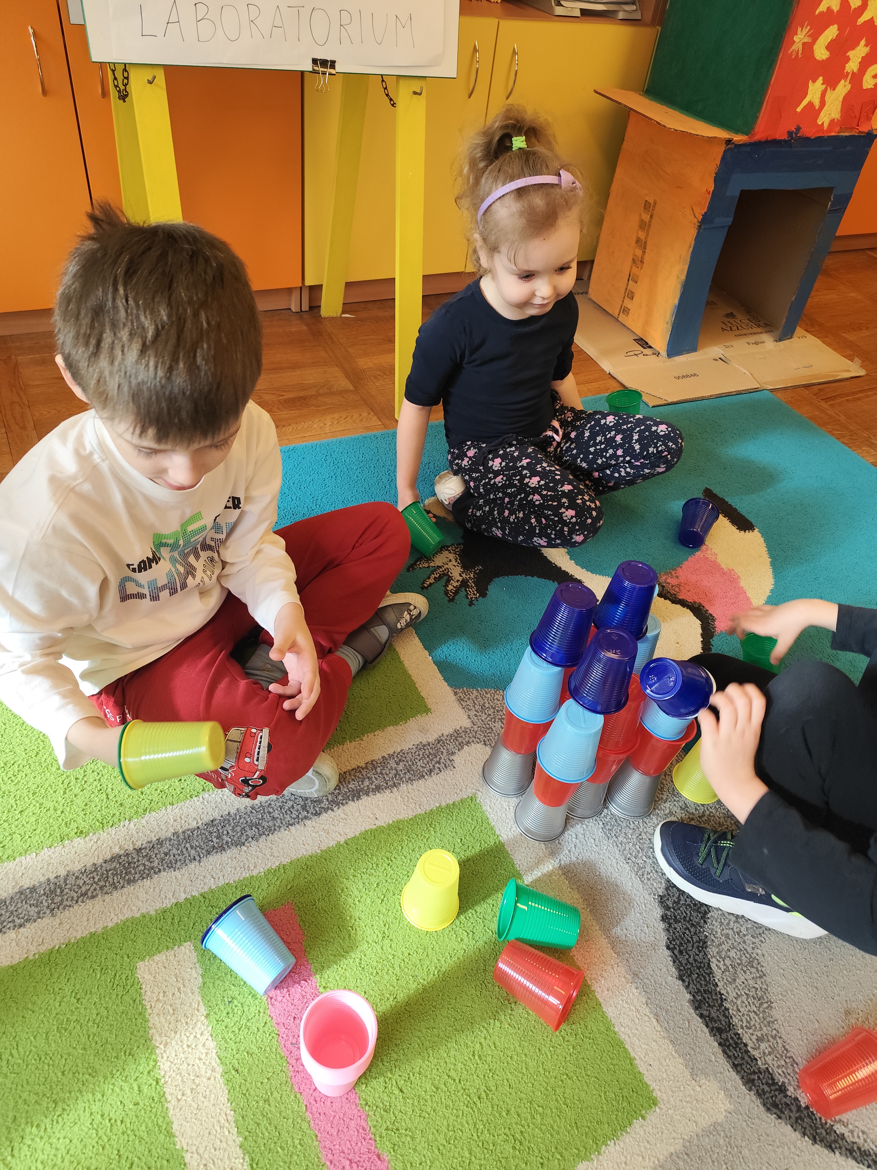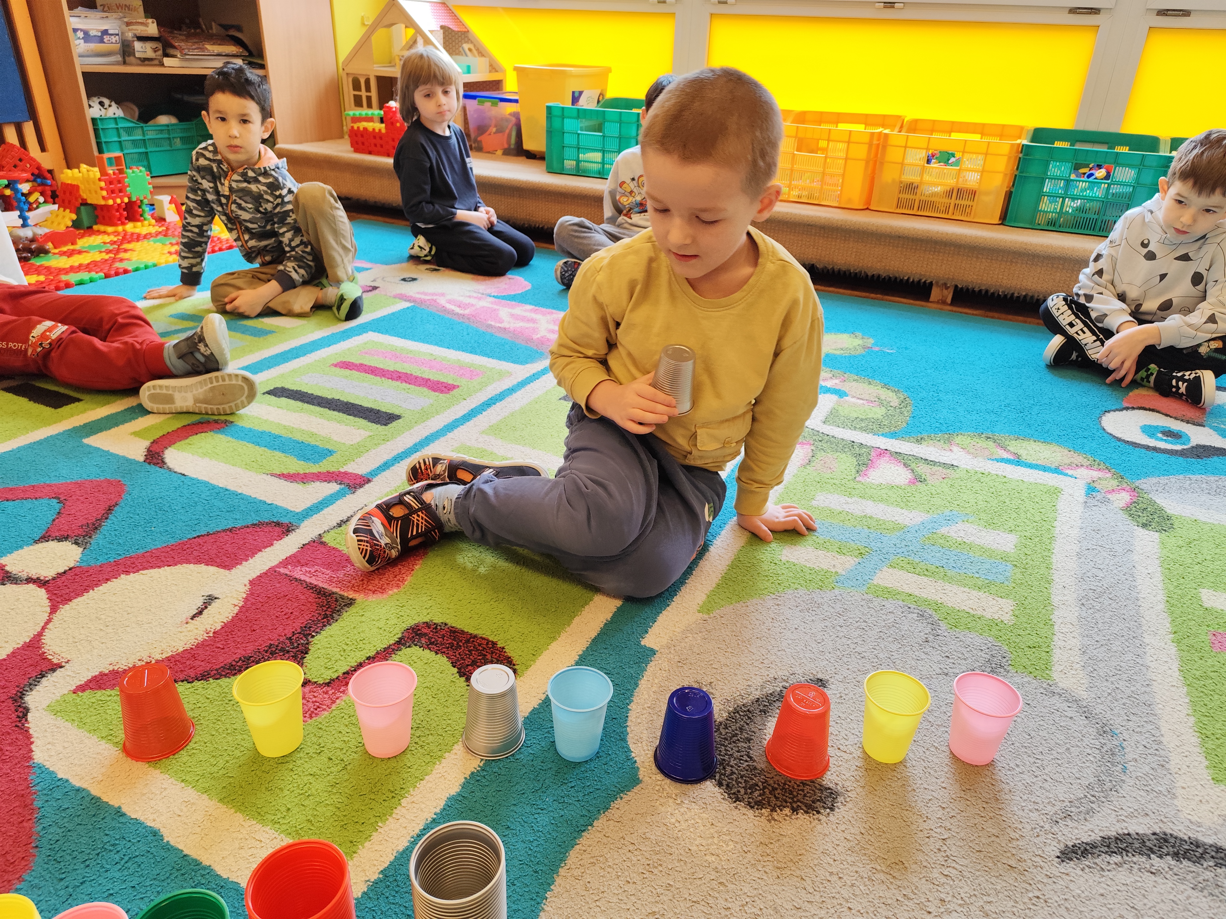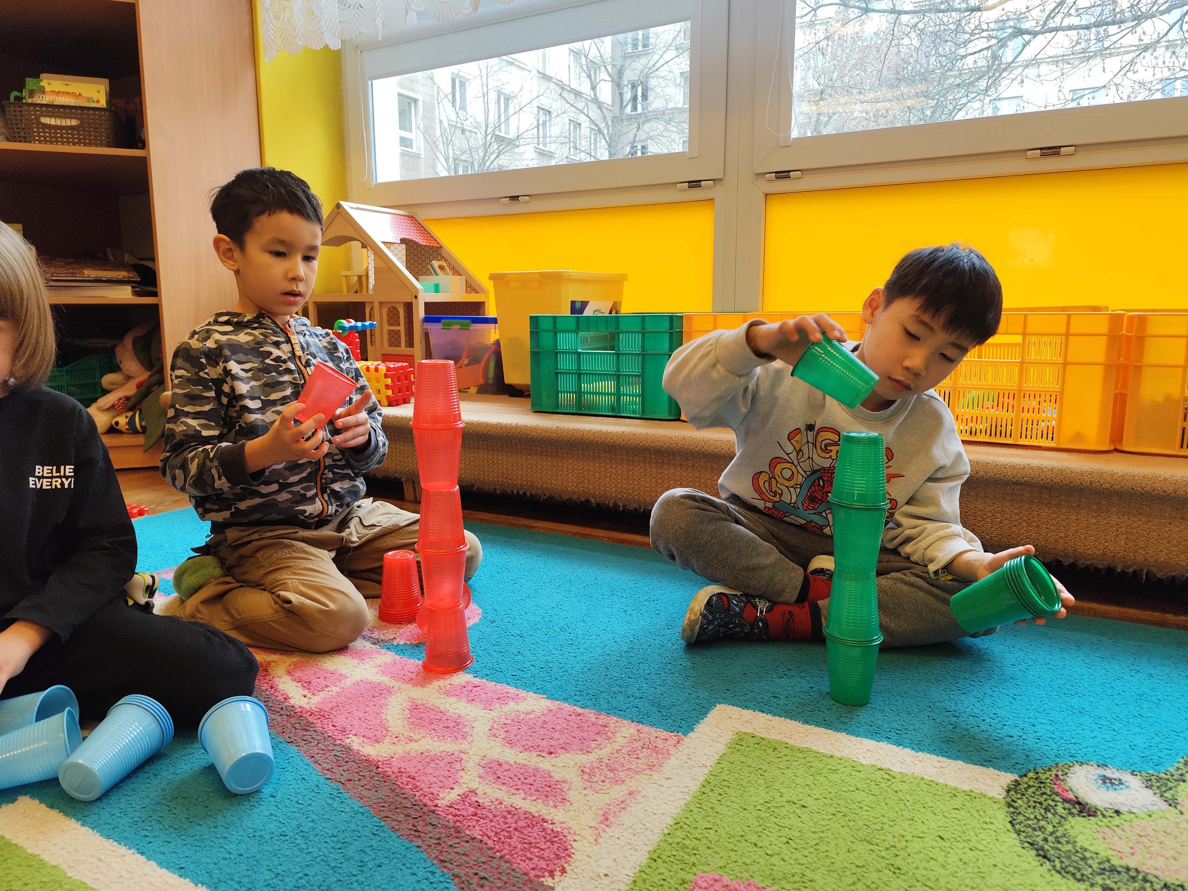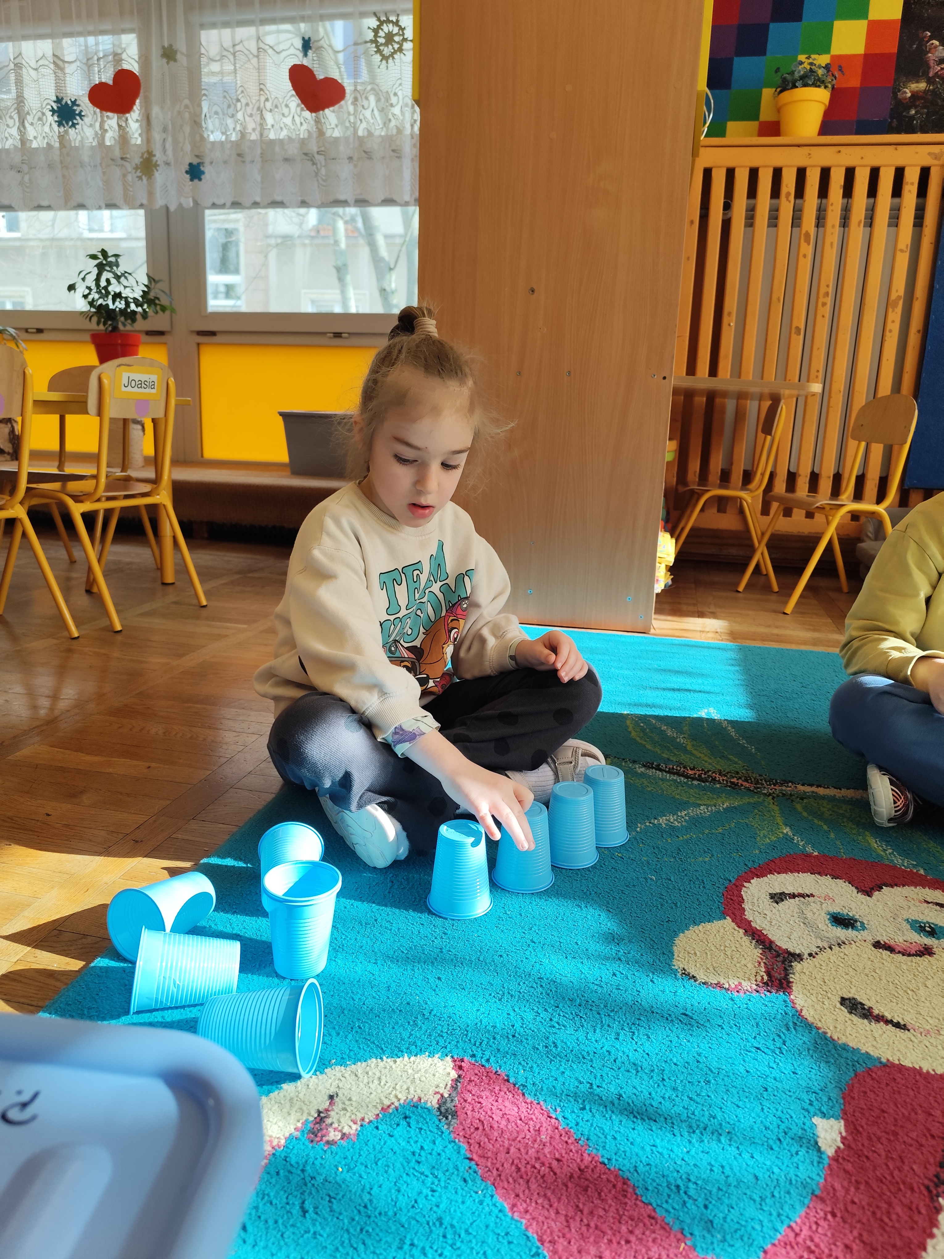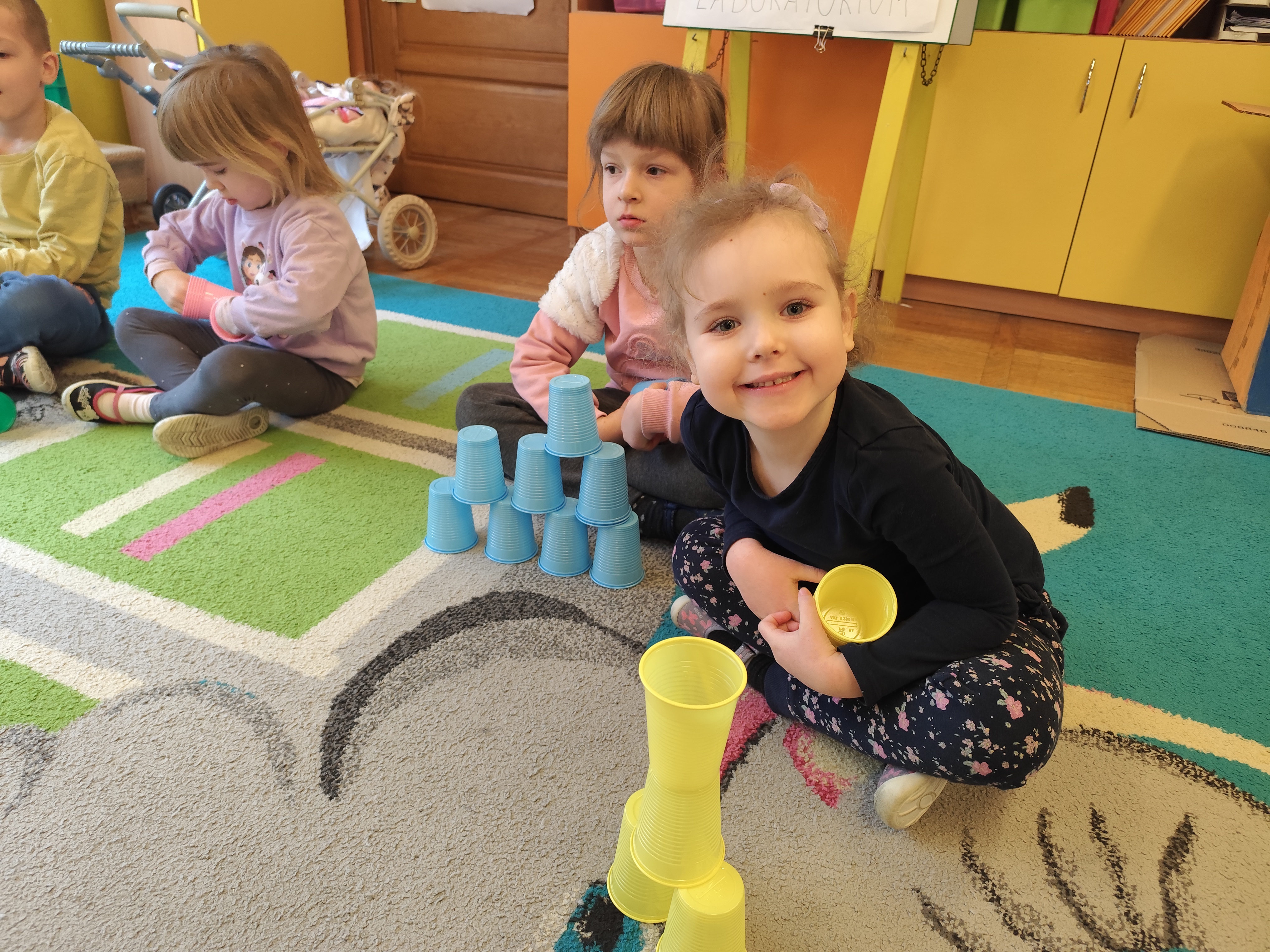 W styczniu obchodziliśmy Dzień Babci i Dziadka, mieliśmy też duuużo zabawy, w lutym układaliśmy rytmy i liczyliśmy używając kolorowych kubeczków. Tworzylismy także prace do projektu "Wyruszamy w świat sztuki" oraz budowaliśmy i malowaliśmy rakietę.