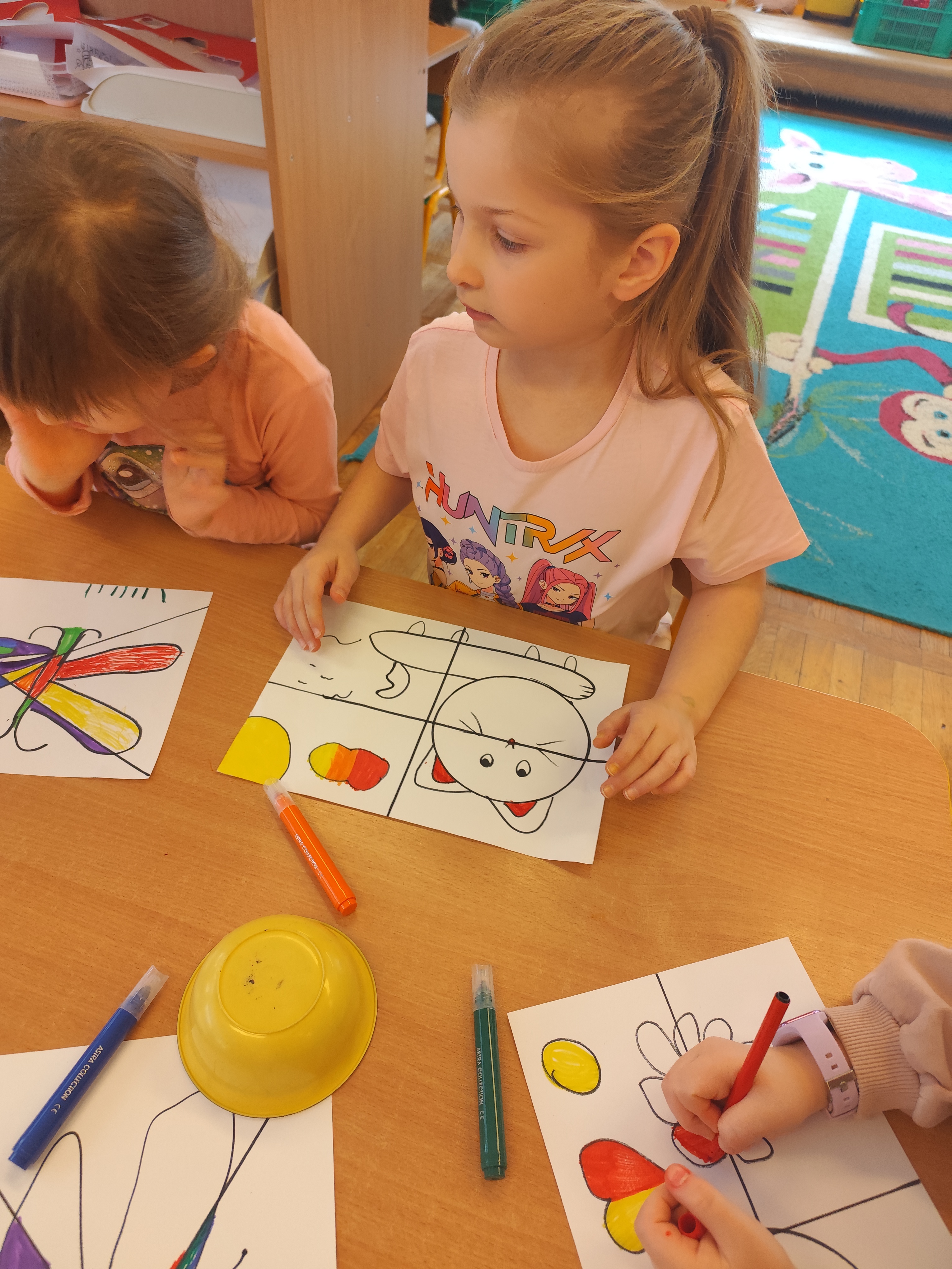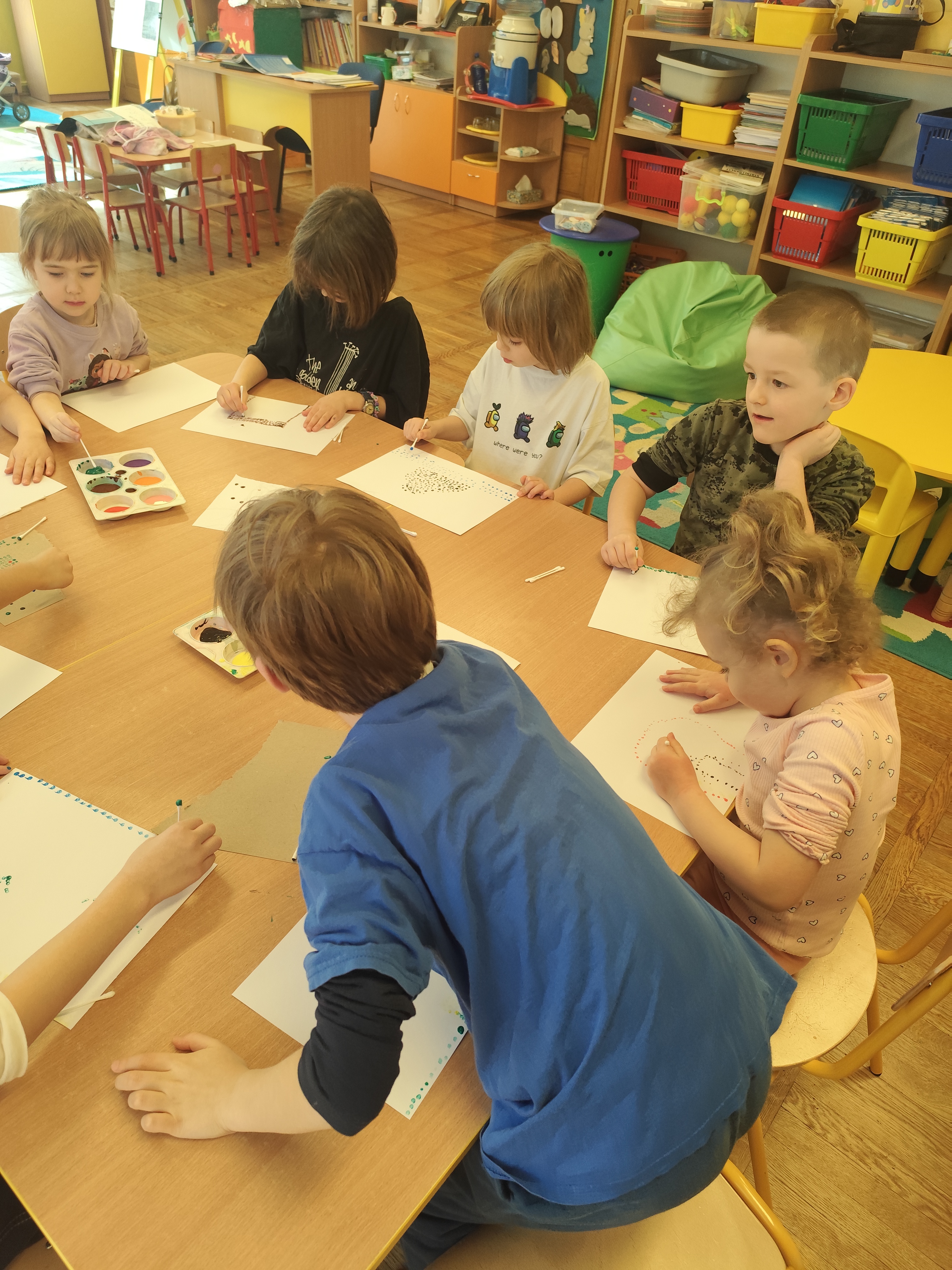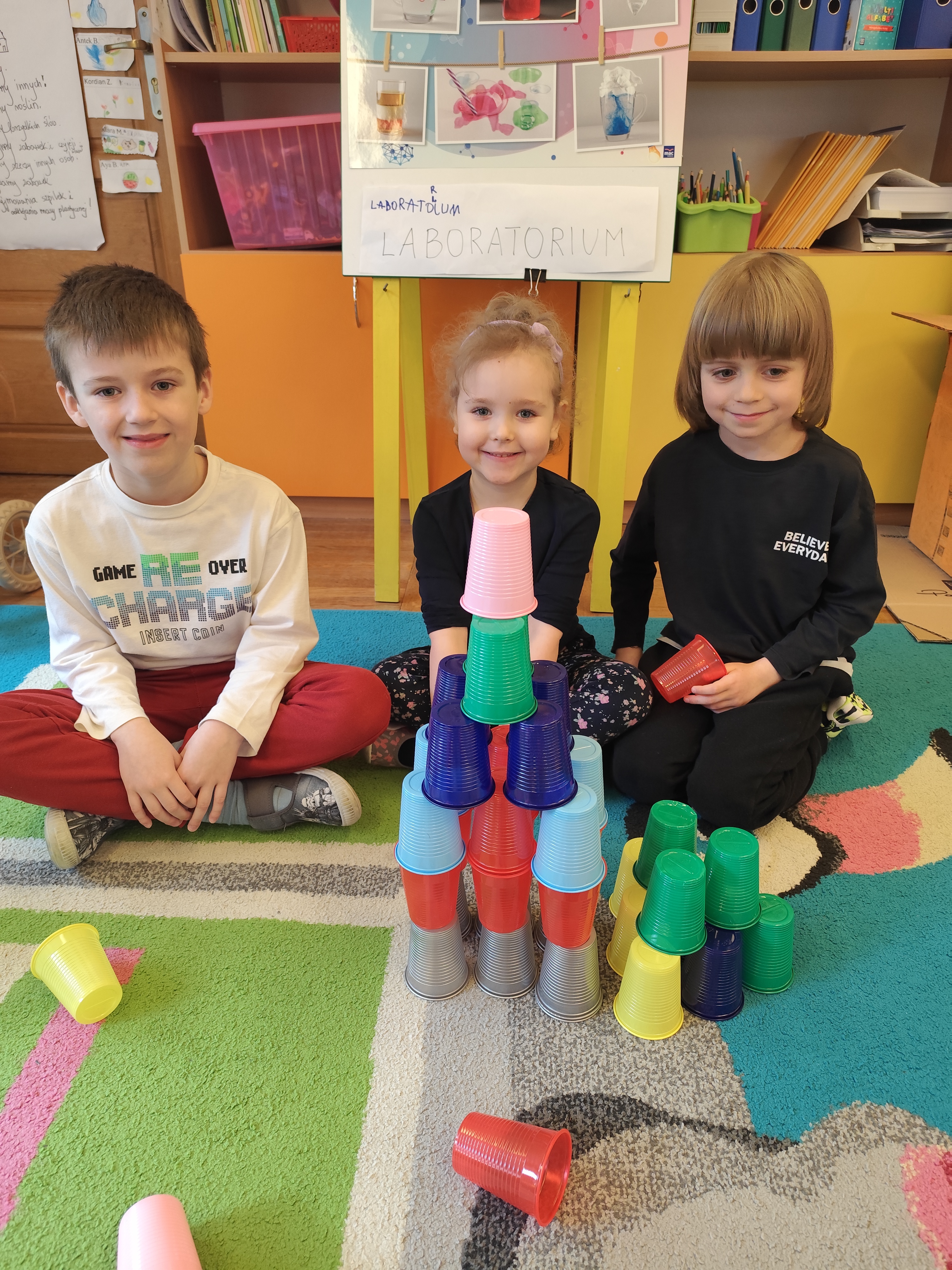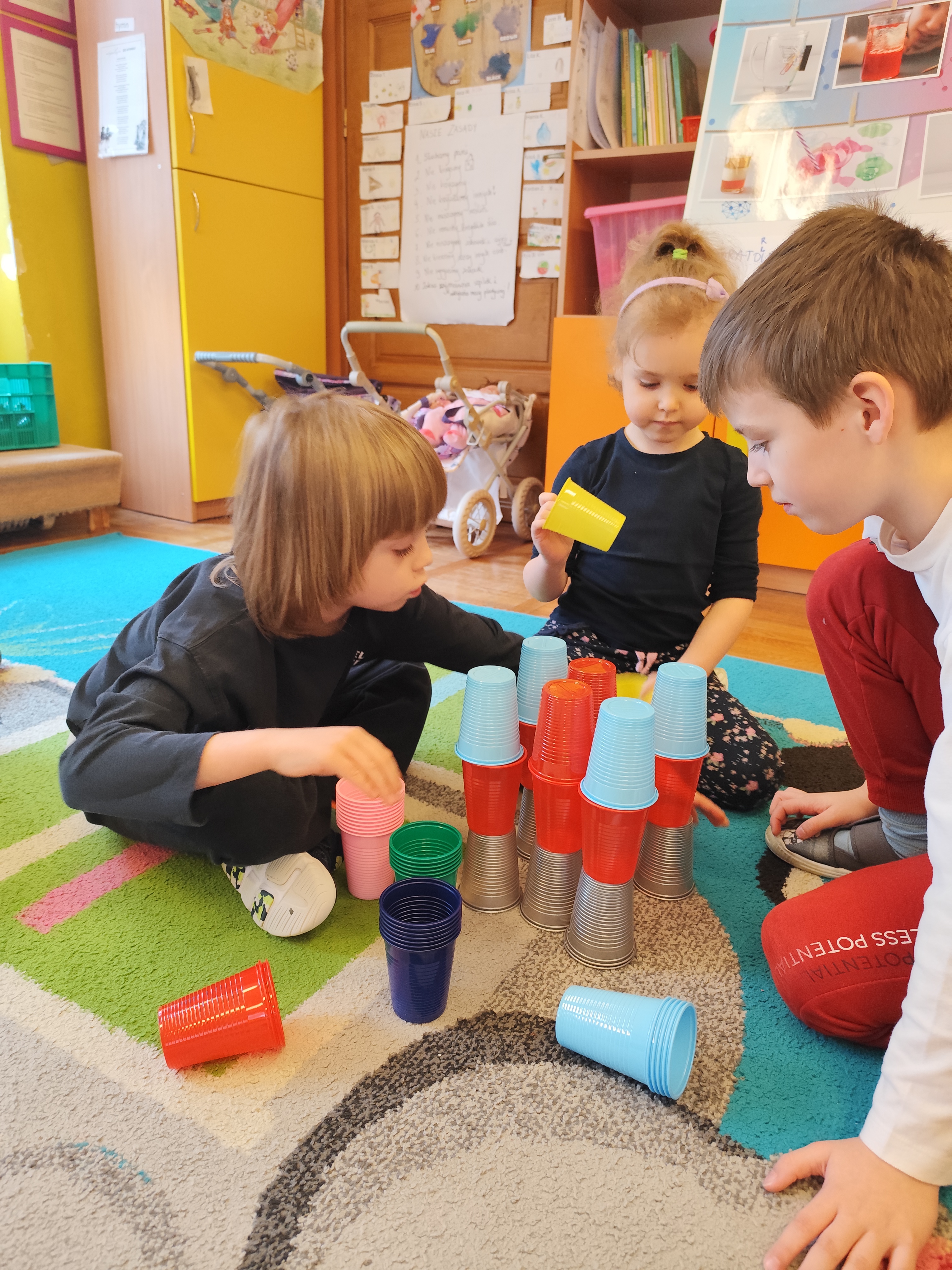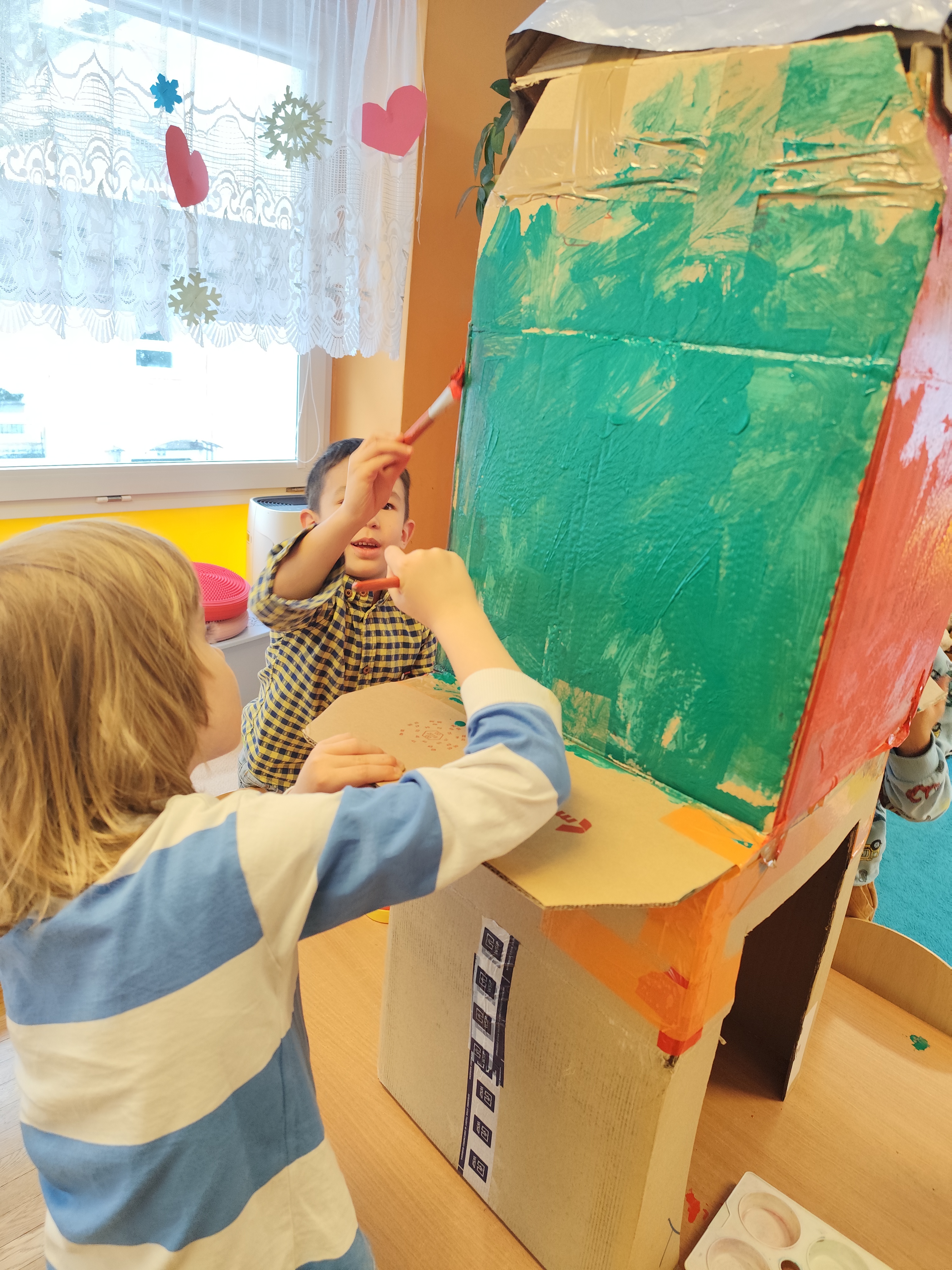 W styczniu obchodziliśmy Dzień Babci i Dziadka, mieliśmy też duuużo zabawy, w lutym układaliśmy rytmy i liczyliśmy używając kolorowych kubeczków. Tworzylismy także prace do projektu "Wyruszamy w świat sztuki" oraz budowaliśmy i malowaliśmy rakietę.