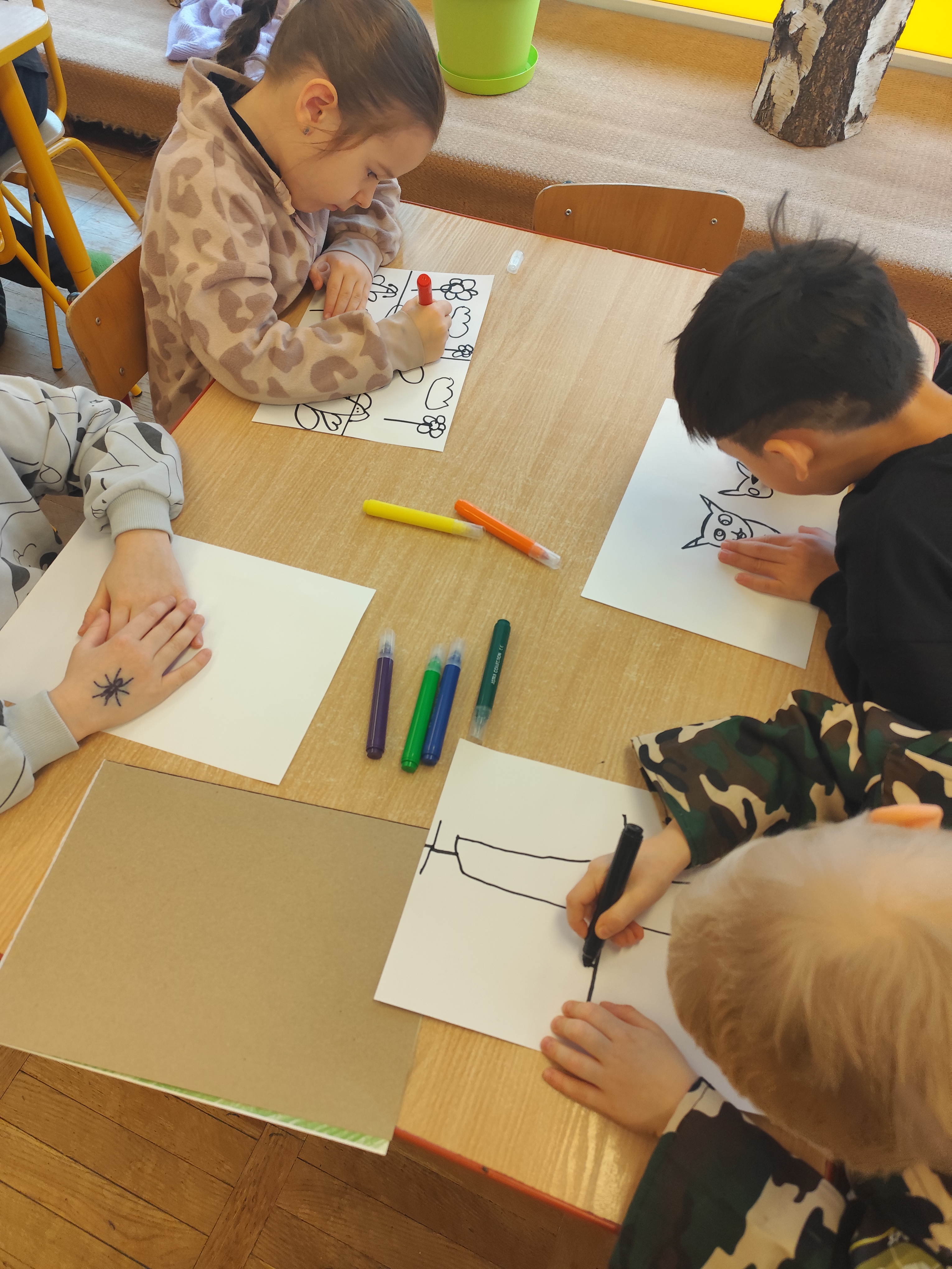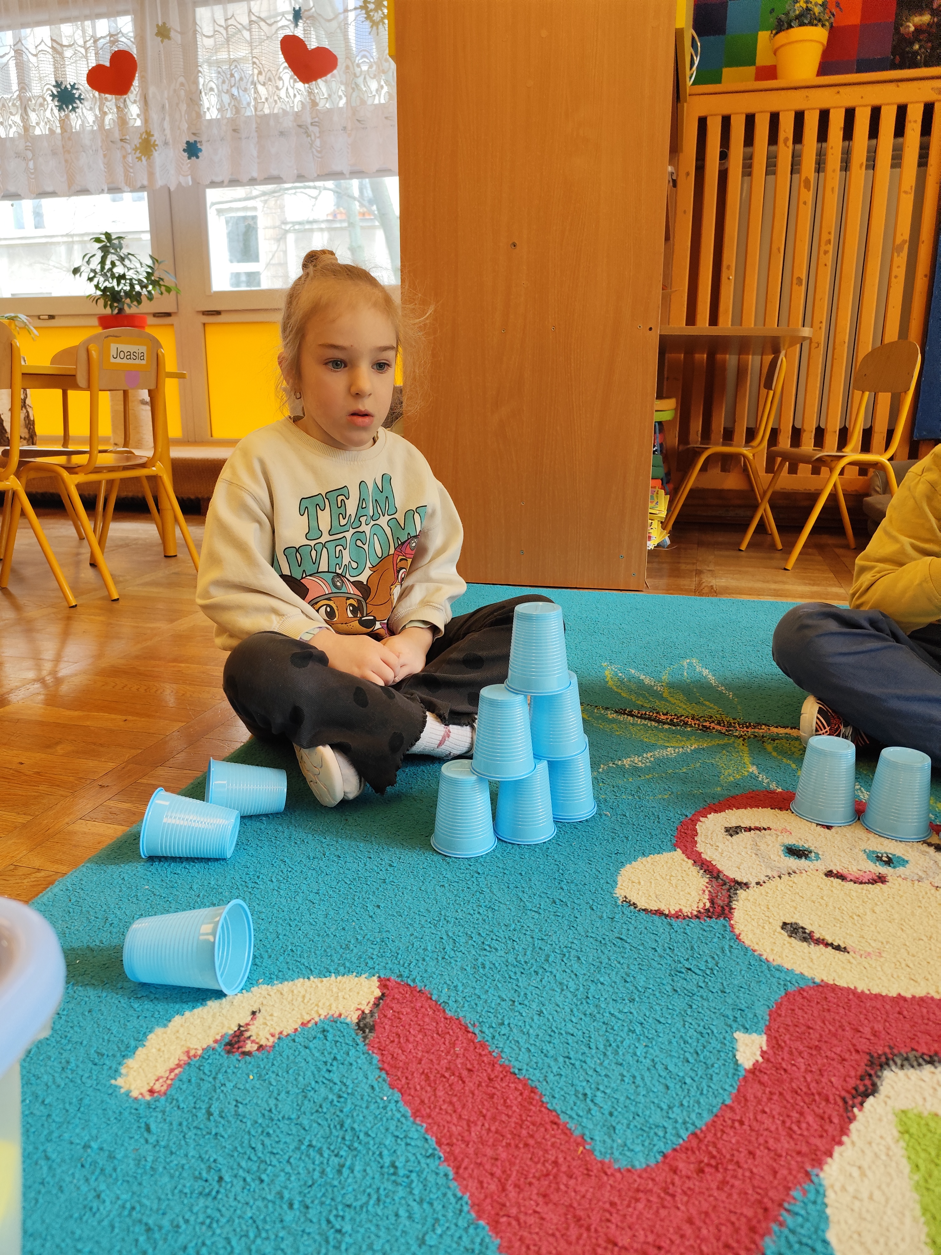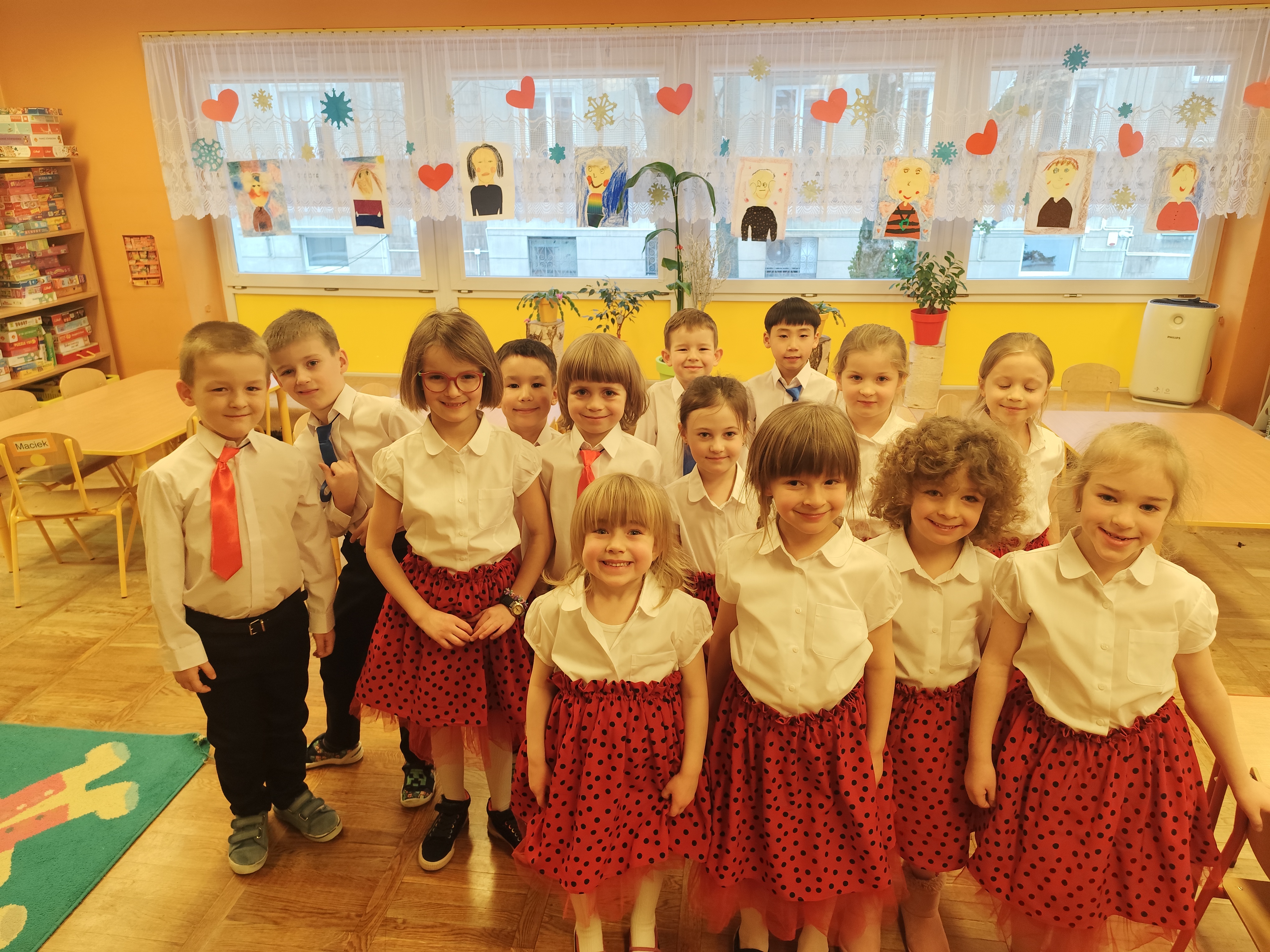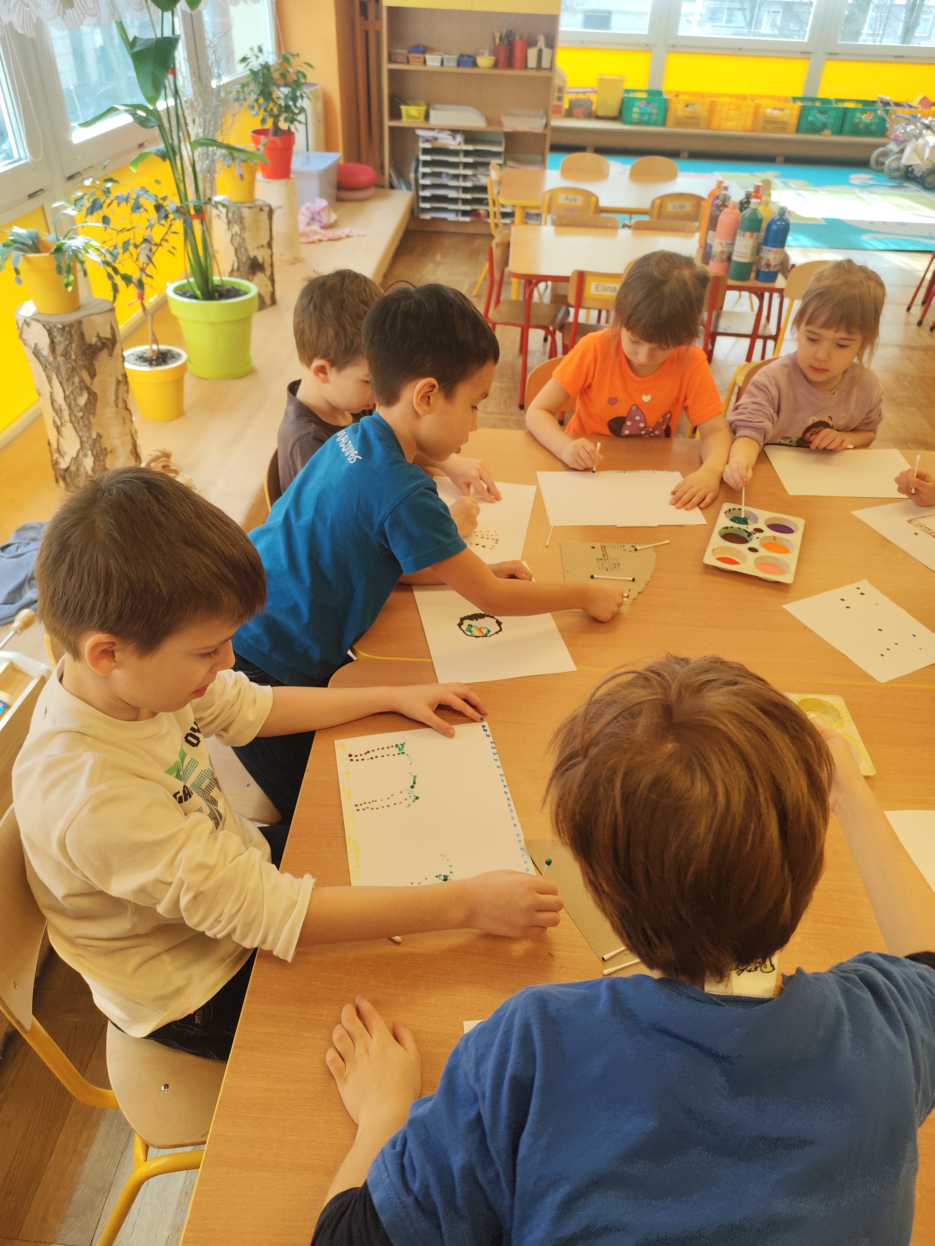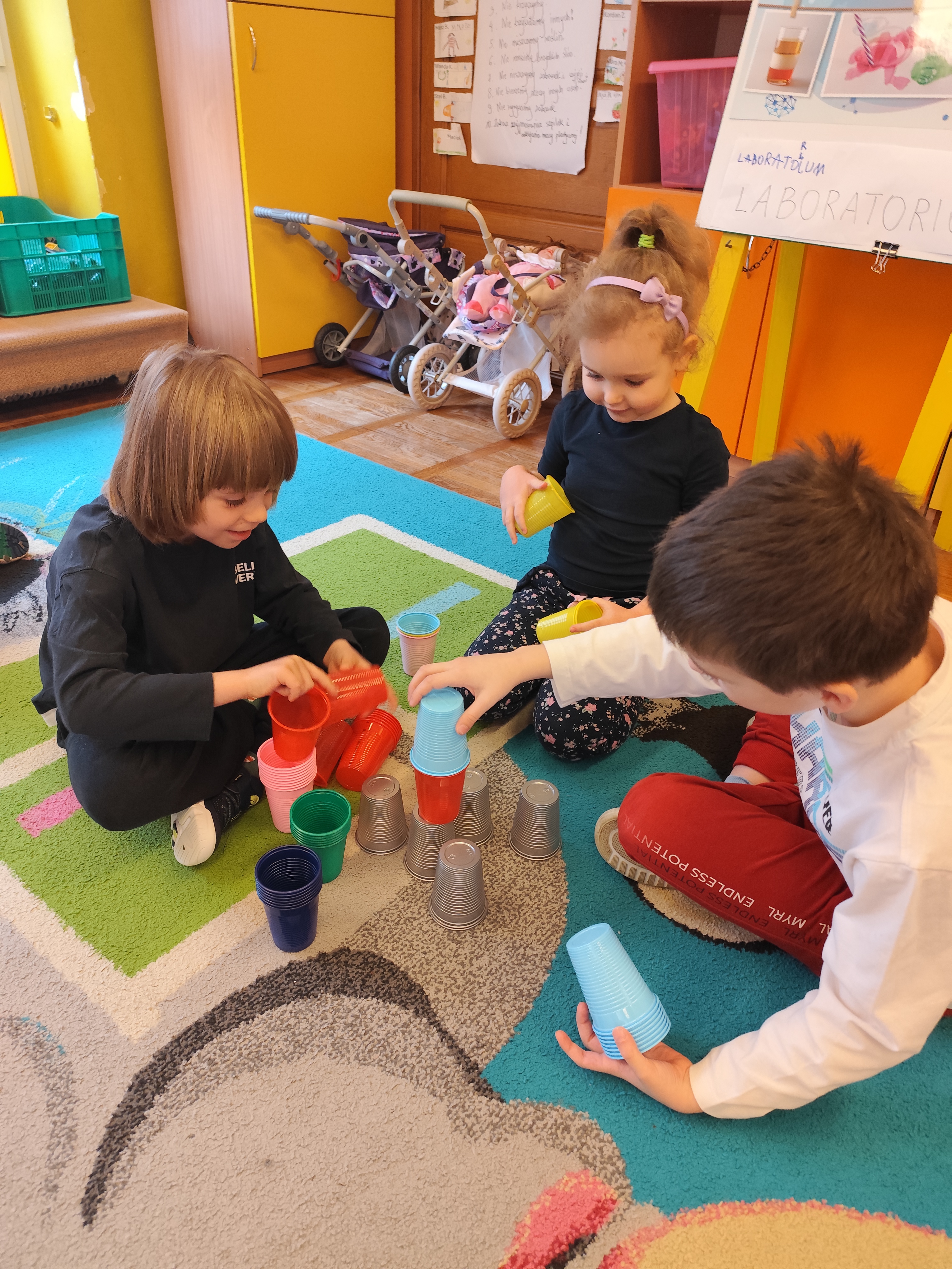 W styczniu obchodziliśmy Dzień Babci i Dziadka, mieliśmy też duuużo zabawy, w lutym układaliśmy rytmy i liczyliśmy używając kolorowych kubeczków. Tworzylismy także prace do projektu "Wyruszamy w świat sztuki" oraz budowaliśmy i malowaliśmy rakietę.