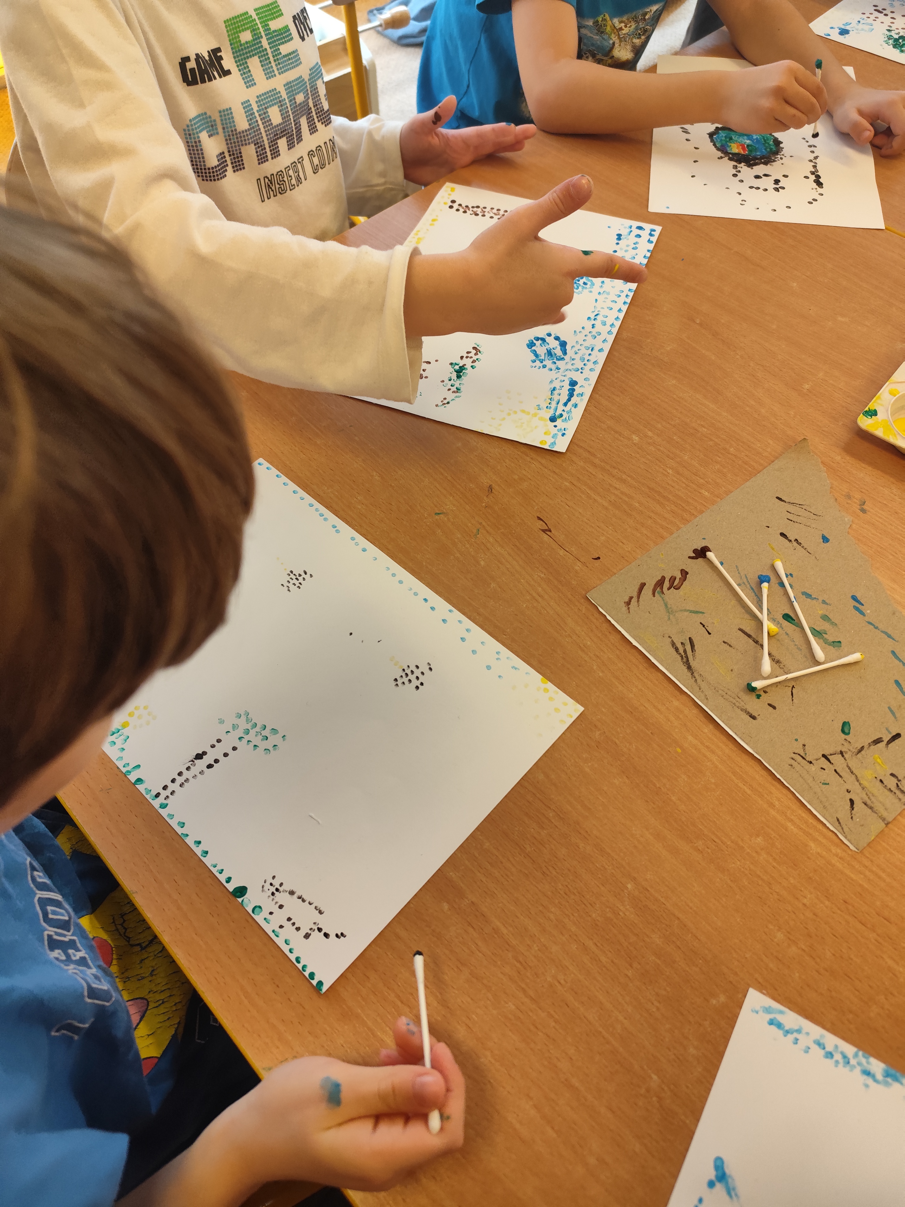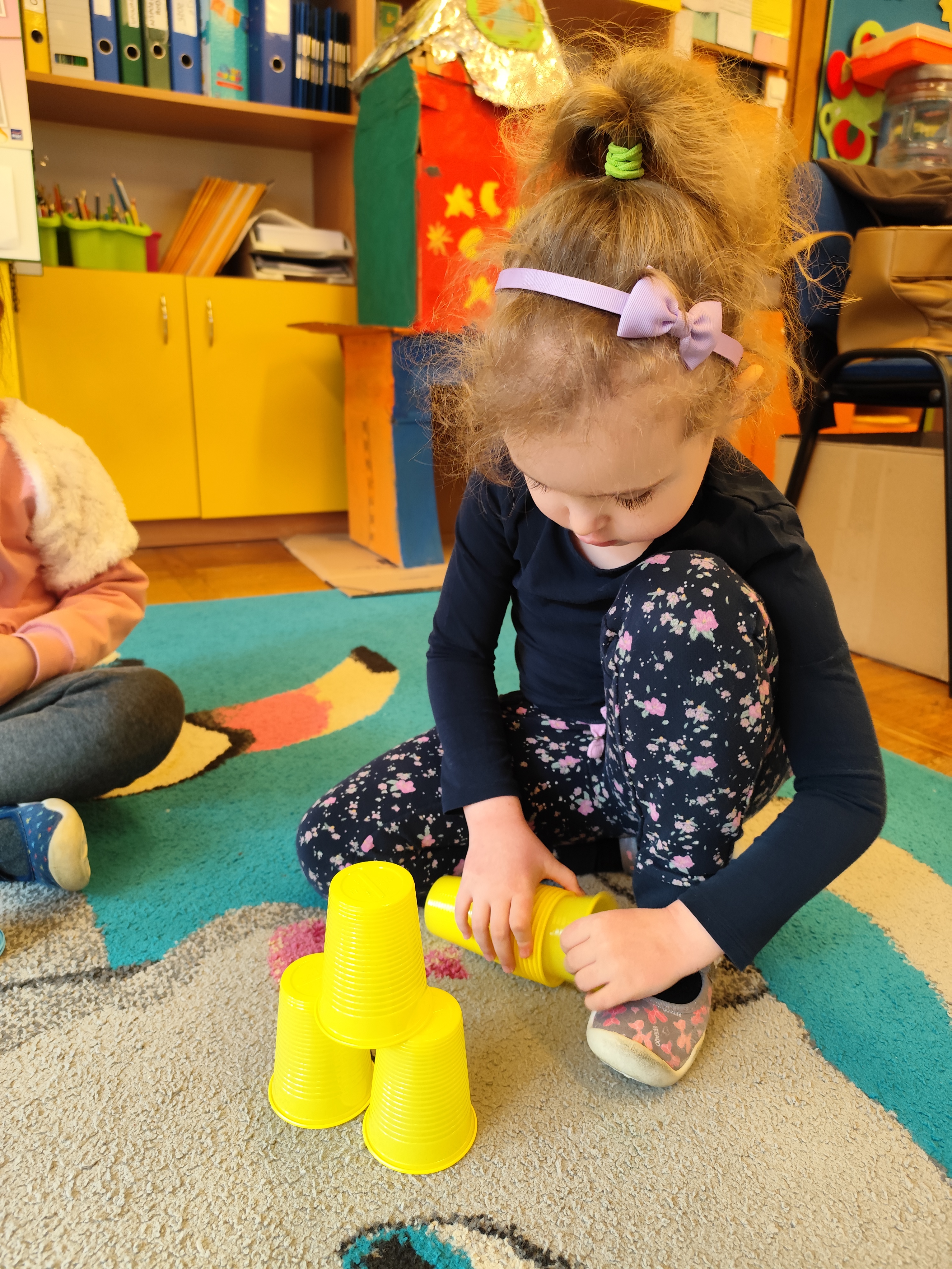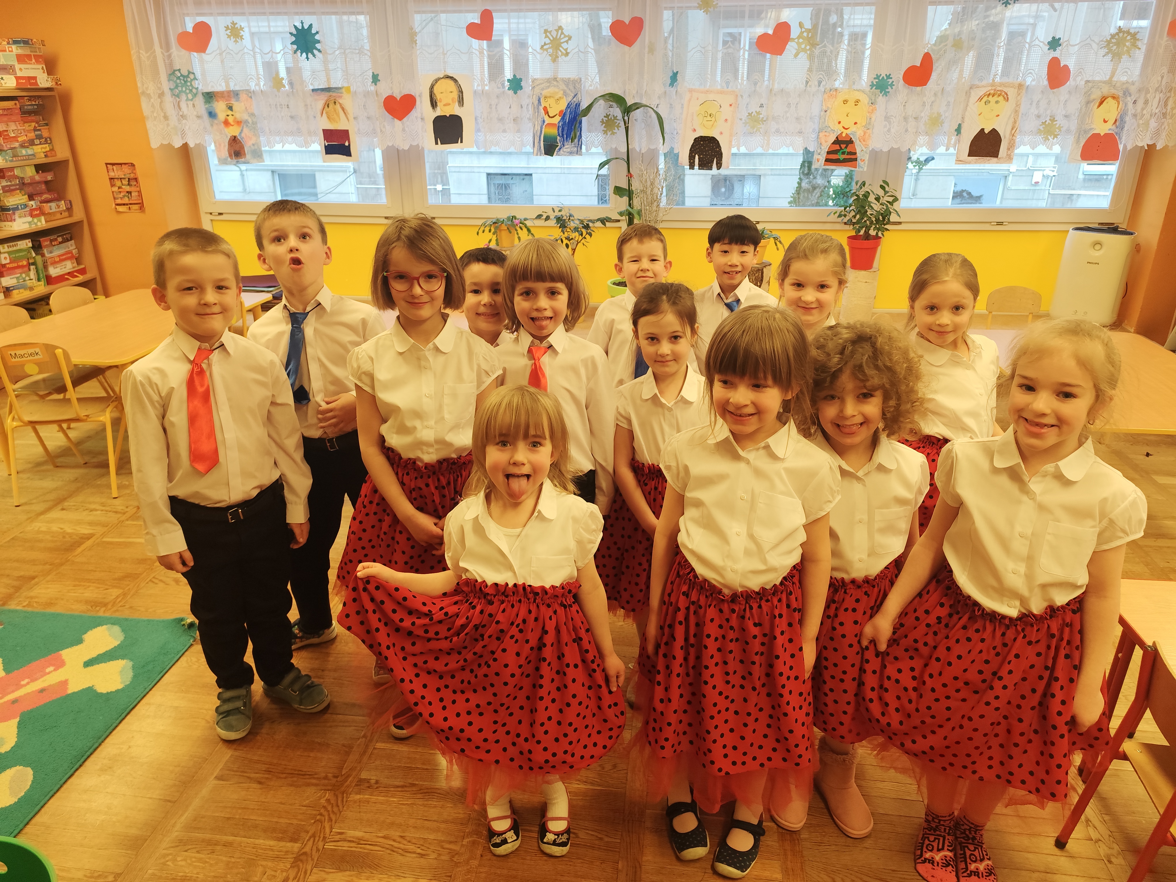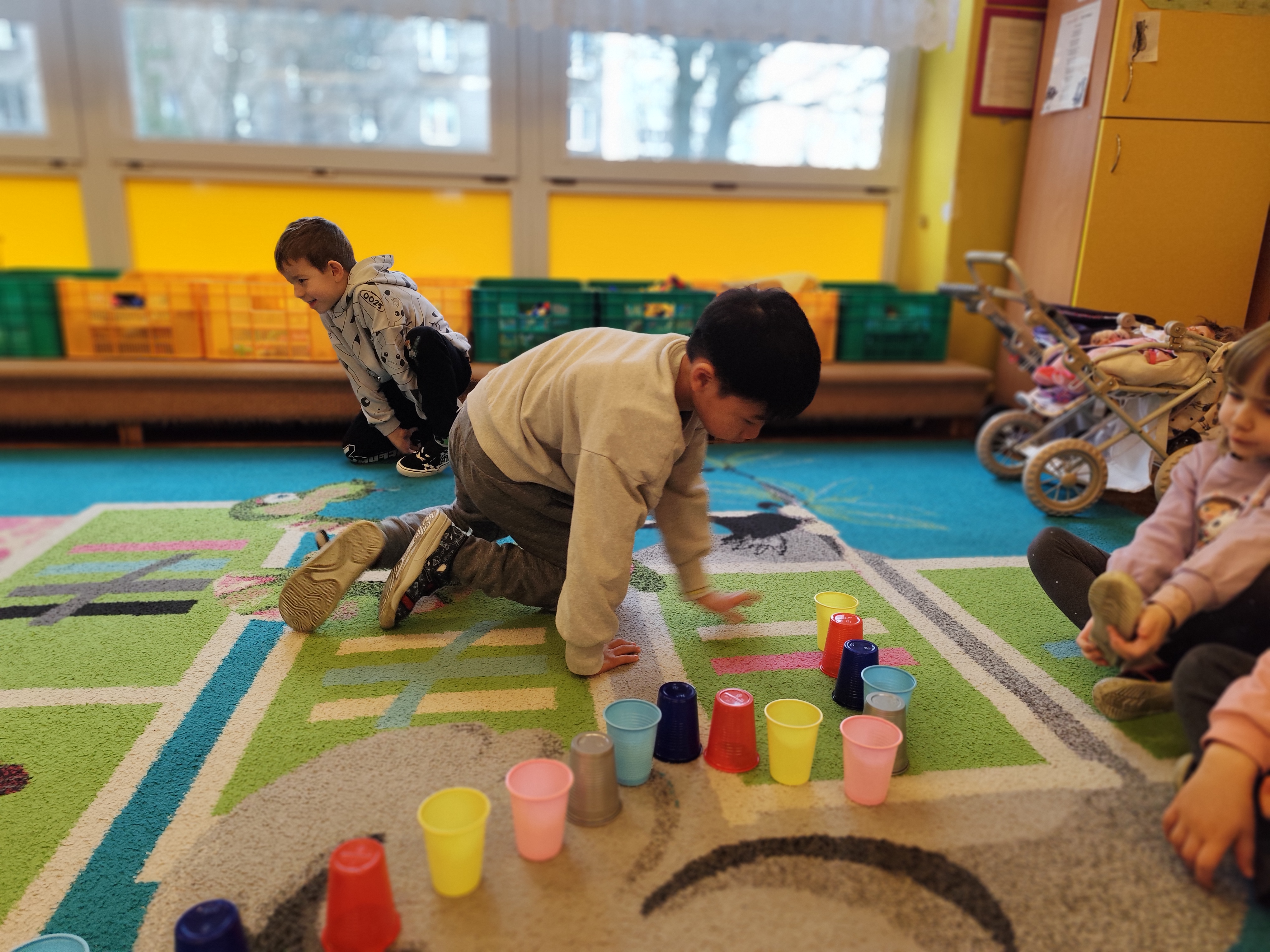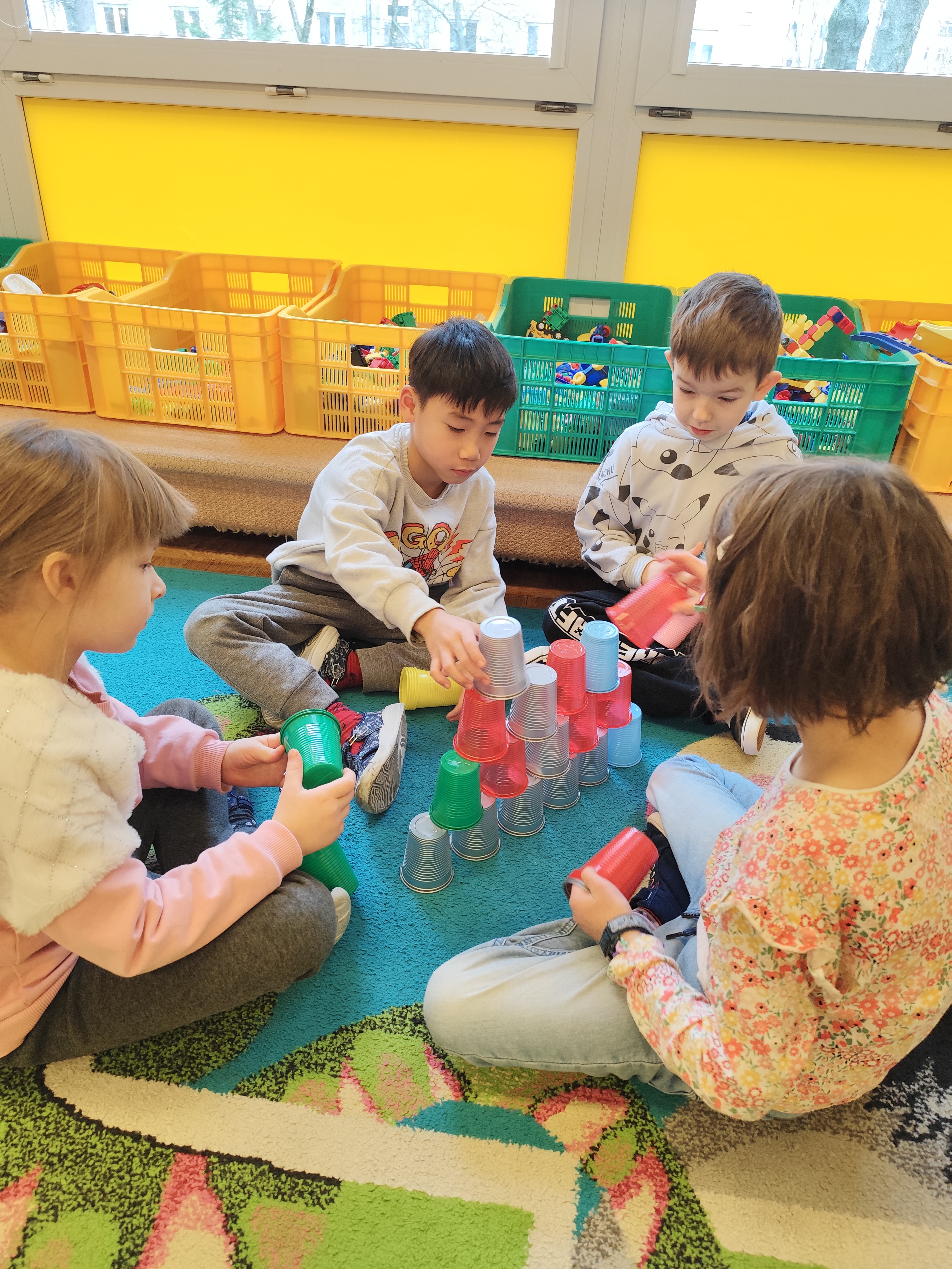 W styczniu obchodziliśmy Dzień Babci i Dziadka, mieliśmy też duuużo zabawy, w lutym układaliśmy rytmy i liczyliśmy używając kolorowych kubeczków. Tworzylismy także prace do projektu "Wyruszamy w świat sztuki" oraz budowaliśmy i malowaliśmy rakietę.