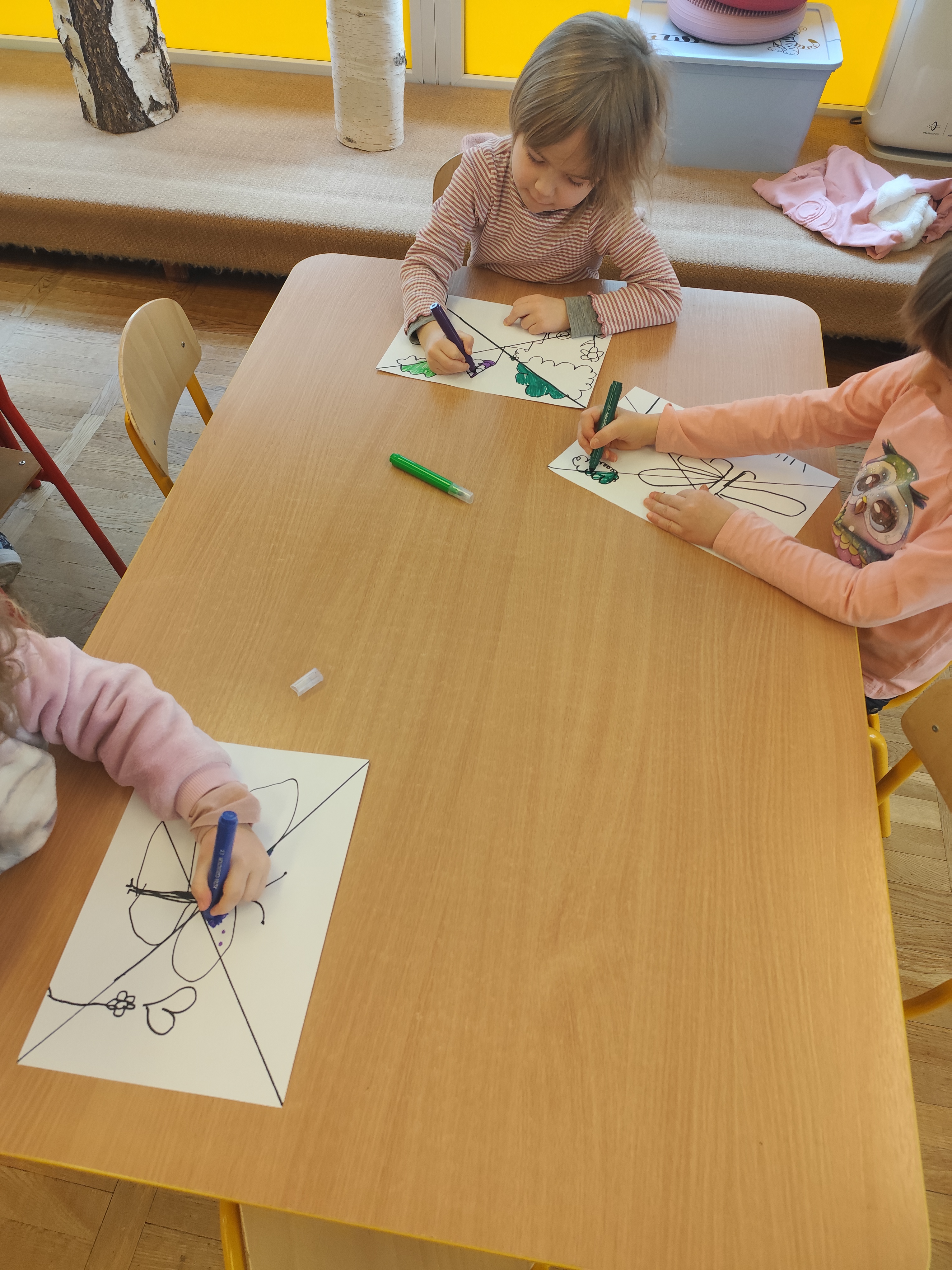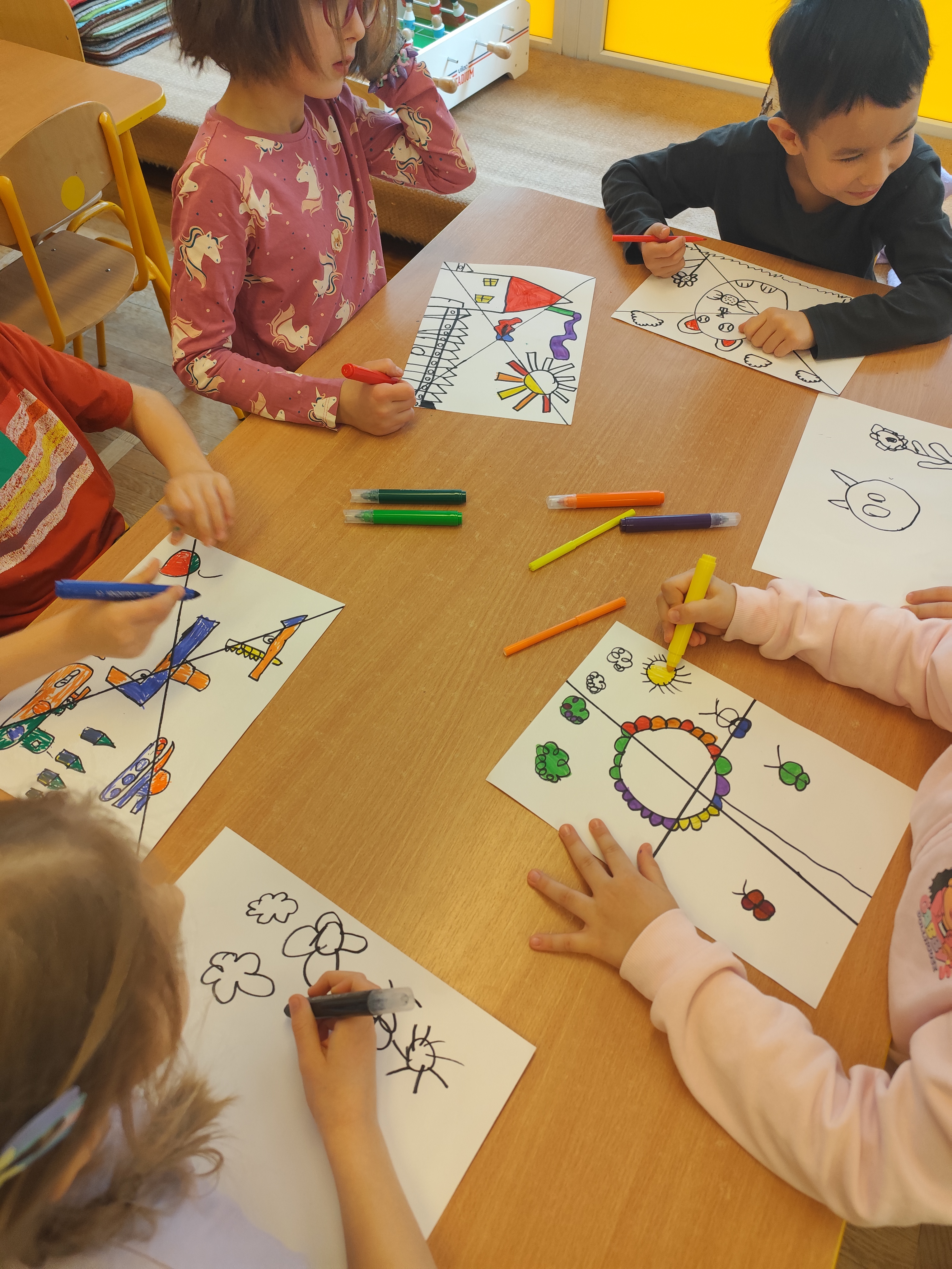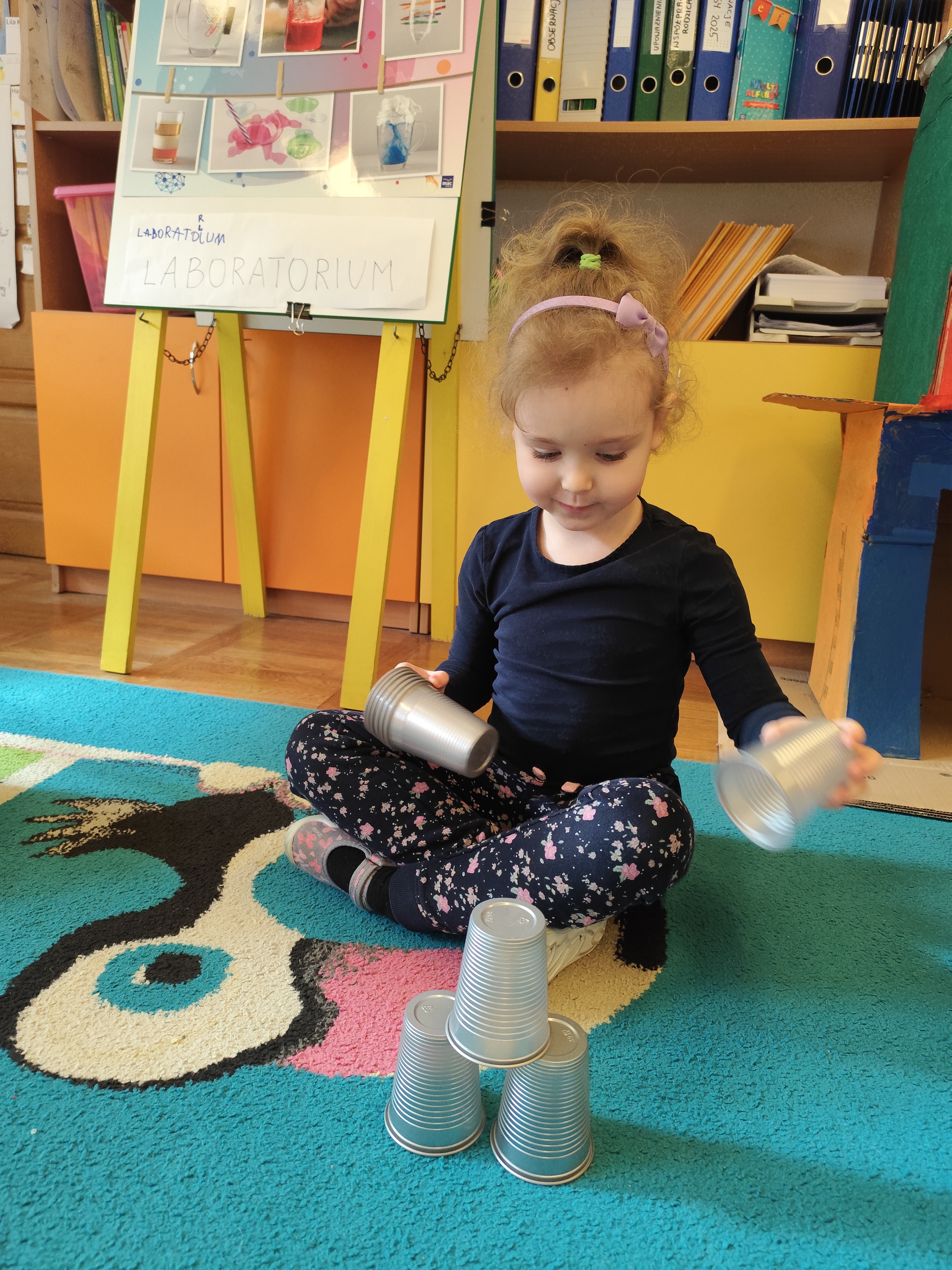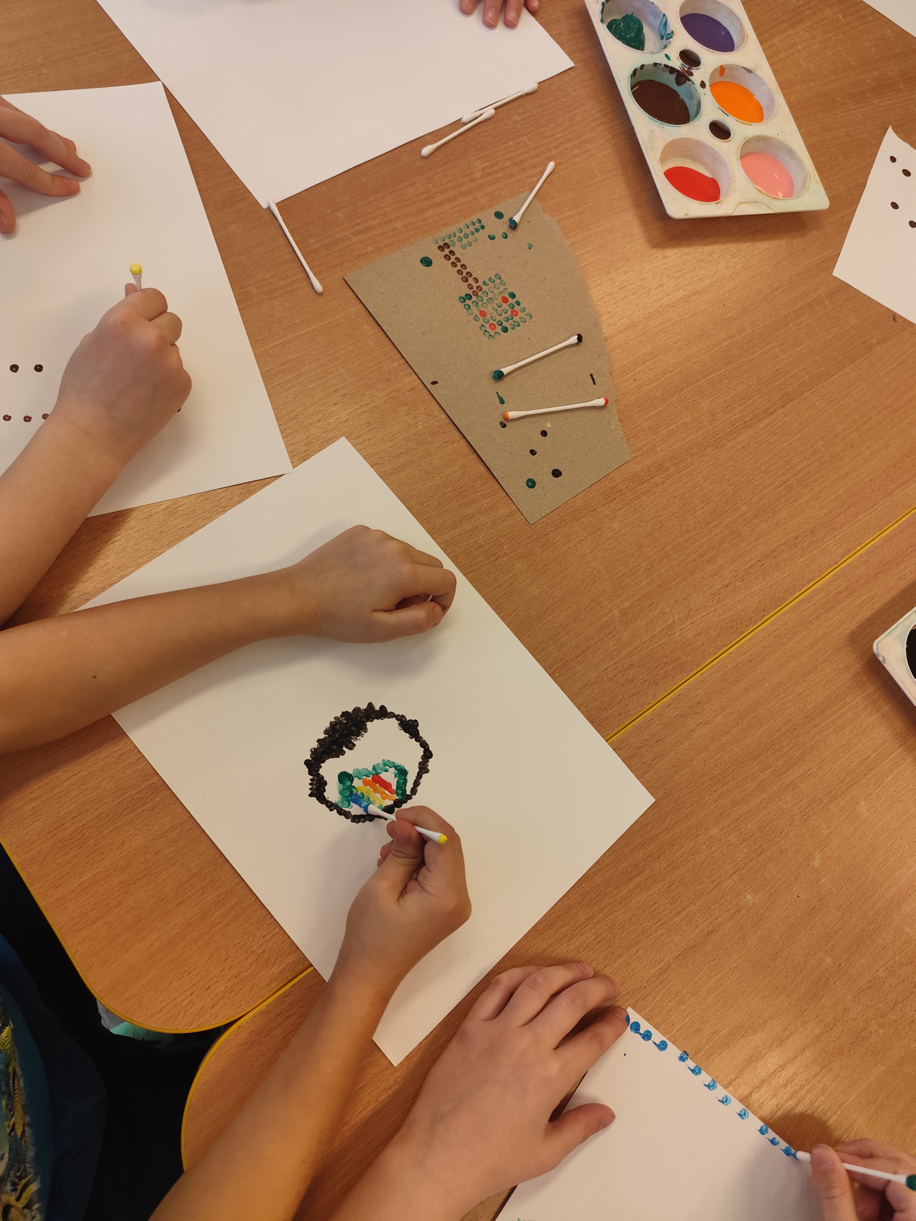 W styczniu obchodziliśmy Dzień Babci i Dziadka, mieliśmy też duuużo zabawy, w lutym układaliśmy rytmy i liczyliśmy używając kolorowych kubeczków. Tworzylismy także prace do projektu "Wyruszamy w świat sztuki" oraz budowaliśmy i malowaliśmy rakietę.