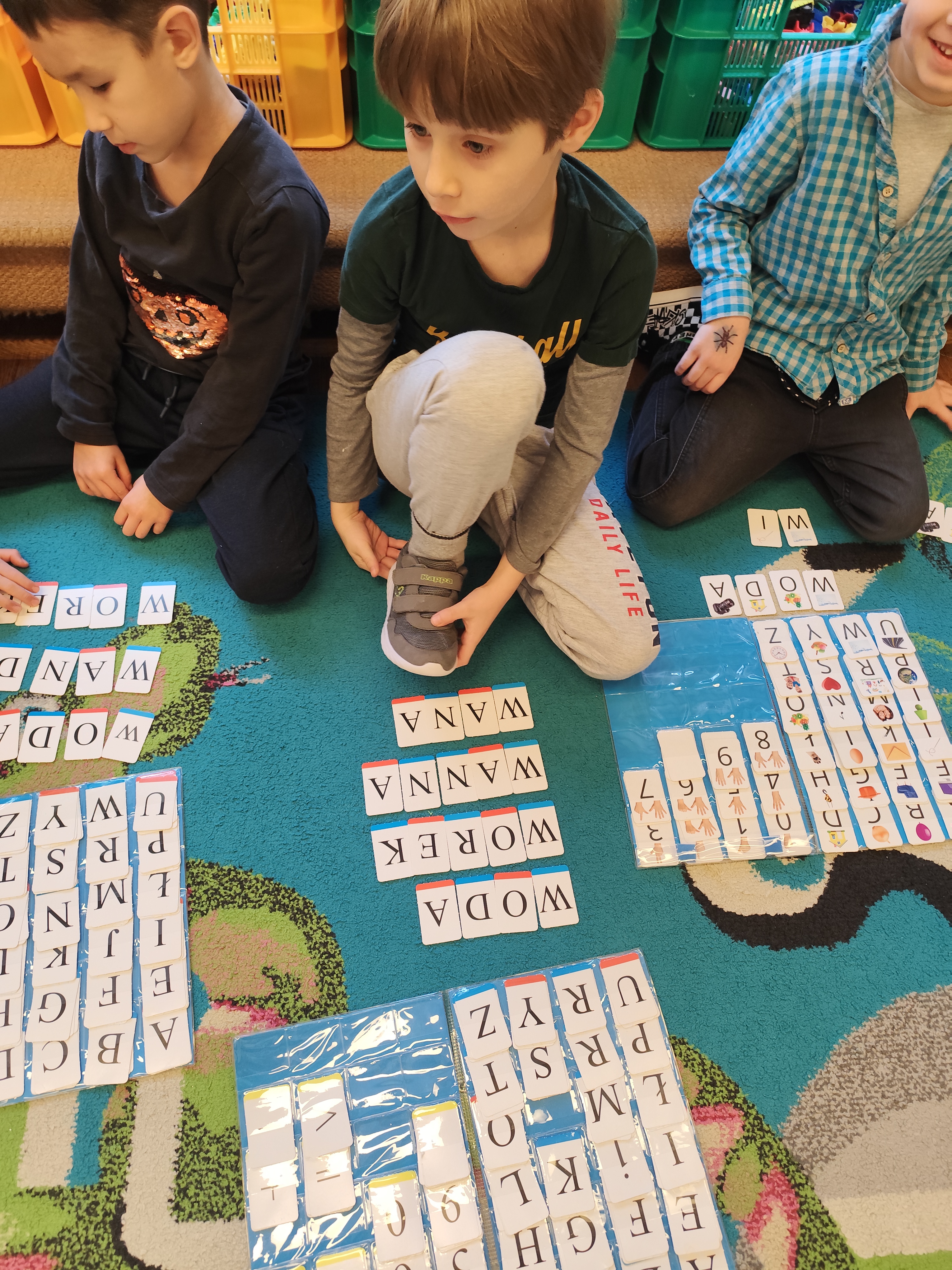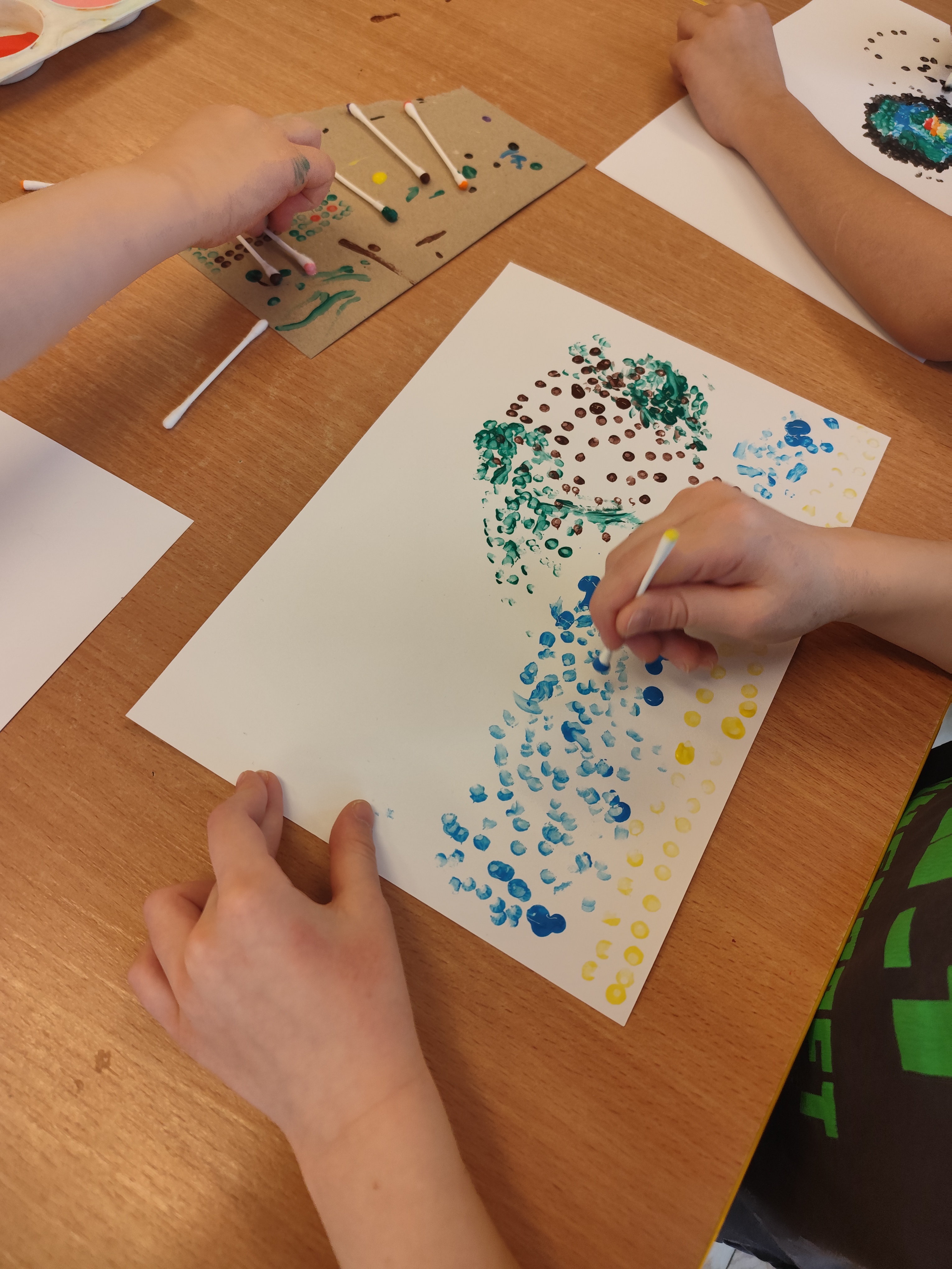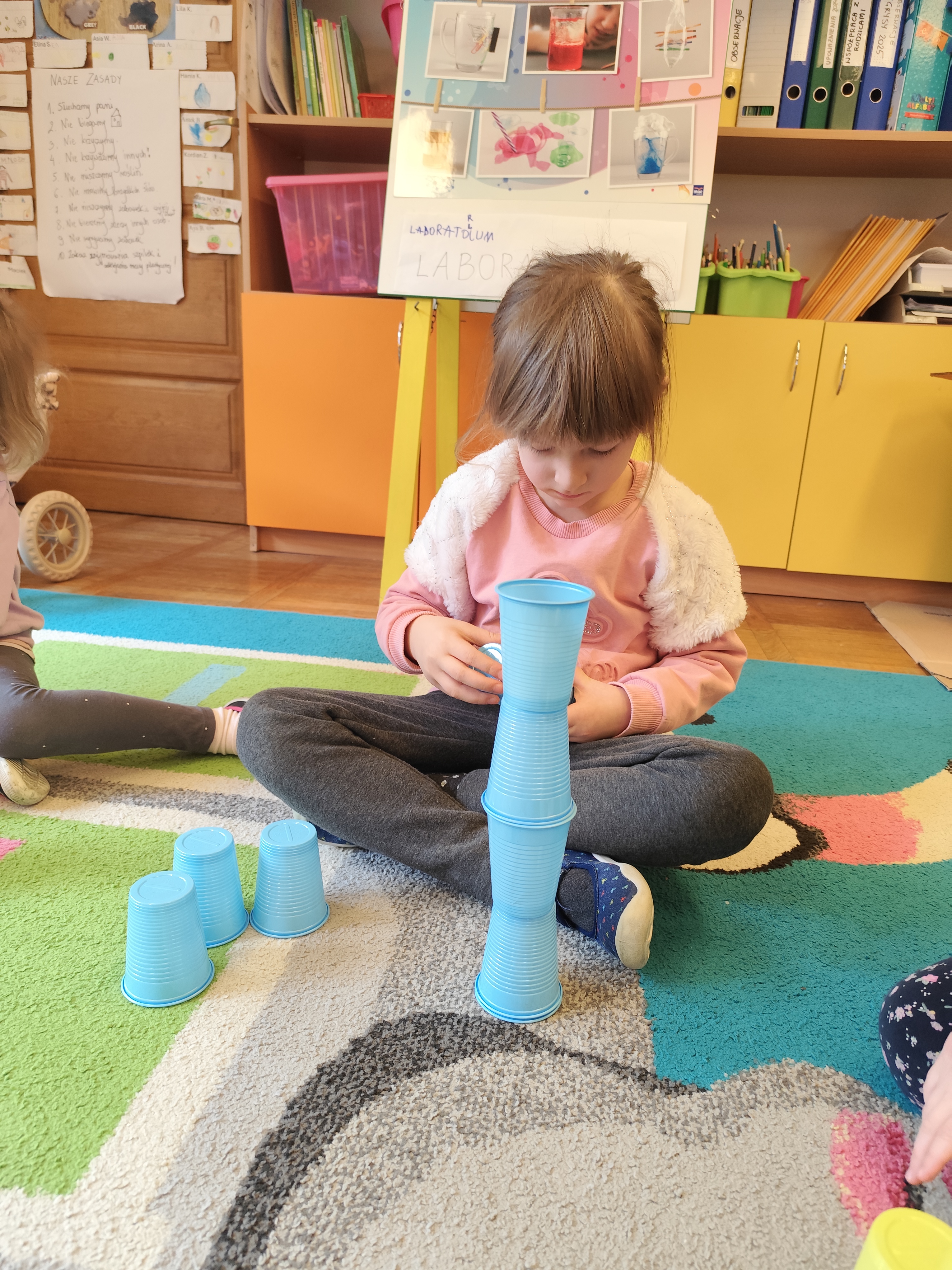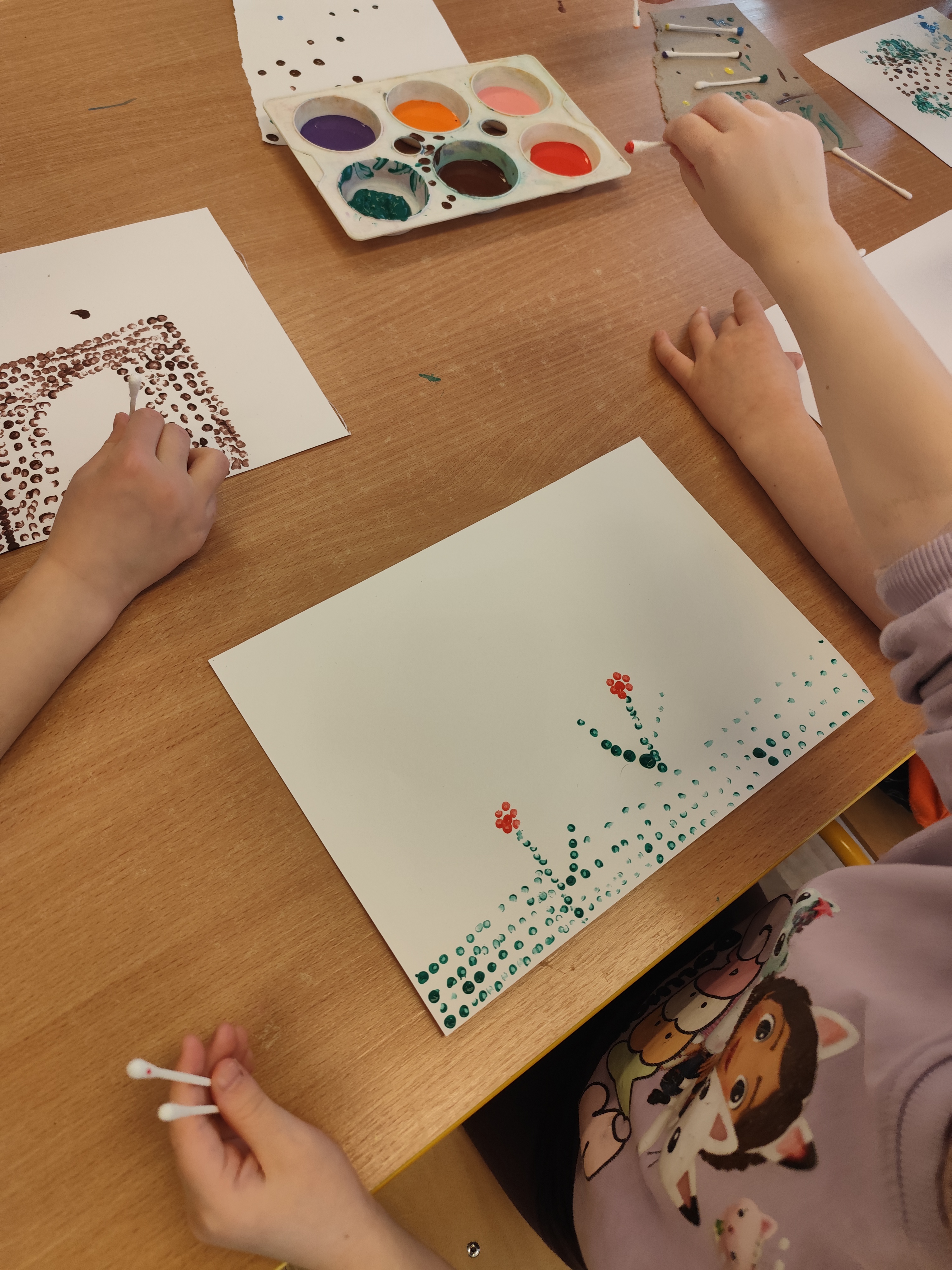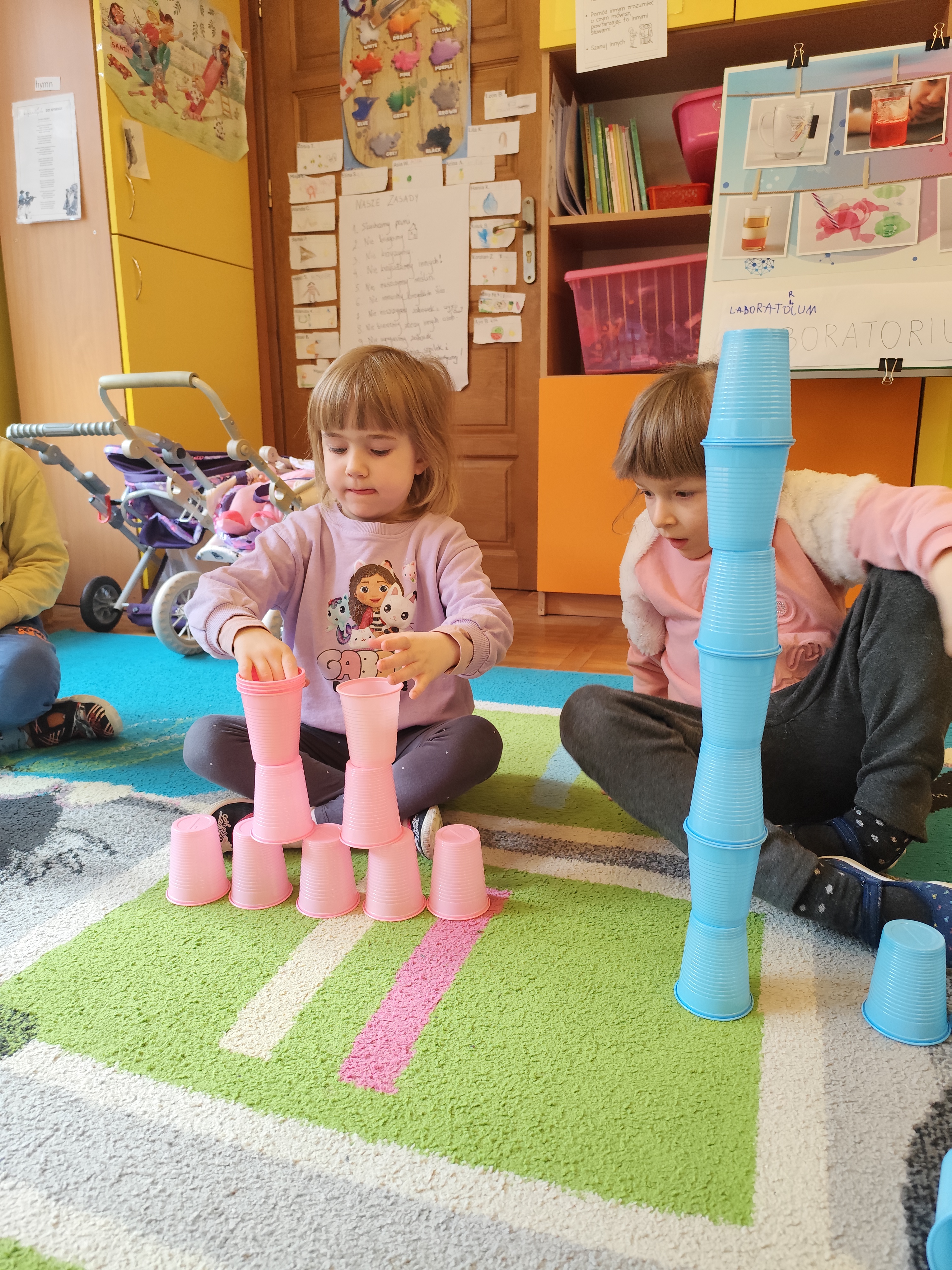 W styczniu obchodziliśmy Dzień Babci i Dziadka, mieliśmy też duuużo zabawy, w lutym układaliśmy rytmy i liczyliśmy używając kolorowych kubeczków. Tworzylismy także prace do projektu "Wyruszamy w świat sztuki" oraz budowaliśmy i malowaliśmy rakietę.