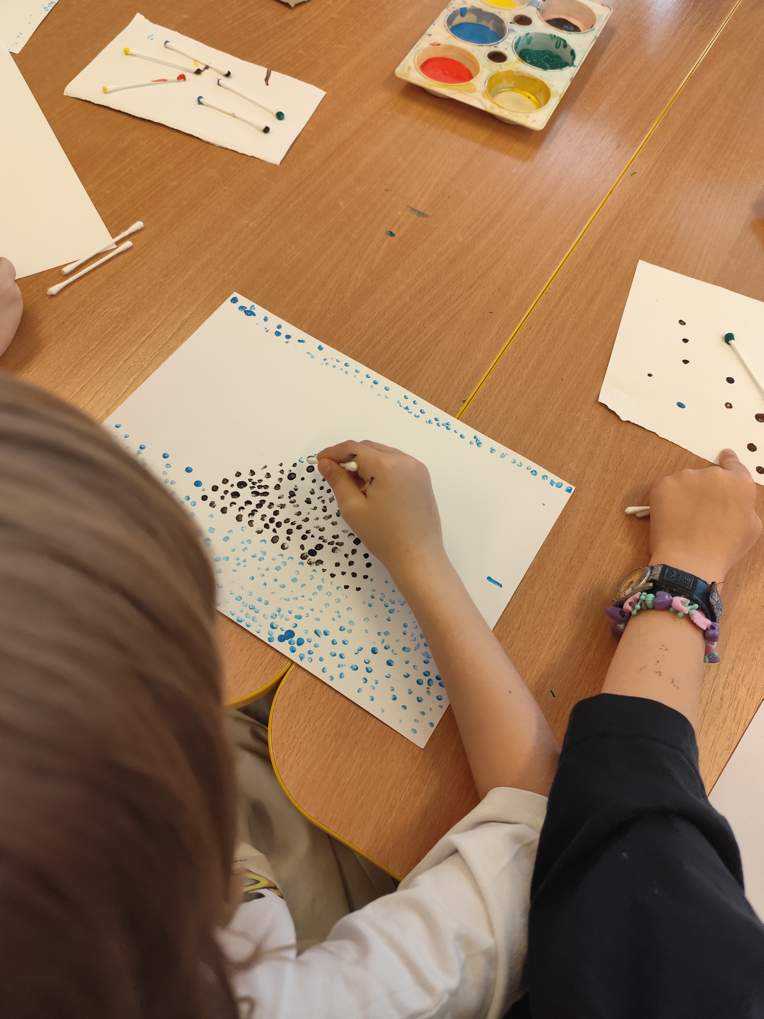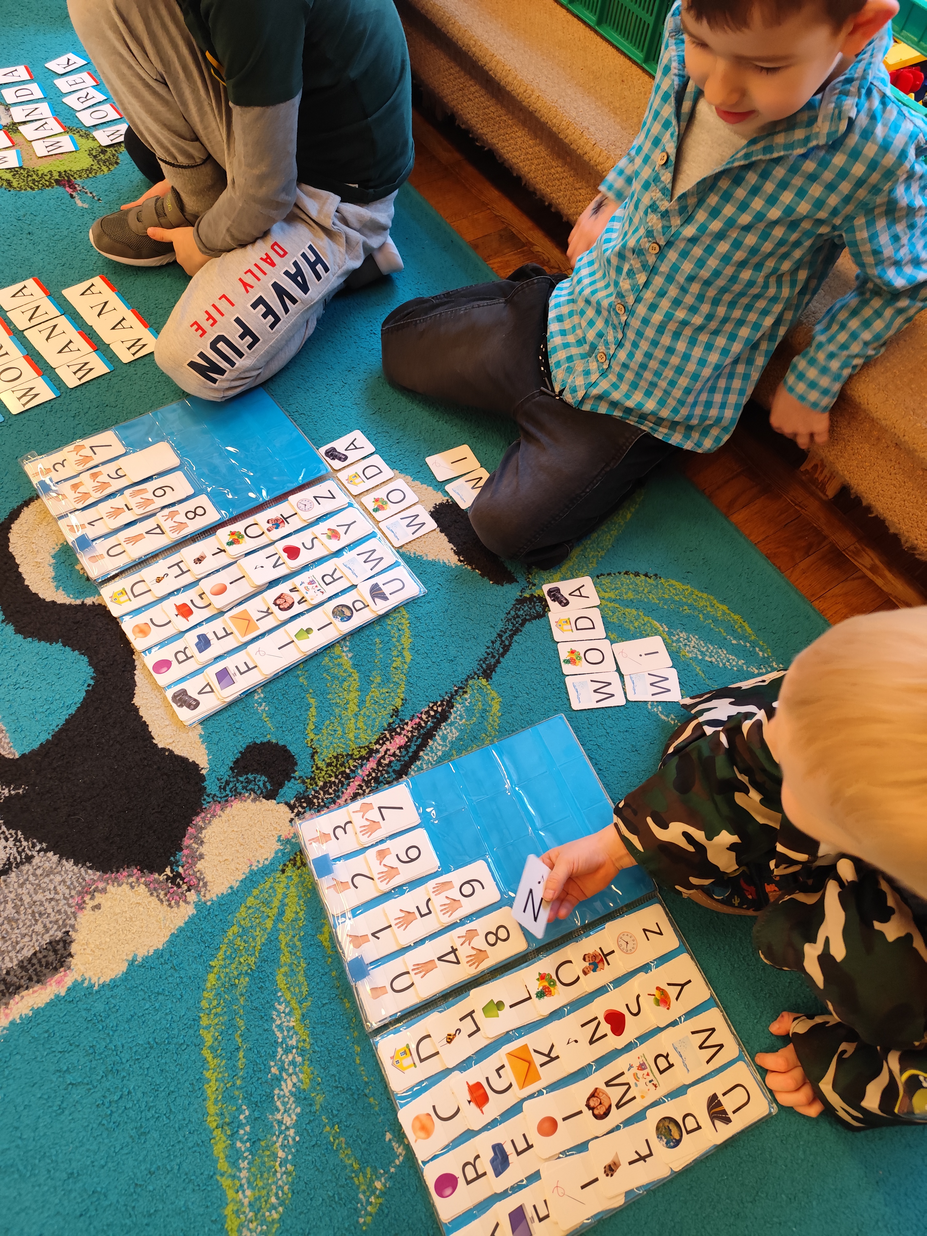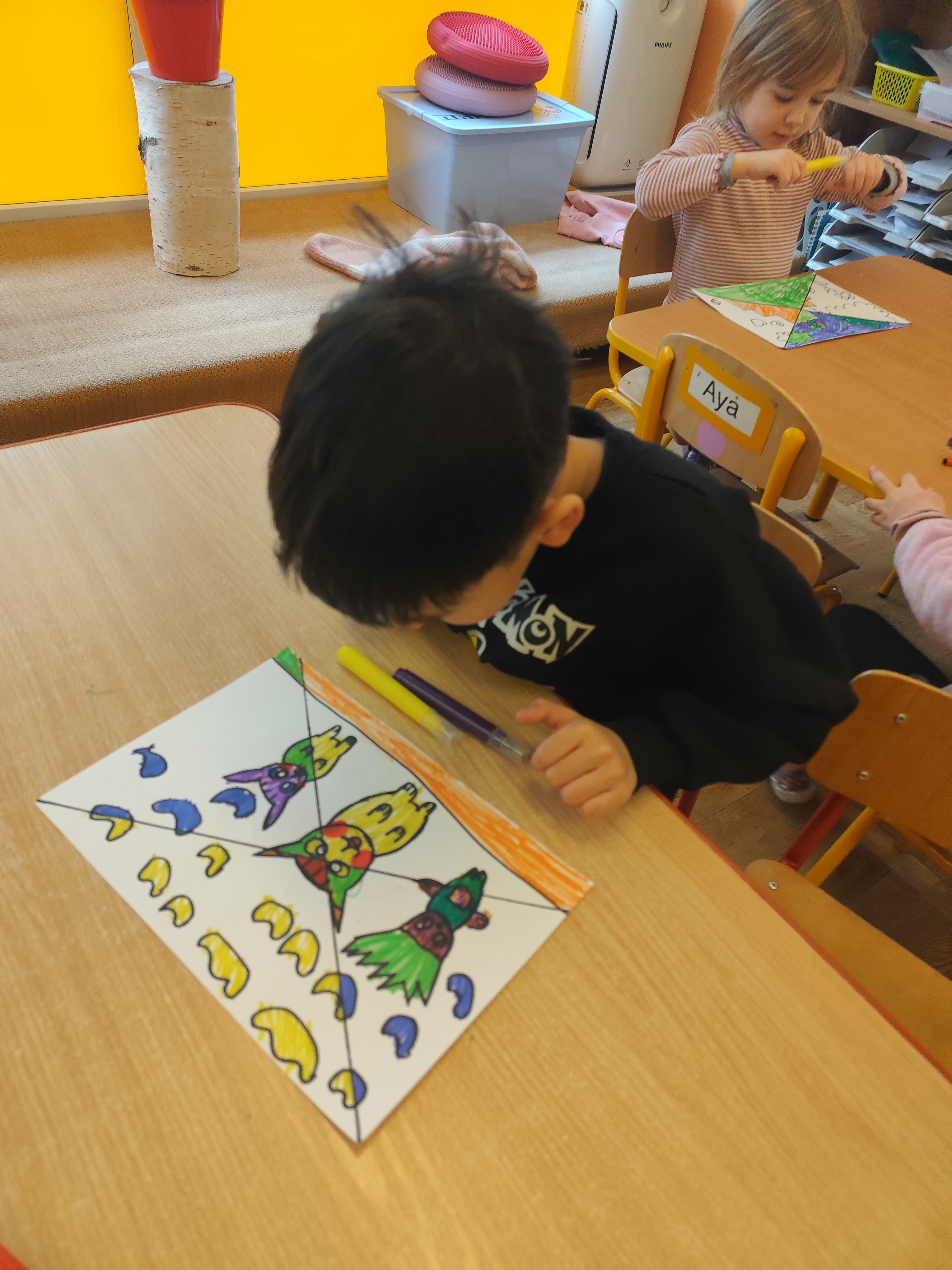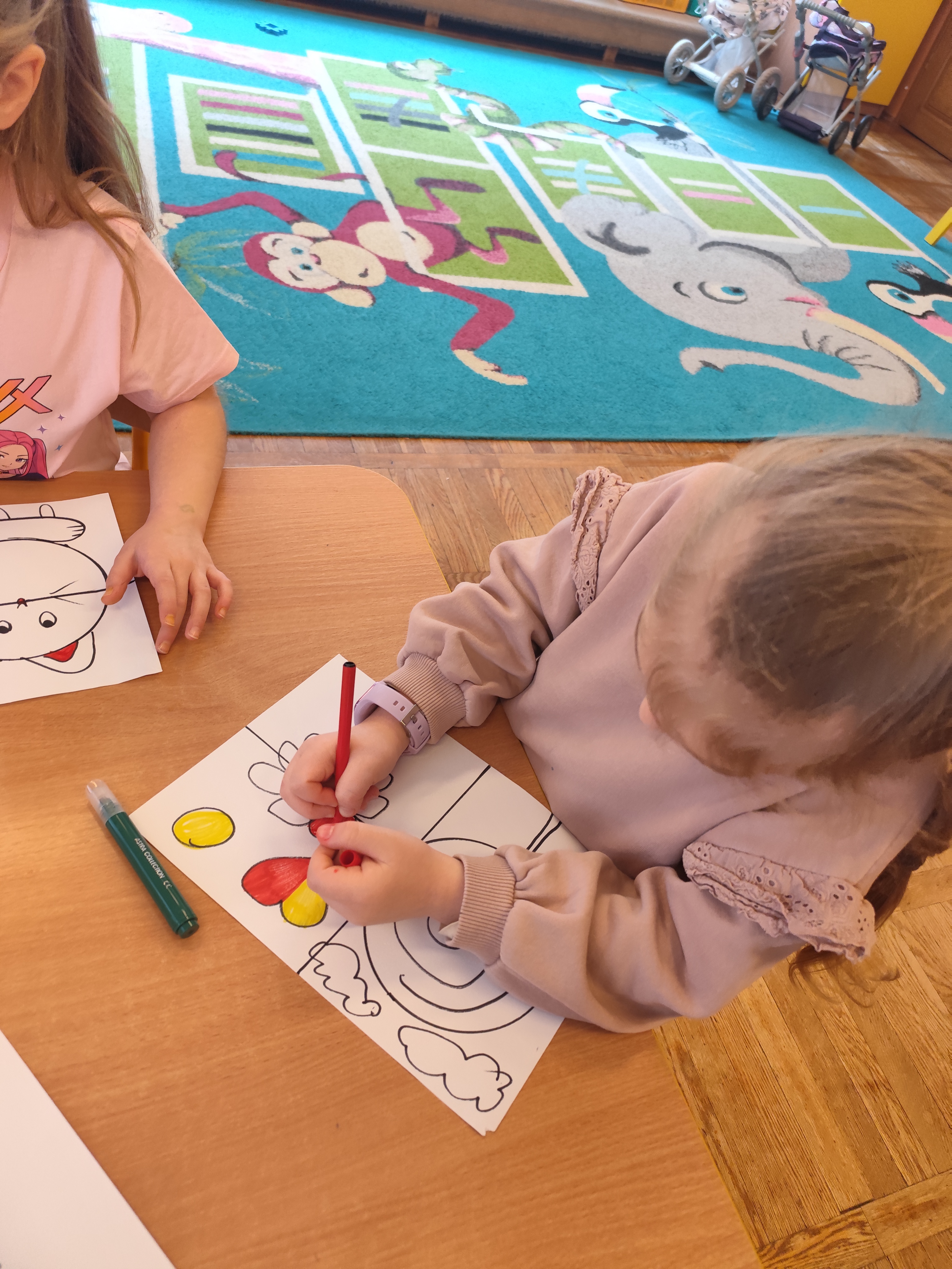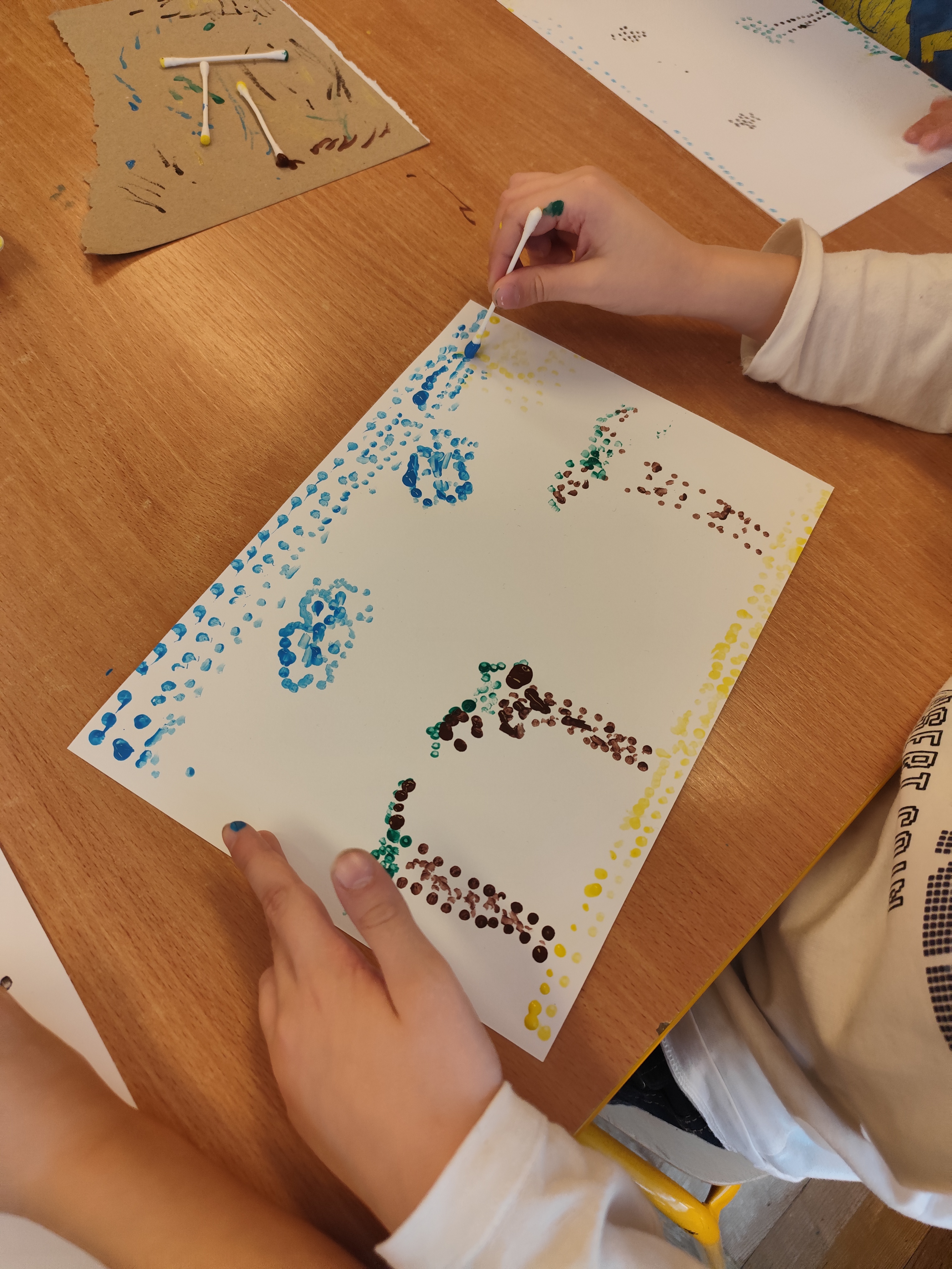 W styczniu obchodziliśmy Dzień Babci i Dziadka, mieliśmy też duuużo zabawy, w lutym układaliśmy rytmy i liczyliśmy używając kolorowych kubeczków. Tworzylismy także prace do projektu "Wyruszamy w świat sztuki" oraz budowaliśmy i malowaliśmy rakietę.