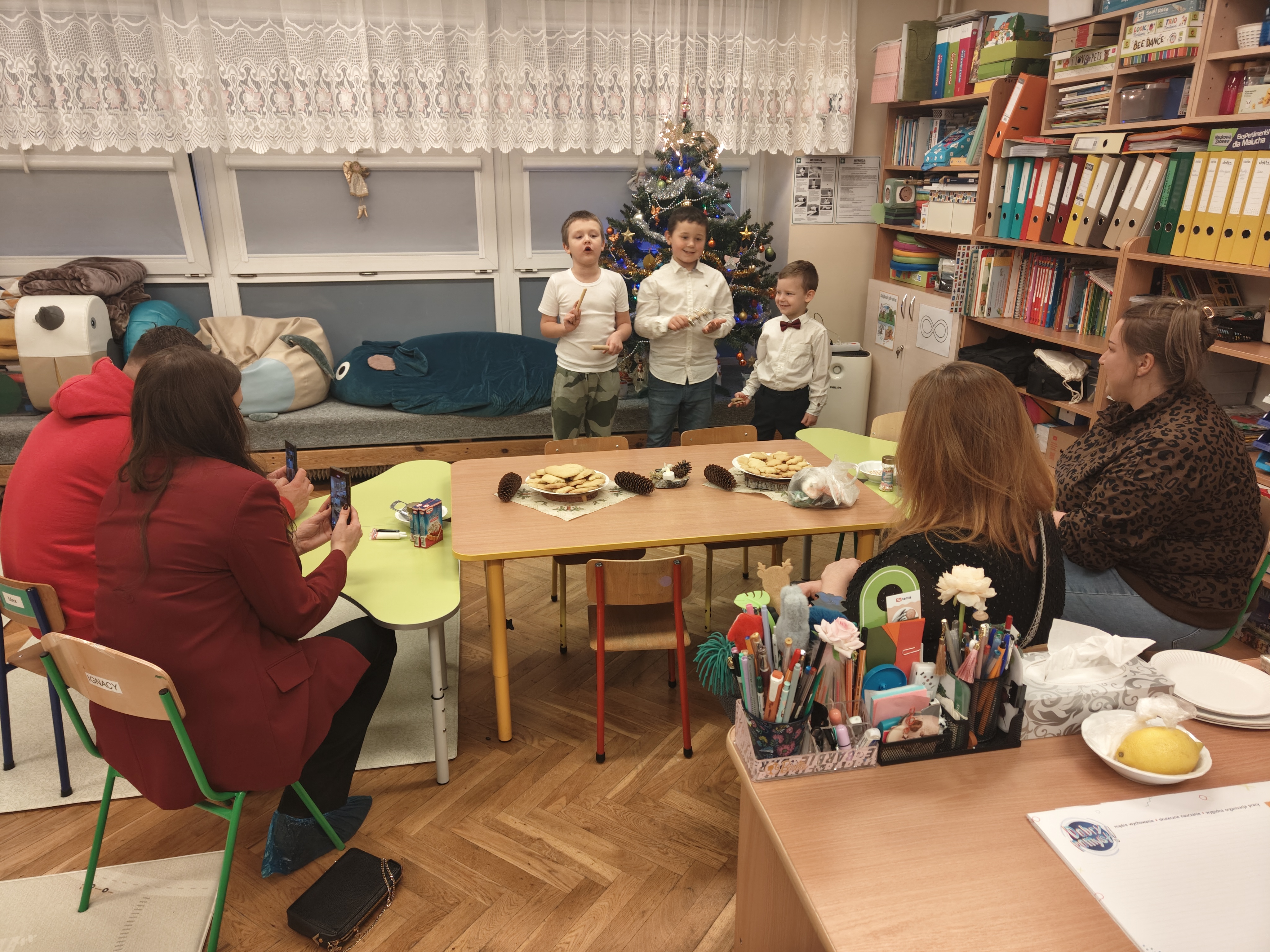 Świąteczny czas w przedszkolu to okres przygotowań do Jasełek, czas pieczenia pierniczków oraz tworzenia ozdób choinkwych. Jest to magiczny czas integrujący dzieci i pozostawiający wiele pięknych wspomnień :)