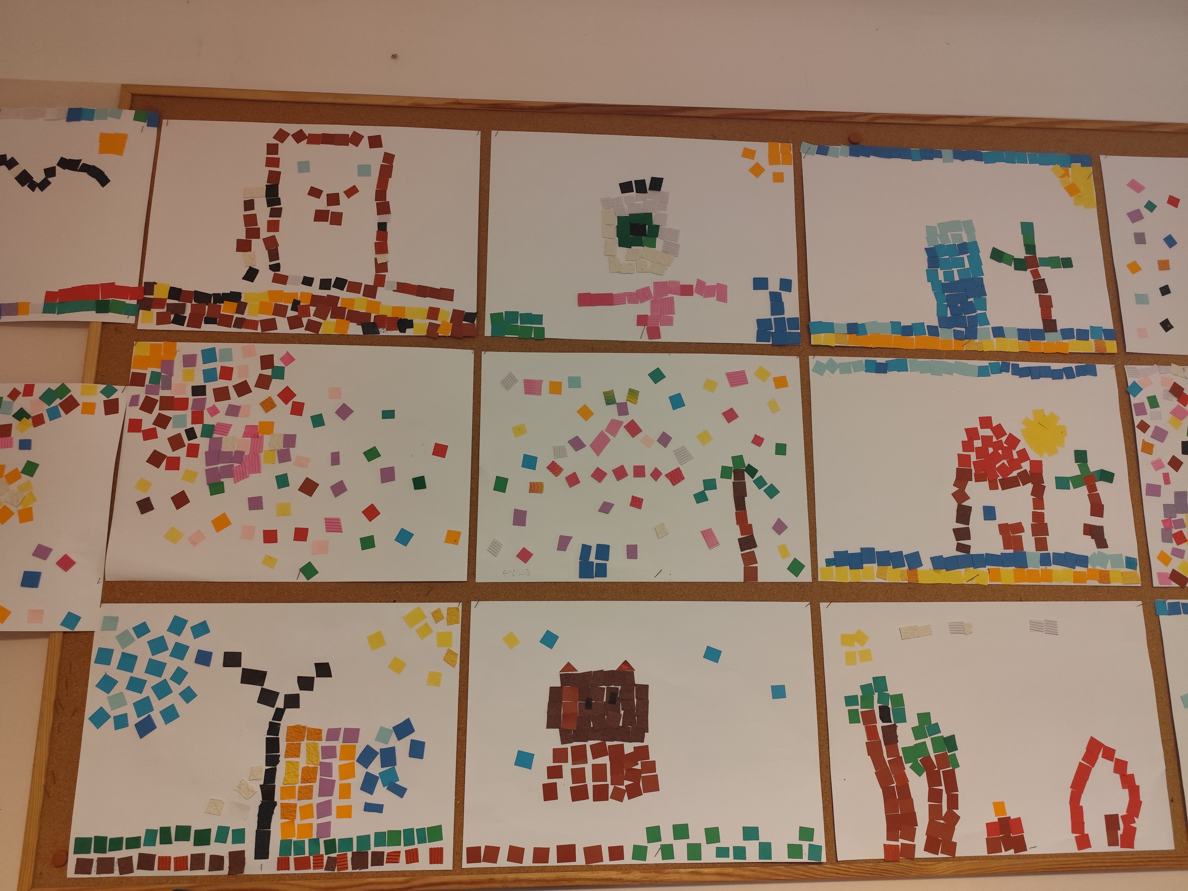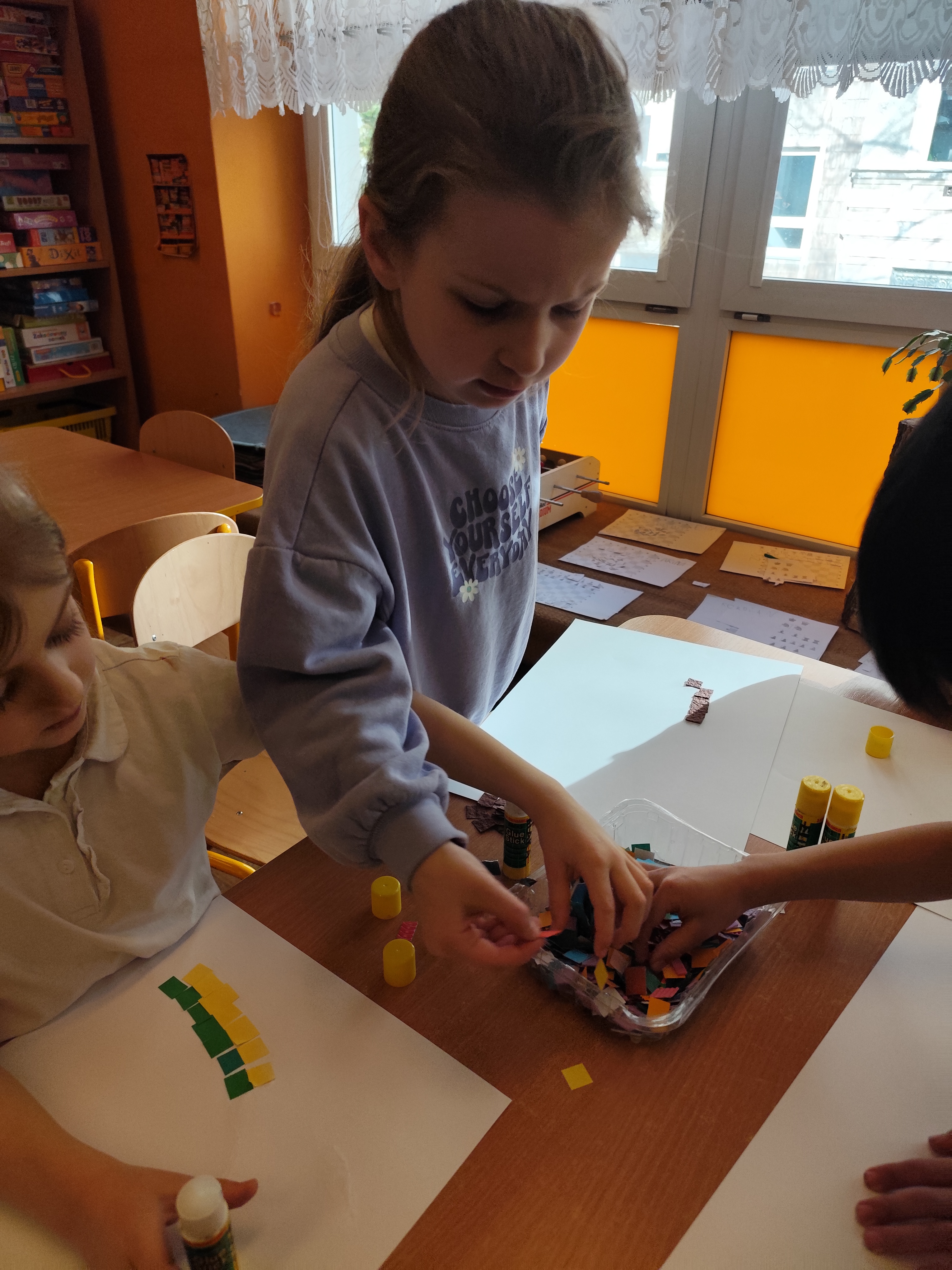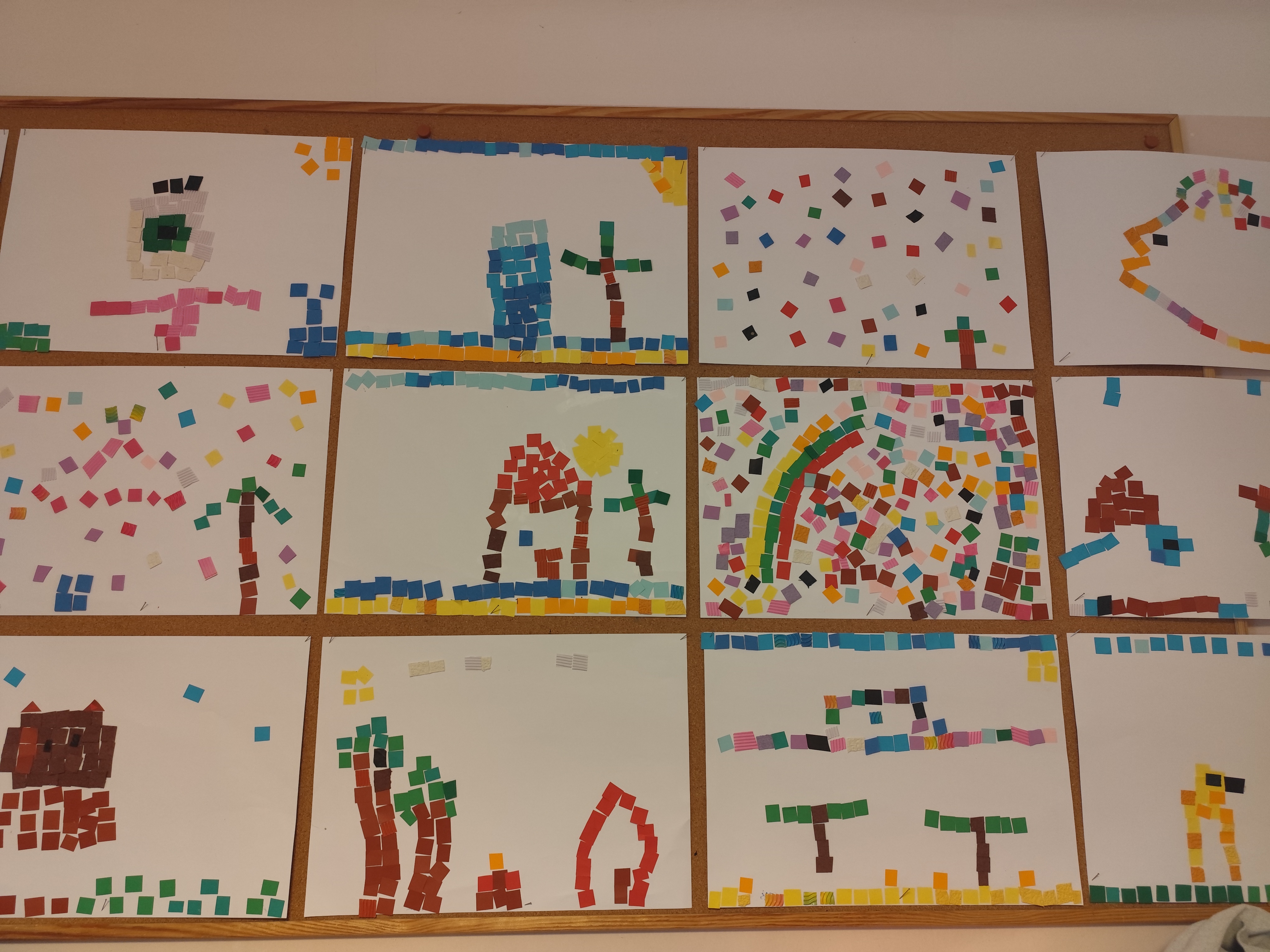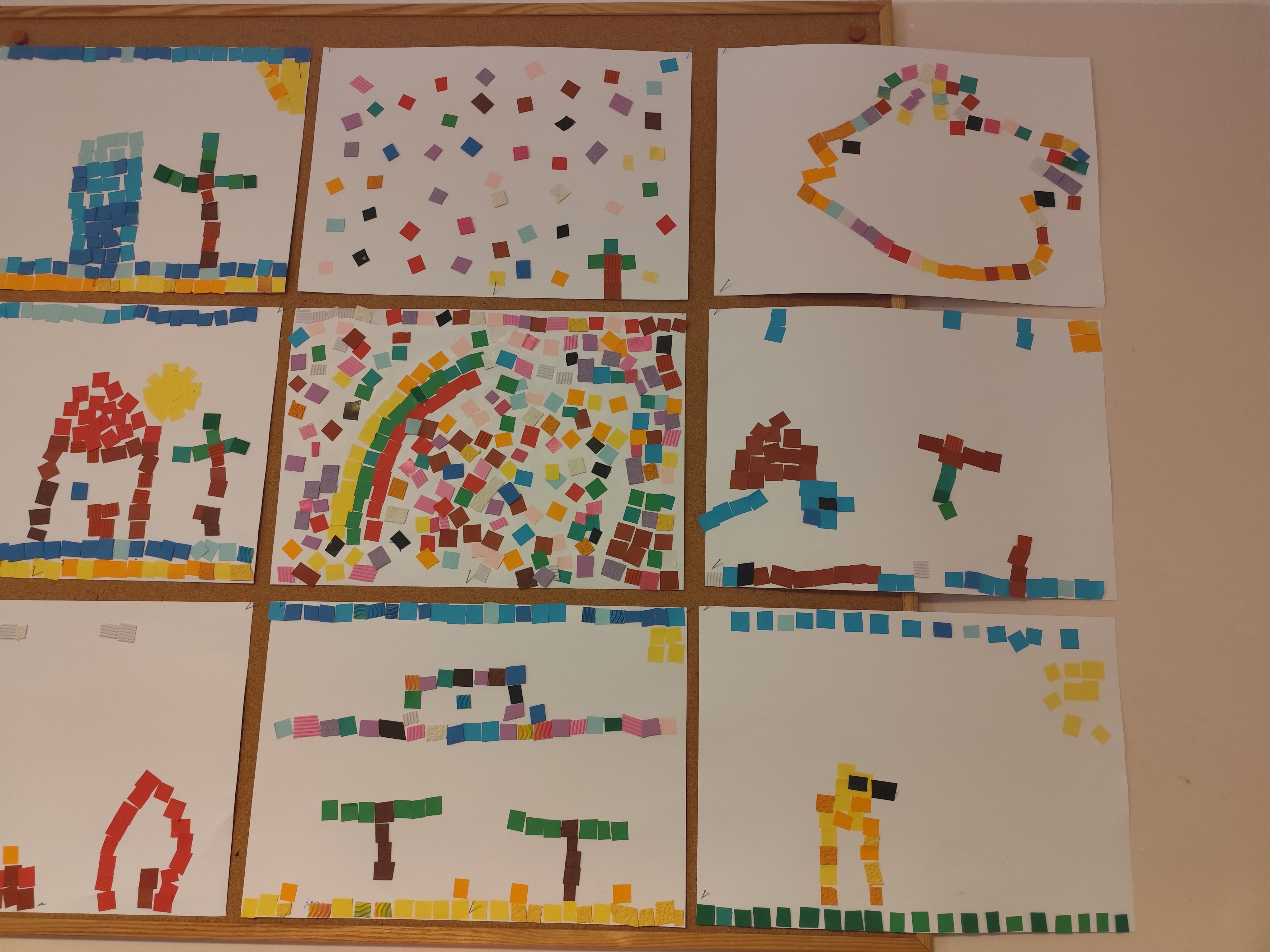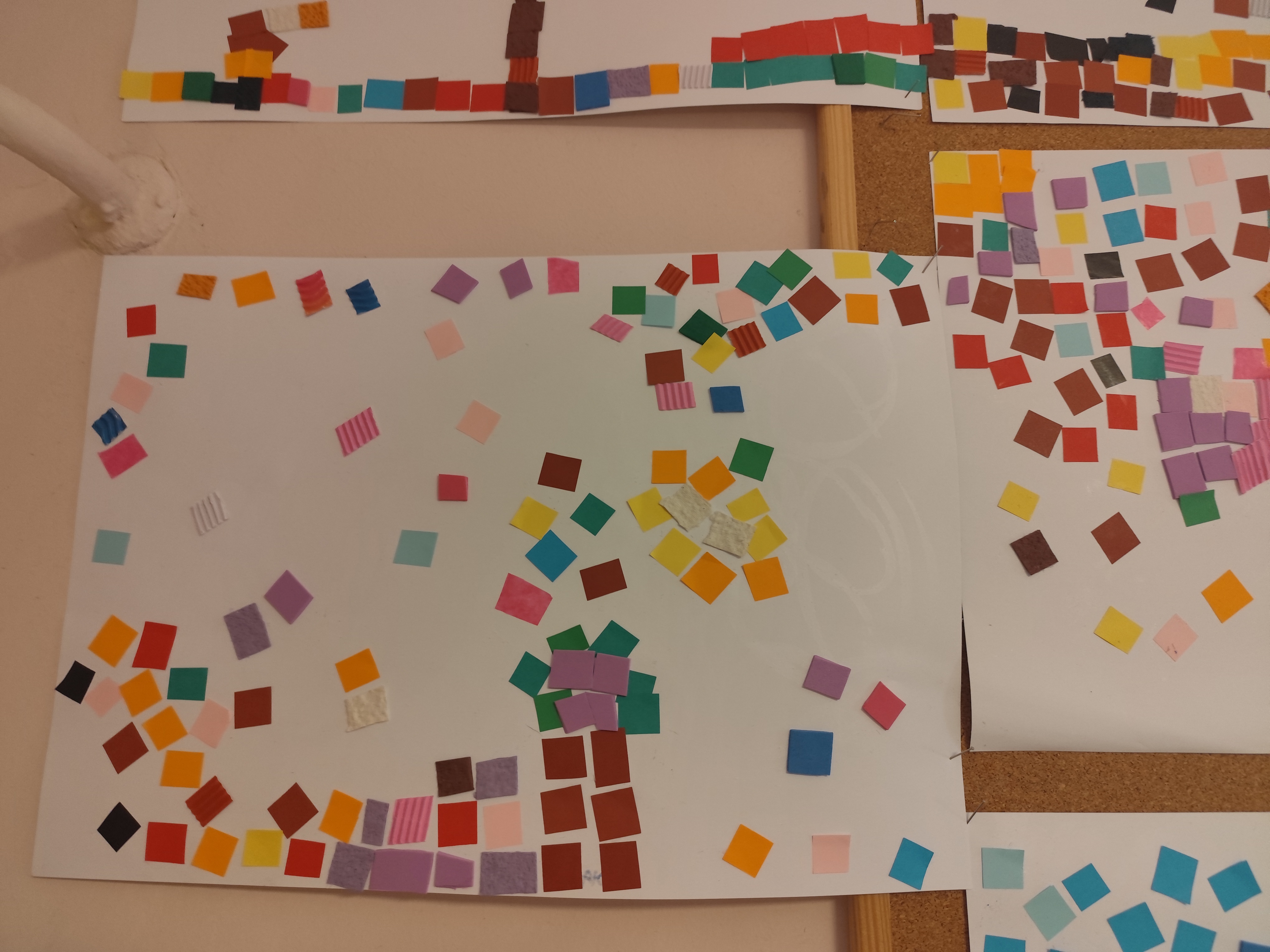 W ramach naszego projektu dzieci miały okazję stworzyć wyjątkowe, kolorowe mozaiki. Praca polegała na wyklejaniu obrazów z małych, papierowych elementów o różnych fakturach, co rozwijało kreatywność, wyobraźnię oraz zdolności manualne.