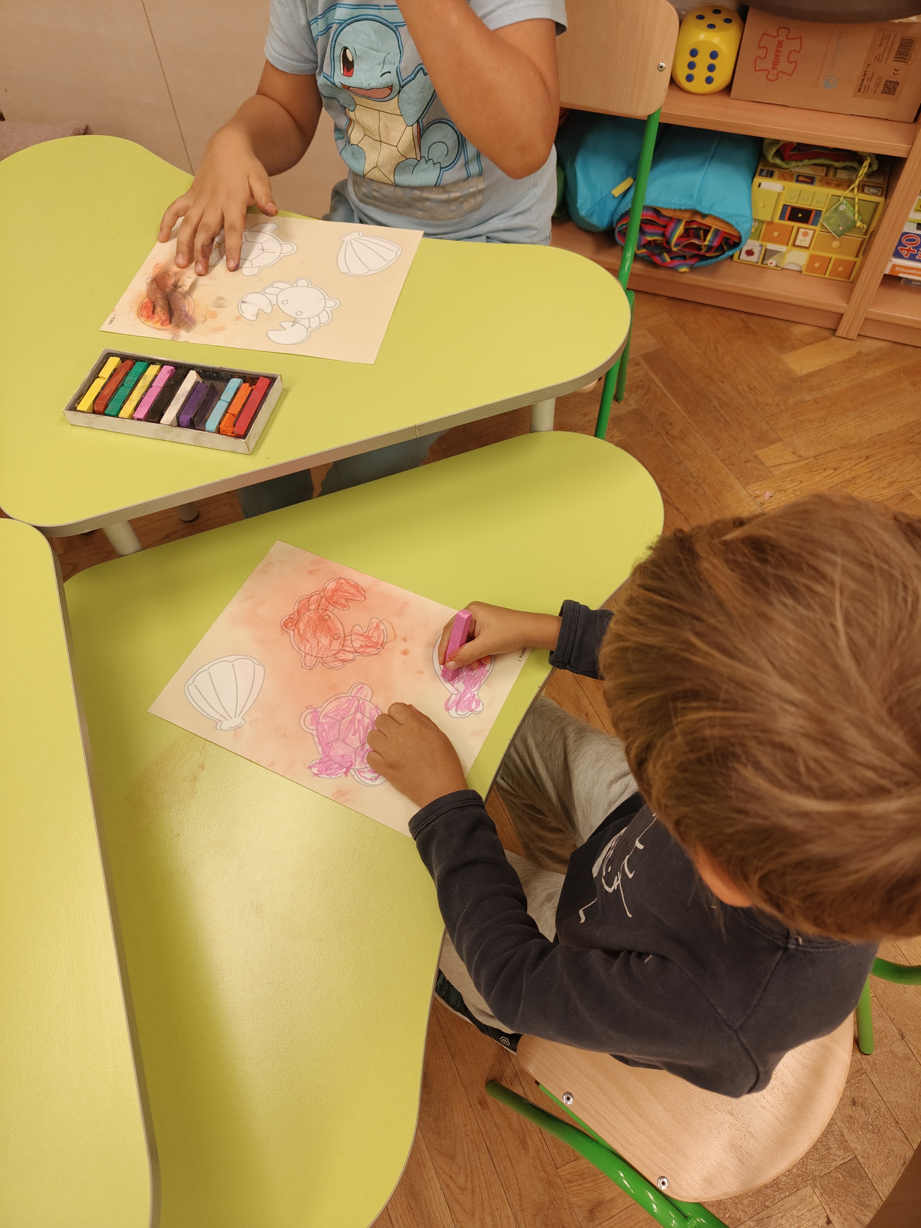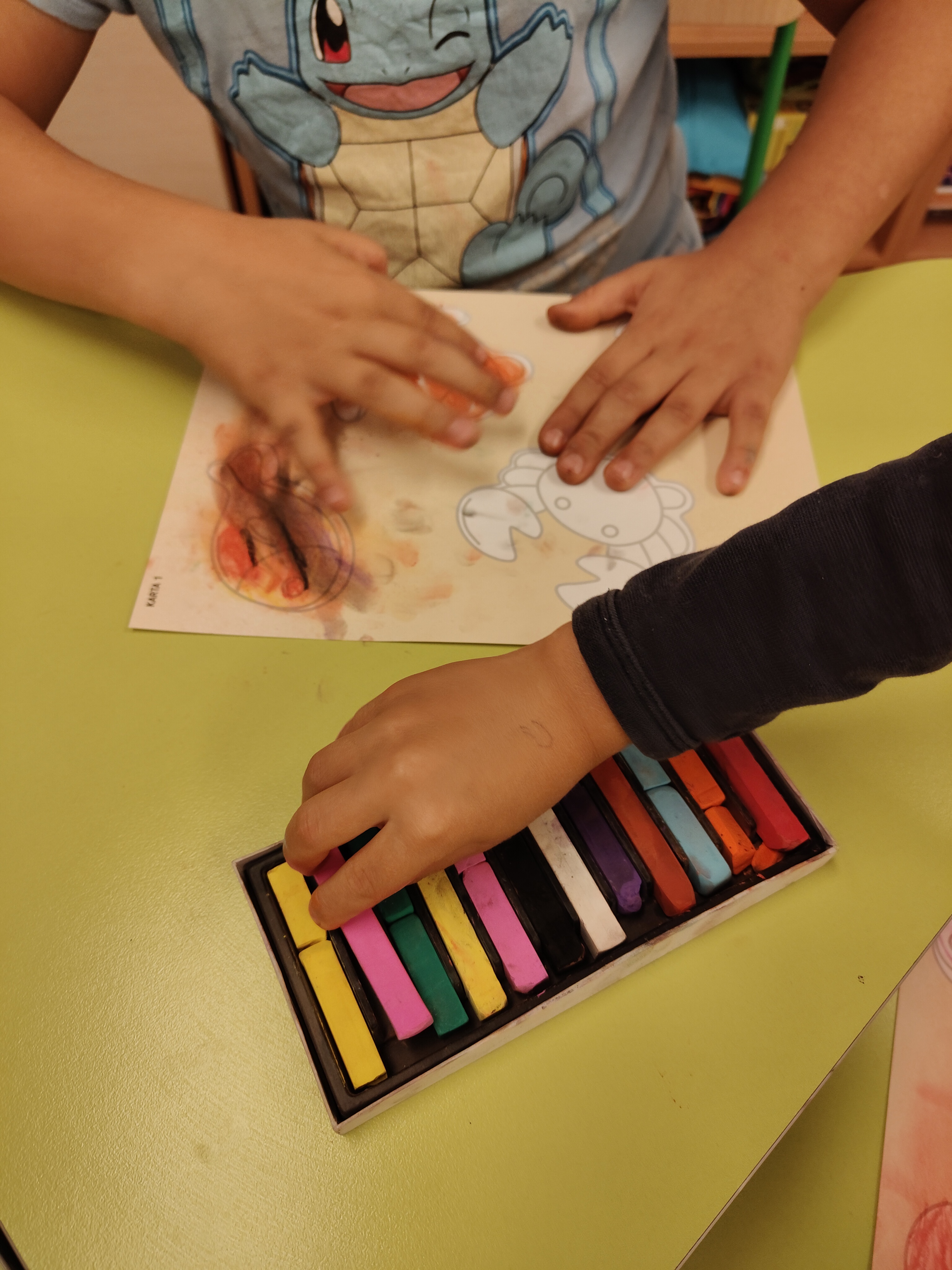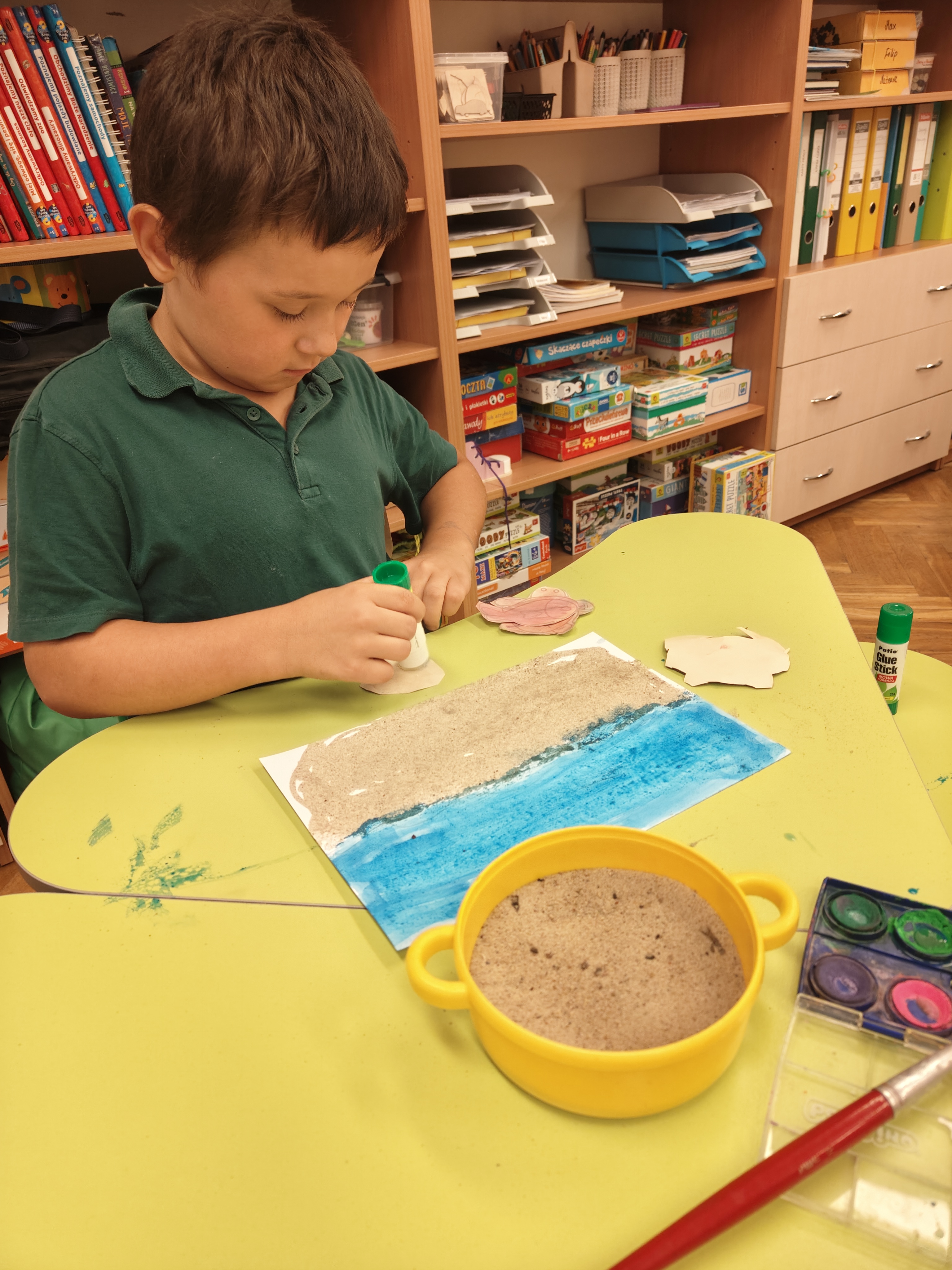 Wakacyjne wspomnienia dzieci chętnie zilustrowały wykonując pracę plastyczną akwarelami i suchymi pastelami.