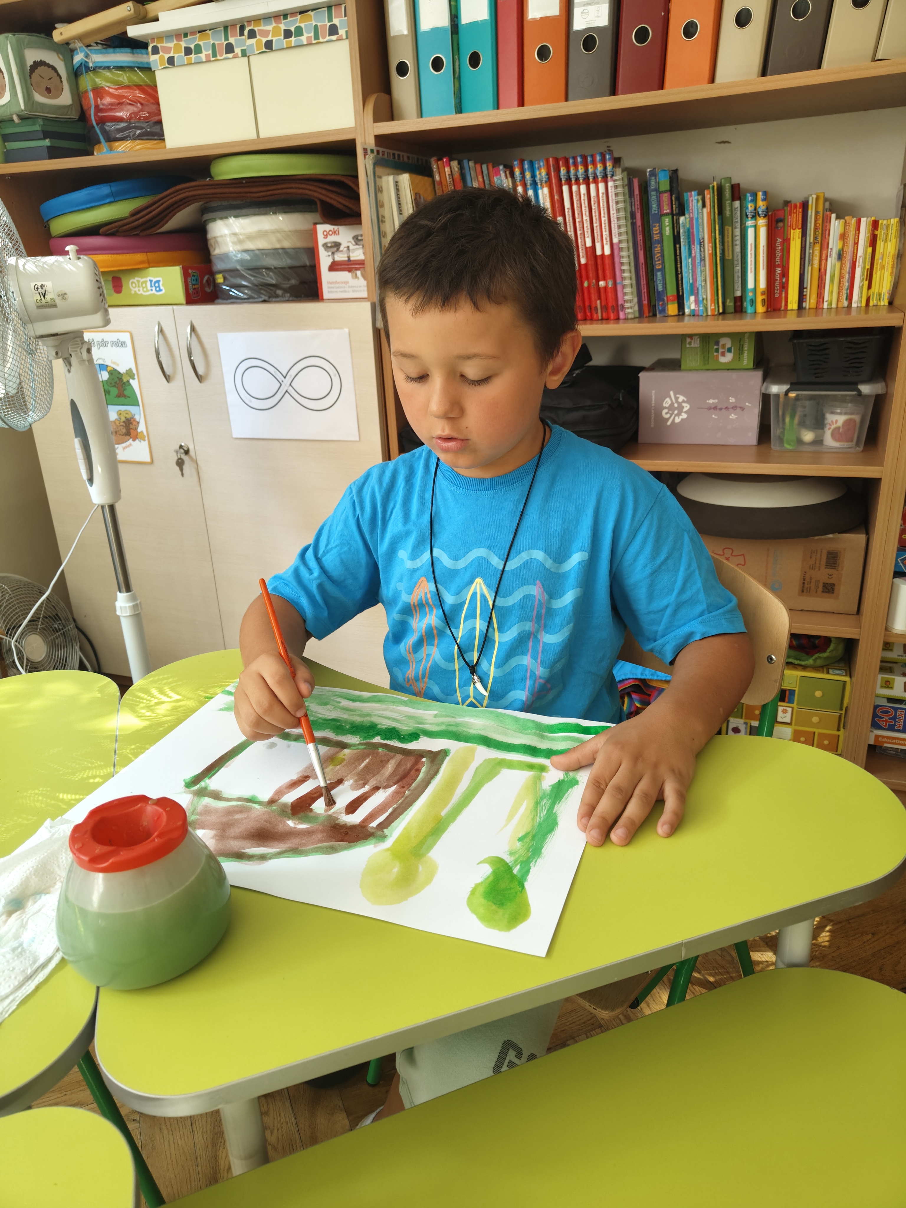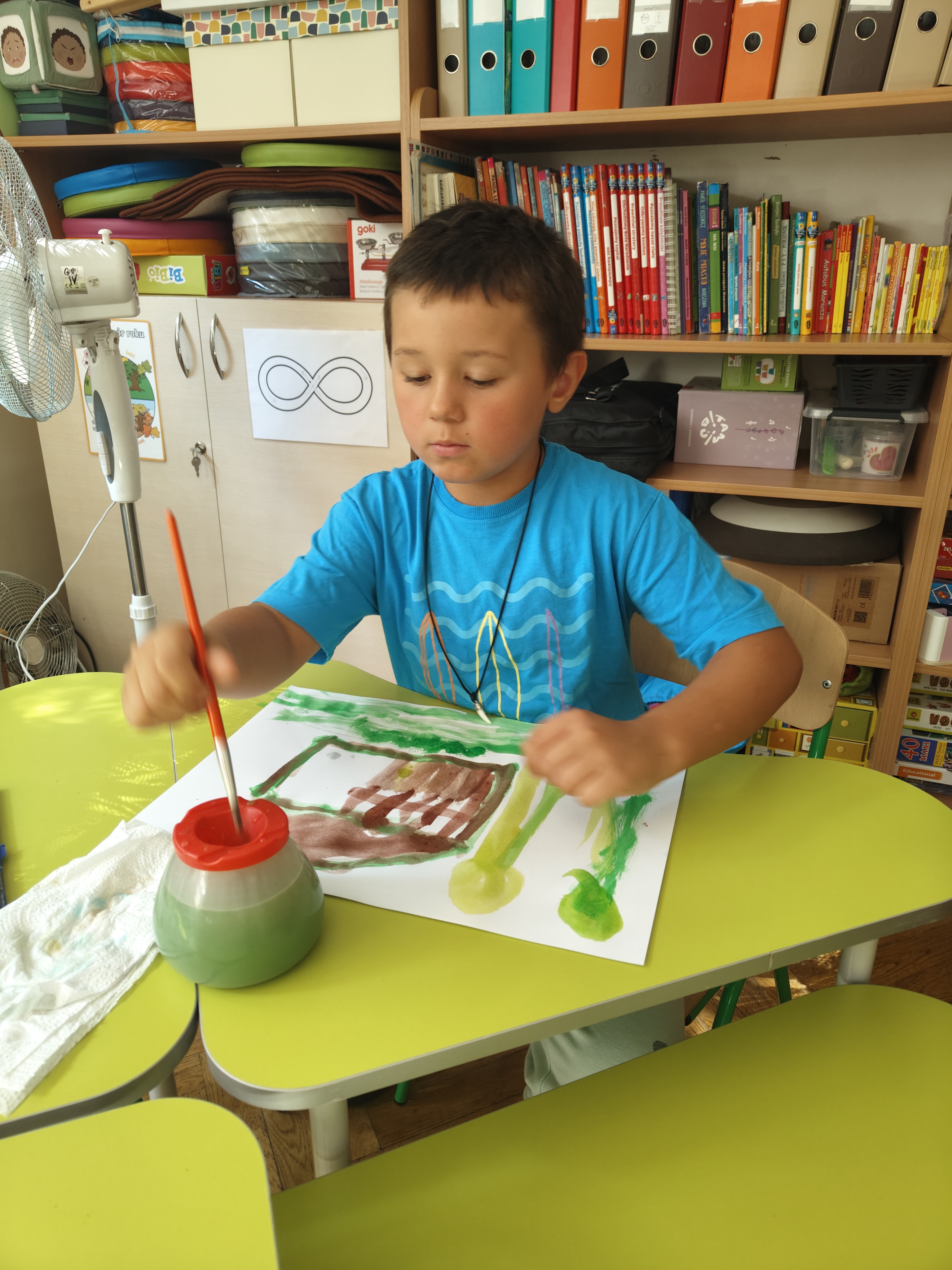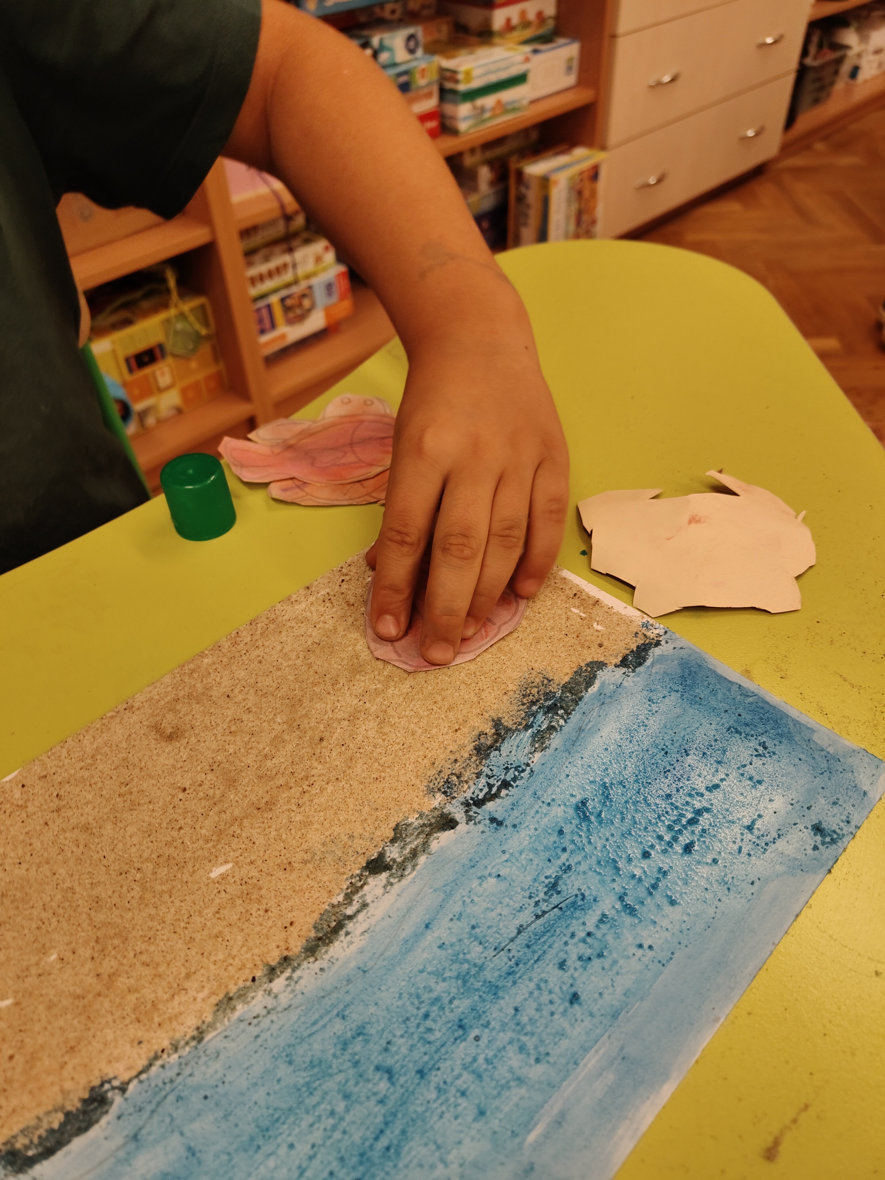 Wakacyjne wspomnienia dzieci chętnie zilustrowały wykonując pracę plastyczną akwarelami i suchymi pastelami.