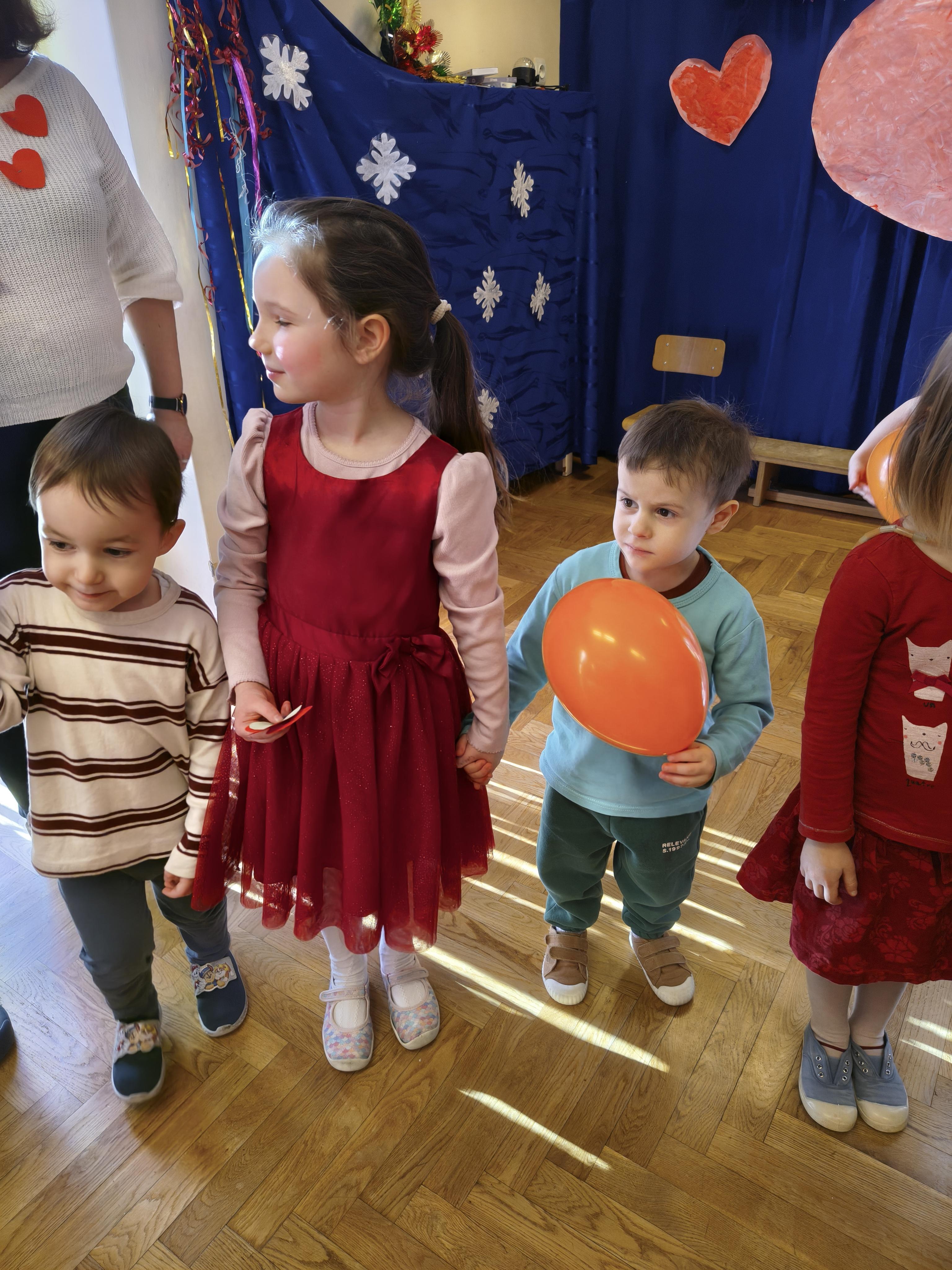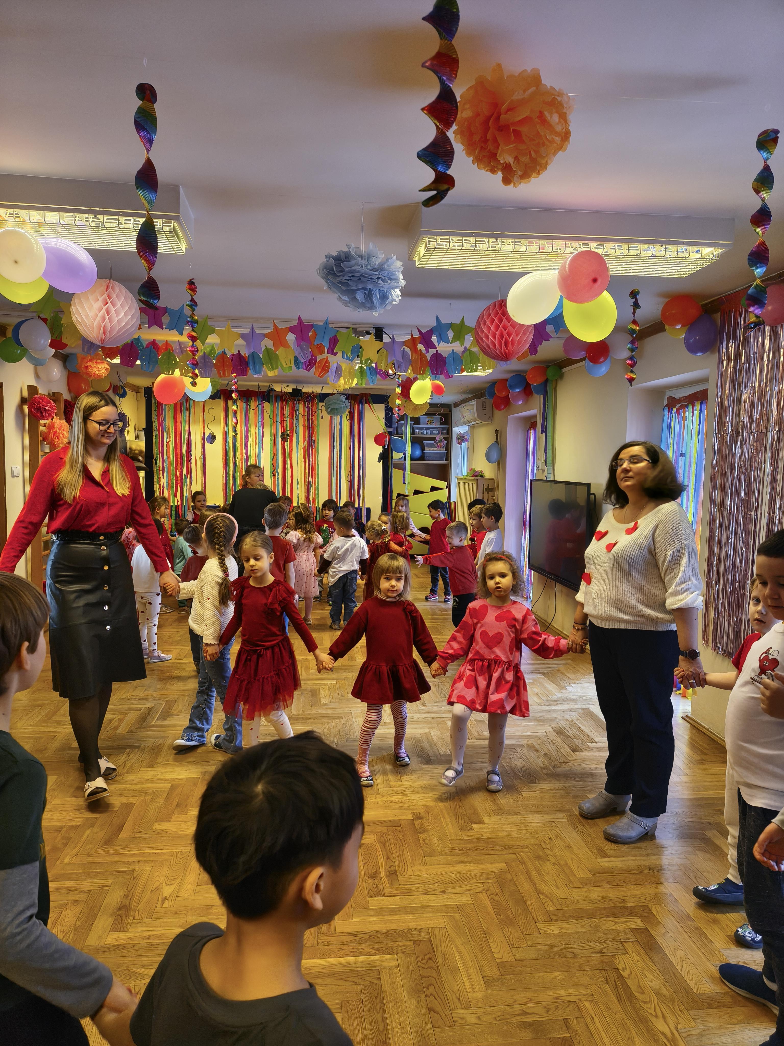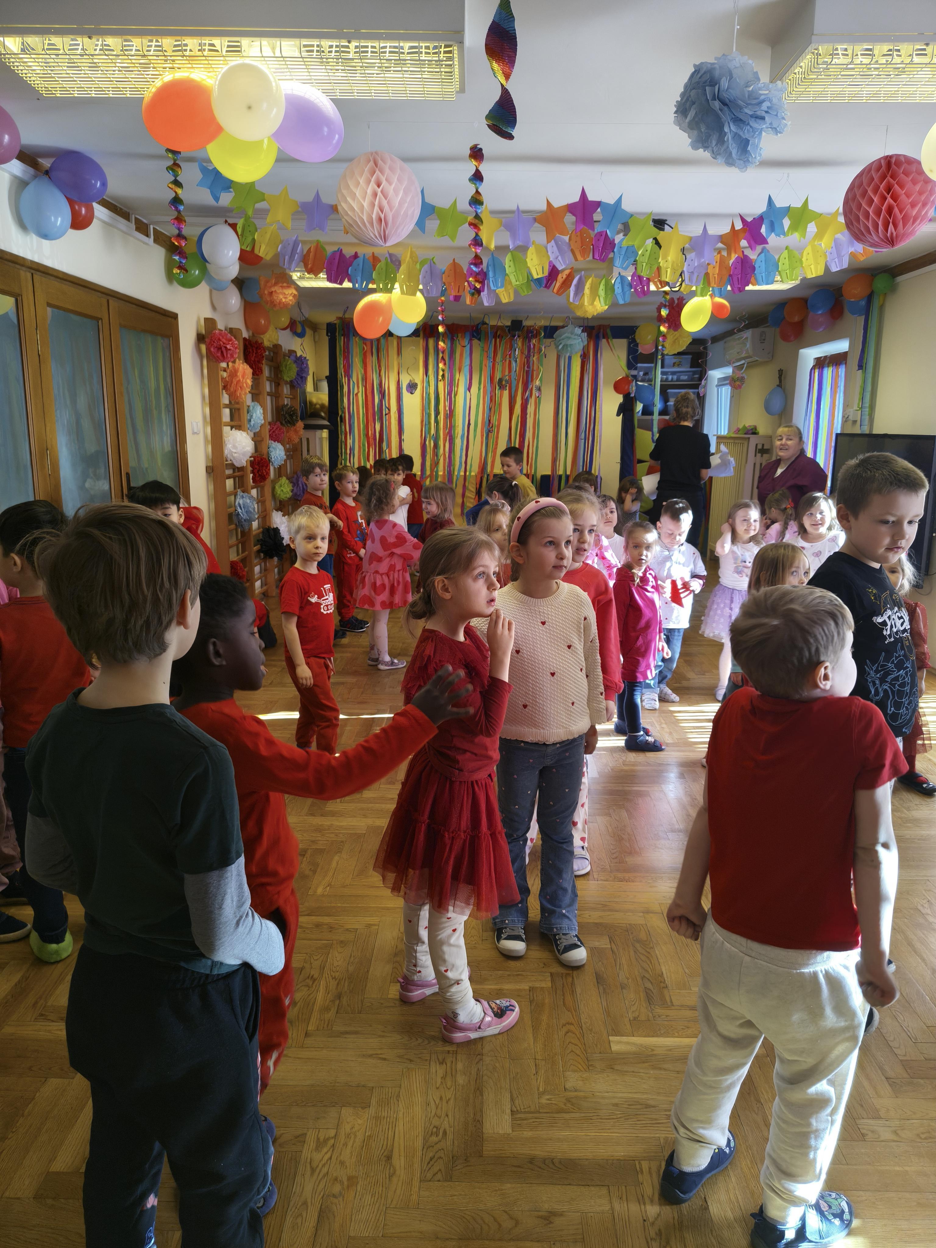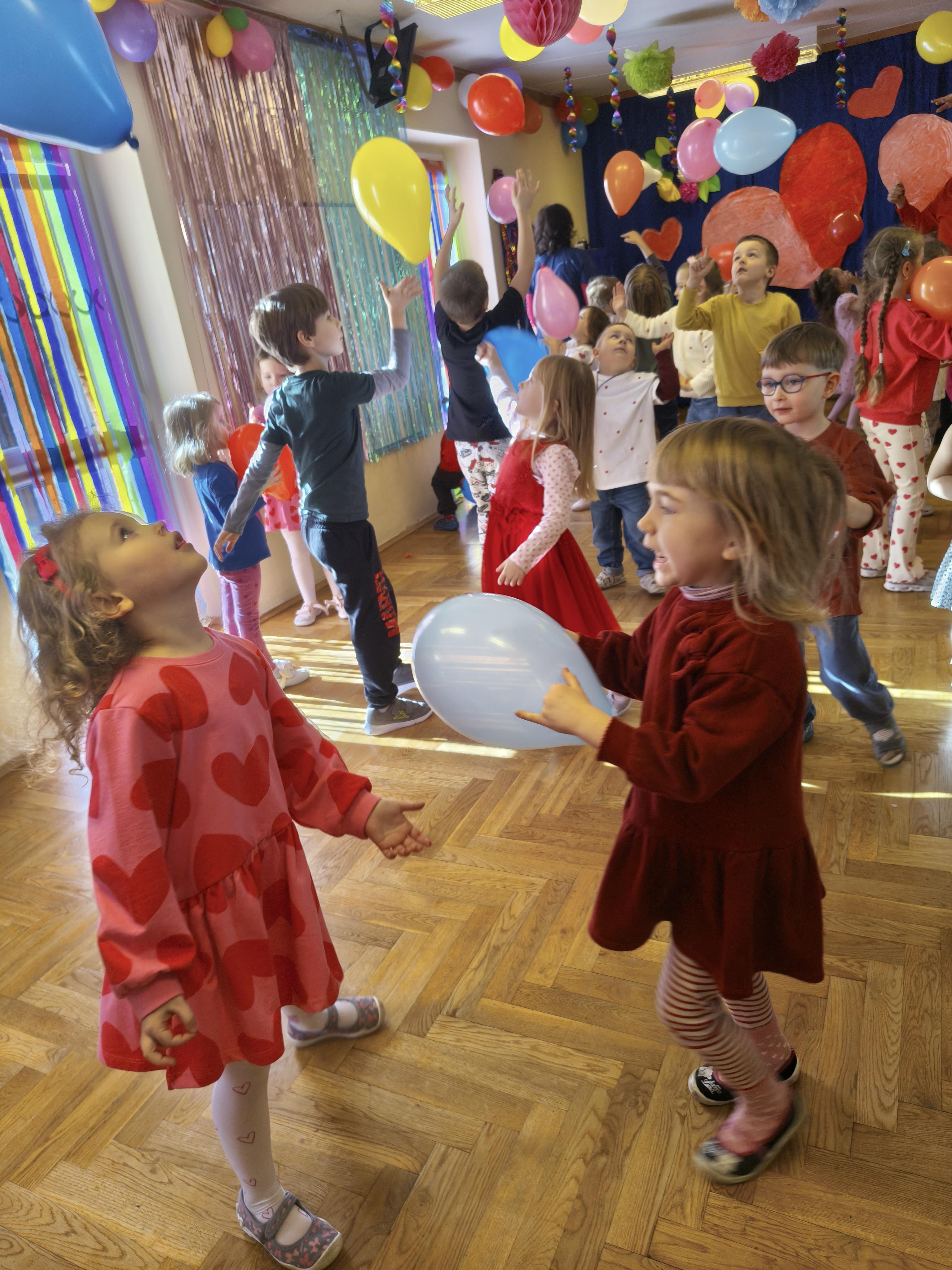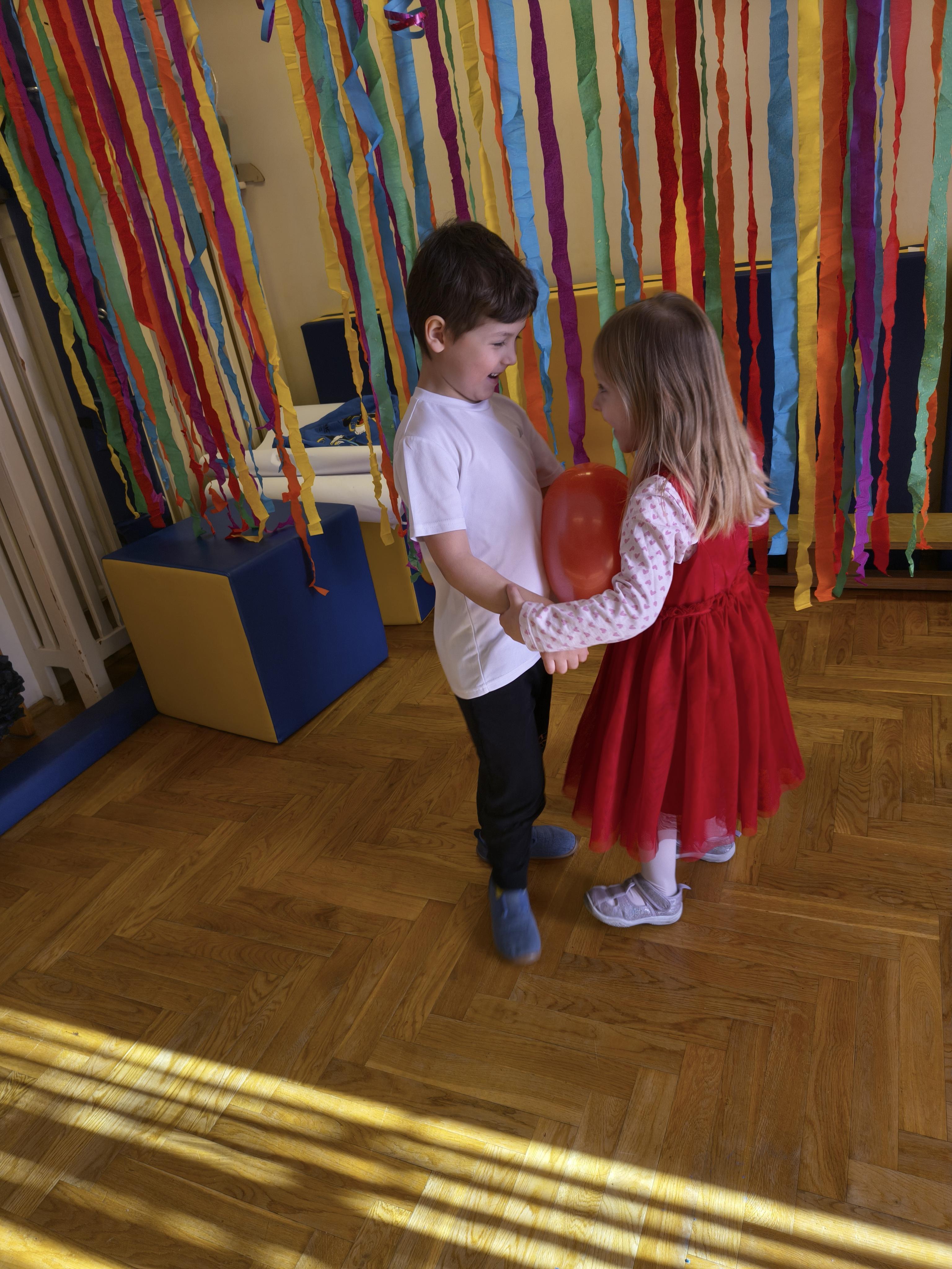W poniedziałek 16 lutego dzieci spotkały się pięknie ubrane, w sali gimnastycznej, by wspólnie świętować. Walentynkowa zabawa była doskonałą okazją do budowania relacji, empatii i radości. Było wręczanie kartek z poczty walentynkowej, poszukiwanie przyjaciół, tańce z balonami, kolorowanie dywanu miłości, chusta animacyjna, Belgijka i losowanie imion przyszłych sympatii. Nie brakowało dobrej muzyki i uśmiechniętych buziaków!