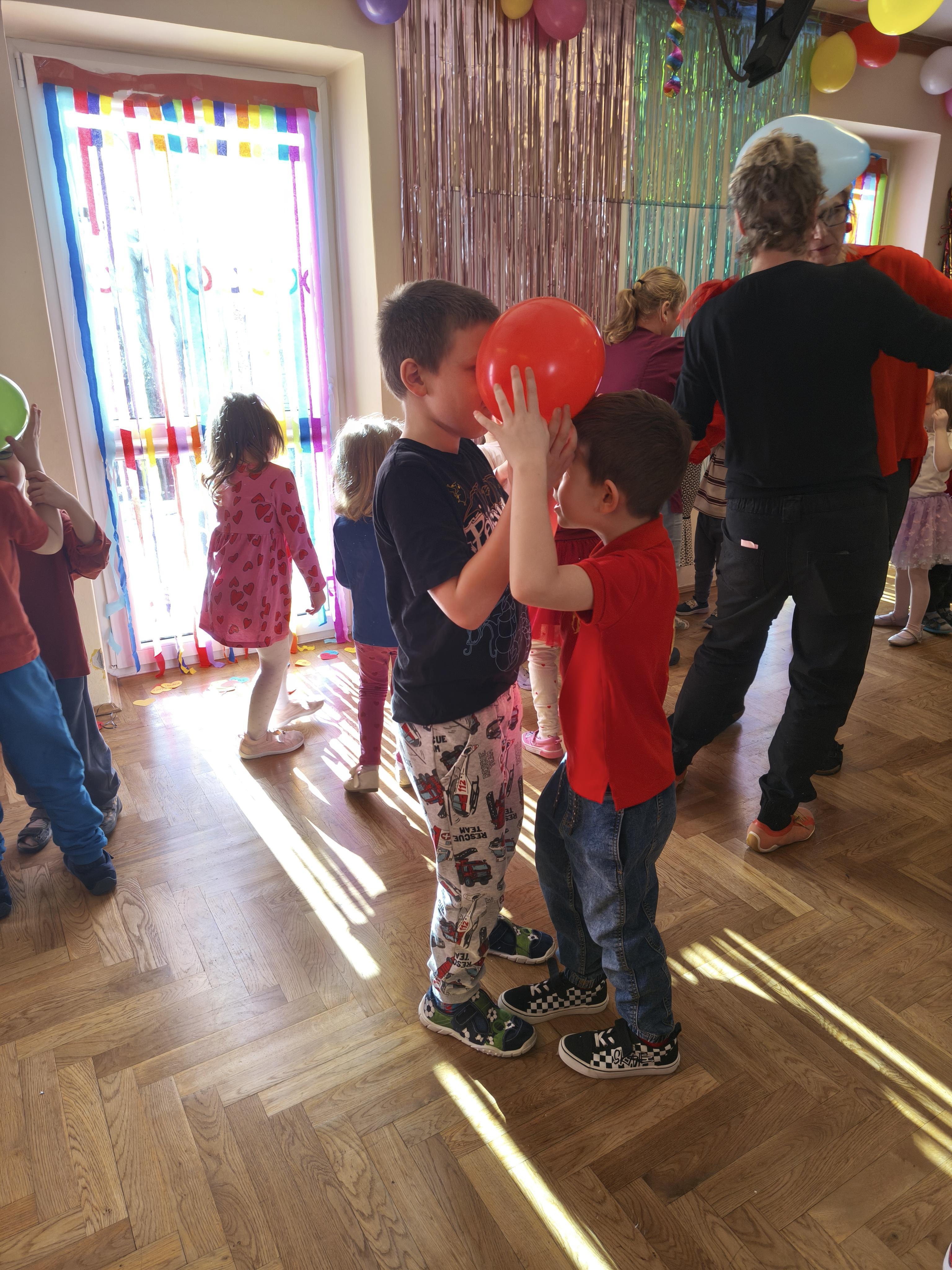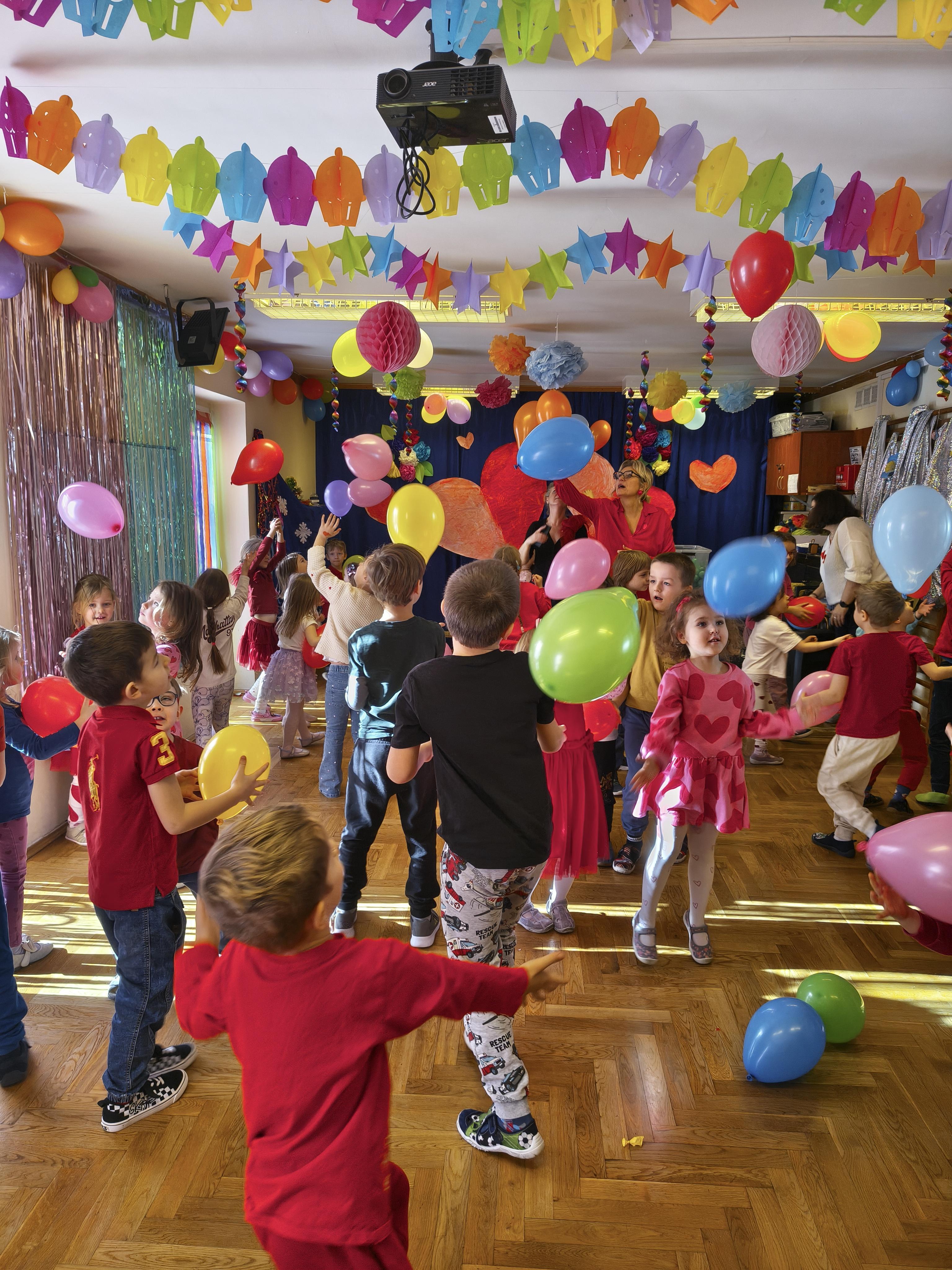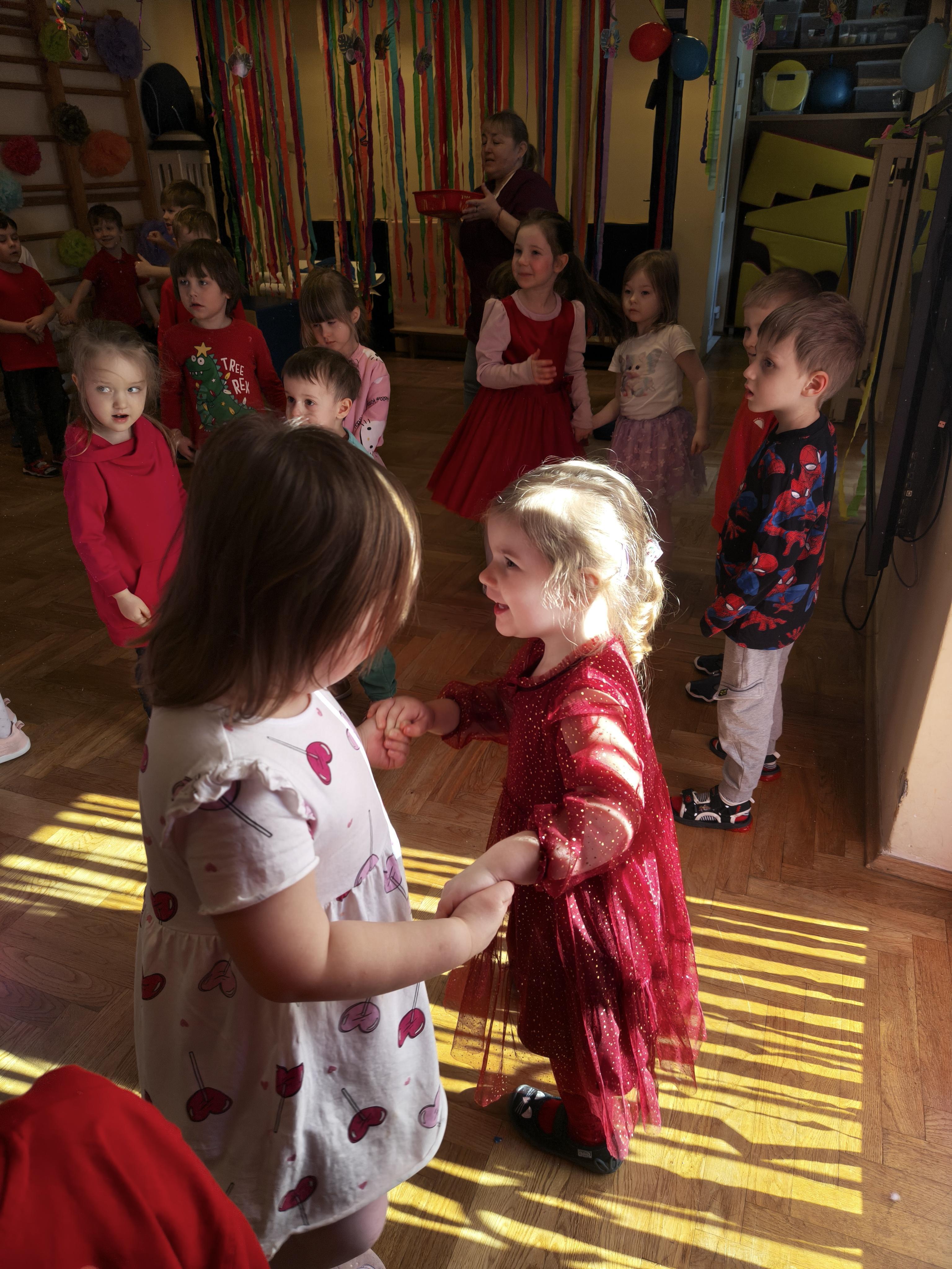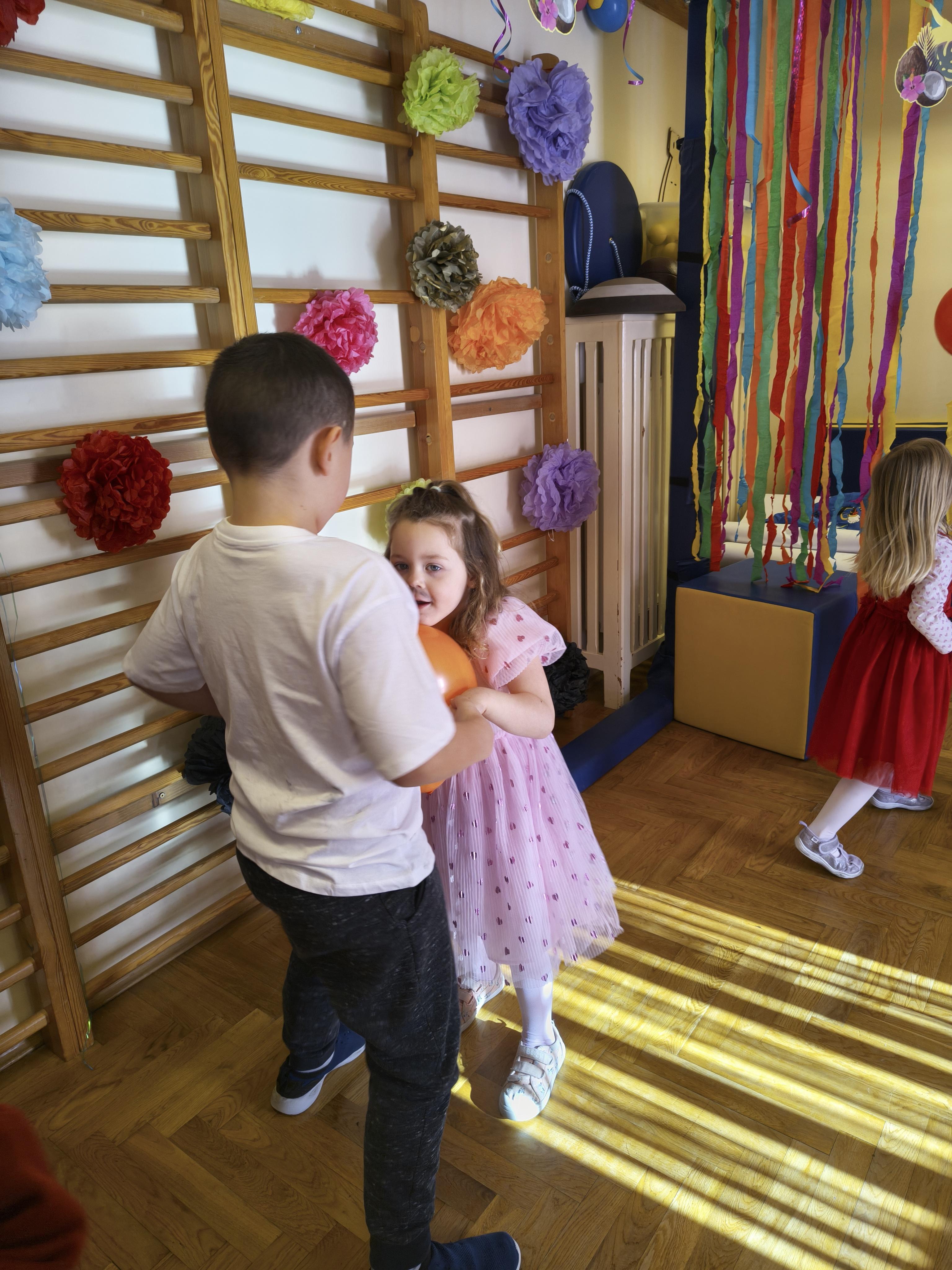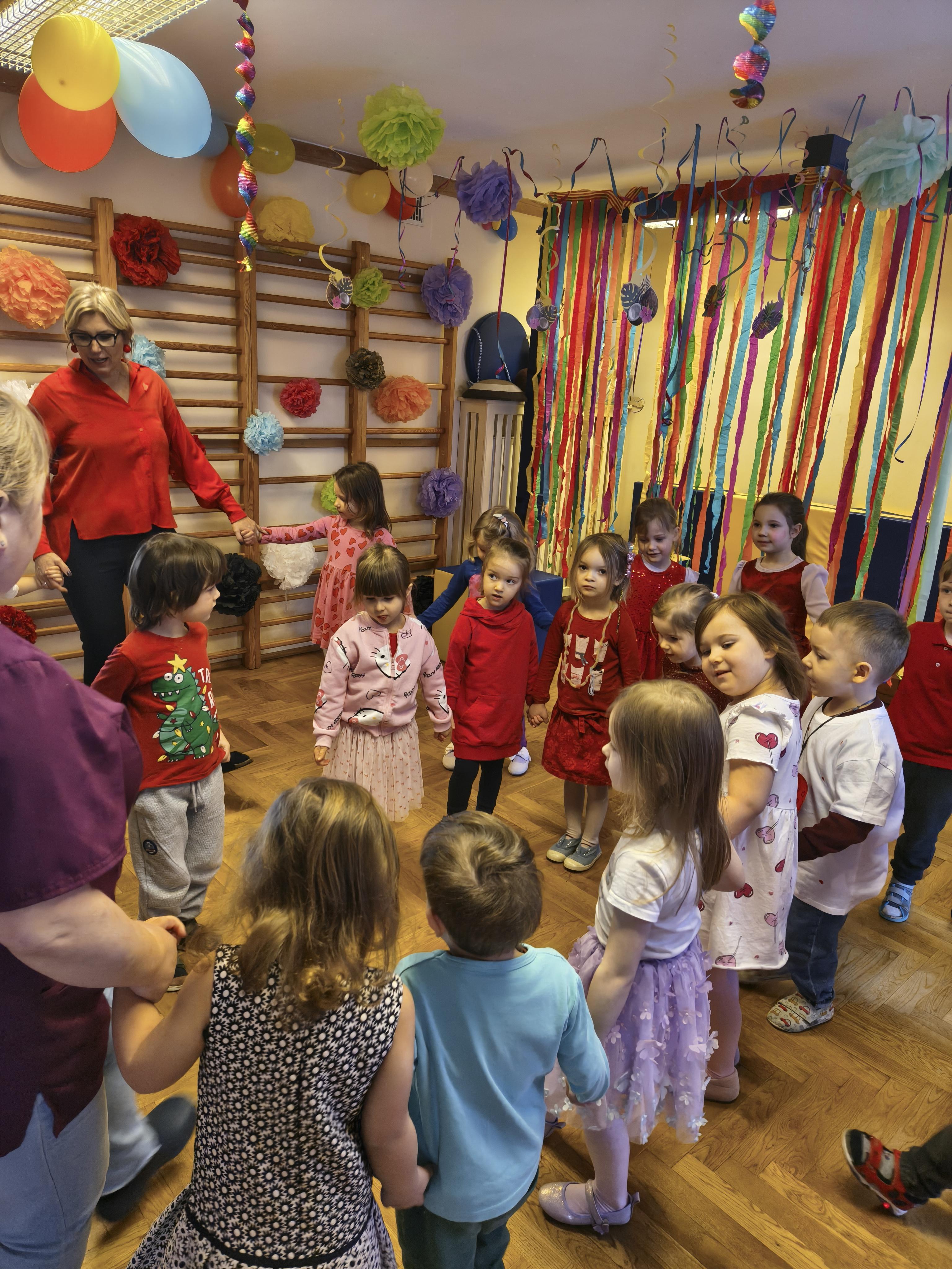 W poniedziałek 16 lutego dzieci spotkały się pięknie ubrane, w sali gimnastycznej, by wspólnie świętować. Walentynkowa zabawa była doskonałą okazją do budowania relacji, empatii i radości. Było wręczanie kartek z poczty walentynkowej, poszukiwanie przyjaciół, tańce z balonami, kolorowanie dywanu miłości, chusta animacyjna, Belgijka i losowanie imion przyszłych sympatii. Nie brakowało dobrej muzyki i uśmiechniętych buziaków!