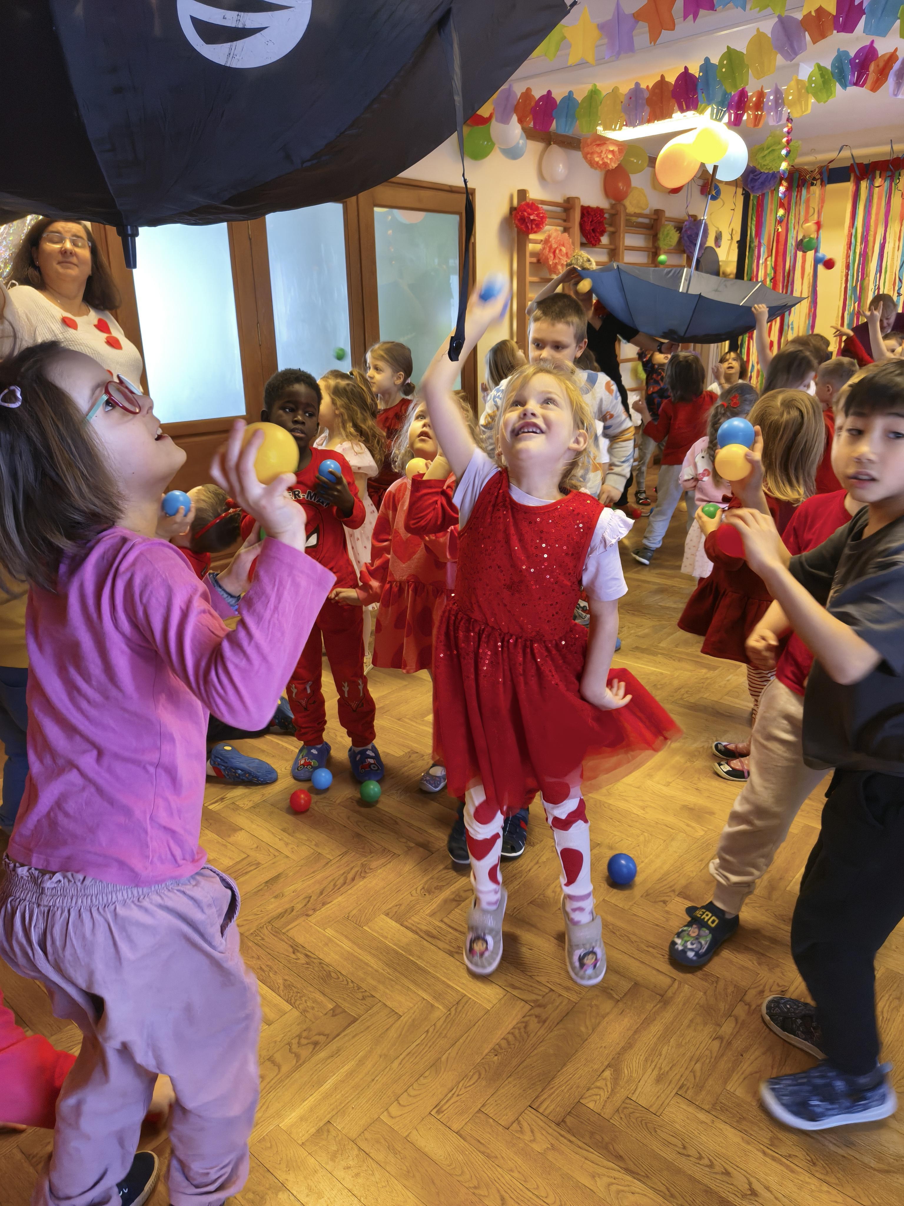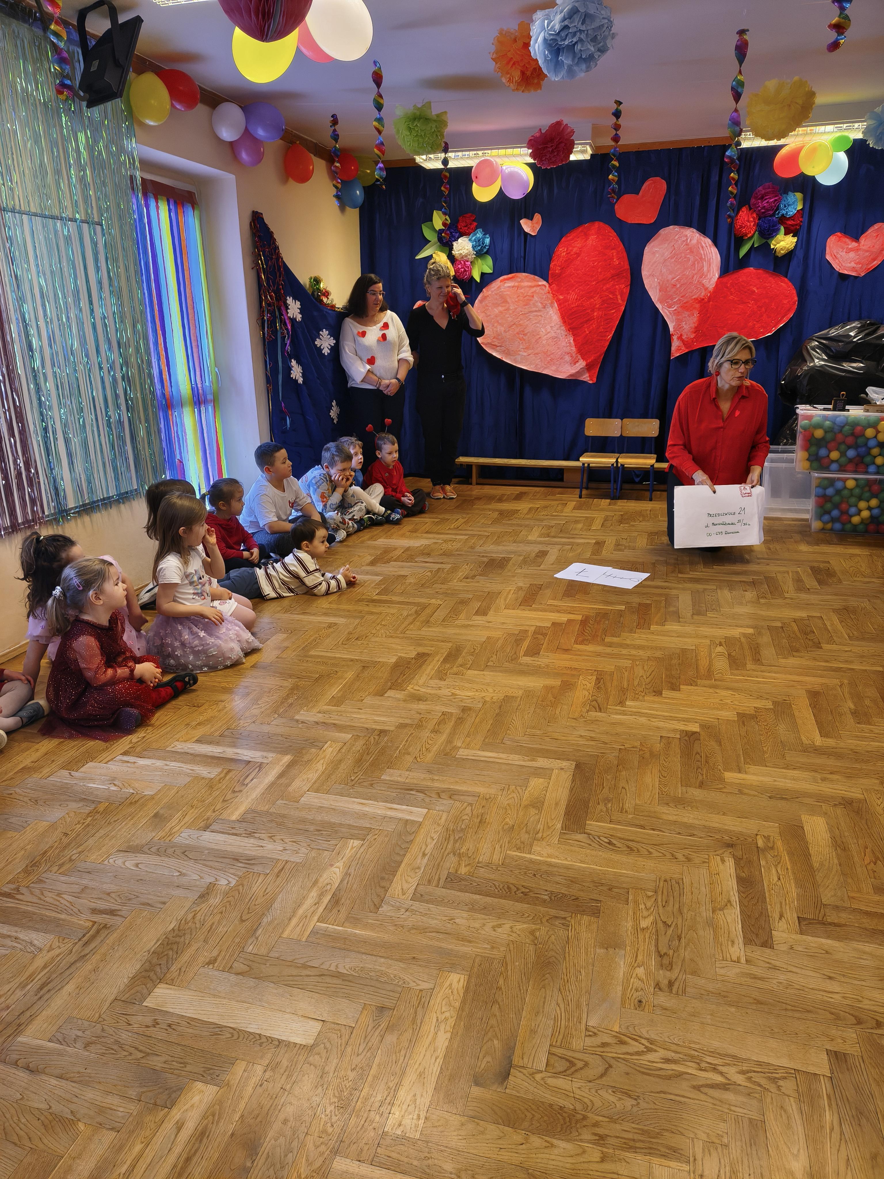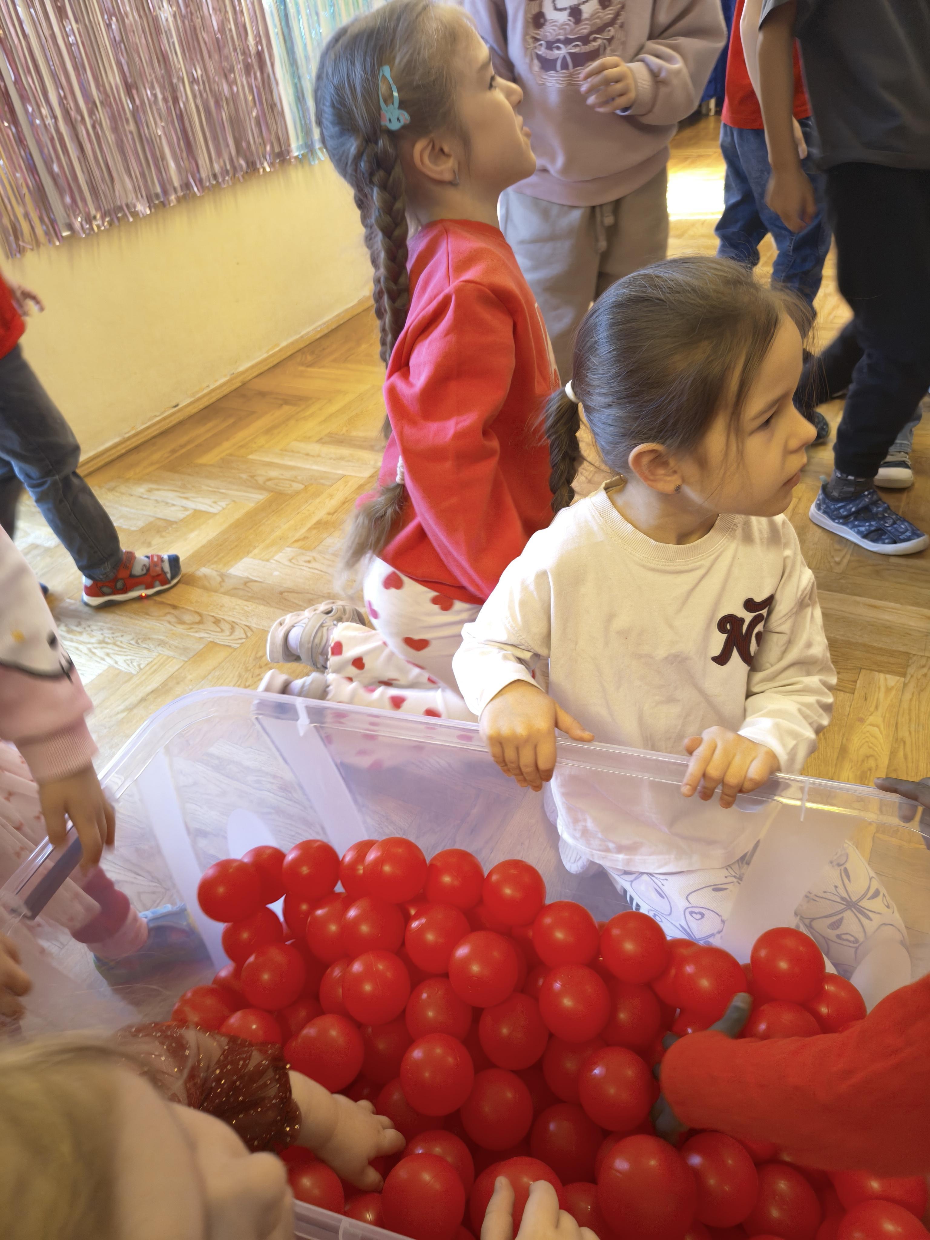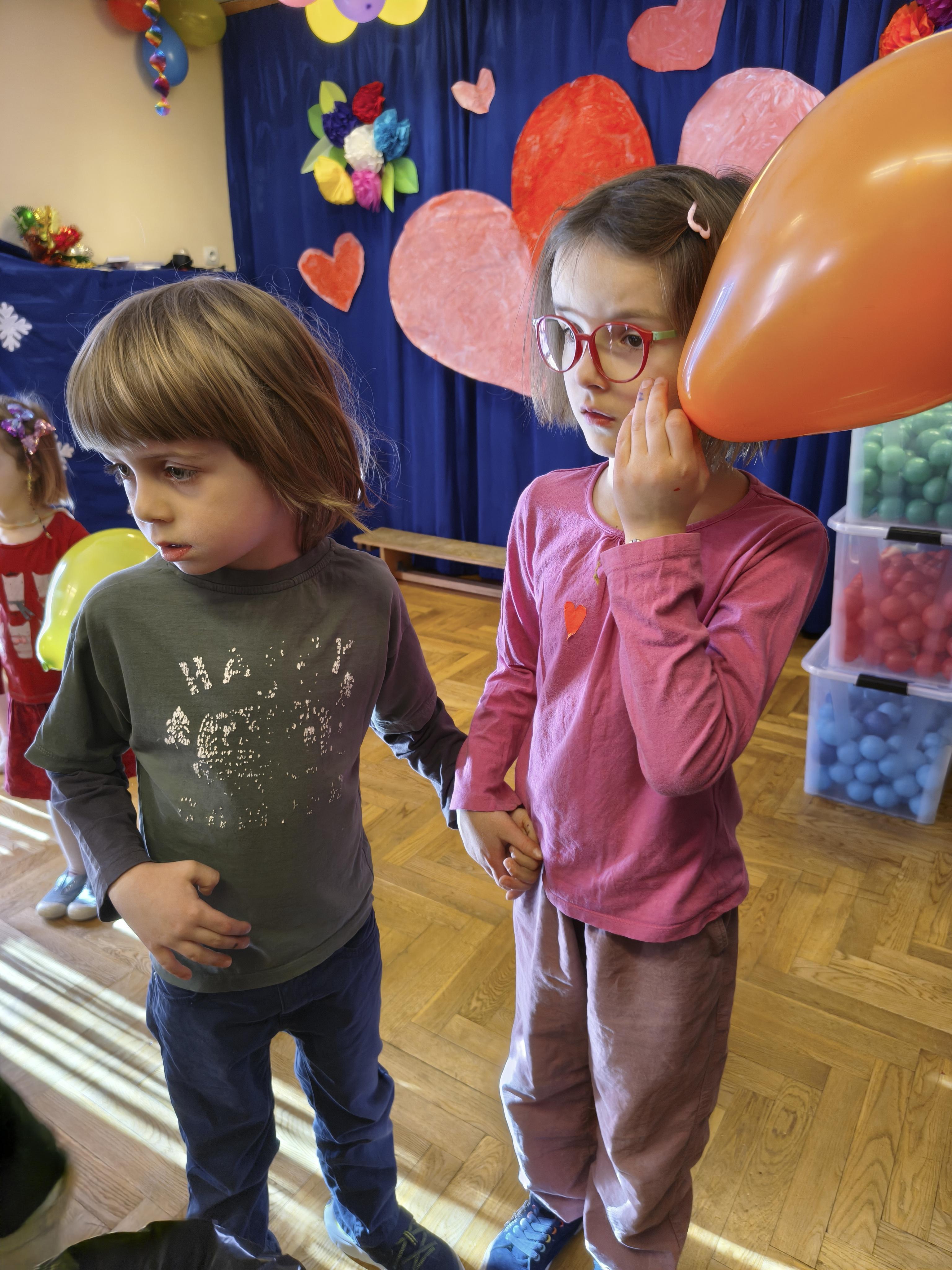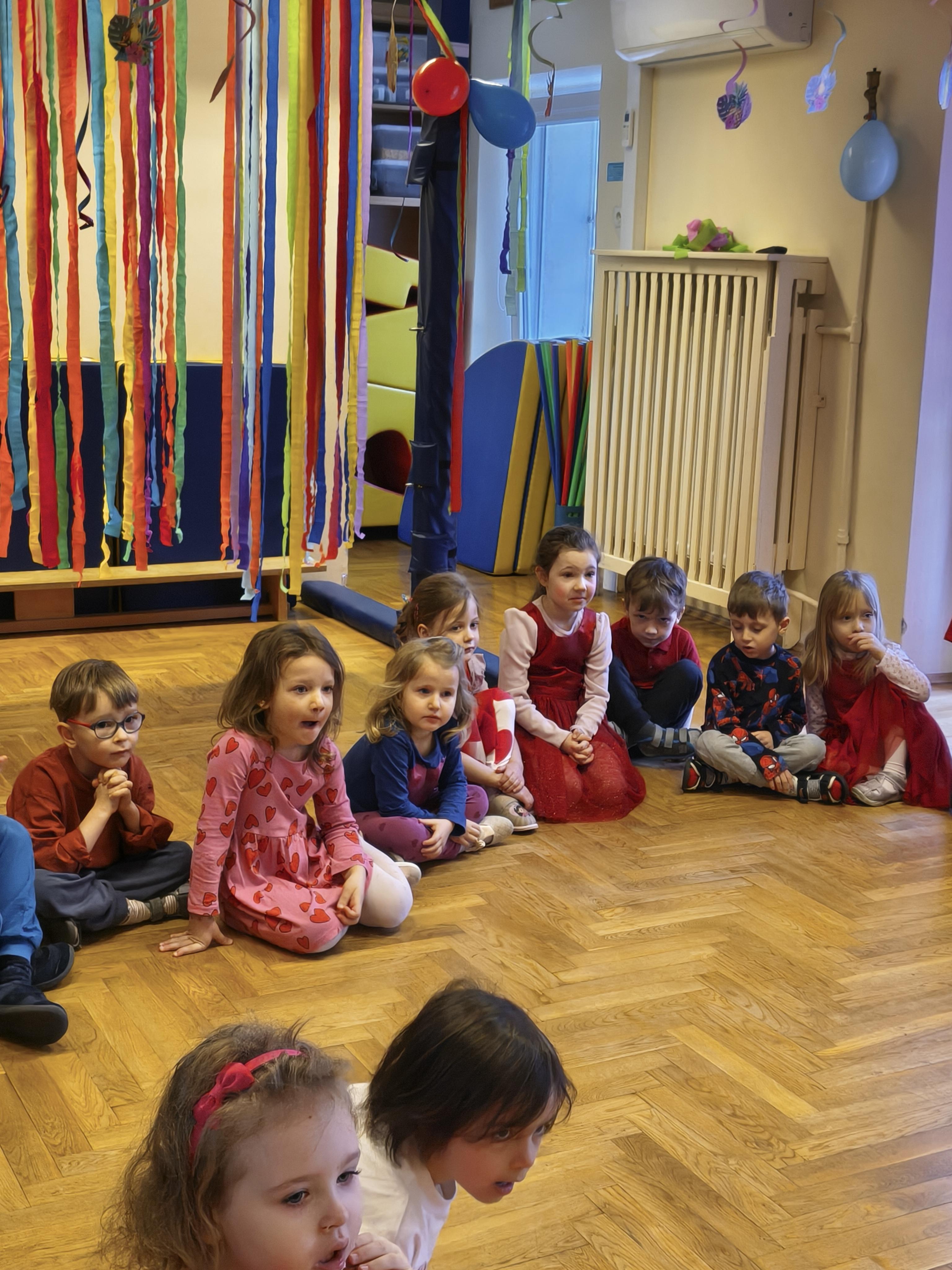 W poniedziałek 16 lutego dzieci spotkały się pięknie ubrane, w sali gimnastycznej, by wspólnie świętować. Walentynkowa zabawa była doskonałą okazją do budowania relacji, empatii i radości. Było wręczanie kartek z poczty walentynkowej, poszukiwanie przyjaciół, tańce z balonami, kolorowanie dywanu miłości, chusta animacyjna, Belgijka i losowanie imion przyszłych sympatii. Nie brakowało dobrej muzyki i uśmiechniętych buziaków!