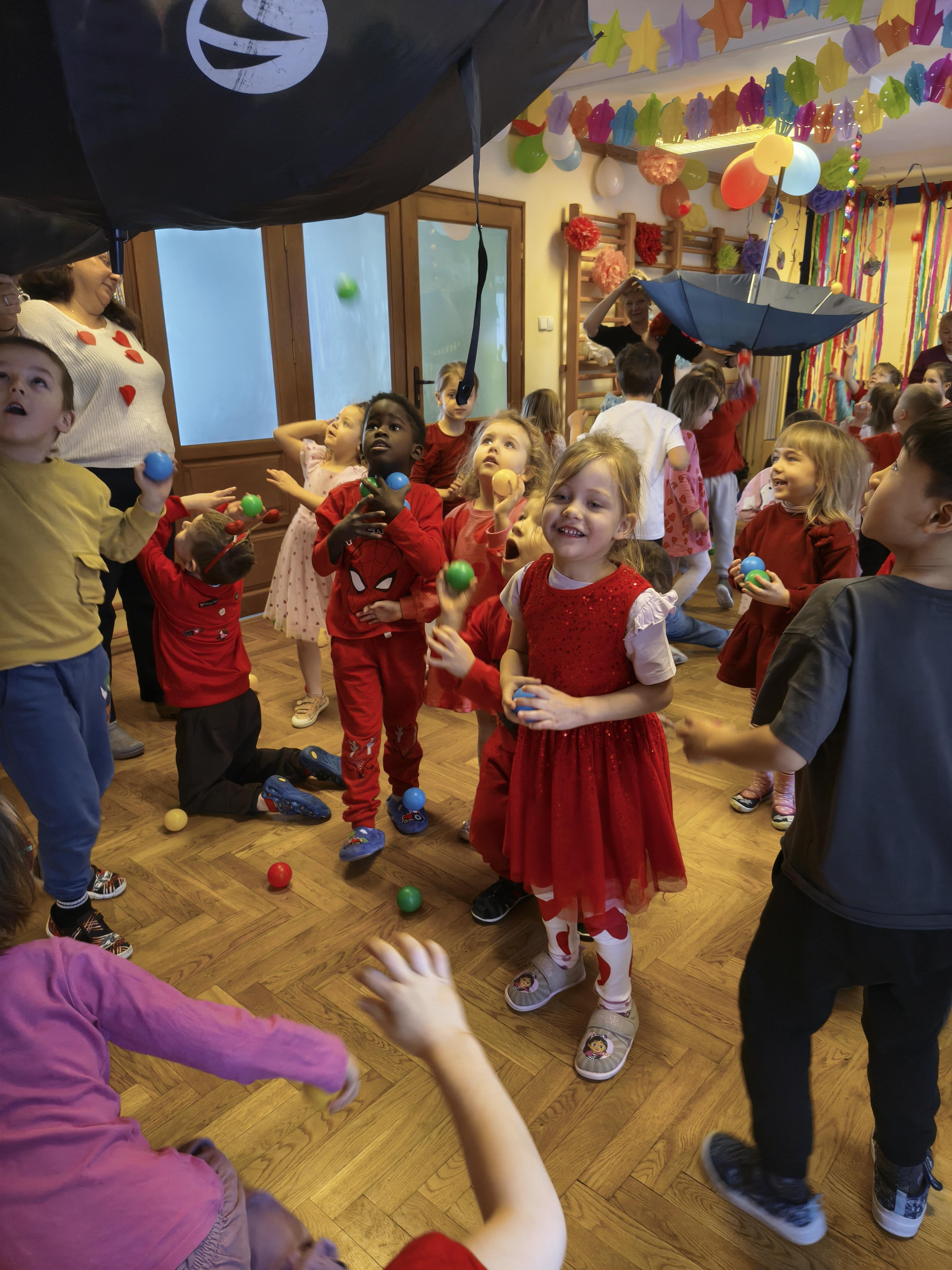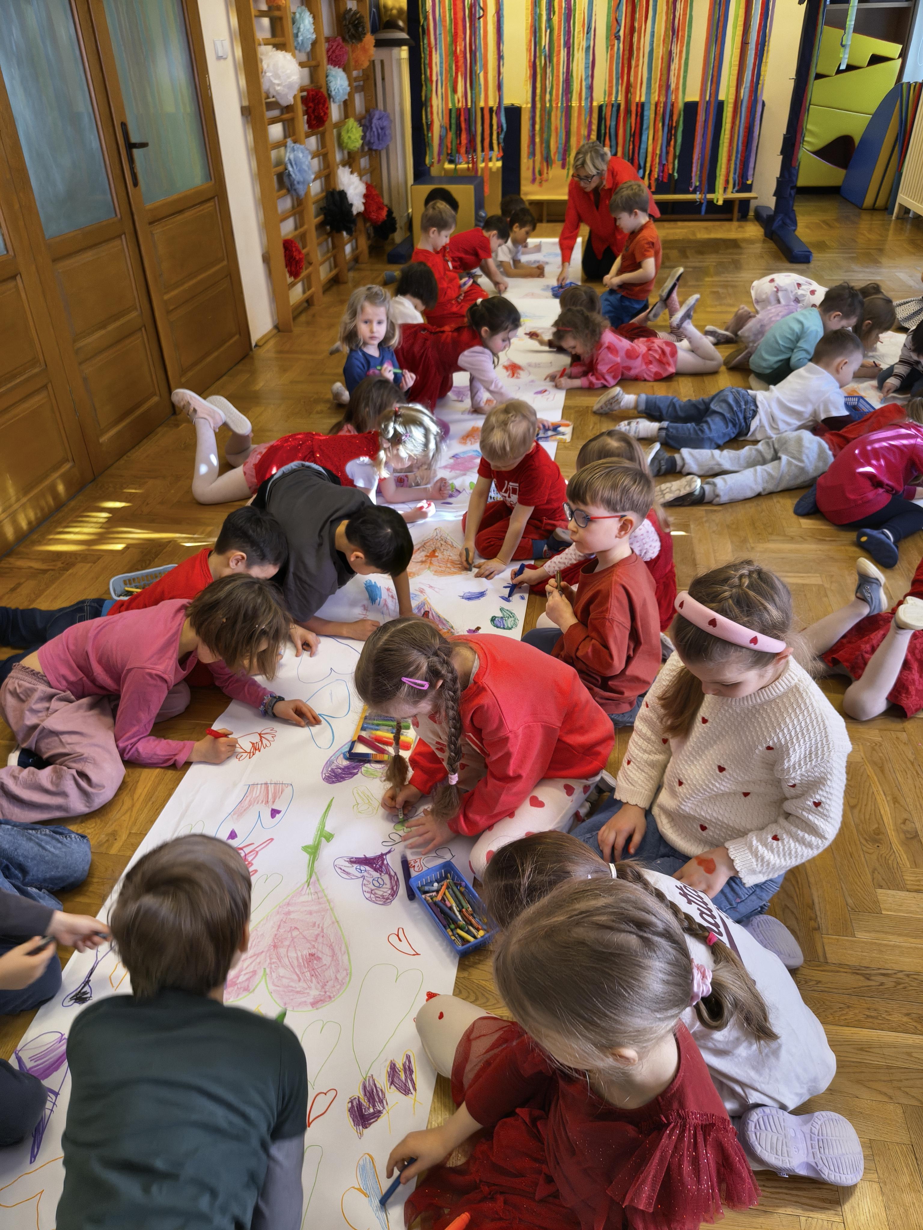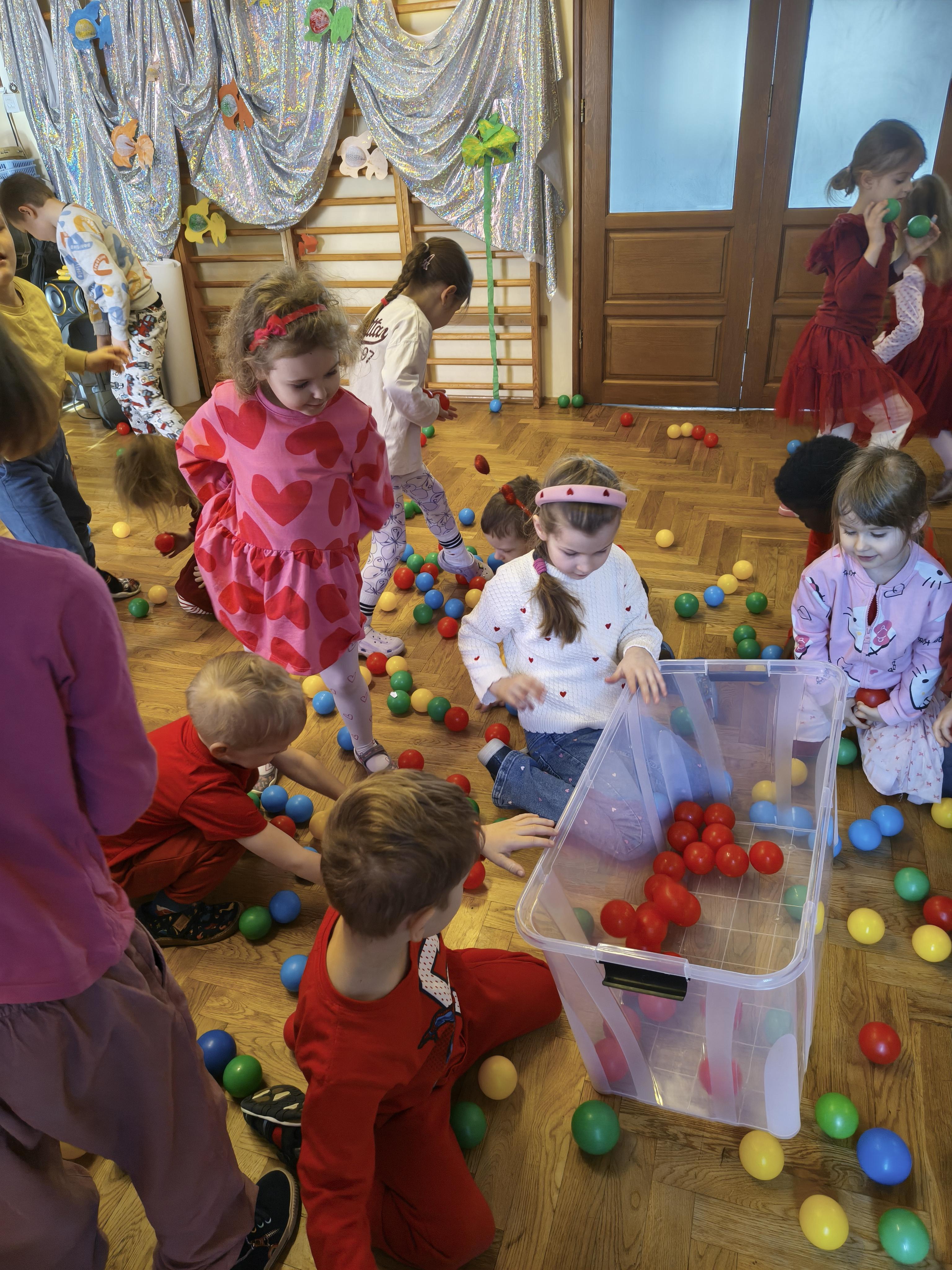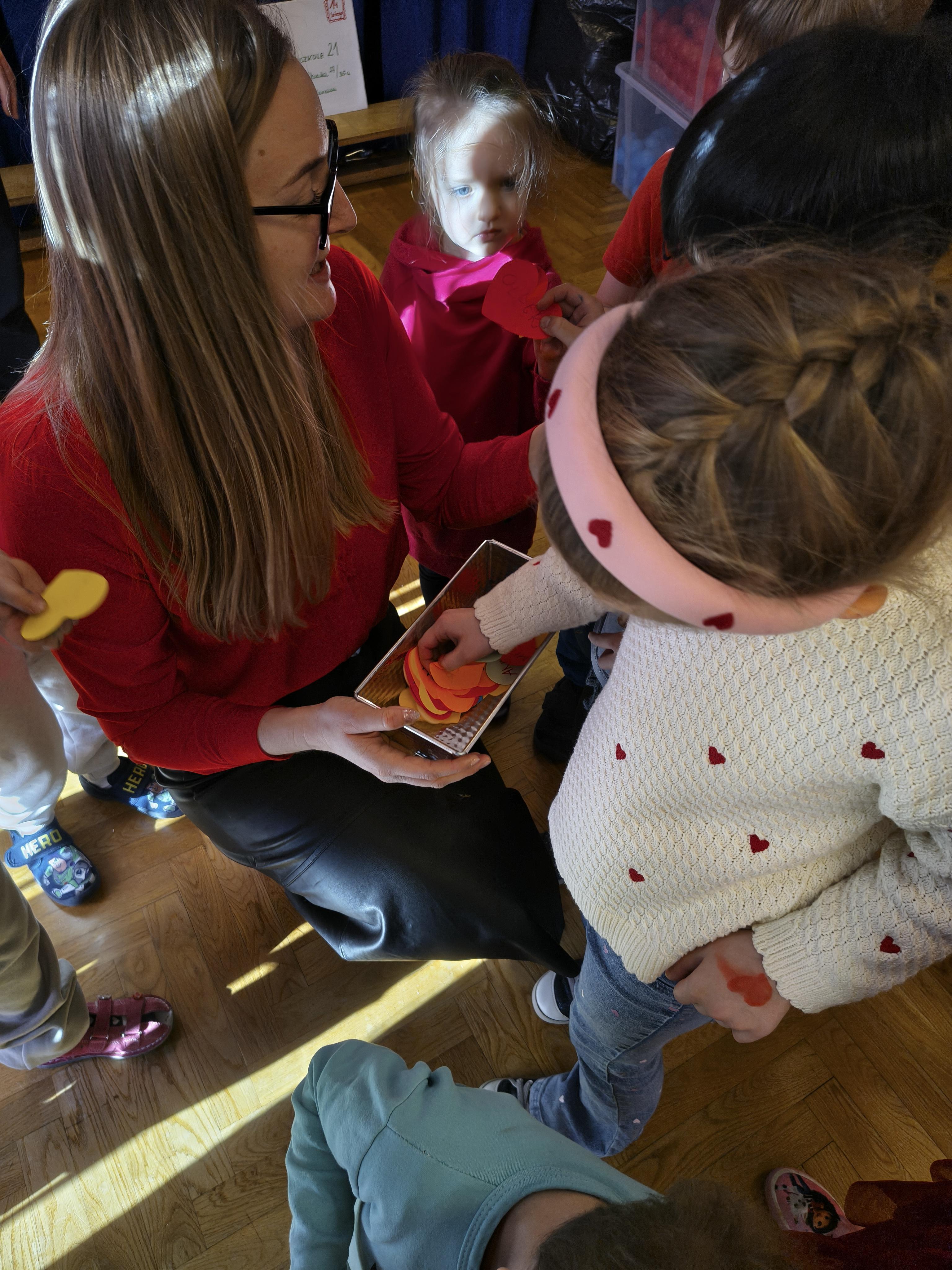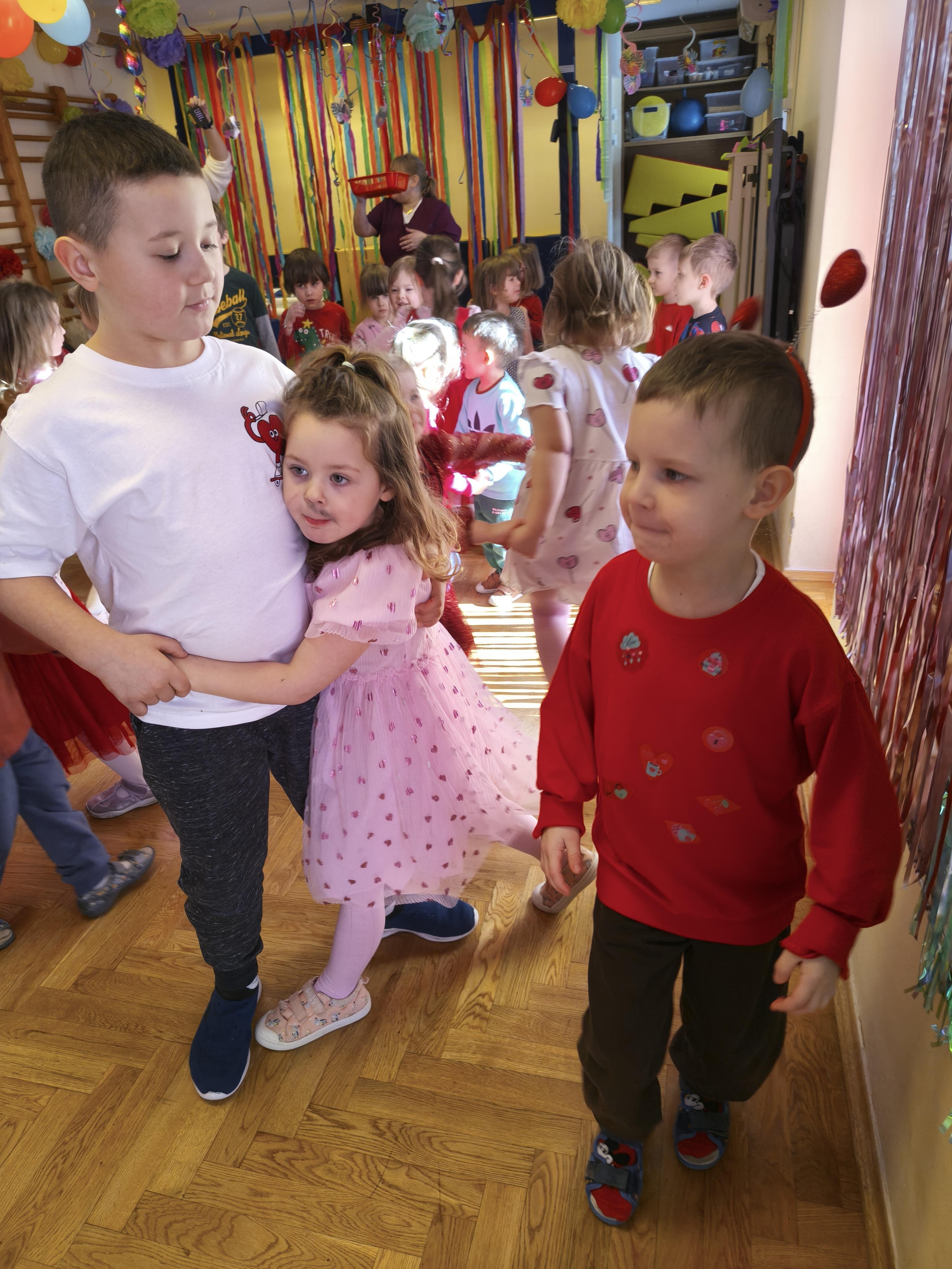W poniedziałek 16 lutego dzieci spotkały się pięknie ubrane, w sali gimnastycznej, by wspólnie świętować. Walentynkowa zabawa była doskonałą okazją do budowania relacji, empatii i radości. Było wręczanie kartek z poczty walentynkowej, poszukiwanie przyjaciół, tańce z balonami, kolorowanie dywanu miłości, chusta animacyjna, Belgijka i losowanie imion przyszłych sympatii. Nie brakowało dobrej muzyki i uśmiechniętych buziaków!
