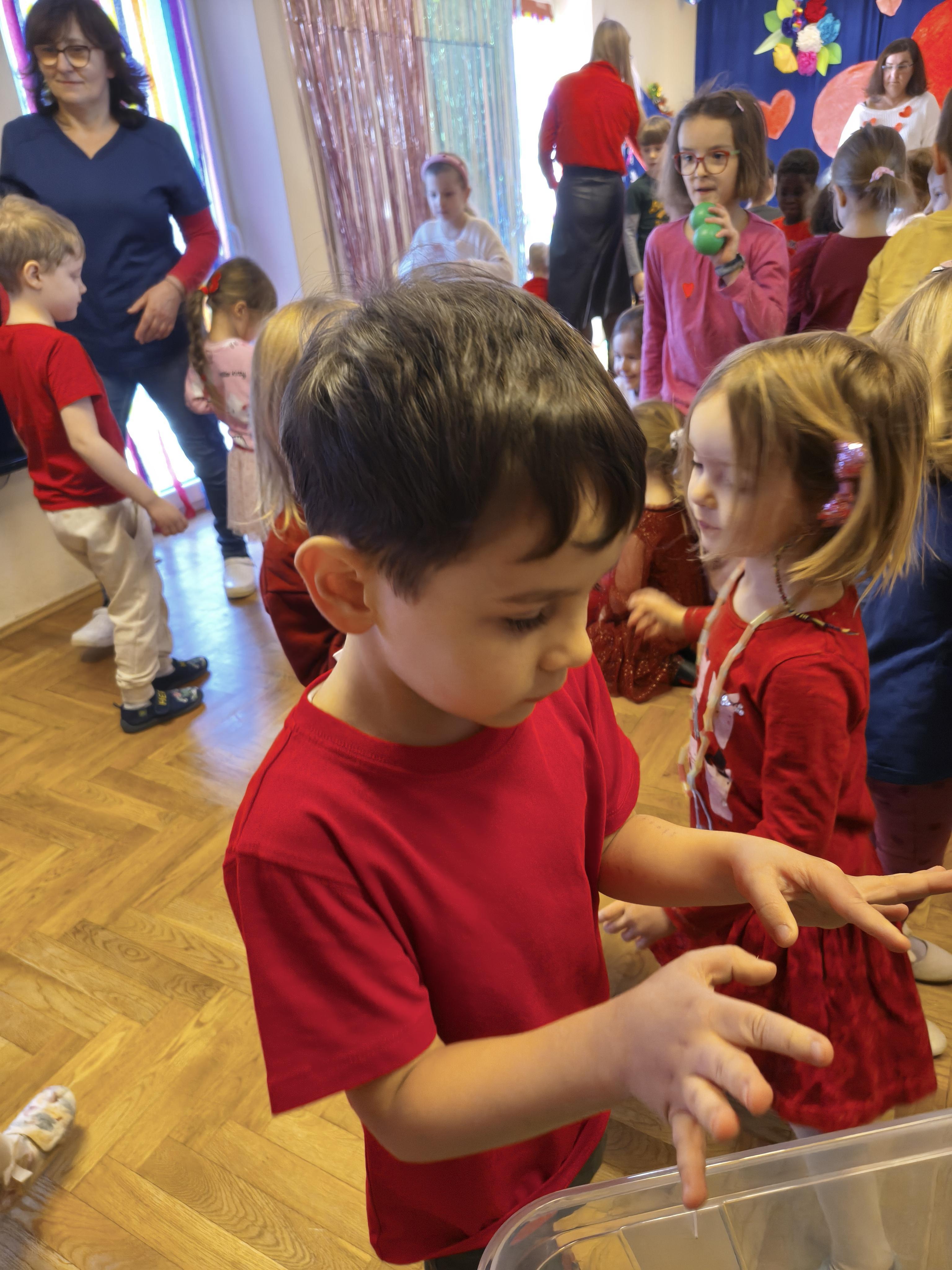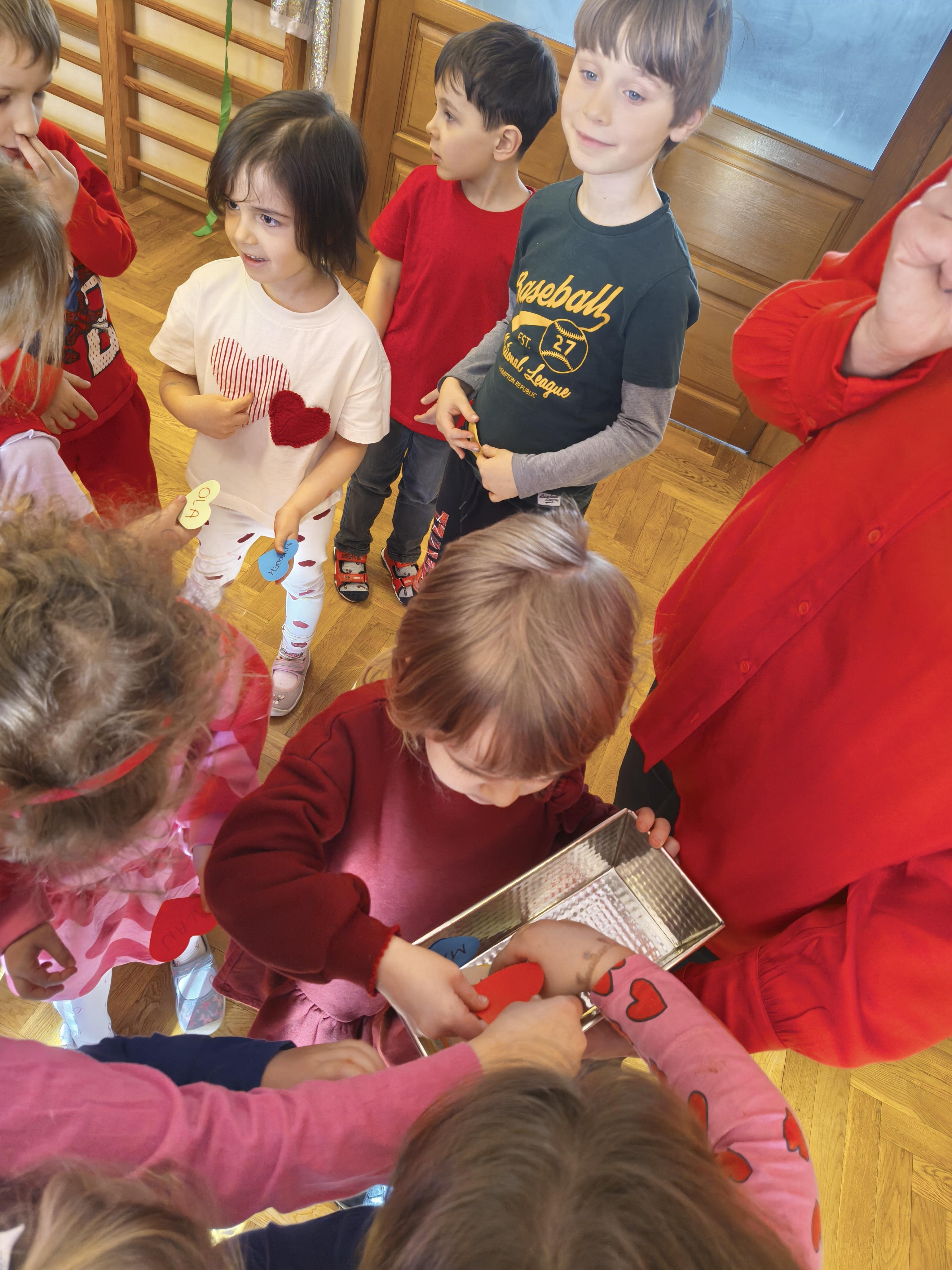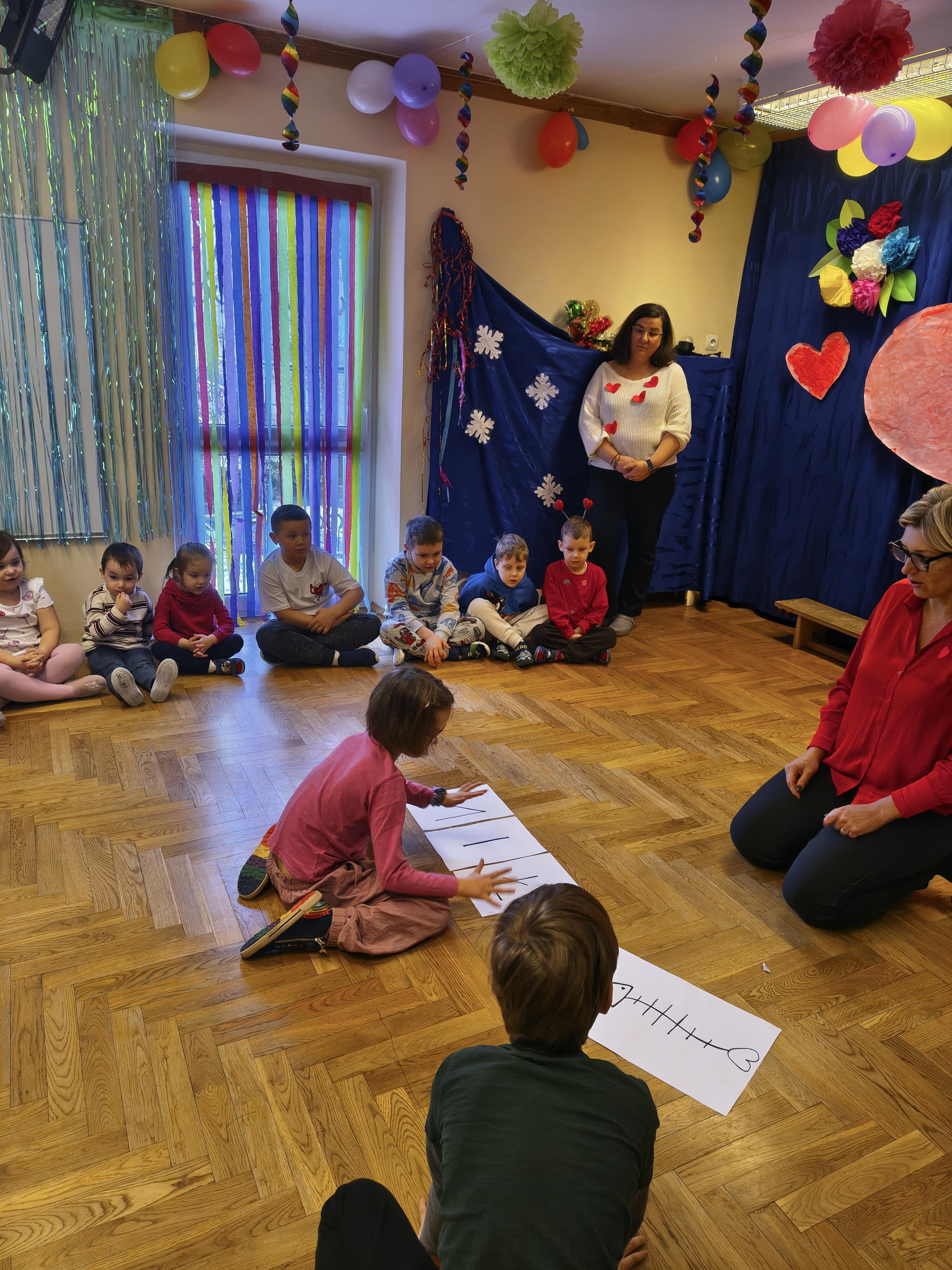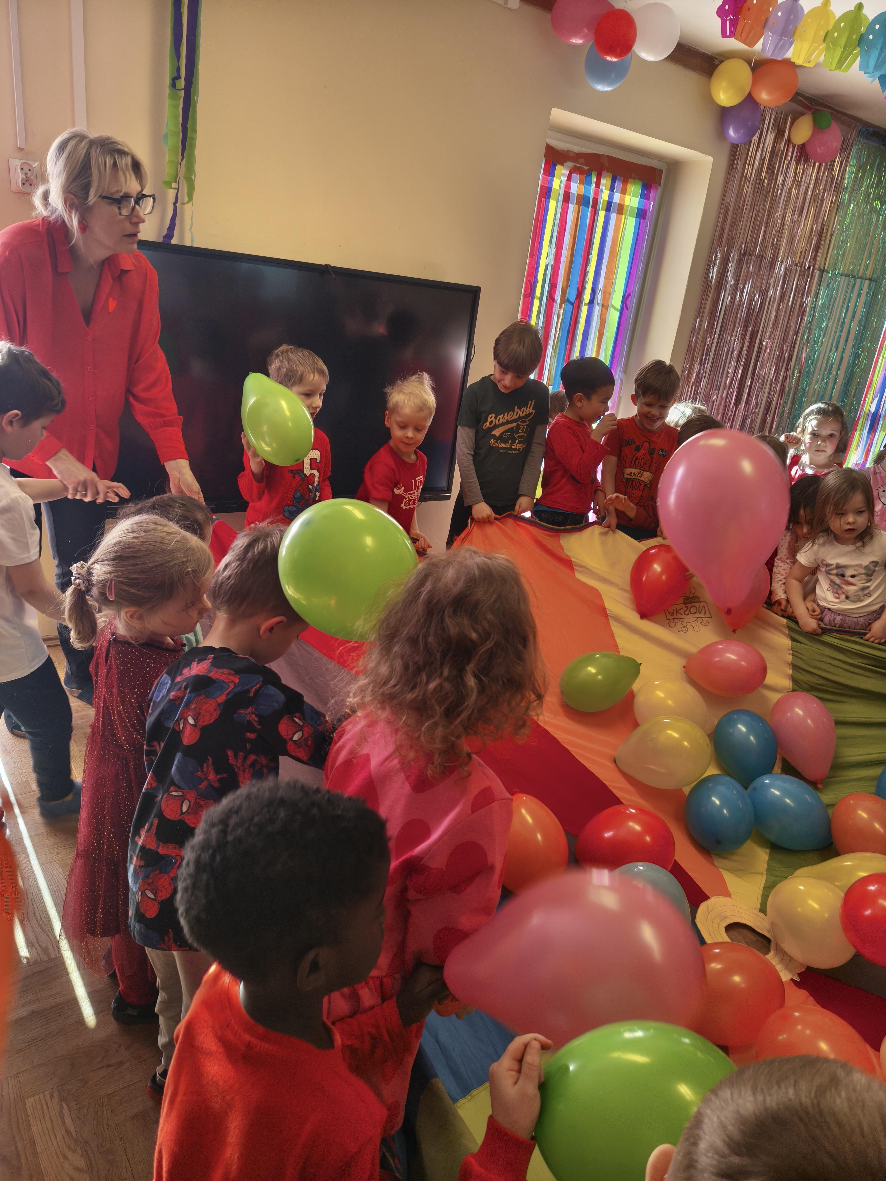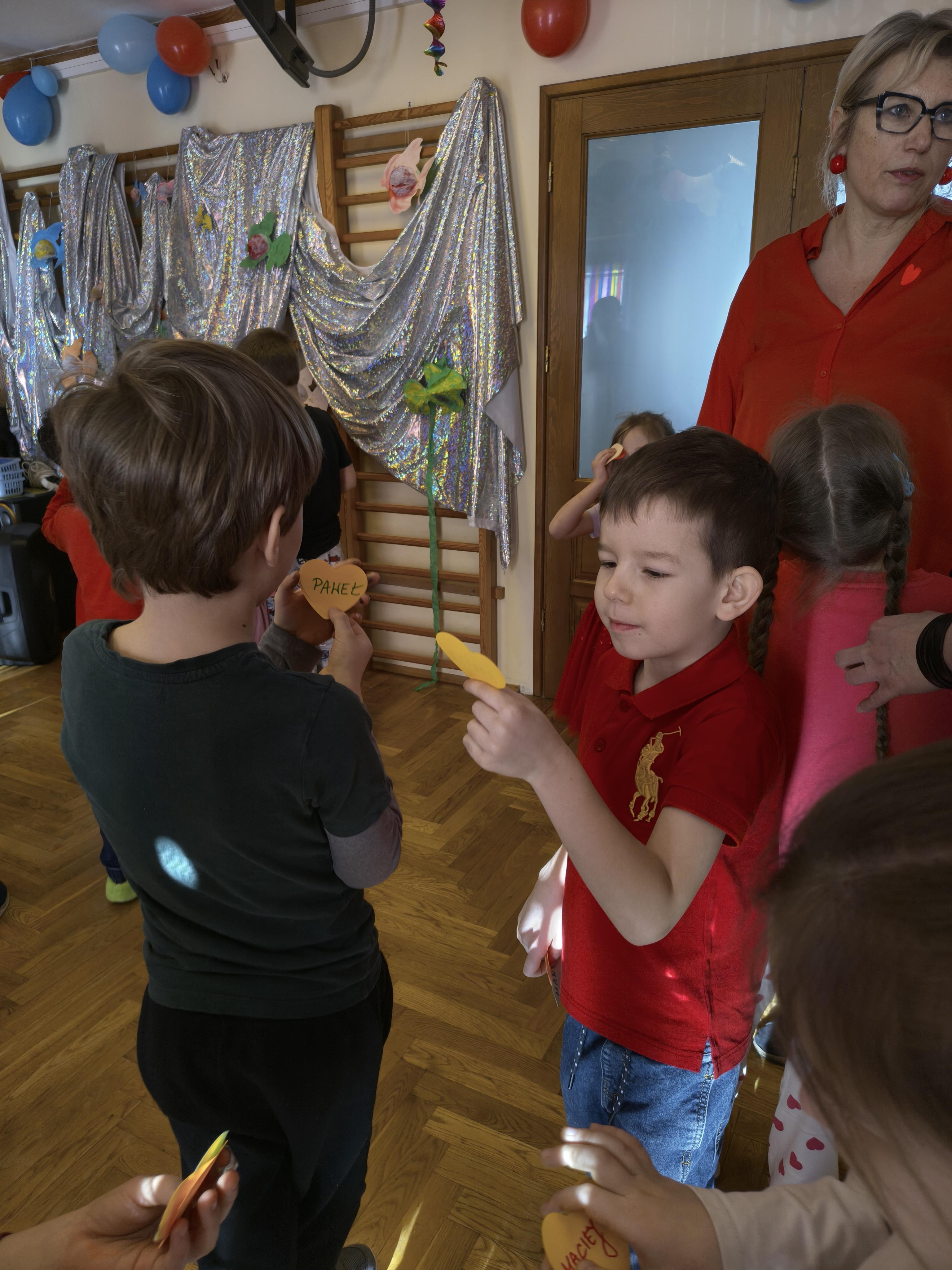 W poniedziałek 16 lutego dzieci spotkały się pięknie ubrane, w sali gimnastycznej, by wspólnie świętować. Walentynkowa zabawa była doskonałą okazją do budowania relacji, empatii i radości. Było wręczanie kartek z poczty walentynkowej, poszukiwanie przyjaciół, tańce z balonami, kolorowanie dywanu miłości, chusta animacyjna, Belgijka i losowanie imion przyszłych sympatii. Nie brakowało dobrej muzyki i uśmiechniętych buziaków!