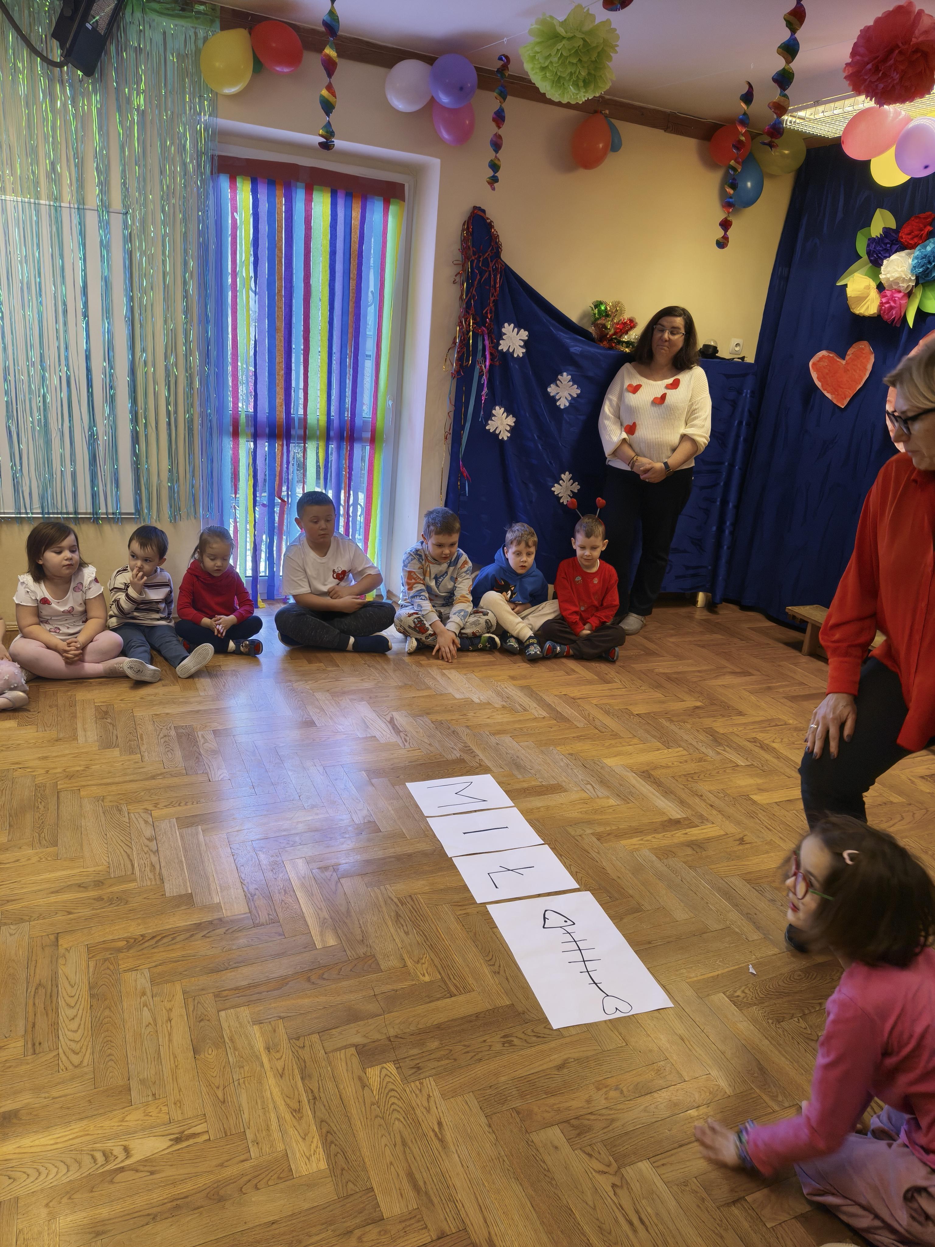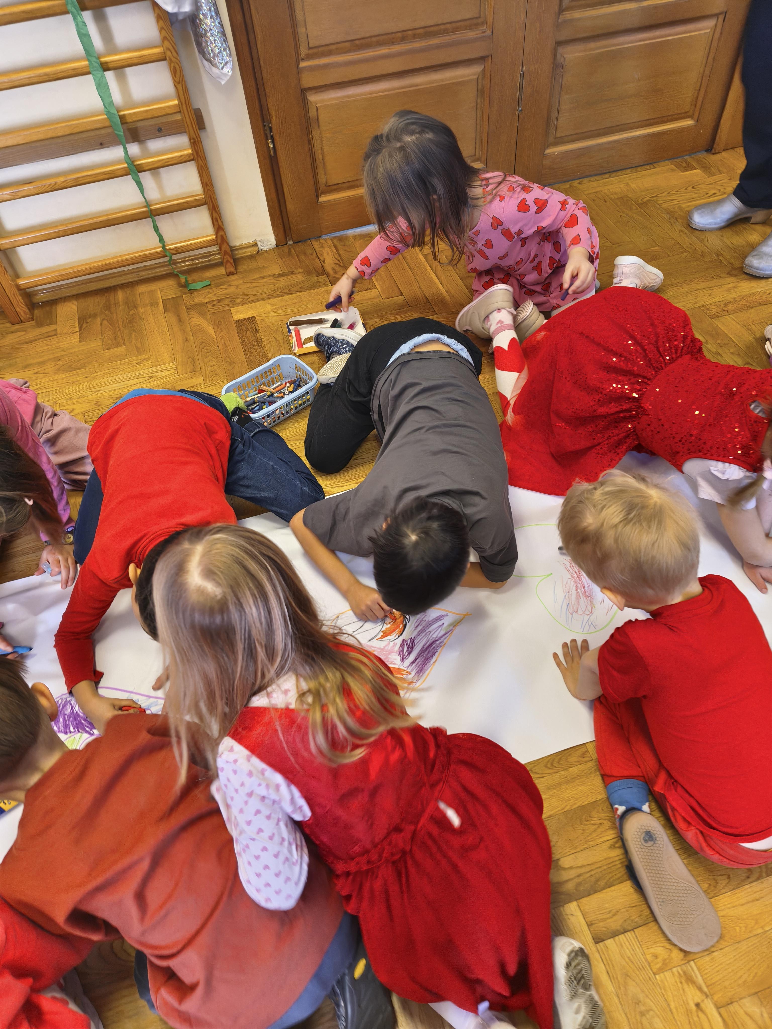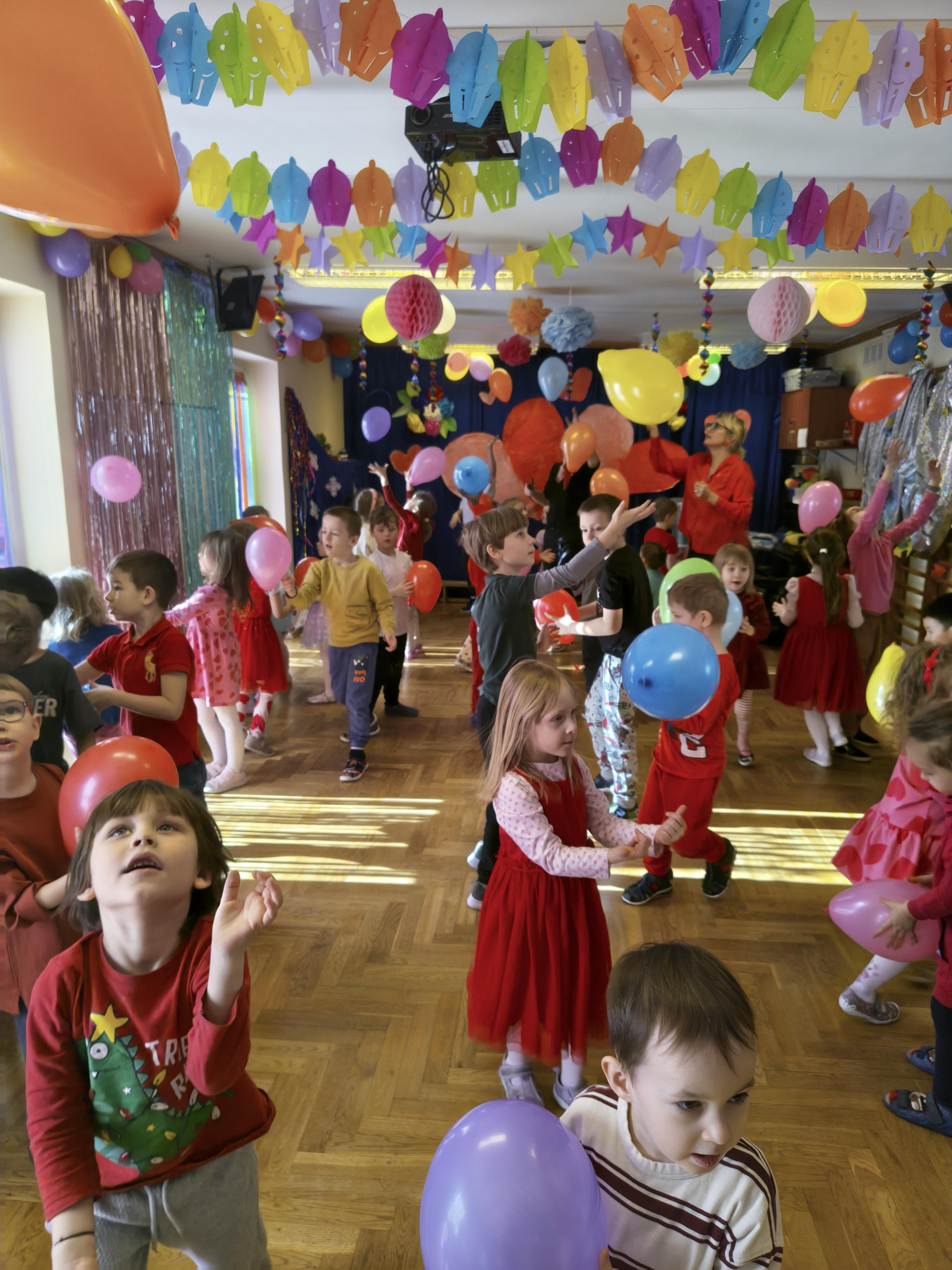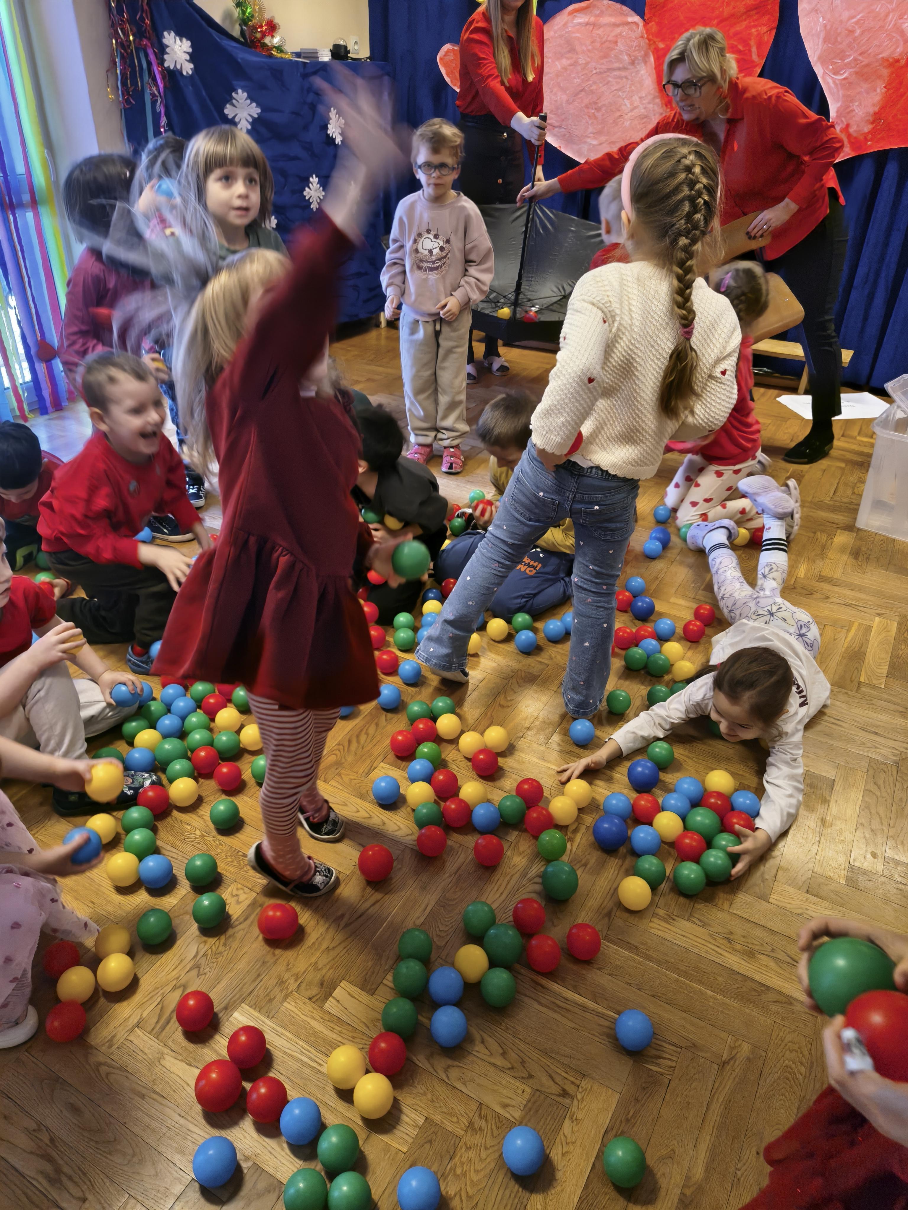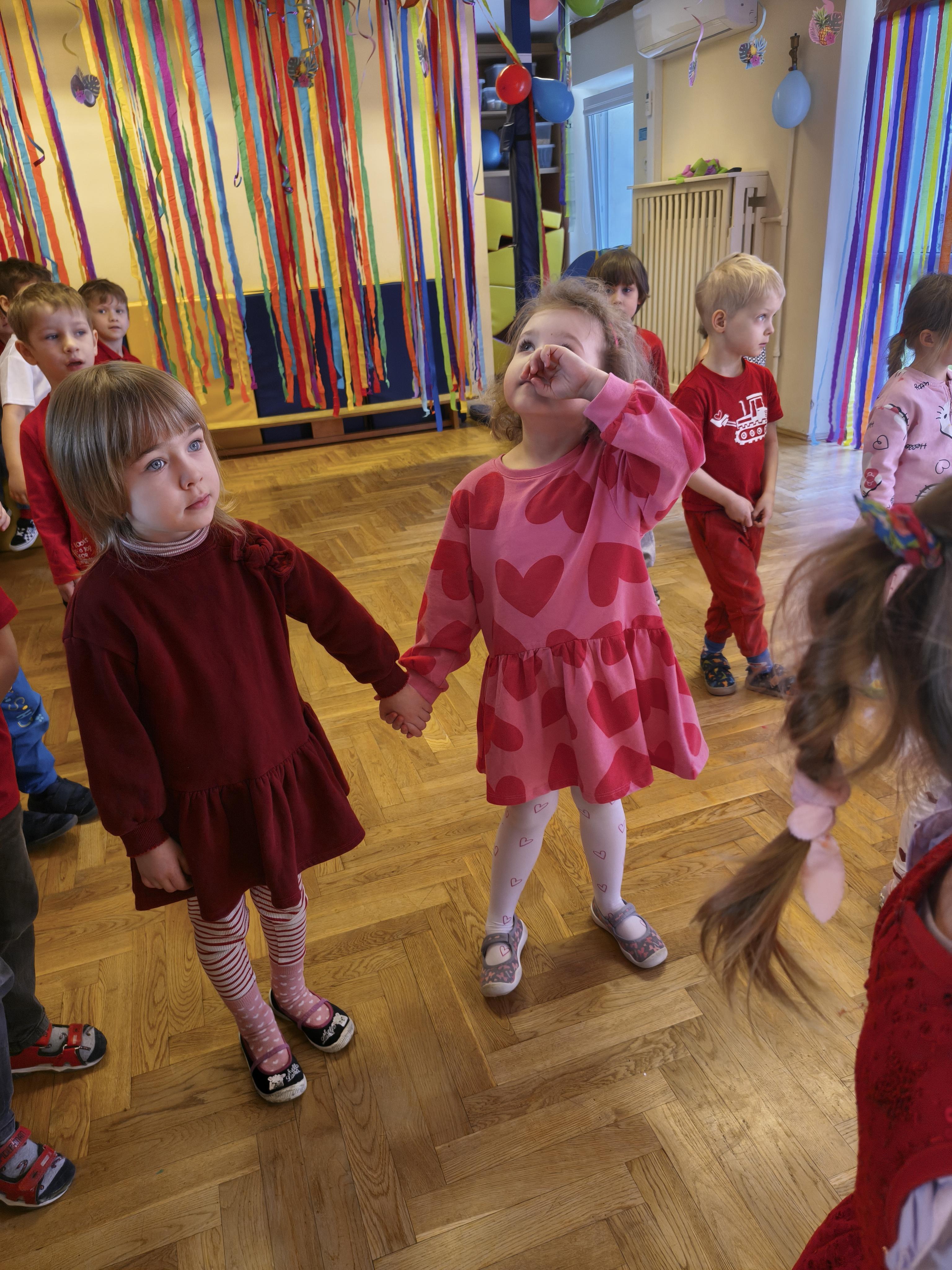 W poniedziałek 16 lutego dzieci spotkały się pięknie ubrane, w sali gimnastycznej, by wspólnie świętować. Walentynkowa zabawa była doskonałą okazją do budowania relacji, empatii i radości. Było wręczanie kartek z poczty walentynkowej, poszukiwanie przyjaciół, tańce z balonami, kolorowanie dywanu miłości, chusta animacyjna, Belgijka i losowanie imion przyszłych sympatii. Nie brakowało dobrej muzyki i uśmiechniętych buziaków!