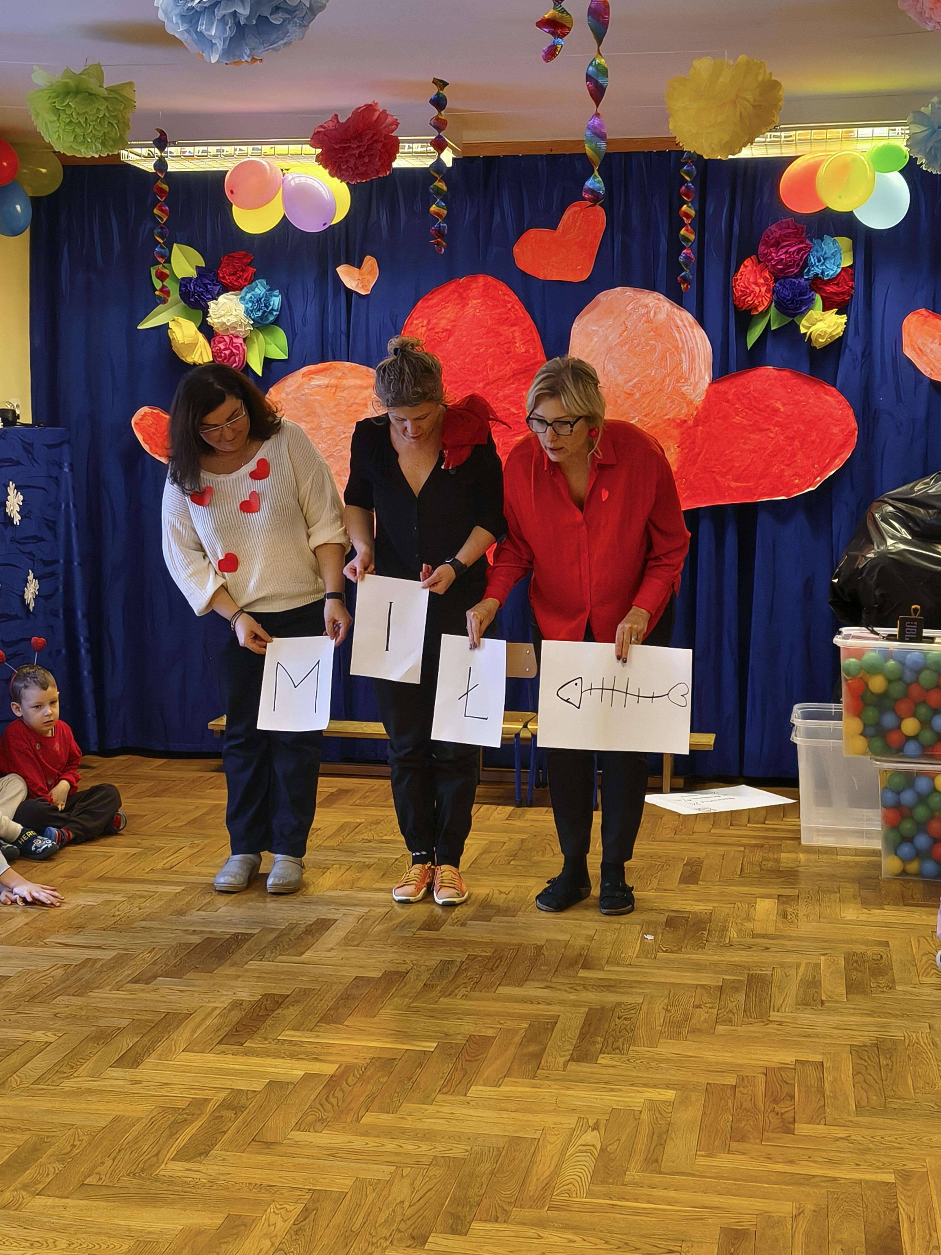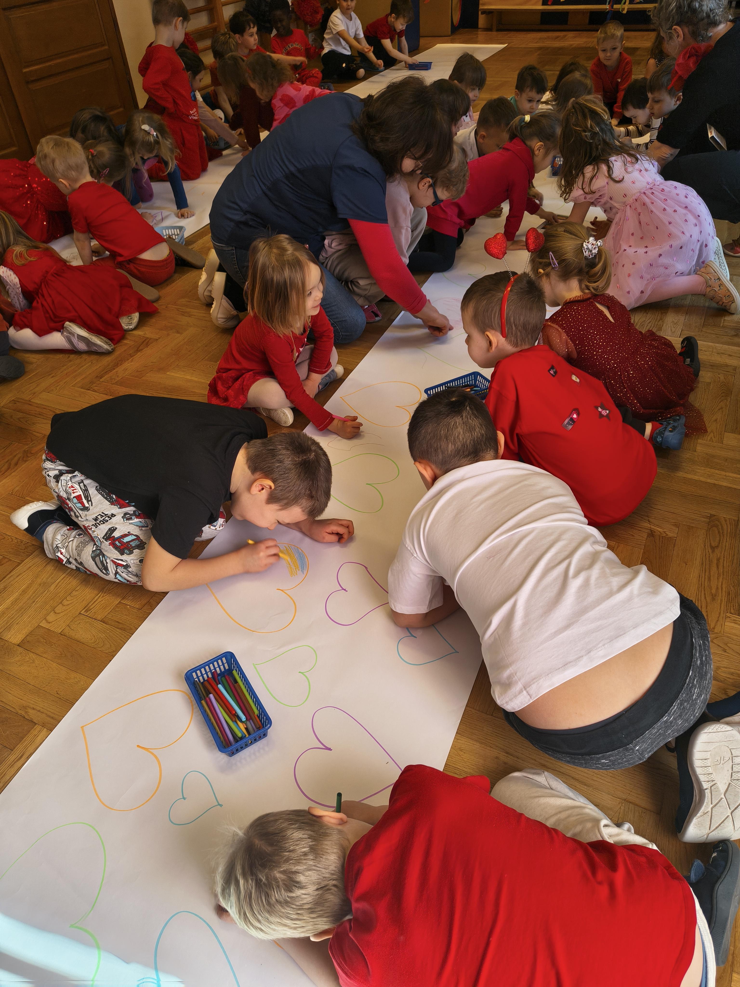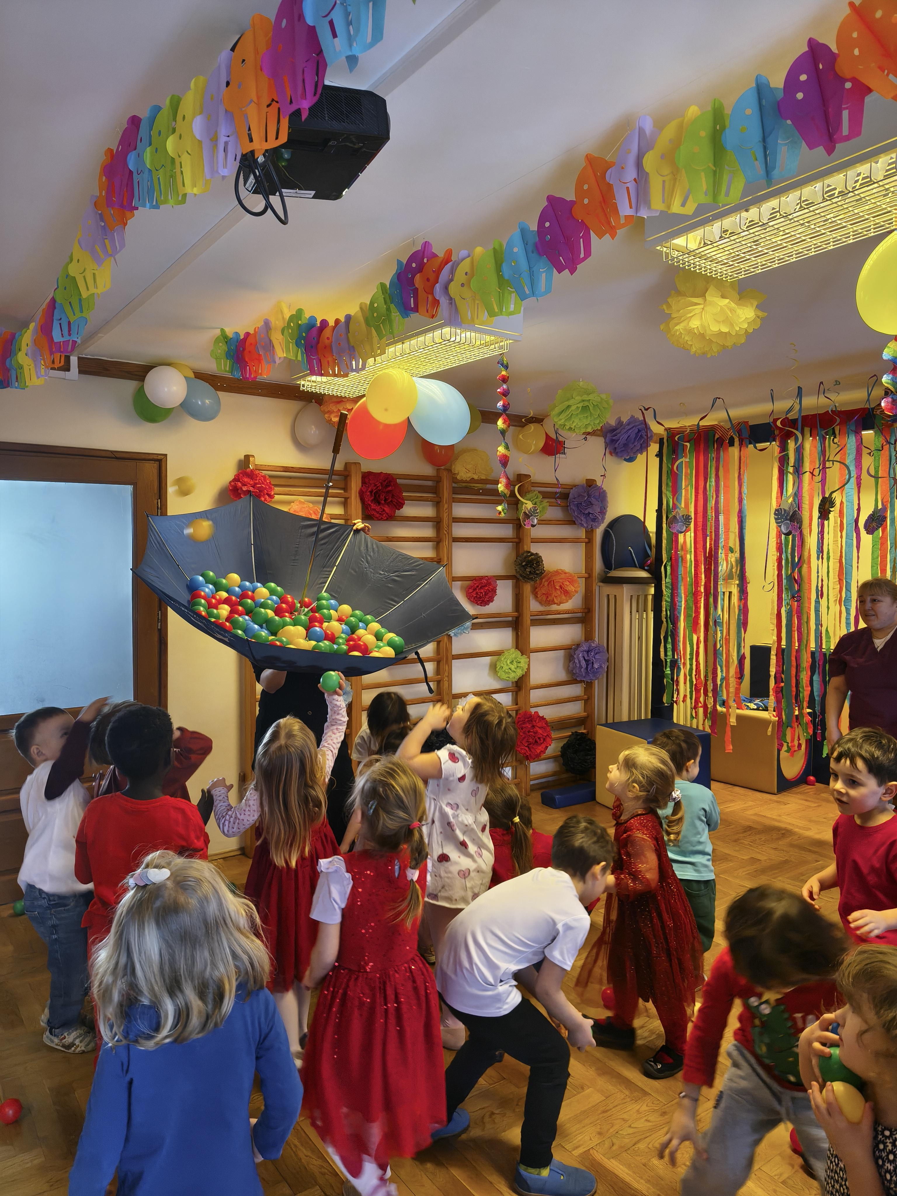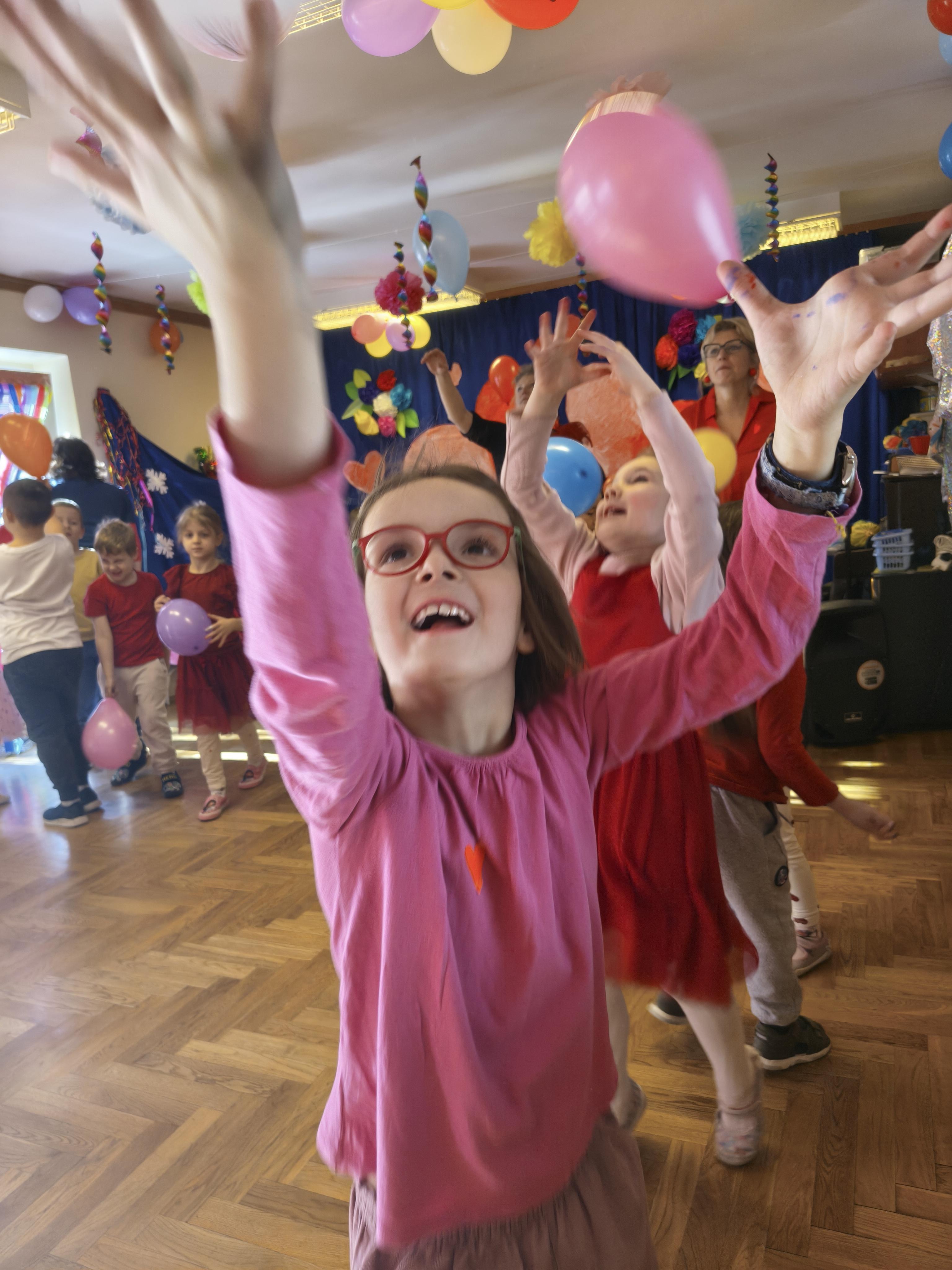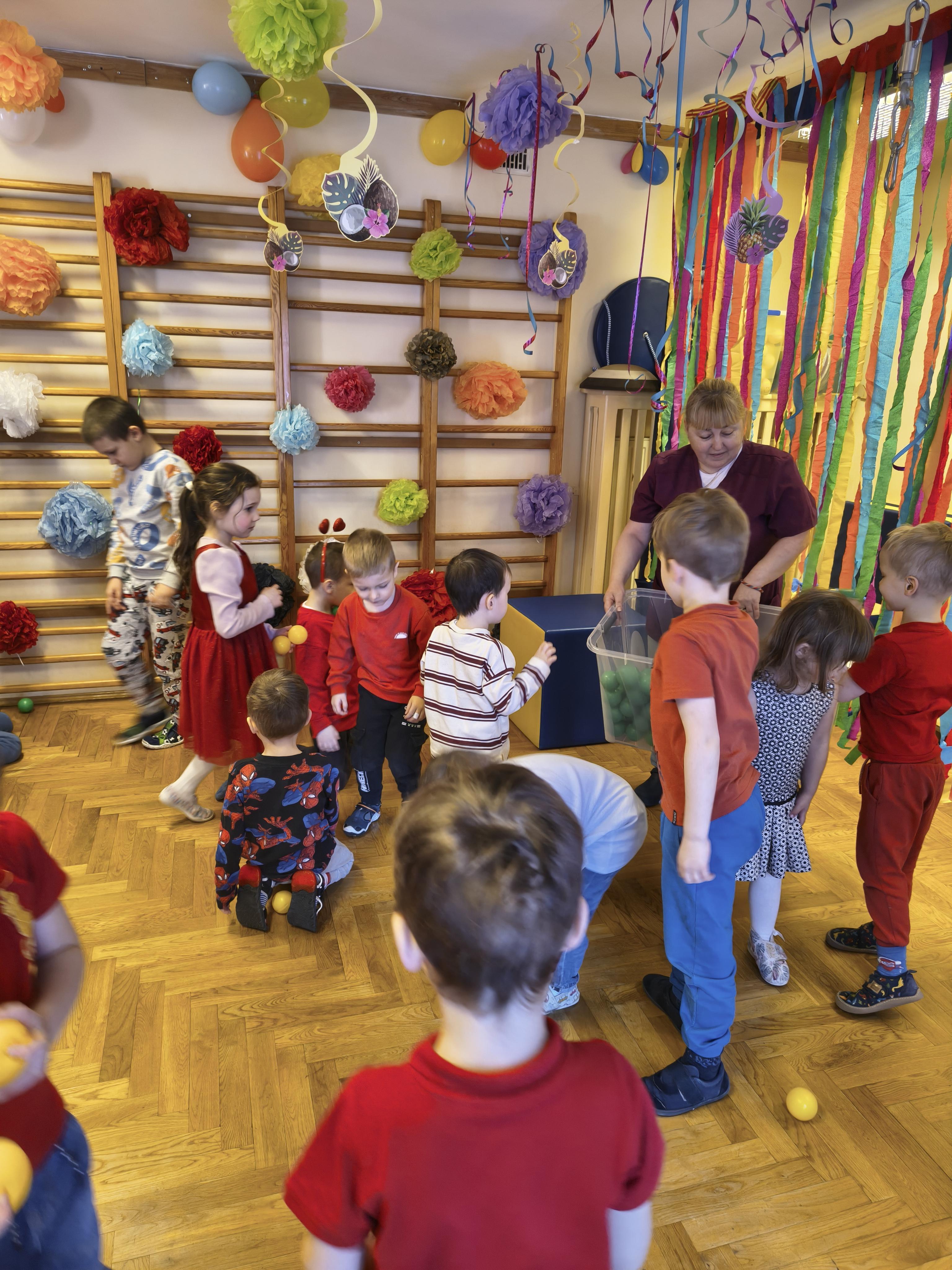 W poniedziałek 16 lutego dzieci spotkały się pięknie ubrane, w sali gimnastycznej, by wspólnie świętować. Walentynkowa zabawa była doskonałą okazją do budowania relacji, empatii i radości. Było wręczanie kartek z poczty walentynkowej, poszukiwanie przyjaciół, tańce z balonami, kolorowanie dywanu miłości, chusta animacyjna, Belgijka i losowanie imion przyszłych sympatii. Nie brakowało dobrej muzyki i uśmiechniętych buziaków!