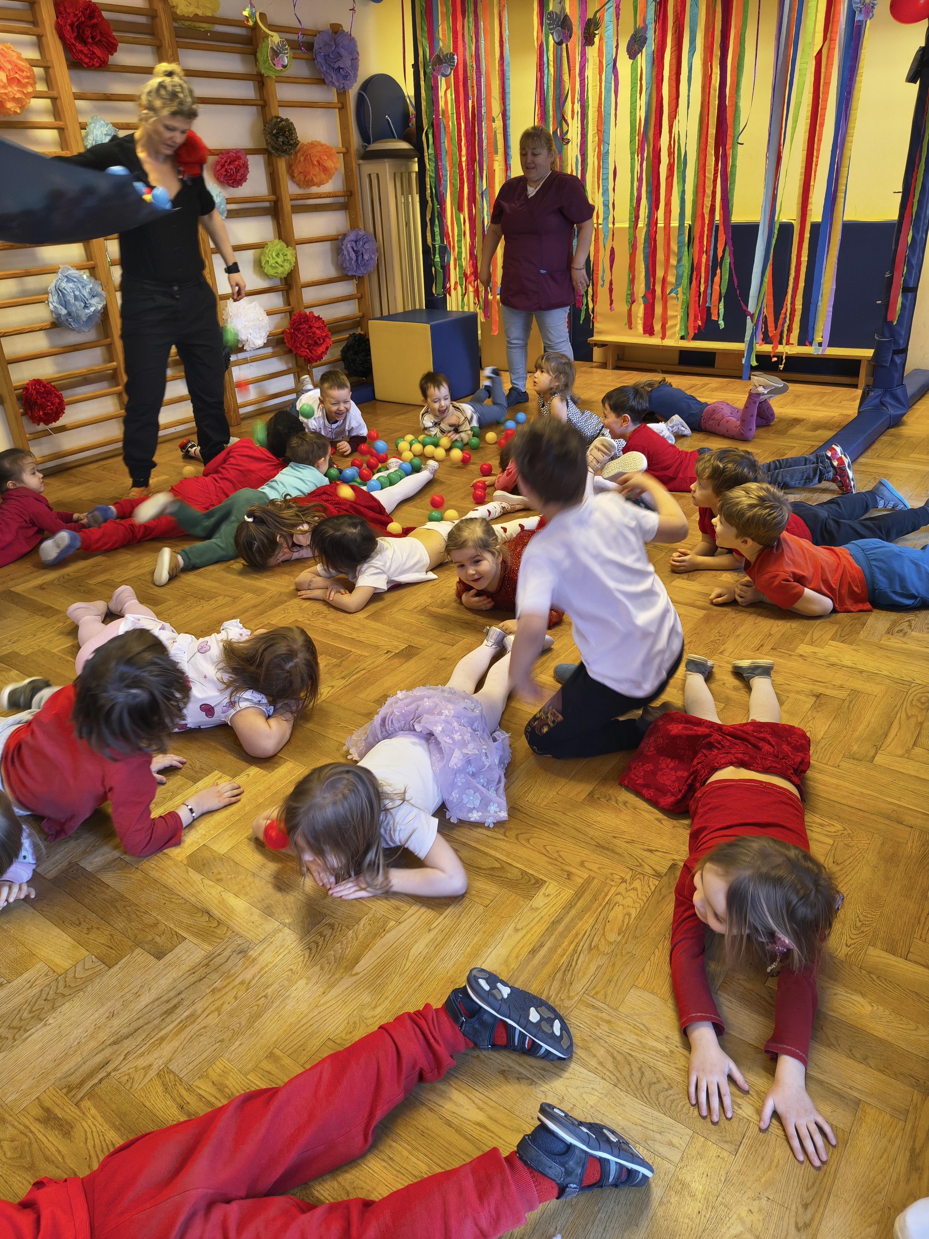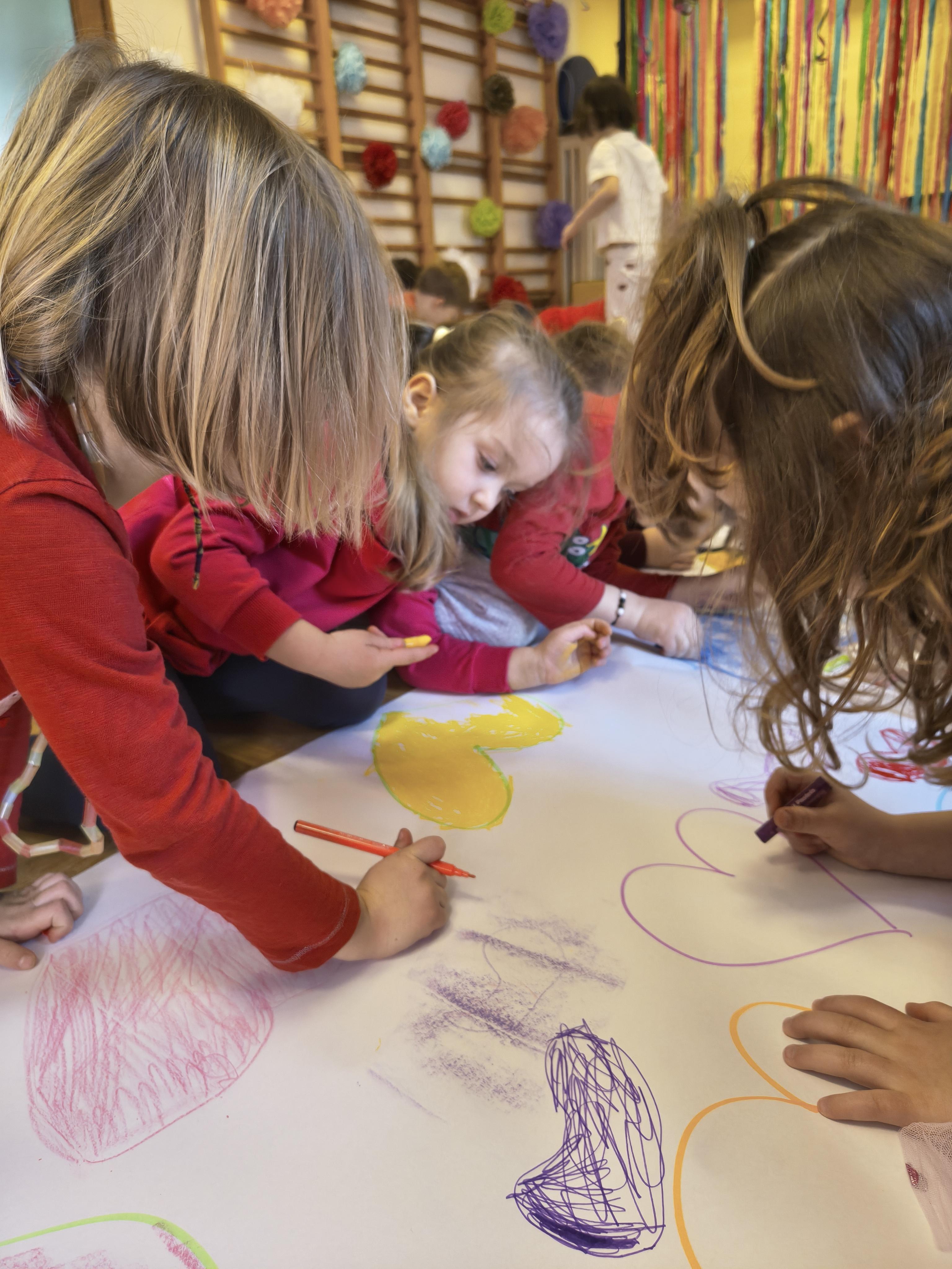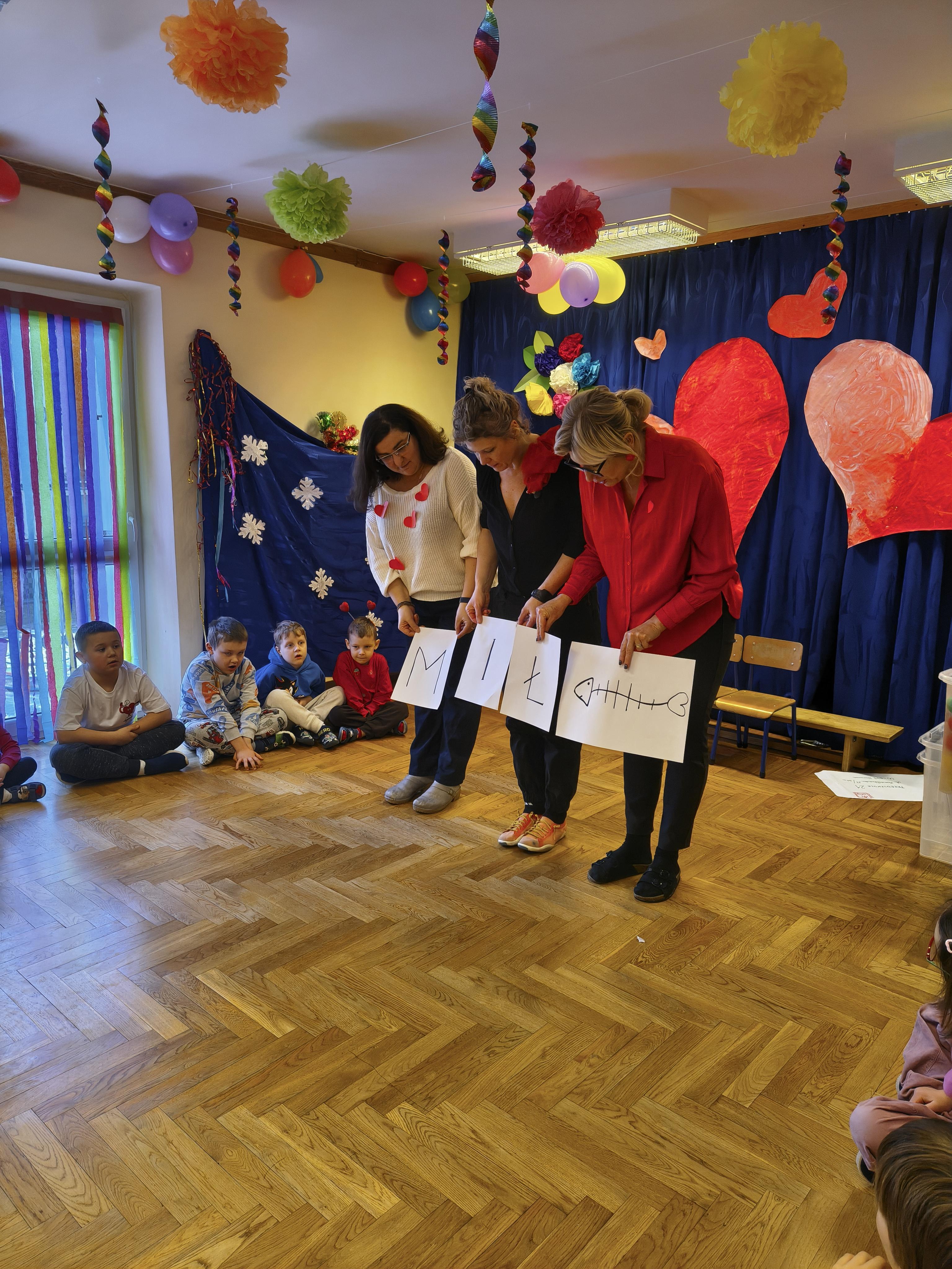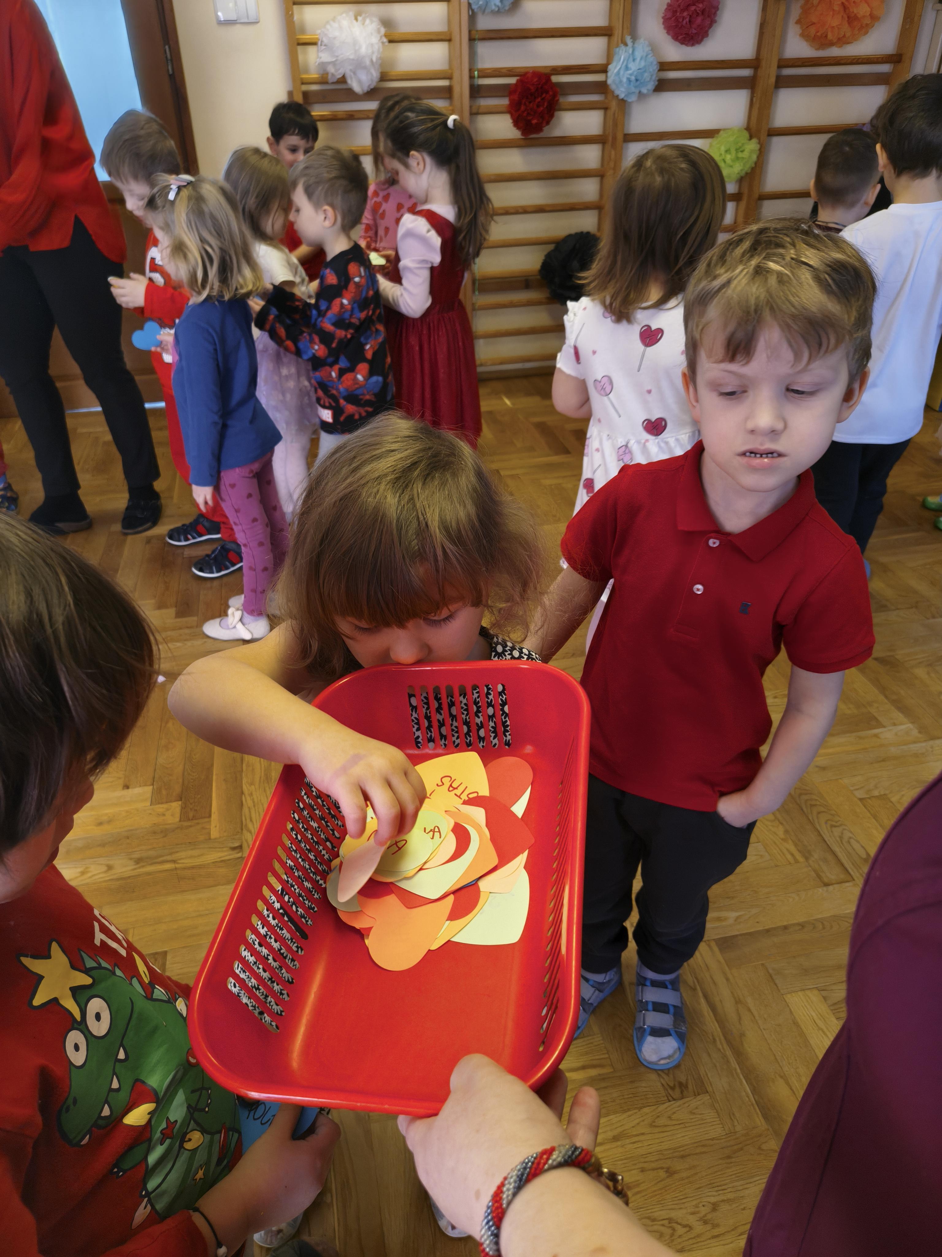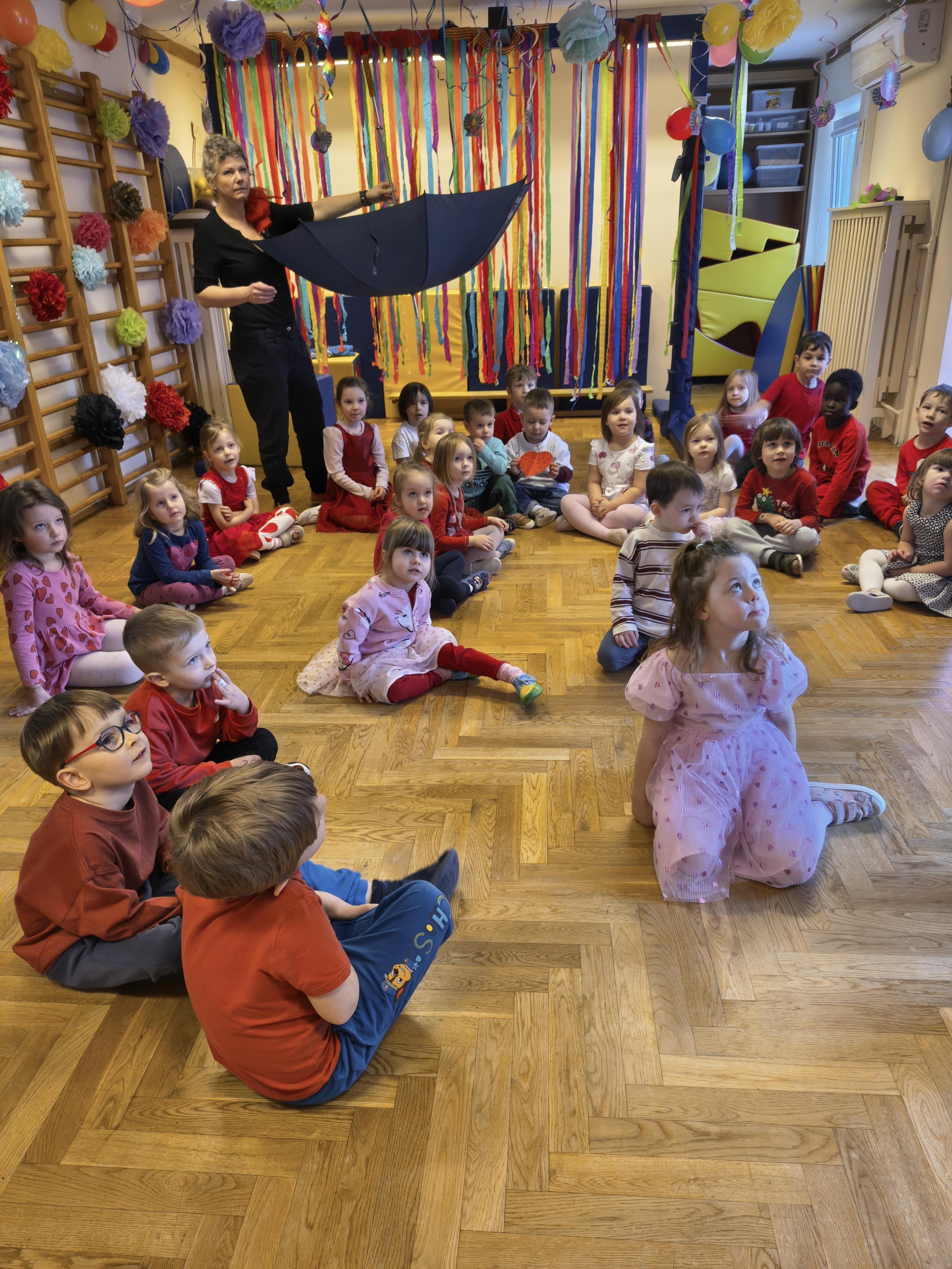 W poniedziałek 16 lutego dzieci spotkały się pięknie ubrane, w sali gimnastycznej, by wspólnie świętować. Walentynkowa zabawa była doskonałą okazją do budowania relacji, empatii i radości. Było wręczanie kartek z poczty walentynkowej, poszukiwanie przyjaciół, tańce z balonami, kolorowanie dywanu miłości, chusta animacyjna, Belgijka i losowanie imion przyszłych sympatii. Nie brakowało dobrej muzyki i uśmiechniętych buziaków!