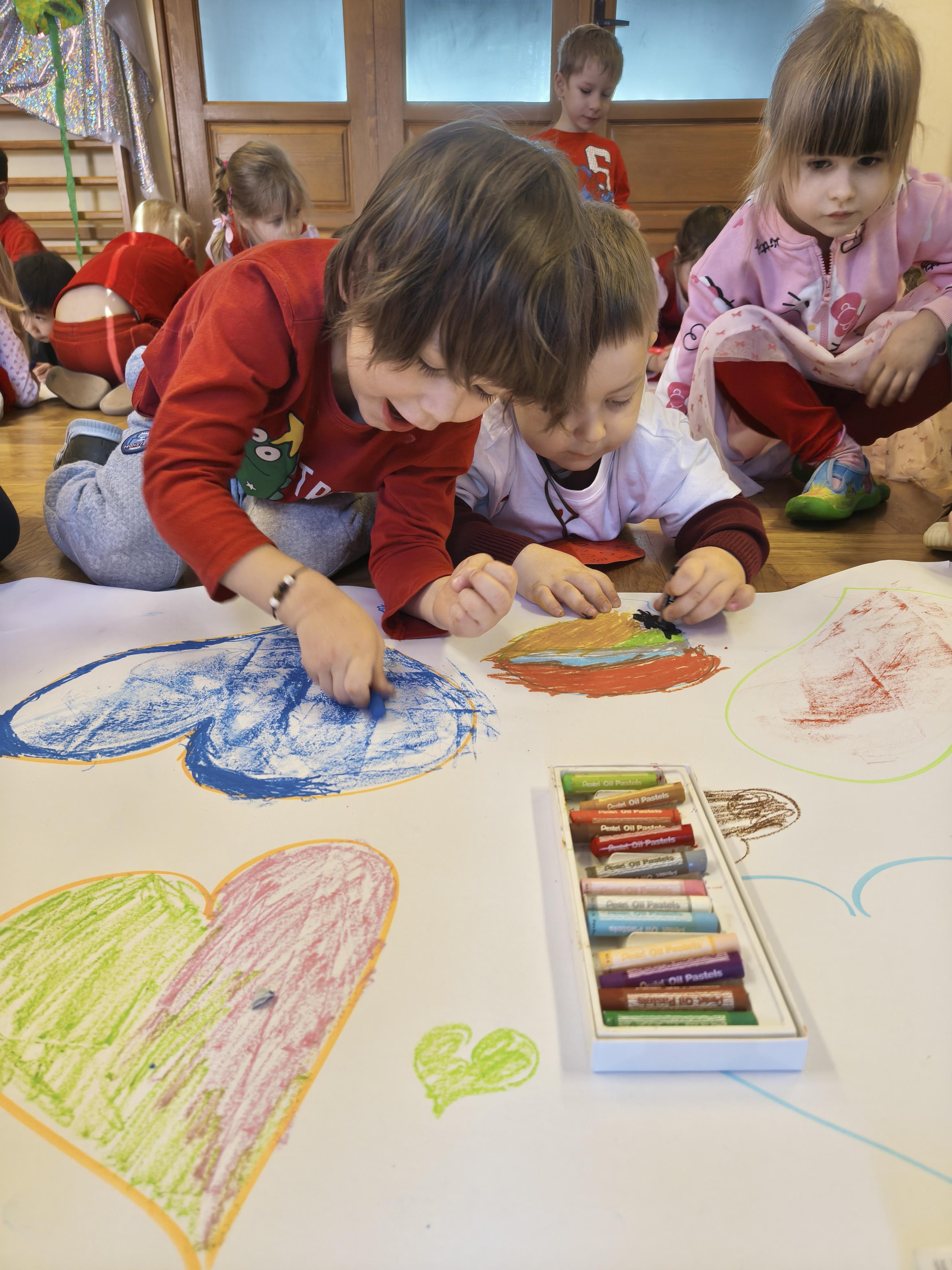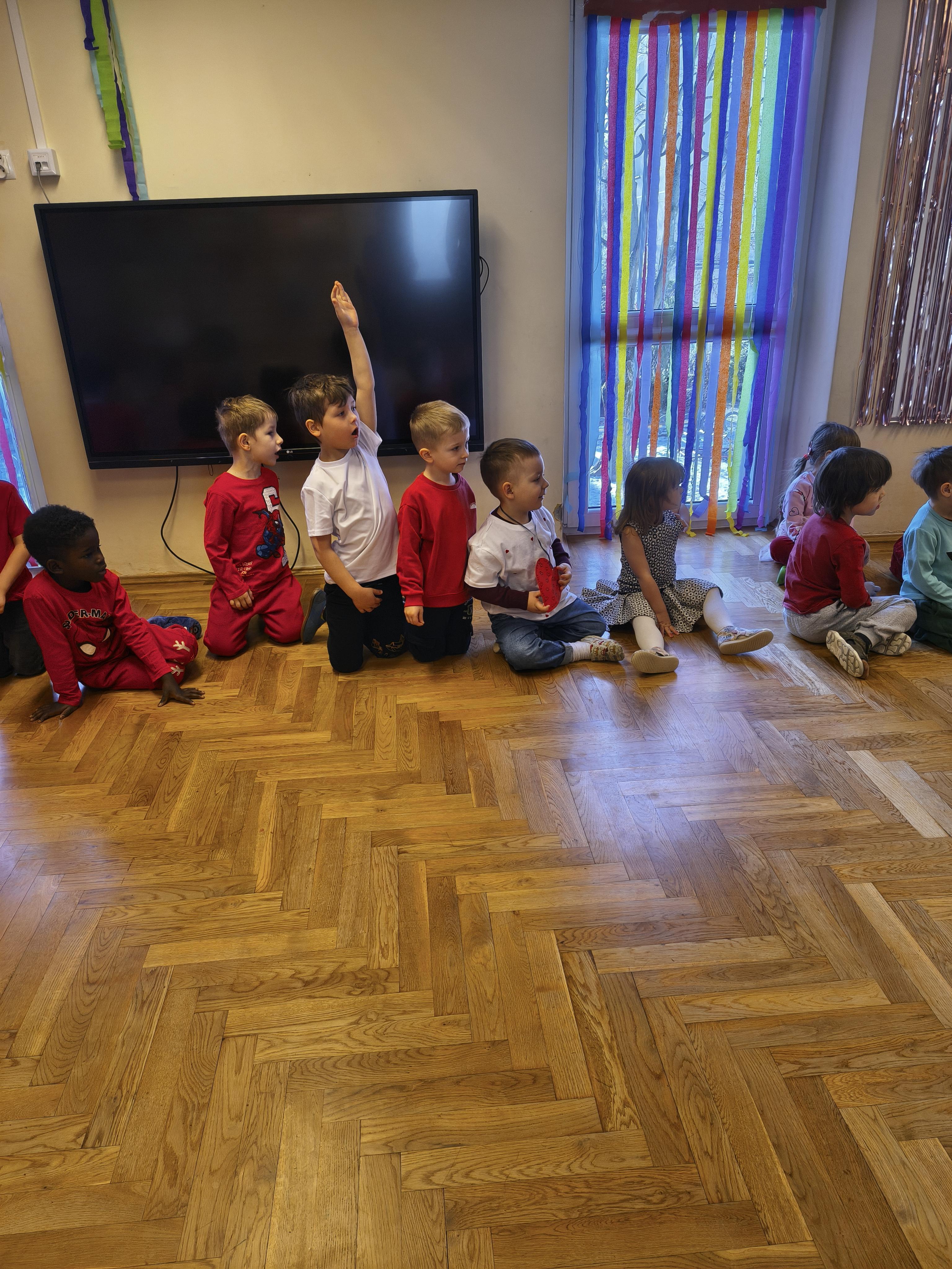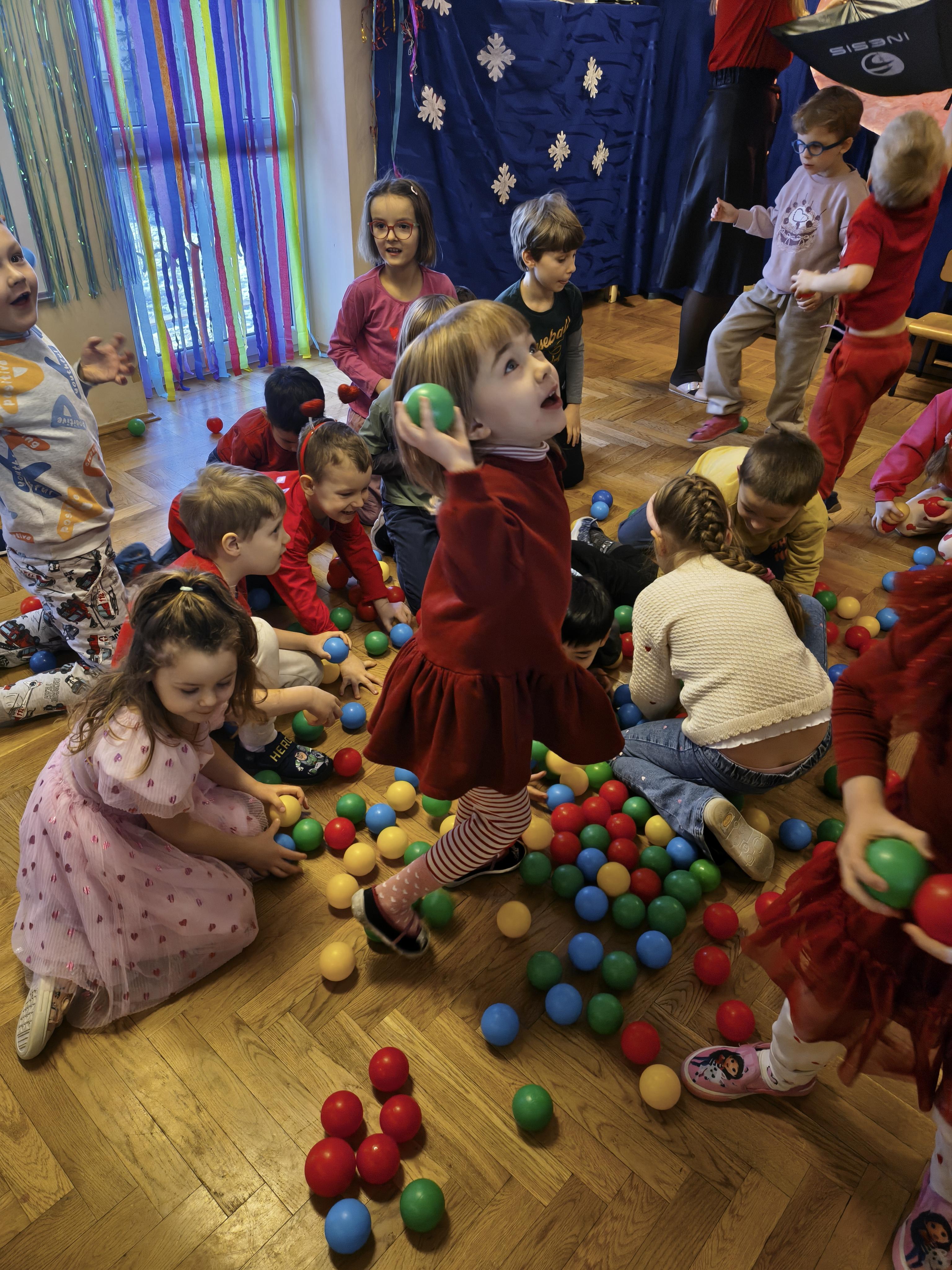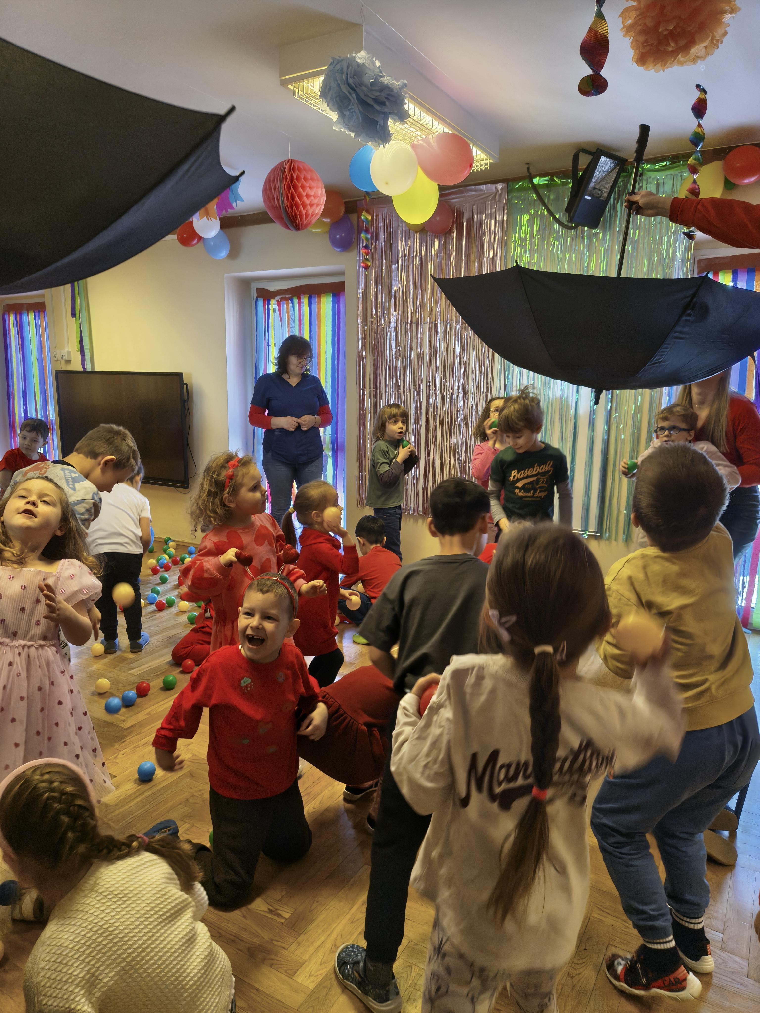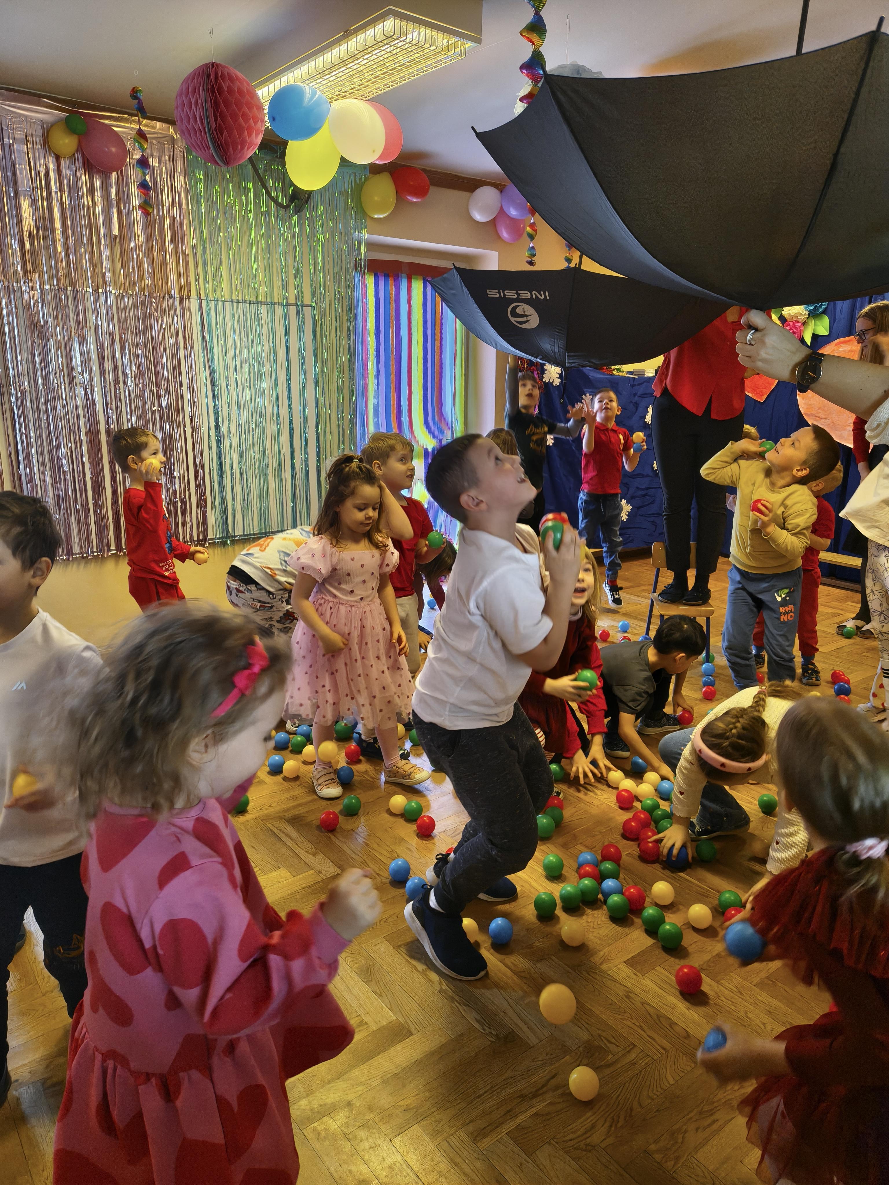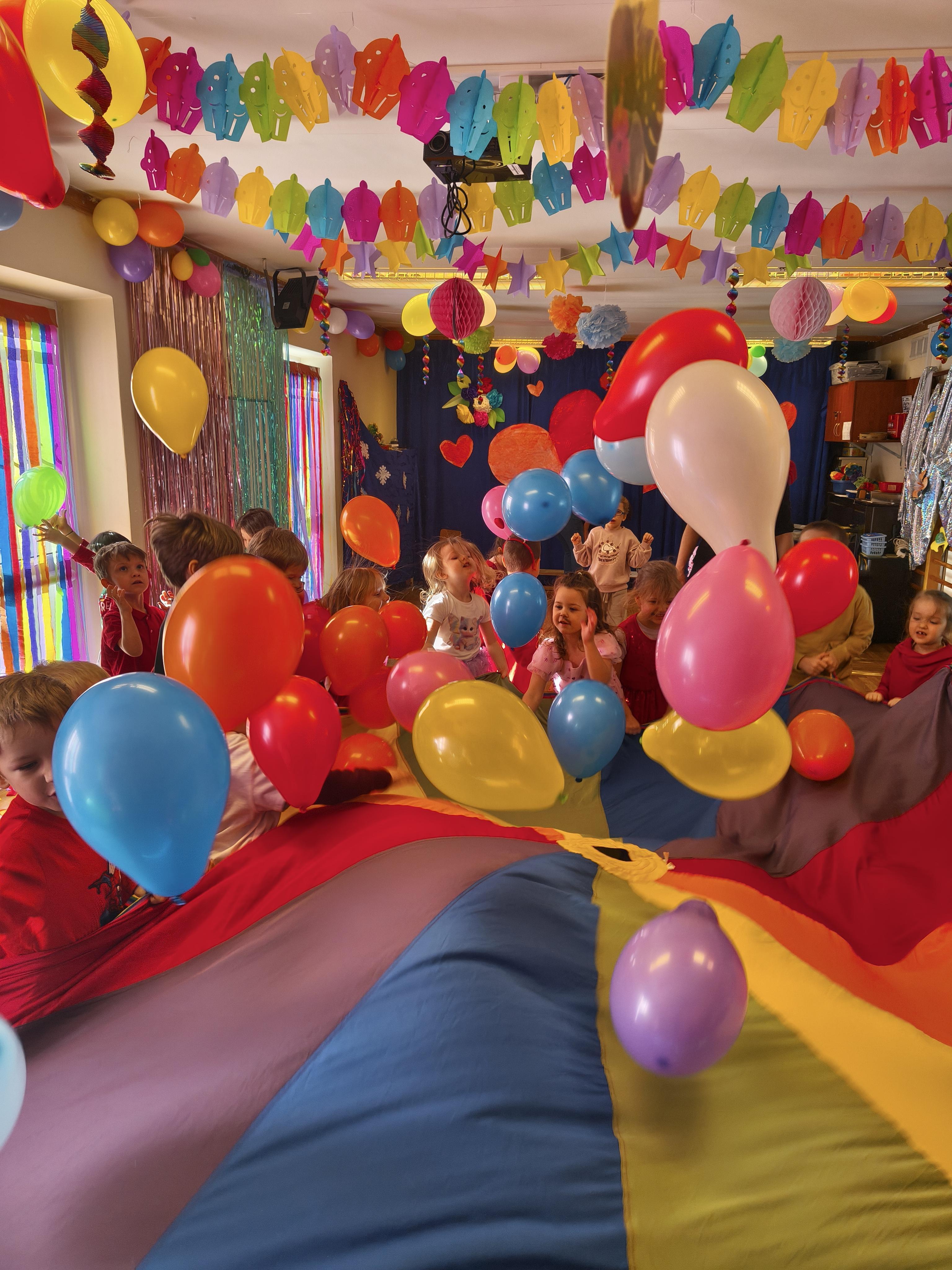 W poniedziałek 16 lutego dzieci spotkały się pięknie ubrane, w sali gimnastycznej, by wspólnie świętować. Walentynkowa zabawa była doskonałą okazją do budowania relacji, empatii i radości. Było wręczanie kartek z poczty walentynkowej, poszukiwanie przyjaciół, tańce z balonami, kolorowanie dywanu miłości, chusta animacyjna, Belgijka i losowanie imion przyszłych sympatii. Nie brakowało dobrej muzyki i uśmiechniętych buziaków!