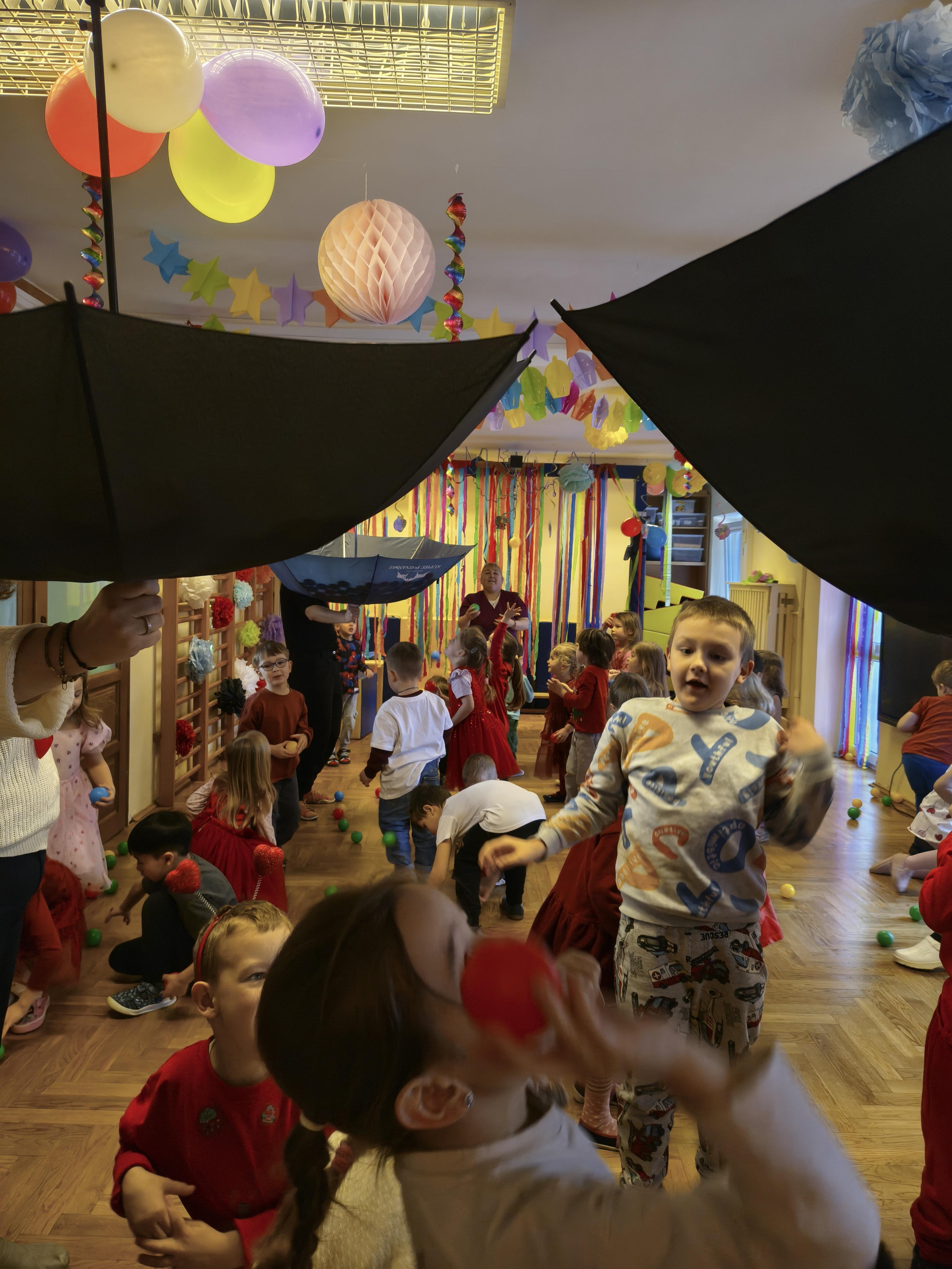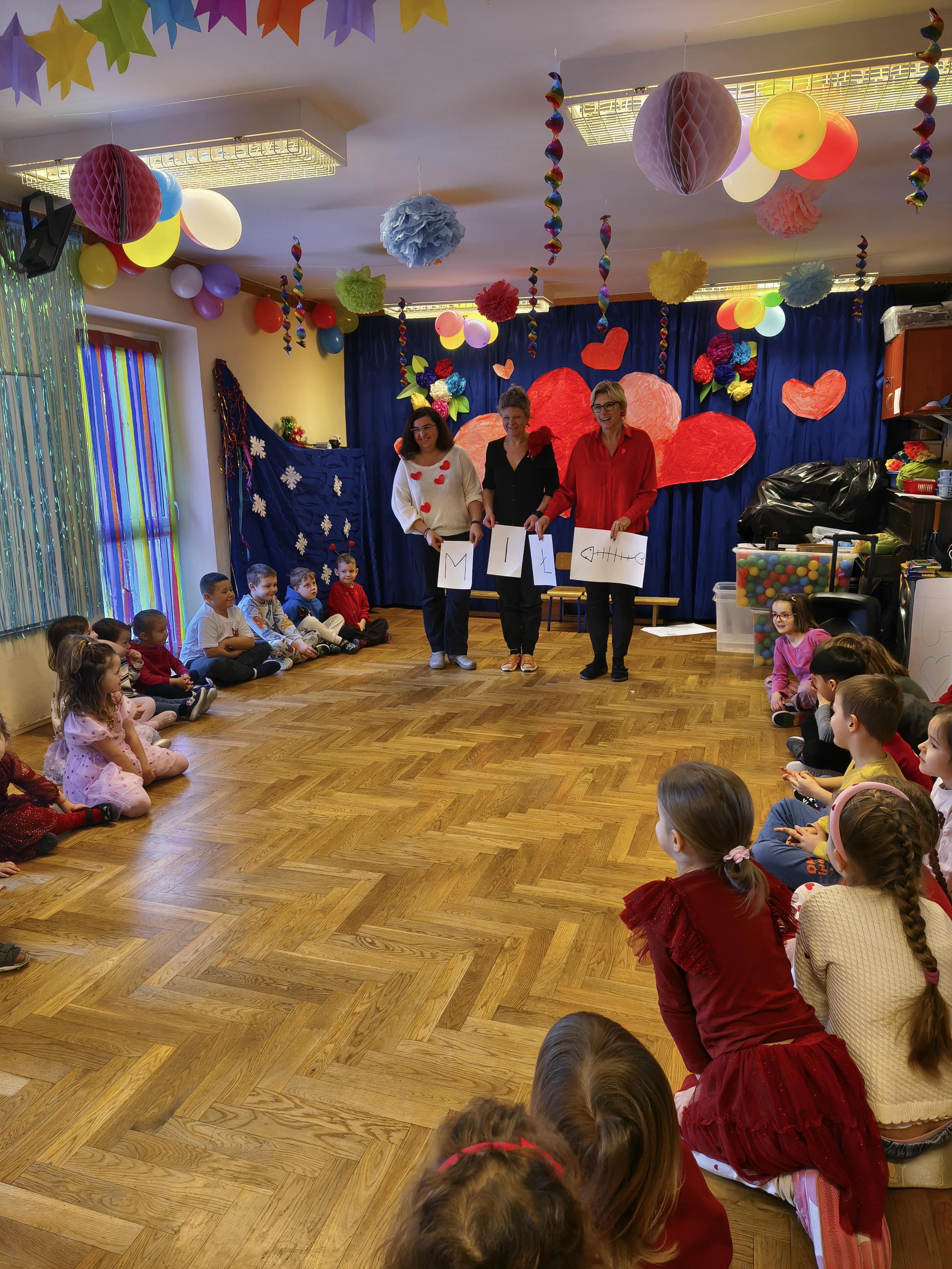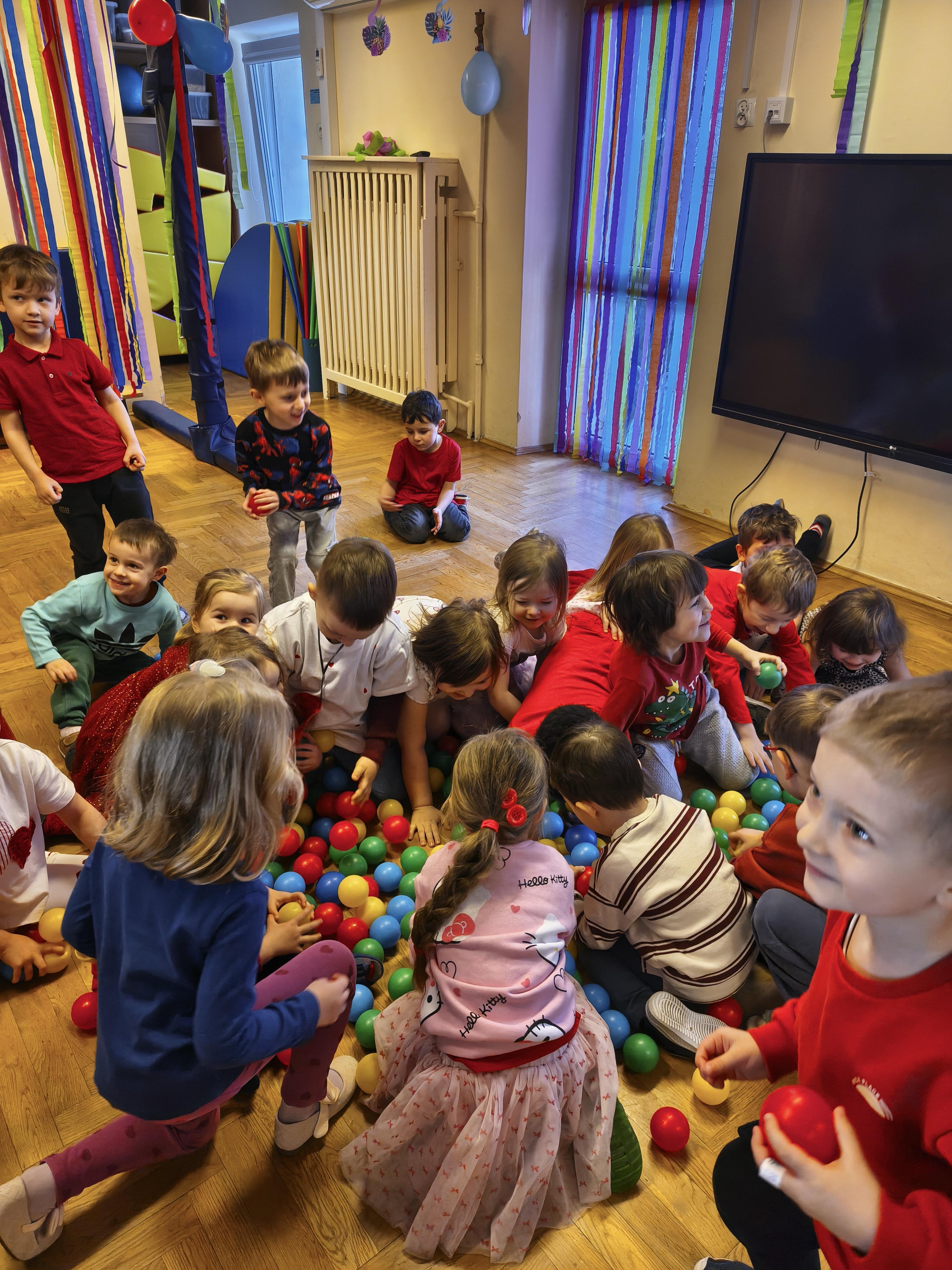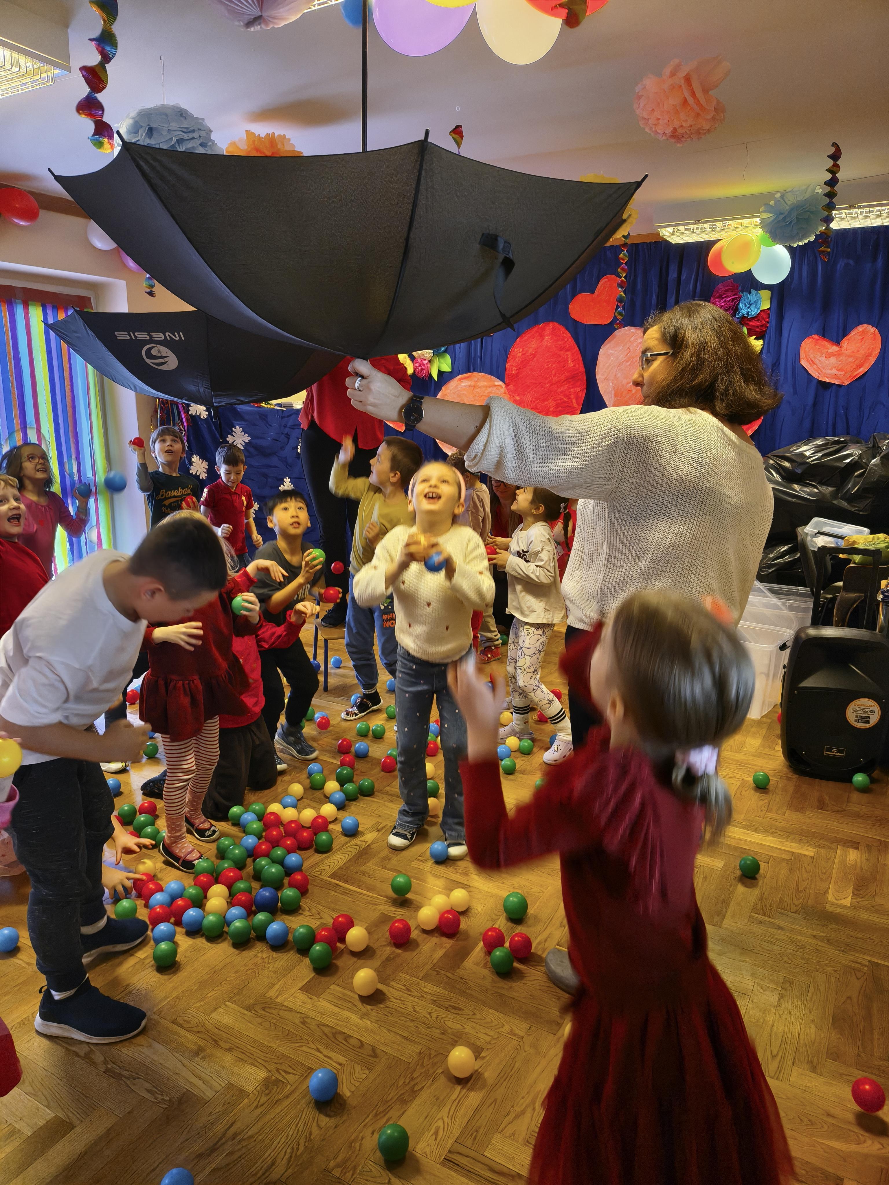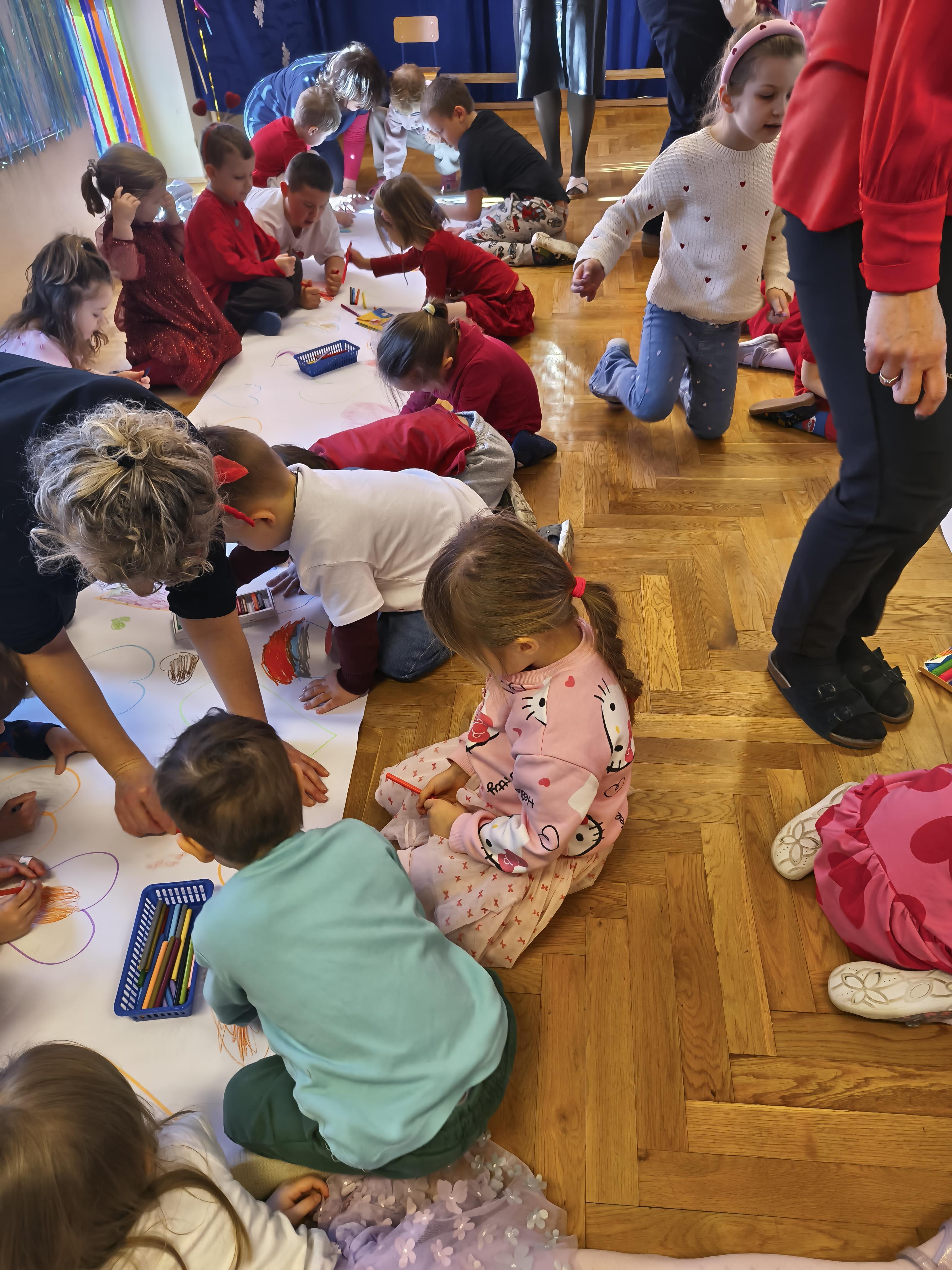 W poniedziałek 16 lutego dzieci spotkały się pięknie ubrane, w sali gimnastycznej, by wspólnie świętować. Walentynkowa zabawa była doskonałą okazją do budowania relacji, empatii i radości. Było wręczanie kartek z poczty walentynkowej, poszukiwanie przyjaciół, tańce z balonami, kolorowanie dywanu miłości, chusta animacyjna, Belgijka i losowanie imion przyszłych sympatii. Nie brakowało dobrej muzyki i uśmiechniętych buziaków!